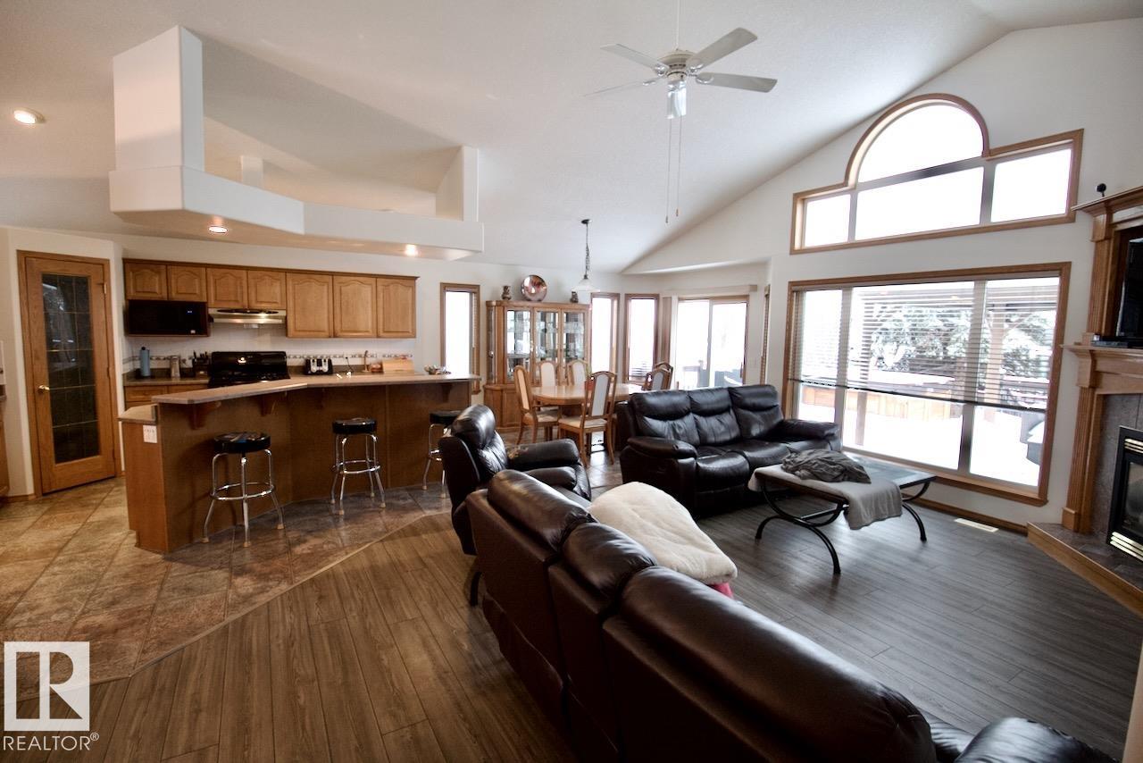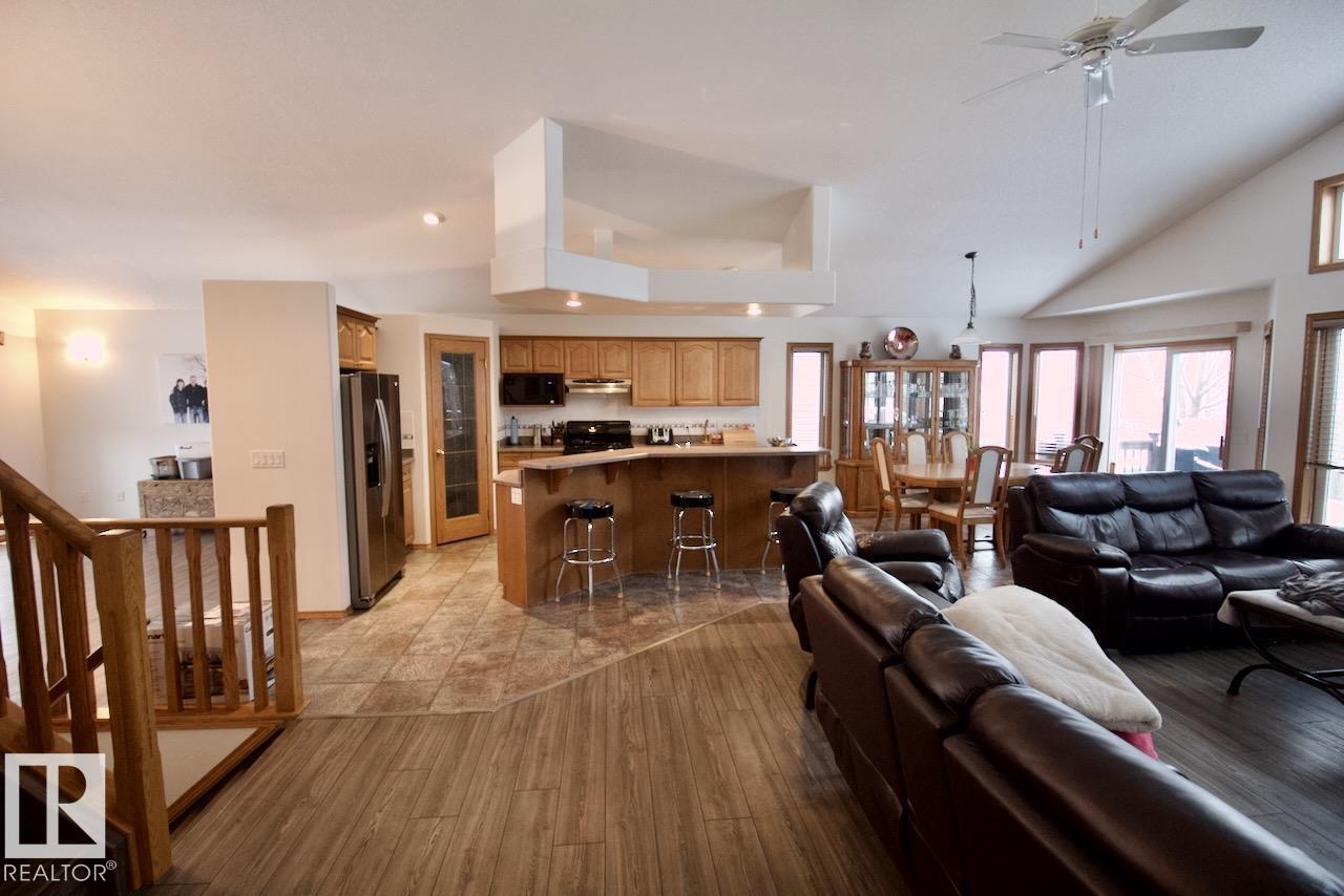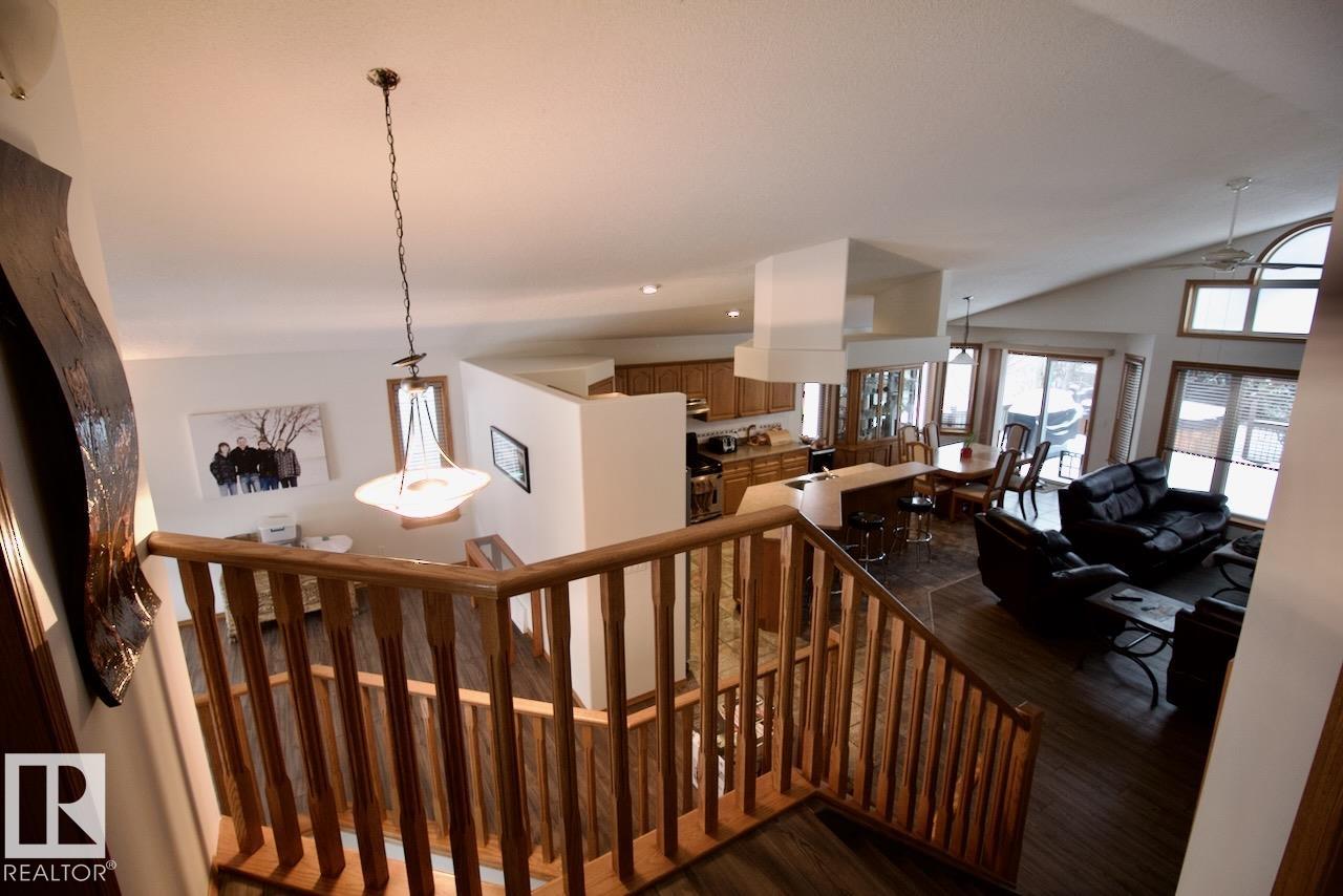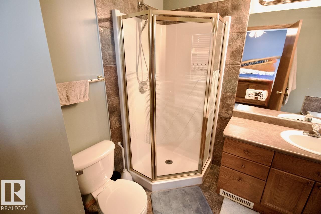 Welcome Home! Fully finished 4 bed, 3 bath bi-level in the desirable Westpark, Fort Saskatchewan. Featuring a private, treed backyard with two-tier deck, gazebo, garden shed, and hot tub. Central A/C and double attached garage included. Bright open-concept main floor with vaulted ceilings, den/flex space, spacious kitchen with island, corner pantry, and all appliances. Living room with gas fireplace and dining area with access to the deck. Main floor offers two large bedrooms and a full bath. Upper-level primary suite with walk-in closet and ensuite featuring soaker tub and stand-up shower. Finished basement includes large rec room with wet bar, fourth bedroom, full bathroom, hobby/storage room, plus laundry and utility space. Tenant pays all utilities.