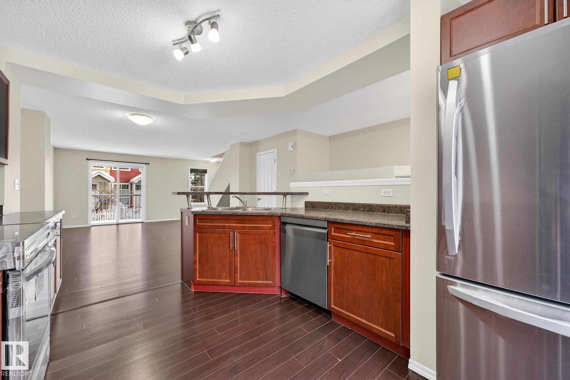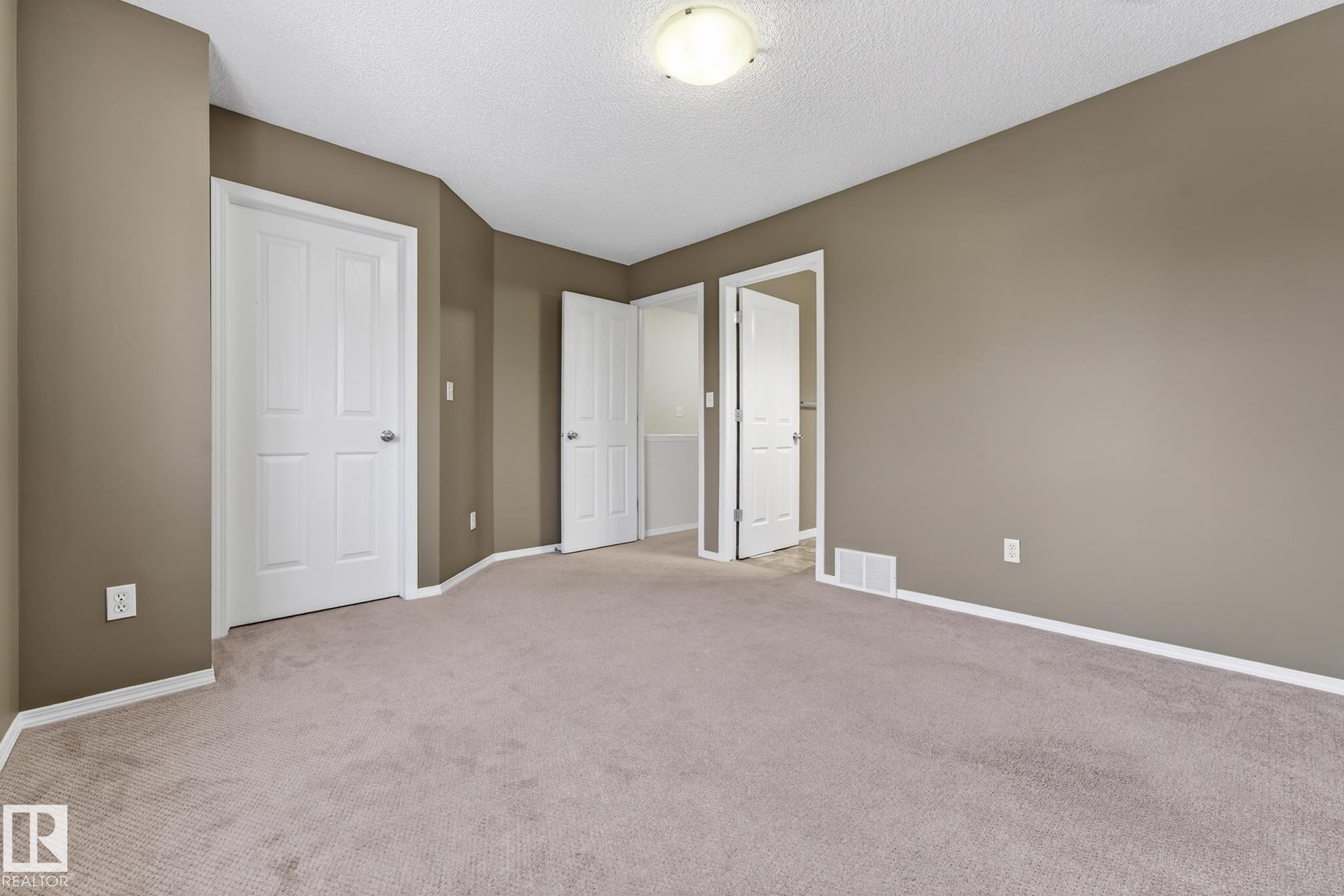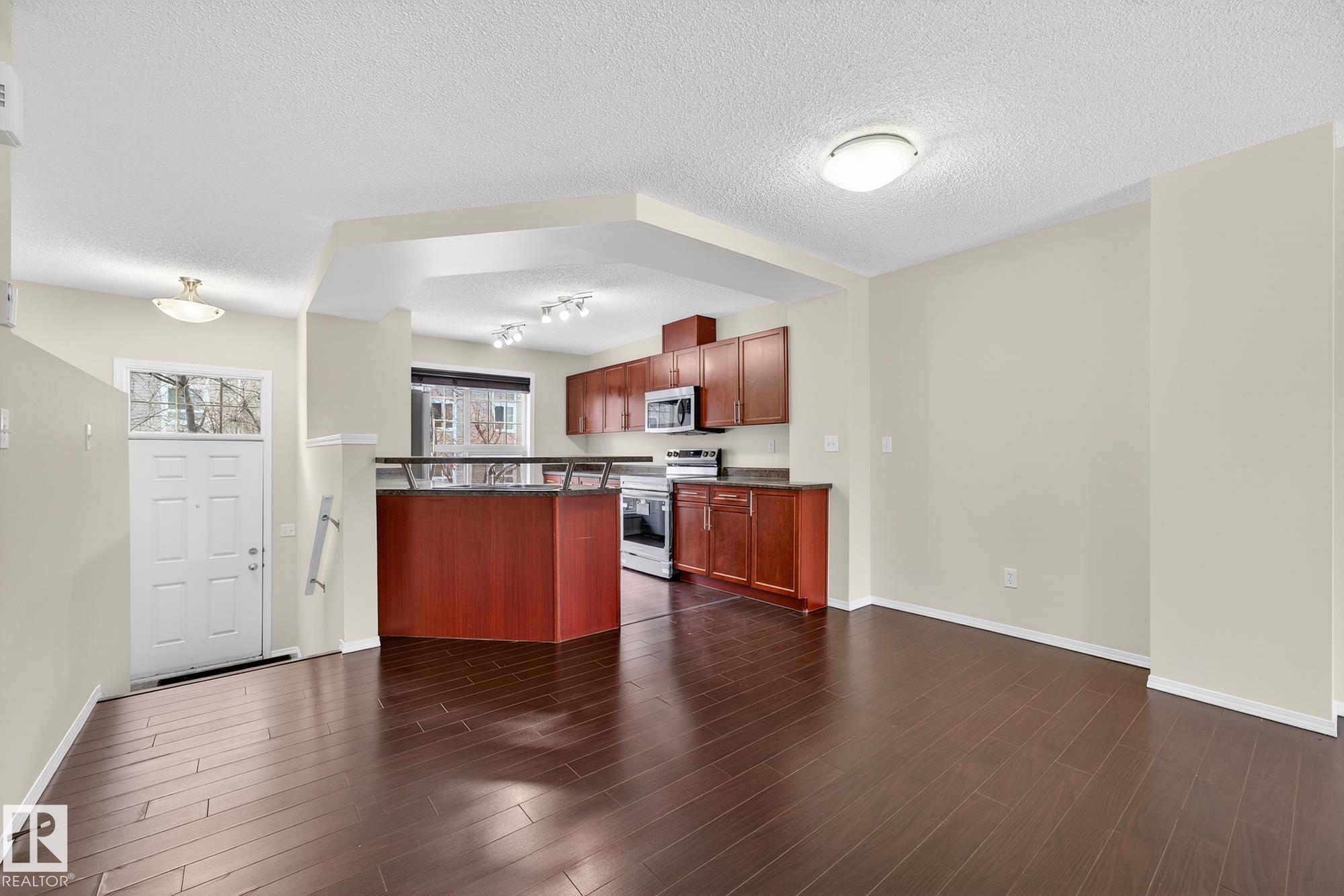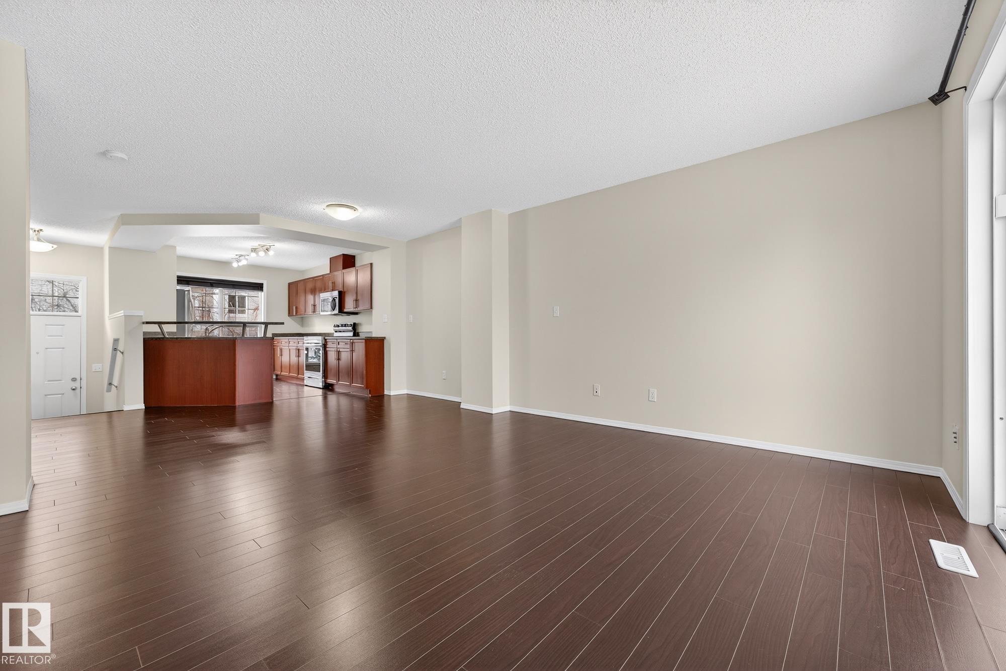**Quick possession available!** Welcome to The Hamptons at Mosaic Parkland, a fabulous location close to all amenities with easy access to major commuter routes. This bright two-storey condo offers over **1,200 sq. ft. of living space** and an **attached double garage with a new garage door**.The upper level features **two primary bedrooms**, each with **walk-in closets and 4-piece ensuites**, plus a convenient **den**. The entire unit has been **freshly painted**. The main floor includes a living room with **Juliette balcony**, **2-piece powder room with upgraded cabinetry**, dining area, and a spacious kitchen with **new stainless steel refrigerator and stove**, ample cabinetry, and generous counter space. **Hunter Douglas blinds** throughout. The **partially finished basement** offers a **mudroom, laundry area, and large storage room** with direct garage access. Enjoy this **charming neighborhood** with white picket fence.