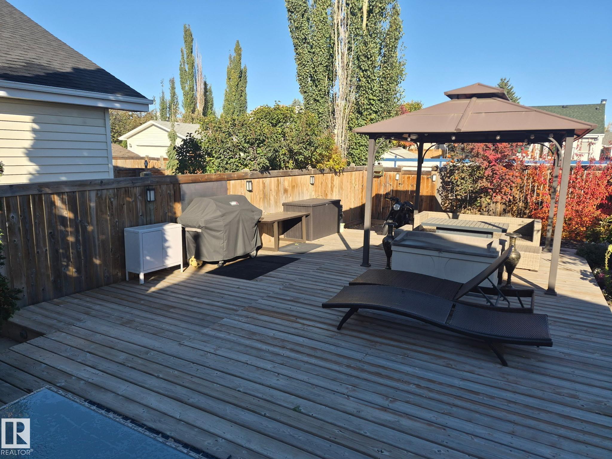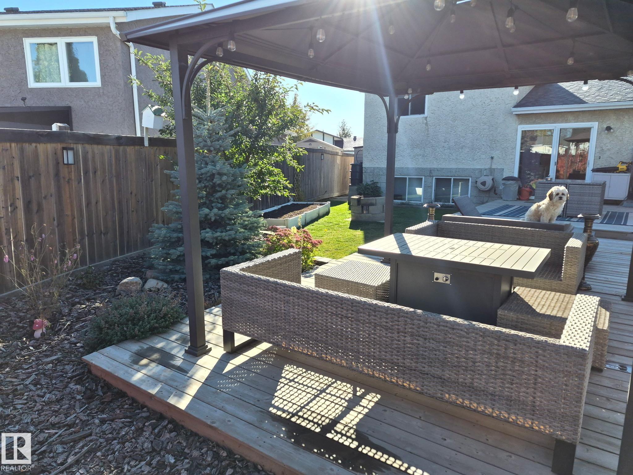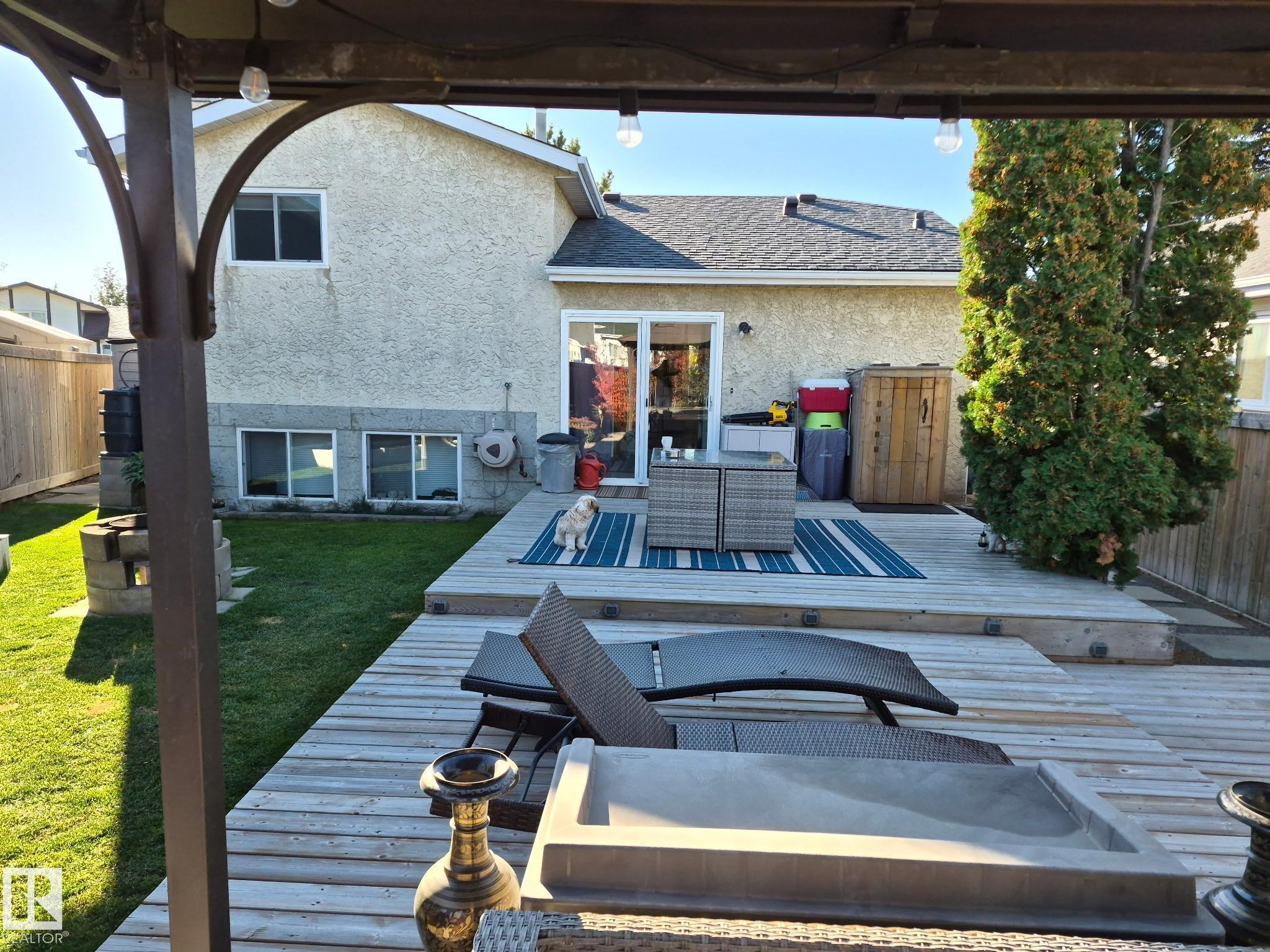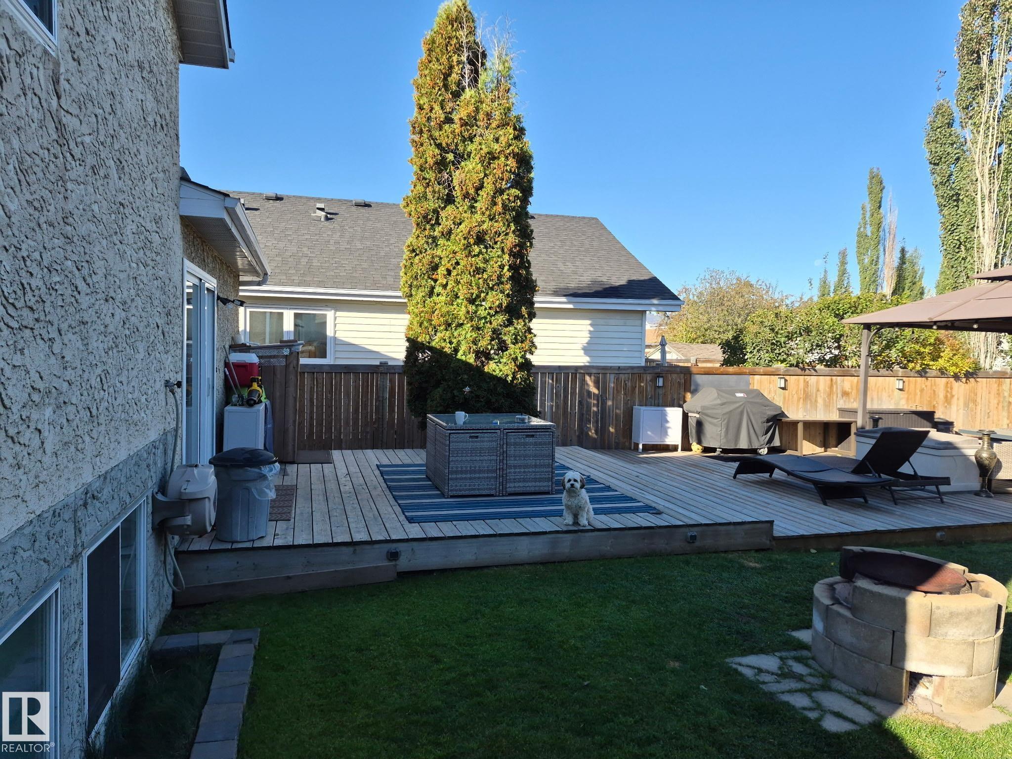Welcome to this bright and inviting 4-bed, 3-bath home, lovingly maintained with recent updates including a high-efficiency furnace, shingles, fresh appliances, vinyl windows, stylish front door and rear sliding patio doors. Enjoy central A/C, top-down window coverings, and blackout shades in the bedrooms. The kitchen shines with a well-organized pantry (roll-out shelves), built-in prep counter with mini fridge, and glass upper display cabinets. Step outside to your backyard retreat featuring a tiered deck, gazebo with bistro lighting, gas line ready for your BBQ and fire table, multiple sheds, water barrel, raised garden beds, fire pit, and mature trees. Bonus: A 20x20 garage permit was previously approved by the City of Edmonton?ideal for future expansion! Nestled in a peaceful community with unbeatable location?minutes from Lymburn Elementary, quick access to Anthony Henday and Whitemud, 5 min to YMCA, and under 10 min to West Edmonton Mall. Everything you need is right at your fingertips! 10/10!