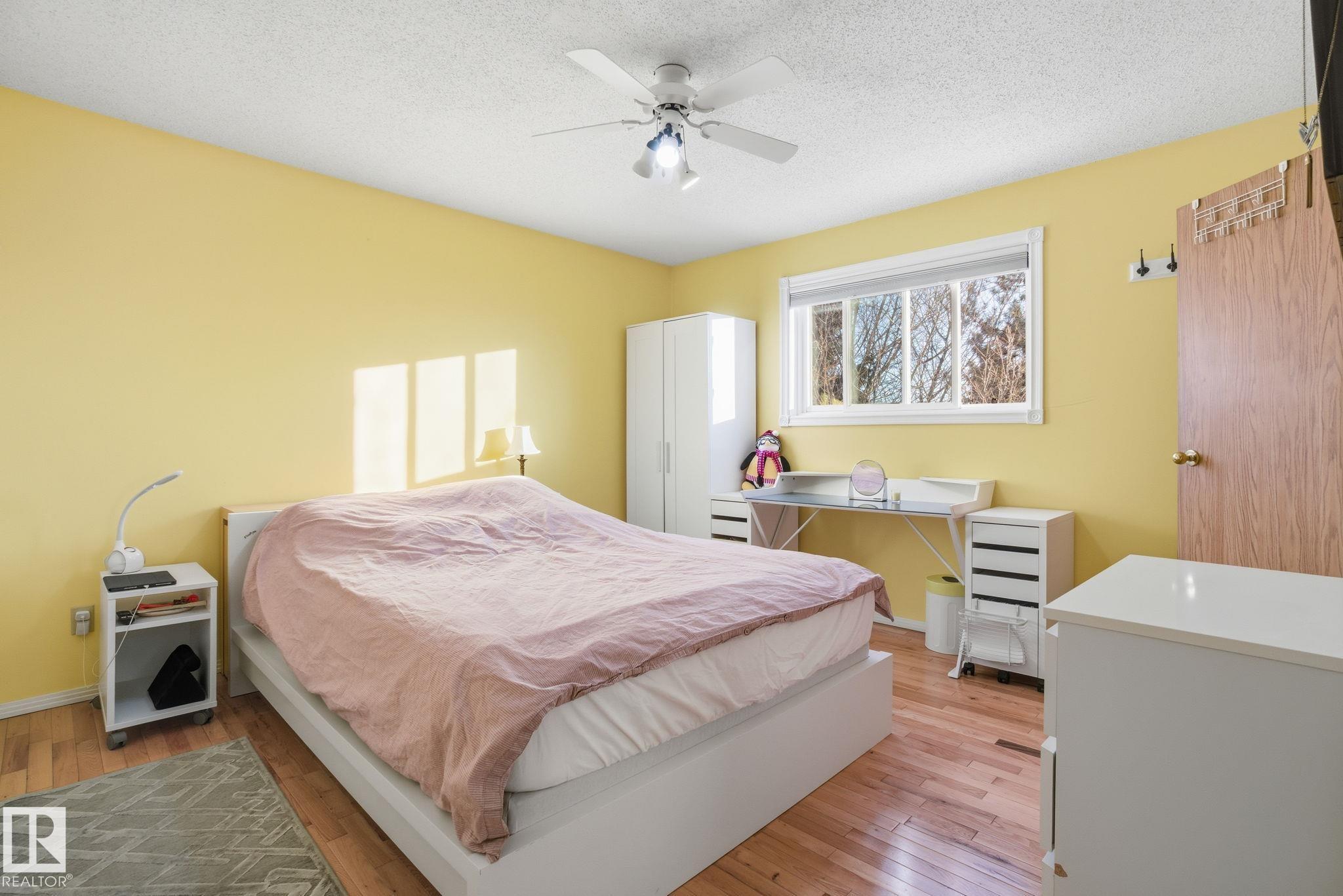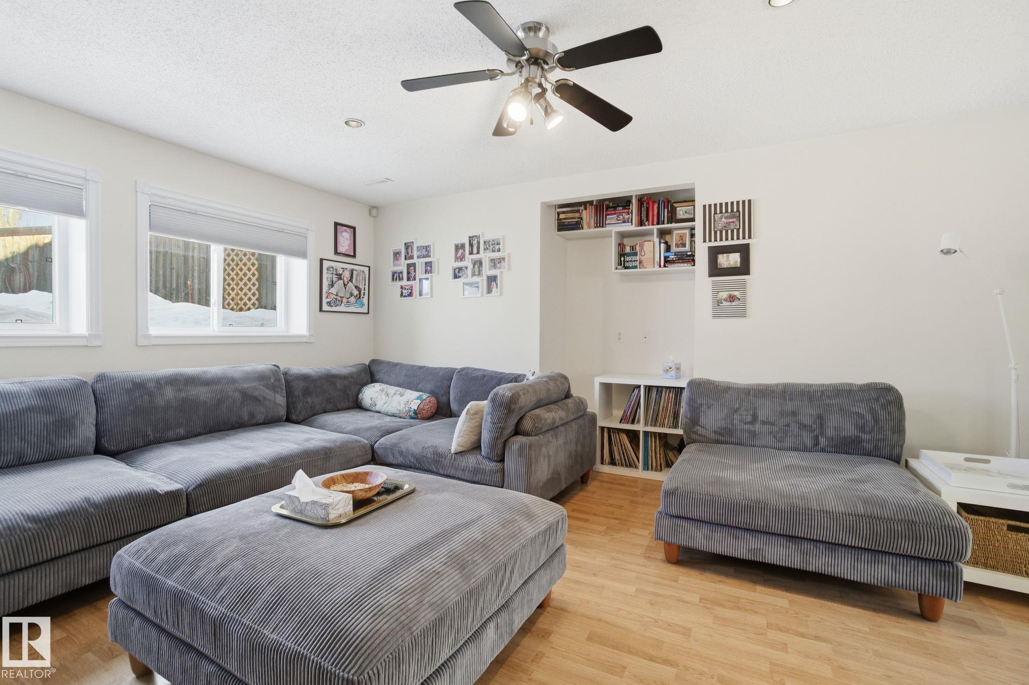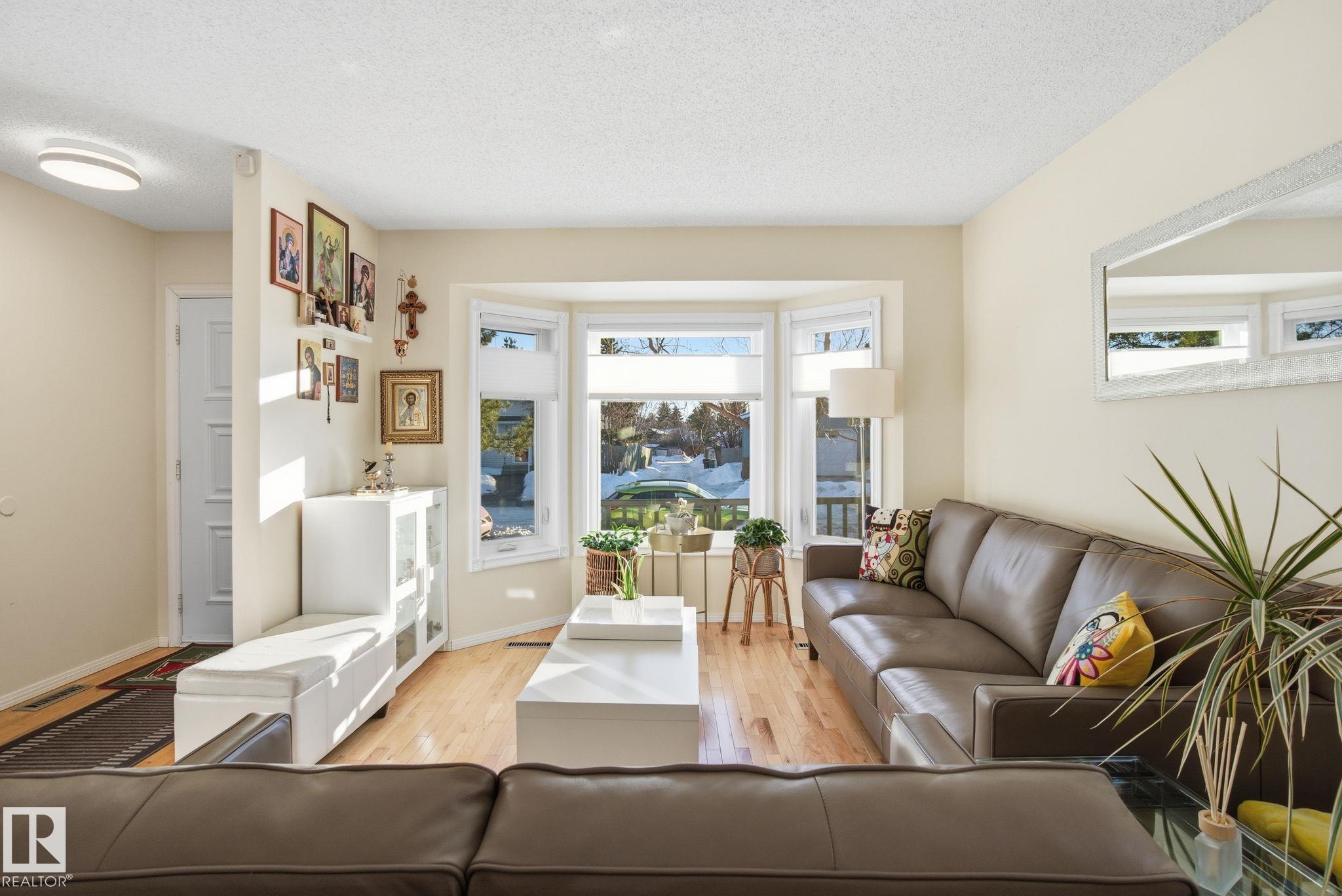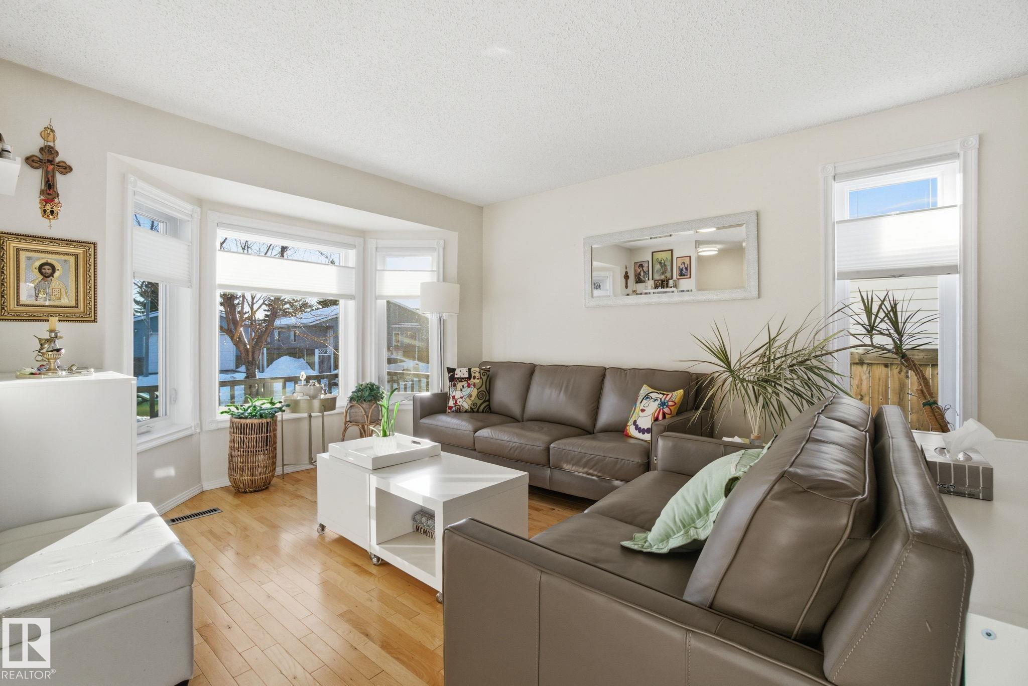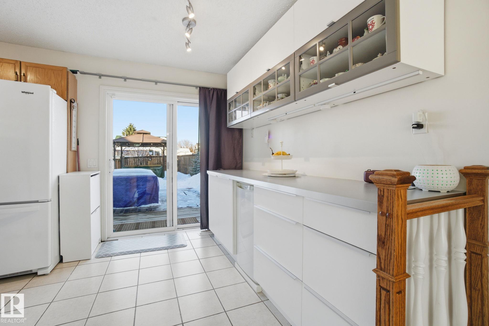 Welcome to this bright and inviting 4-bed, 3-bath home, lovingly maintained with recent updates including a high-efficiency furnace, shingles, fresh appliances, vinyl windows, stylish front door and rear sliding patio doors. Enjoy central A/C, top-down window coverings, and blackout shades in the bedrooms. The kitchen shines with a well-organized pantry (roll-out shelves), built-in prep counter with mini fridge, and glass upper display cabinets. Step outside to your backyard retreat featuring a tiered deck, gazebo with bistro lighting, gas line ready for your BBQ and fire table, multiple sheds, water barrel, raised garden beds, fire pit, and mature trees. Bonus: A 20x20 garage permit was previously approved by the City of Edmonton?ideal for future expansion! Nestled in a peaceful community with unbeatable location?minutes from Lymburn Elementary, quick access to Anthony Henday and Whitemud, 5 min to YMCA, and under 10 min to West Edmonton Mall. Everything you need is right at your fingertips! 10/10!