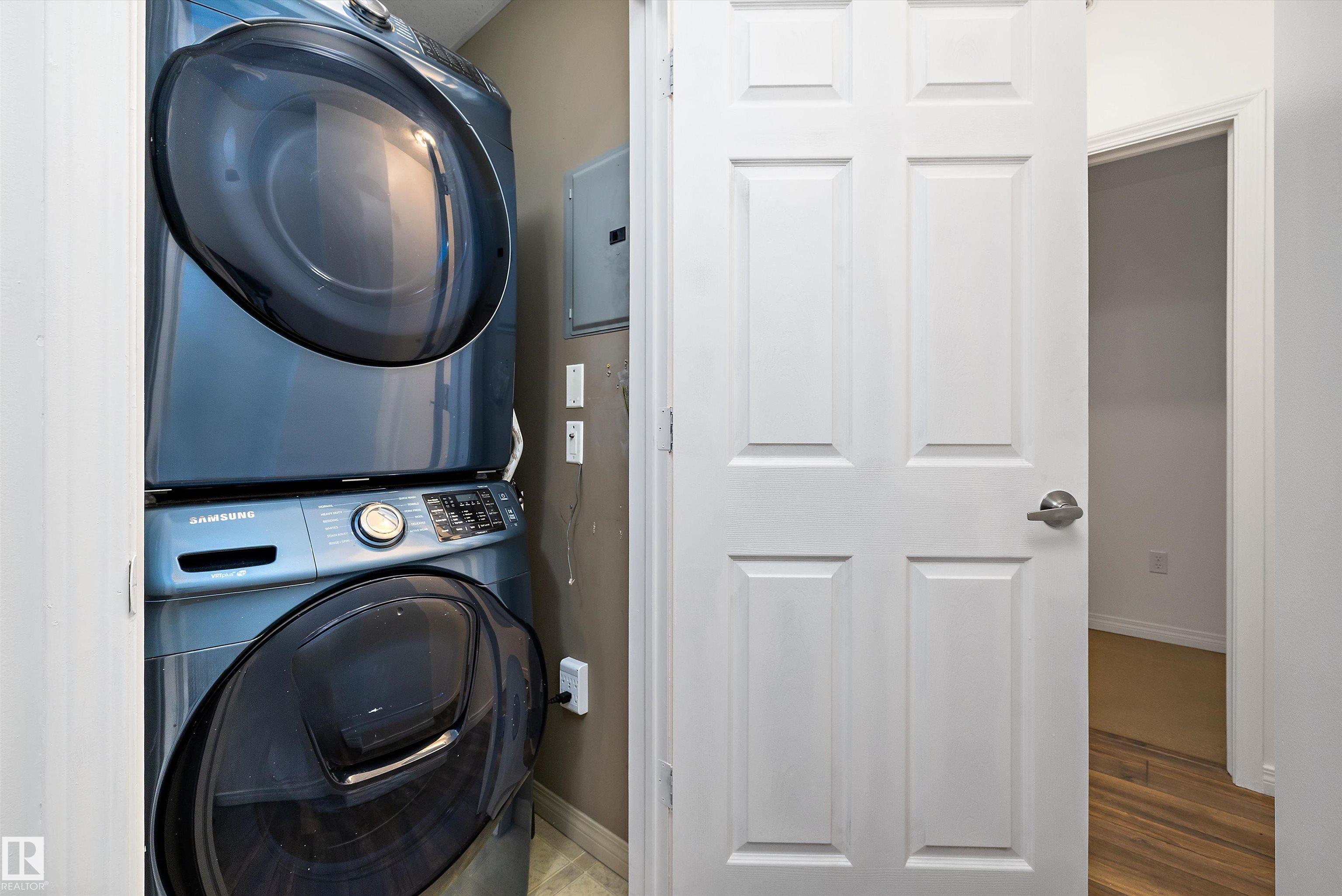 1st time buyers & investors DON'T miss out on this one! This chic condo is perfectly located close to the LRT, shopping and main commuter routes AND is in a fully concrete structure; this means less sound transfer and MORE PRIVACY! The cherry on top is you get a rare 2 underground parking stalls AND the condo fee includes all utilities for stress free budgeting. Recent updates include vinyl plank flooring, fresh paint, and full sized stackable washer and dryer in-suite. This property is spacious with 9' ceilings, open concept living, 2 beds and 2 bedrooms. Get yourself moved in!