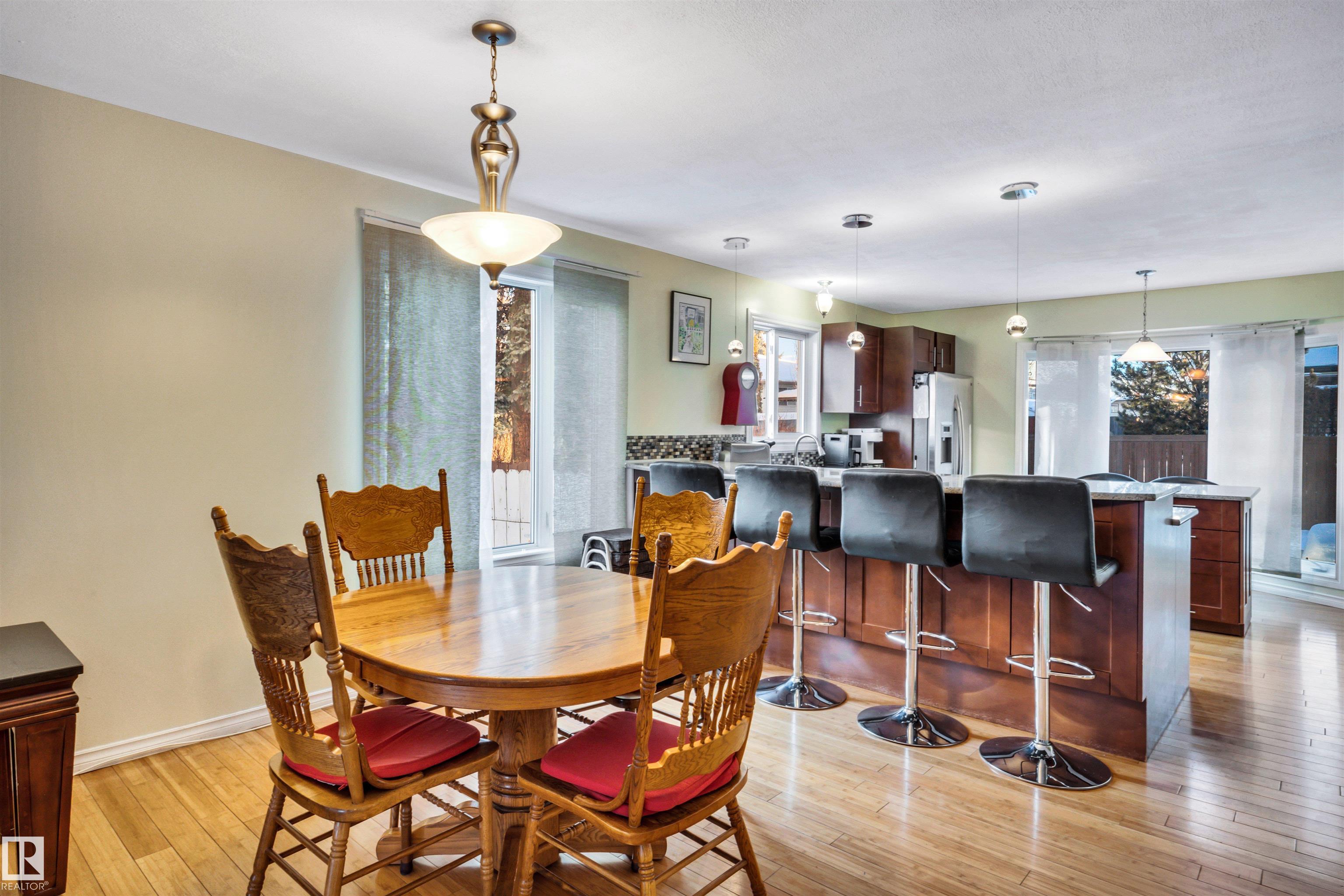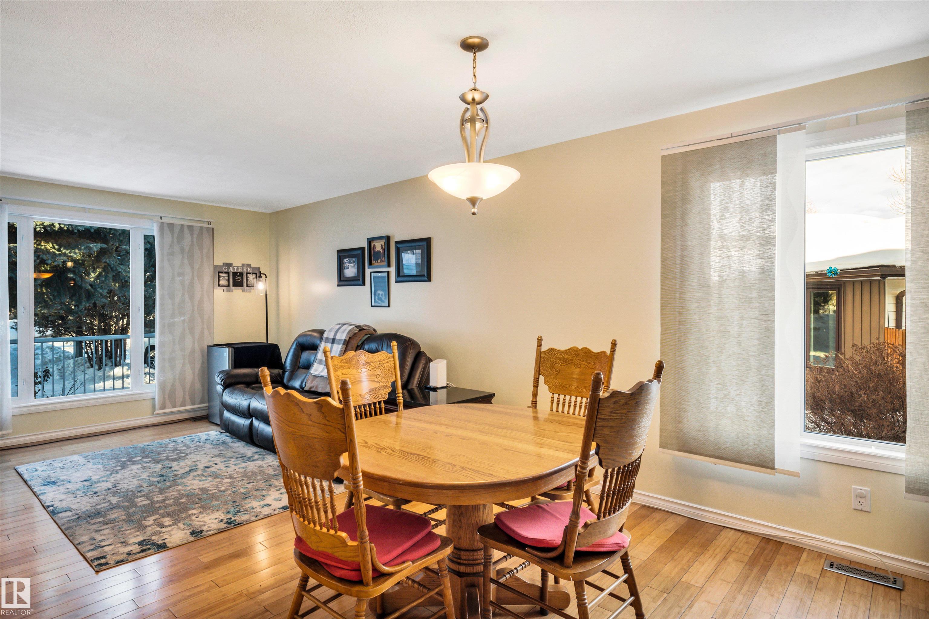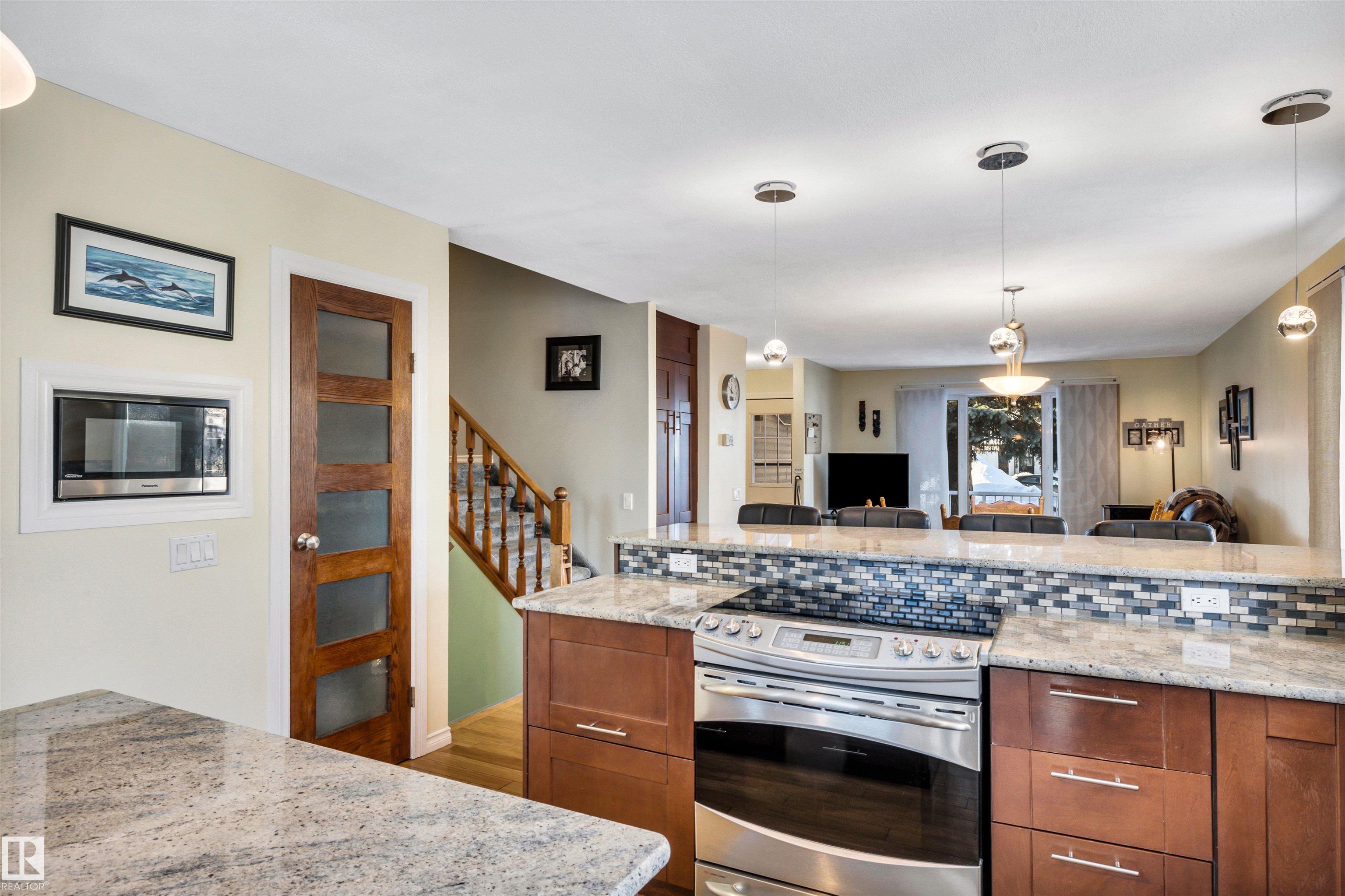 Family Home with 2400sqft of living space! Nestled in a private keyhole crescent this 4 level split boasts 5 Bedrooms, 3 FULL bathrooms and renovations throughout! The open concept main floor boasts a stunning kitchen with warm dark cabinets, GRANITE countertops, an extended eating bar with seating for 4 and island providing plenty of room for preparing family meals, open to the dining area and living room, hardwood flows throughout this level, upper offers 3 very good sized bedrooms, primary with FULL 4 piece bath, 3rd level with additional 2 bedrooms, family room, bathroom and laundry, 4th level nicely developed with den (was used as a bedroom, window not egress) & ANOTHER family room! Updates include full kitchen renovation, 3 updated bathrooms (flooring/granite) siding, vinyl windows, insulation, hot water tank and upper floor laminate. Central A/C, central Vac and water softener complete the package. Close to all major amenities, connecting routes and transit. Shows great!