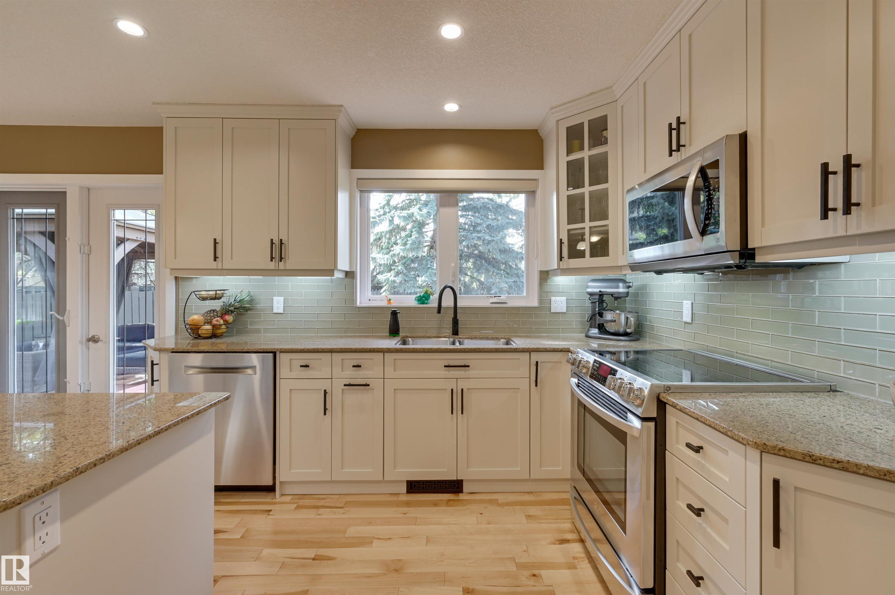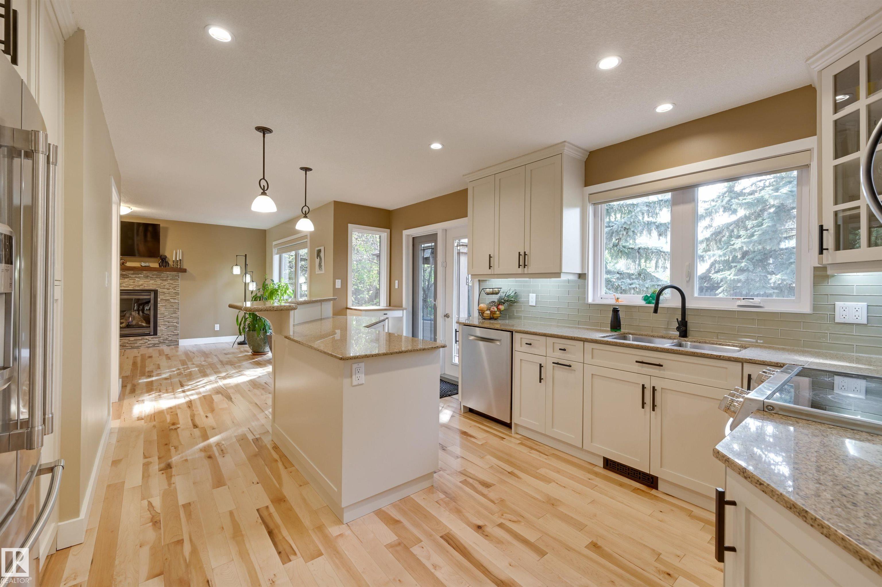 West Coast style on a MASSIVE LOT in a quiet cul-de-sac! This BEAUTIFULLY UGDRADED 2-storey offers 4+1 bedrooms, 3.5 baths, and a layout designed for both comfort and entertaining. The main level features a welcoming living room with stone-faced fireplace and WOOD CLAD VAULTED CEILING flowing into a spacious dining area w/views of the deck and yard. The modern renovated kitchen includes a walk-through pantry to the laundry/mudroom, while the cozy family room with gas fireplace adds the perfect gathering space. Upstairs, the EXPANSIVE PRIMARY SUITE boasts a spa-inspired ensuite and PRIVATE BALCONY, complemented by three additional bedrooms, a fully renovated bath, and a bright office. Fully renovated basement offers a large recreation space, gym/bedroom, and full bathroom, extending the home?s versatility. Outdoors, the massive yard features a LARGE DECK, GAZEBO, and SPORT COURT for relaxation and play. A double attached garage, A/C, ETHERNET, and prime cul-de-sac location complete this exceptional home.