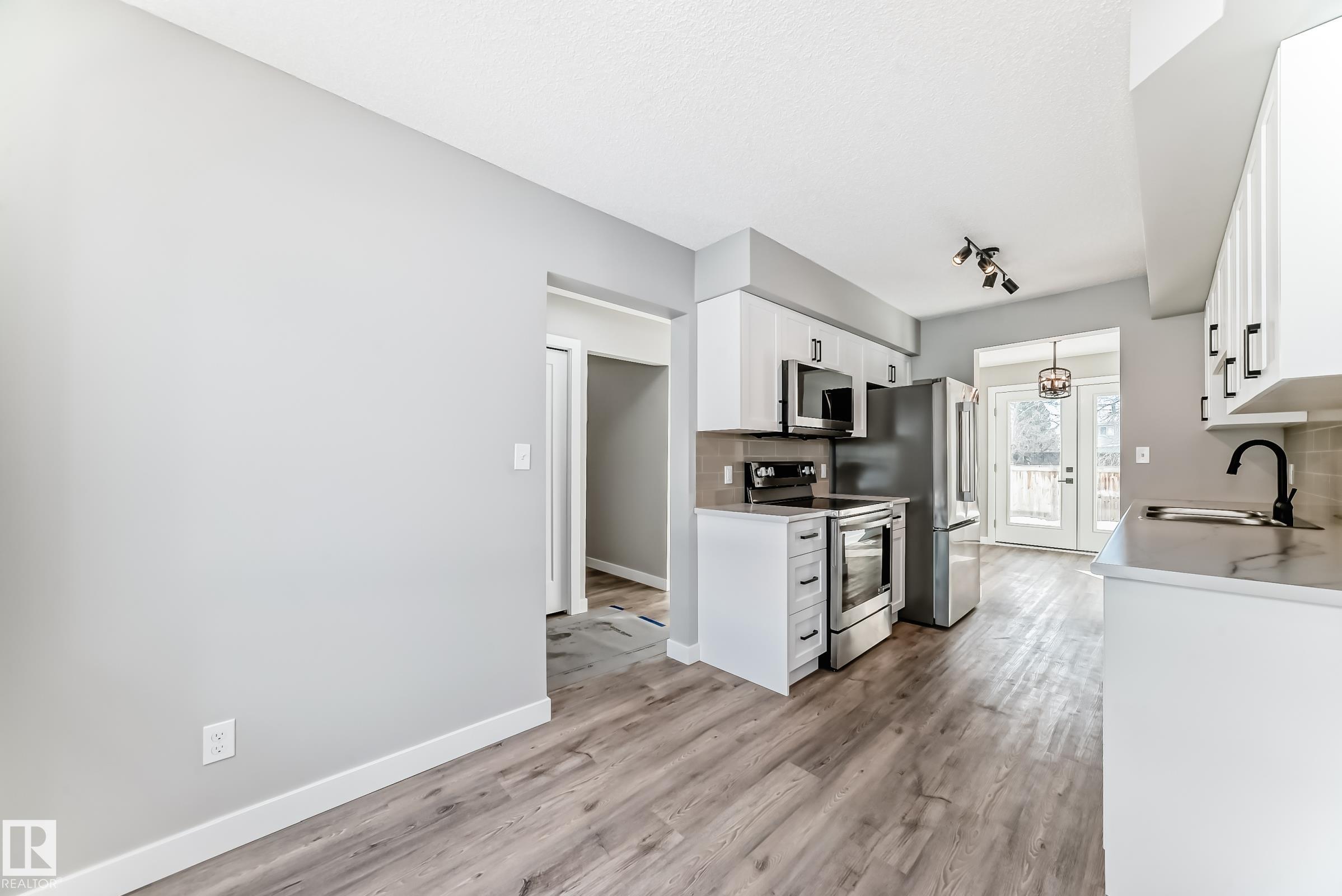 WELCOME HOME! This 3-bedroom townhome with a single attached garage, nestled on a quite cult-de-sac in the sought after phase 3 of Grandin Village, is brand new from the bottom up. The main floor boasts a spacious living room, a brand new eat-in kitchen with all new appliances and plumbing and a large dining room, a 2pc washroom completes this level. Upstairs features two very spacious bedrooms, a 4pc main bathroom and a generous sized primary bedroom with walk-in closet and 2pc ensuite. The basement is unfinished with framing completed and ready to add your own touch. The fully fenced private backyard with large deck completes this amazing peace of mind home purchase. This home has been completely renovated: Brand new appliances, kitchen, bathrooms, shingles, Furnace, and Hwt tank, electrical, plumbing, flooring, baseboards, and doors. This must-see home will not last.