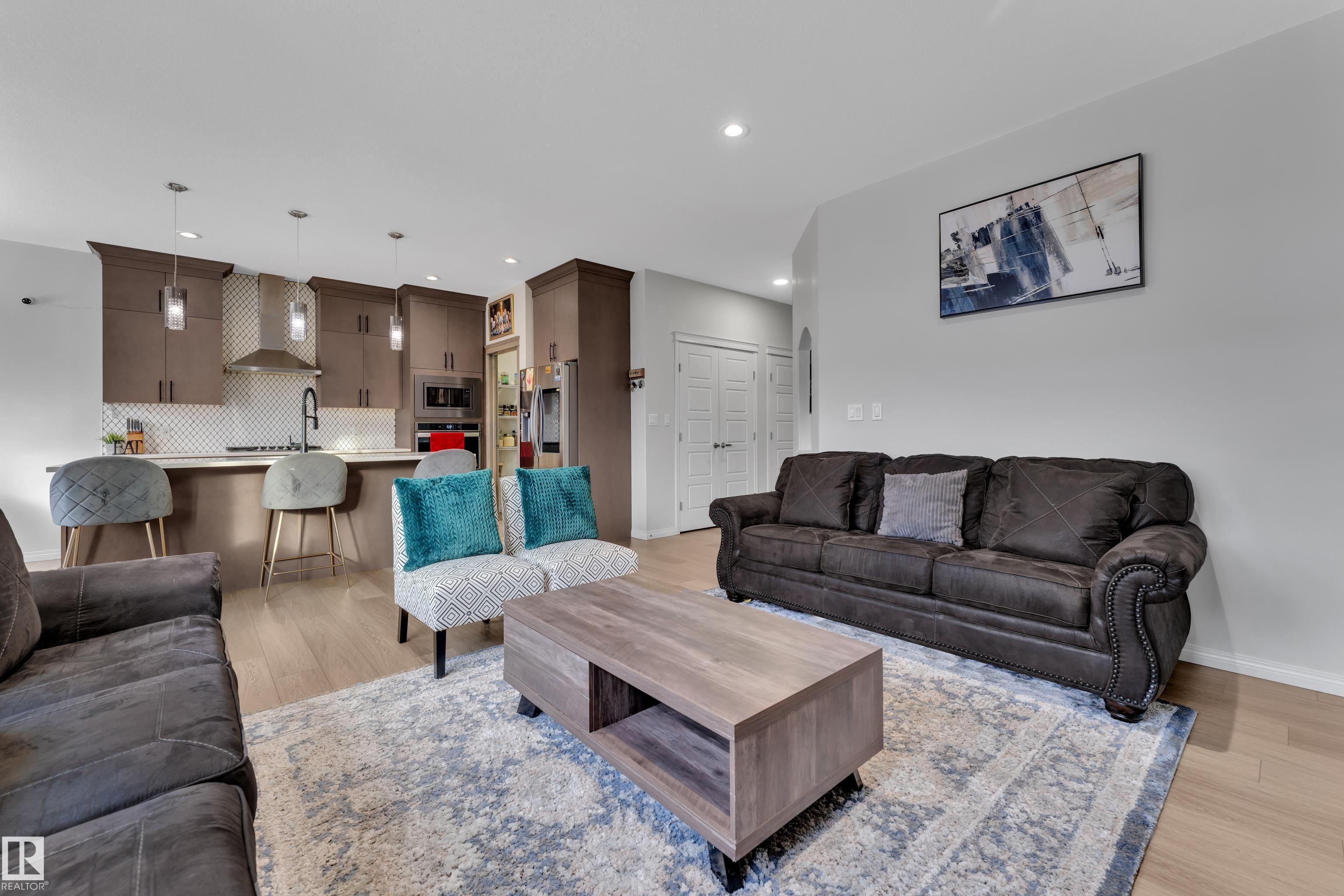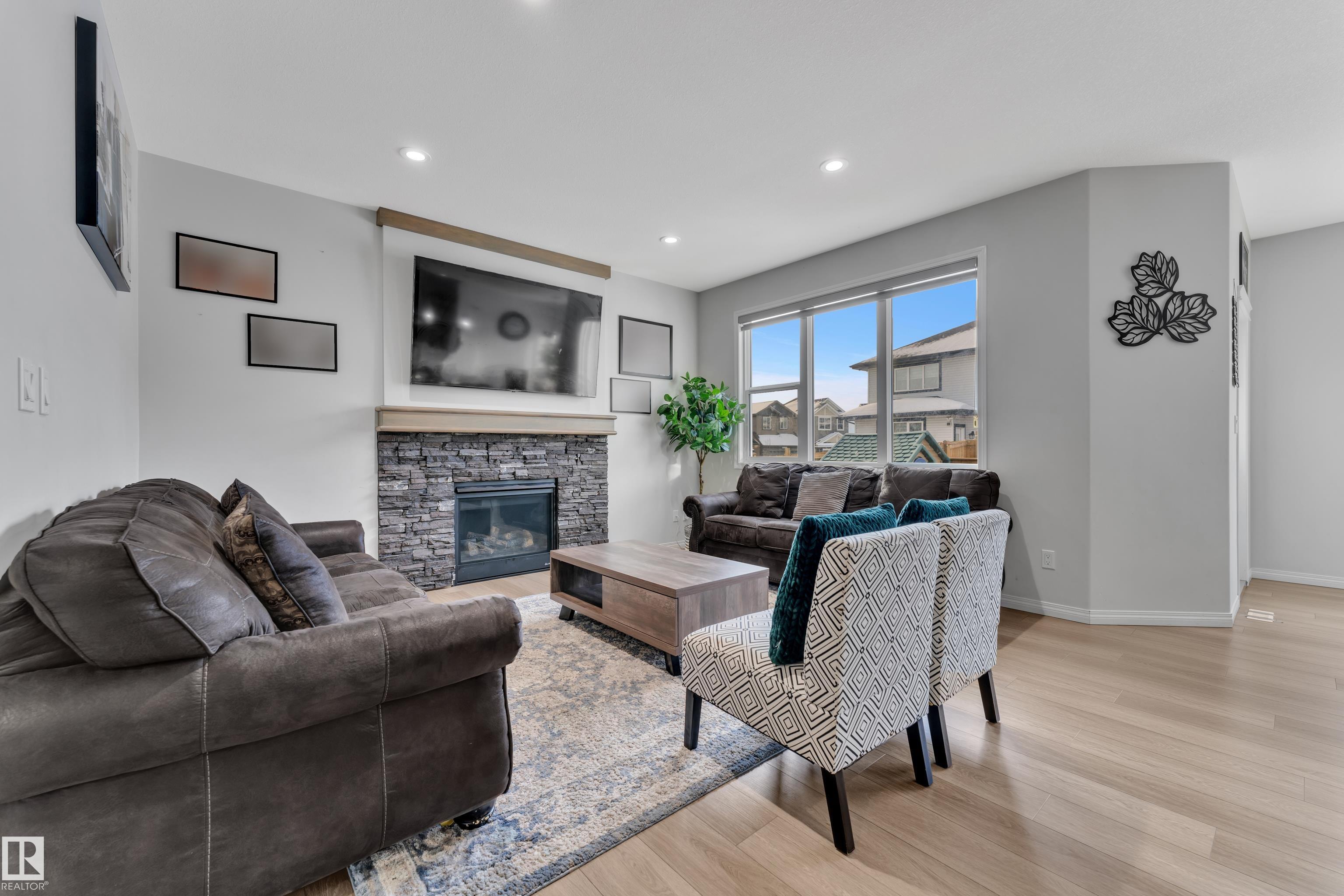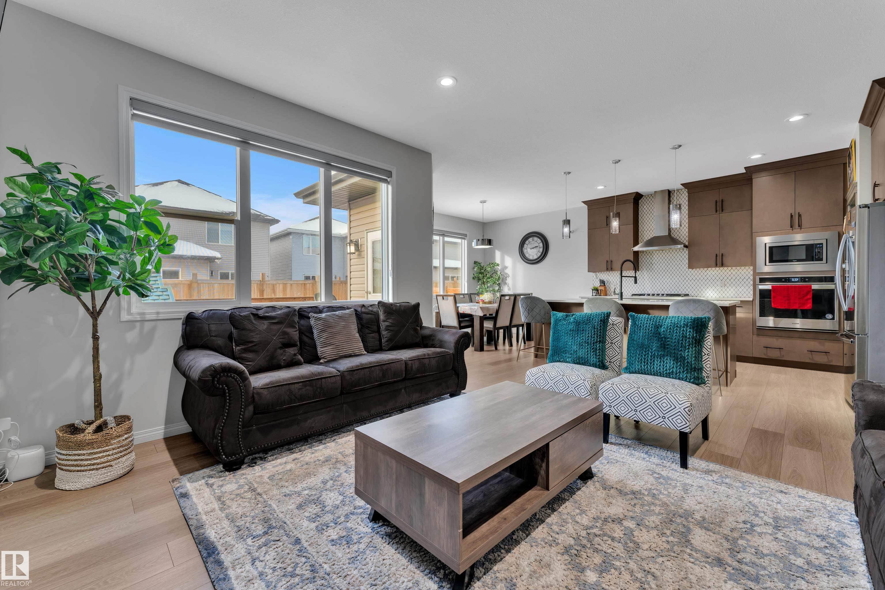 Located in the sought-after Walker community, this well-appointed 2-storey home offers over 3000 sq. ft. of living space and is ideally situated across from a scenic pond. The home features a striking open-to-above foyer, a bright main living area with a fireplace, and a functional kitchen with ample storage. Upstairs includes a spacious bonus room, a primary suite with a 5-piece ensuite, and two additional bedrooms with a common bathroom. The fully finished basement offers additional 2-bedroom with a separate entrance, kitchen, and living area, ideal for extended family. Complete with a double attached garage and close to schools and amenities, this home offers space, comfort, and versatility.