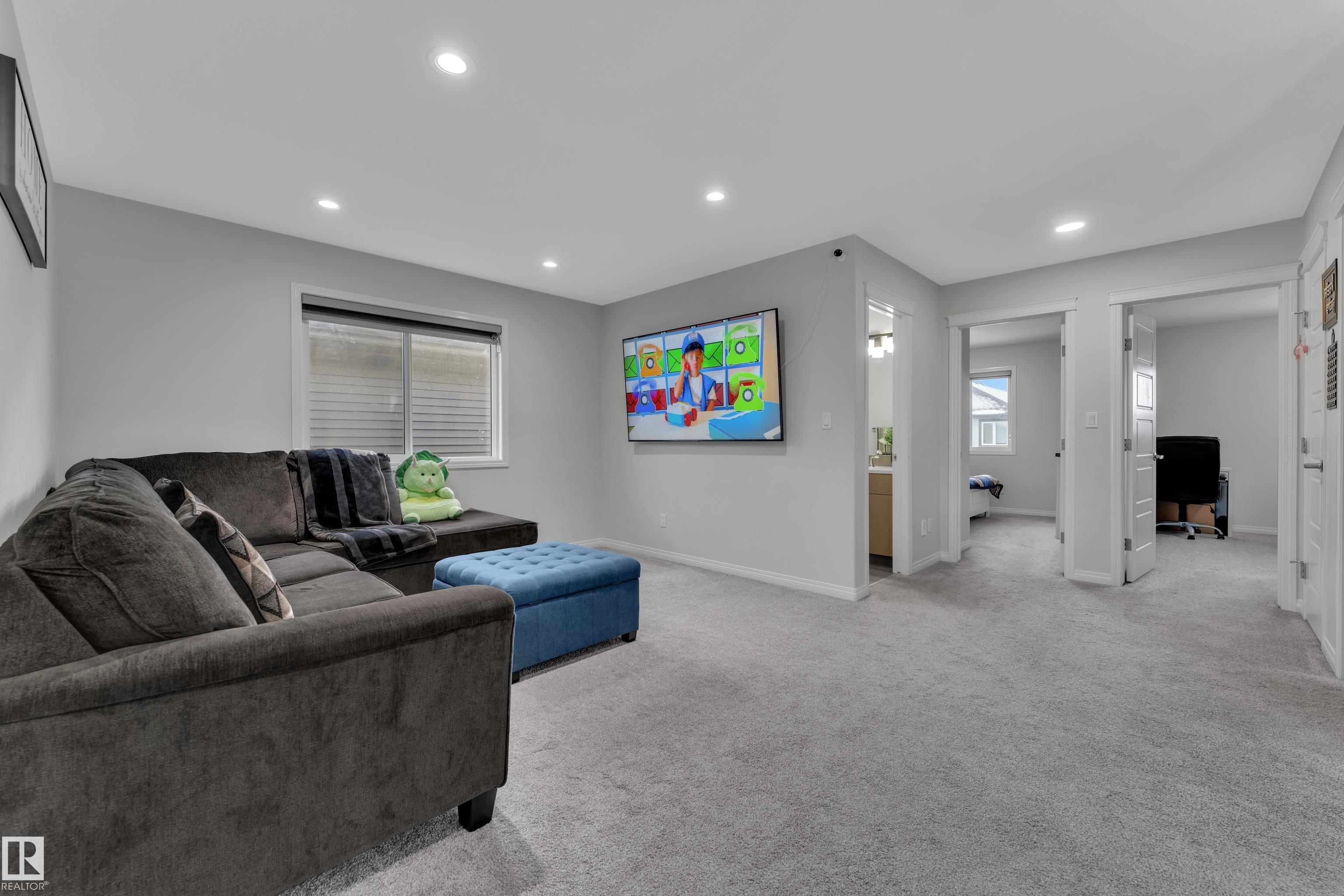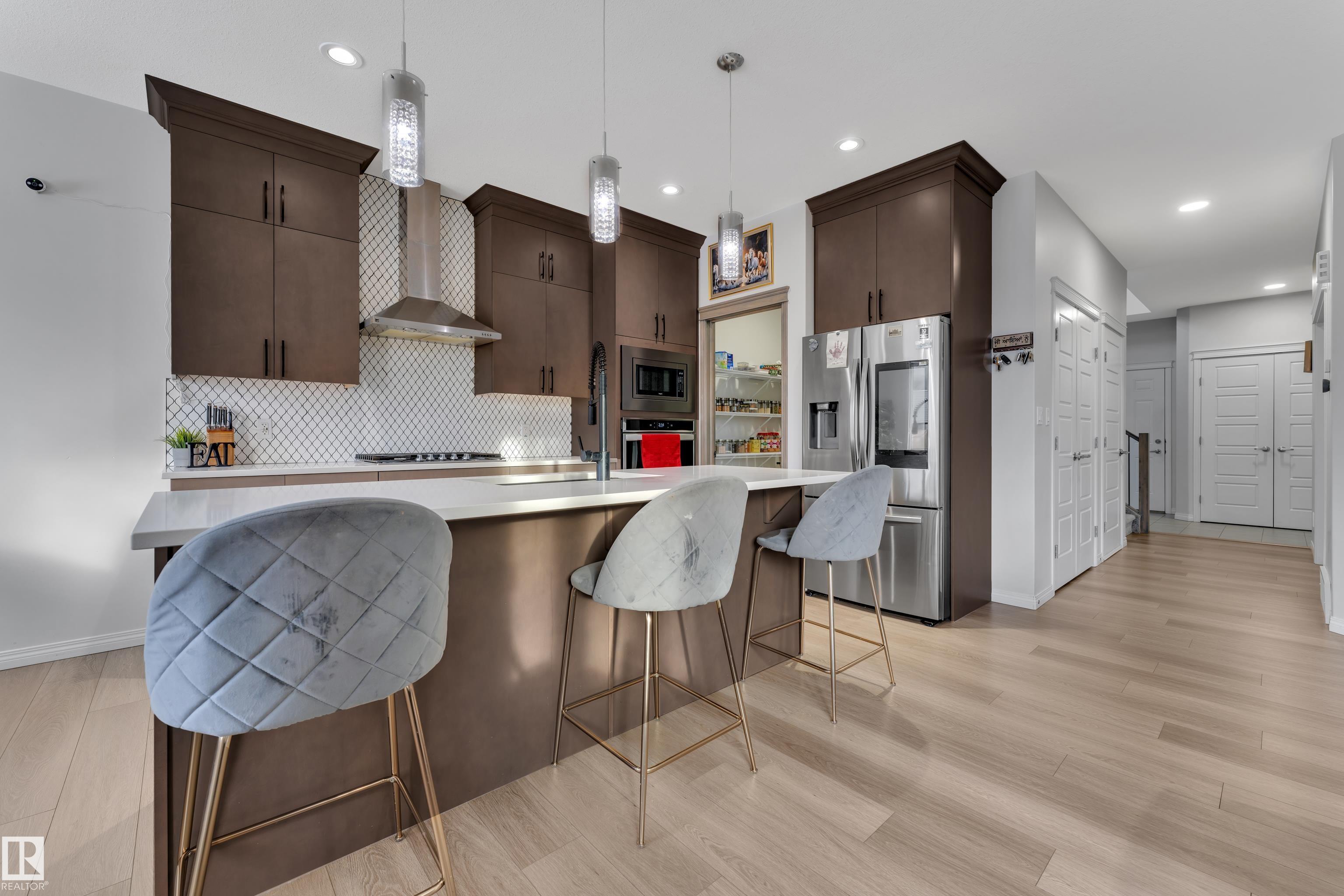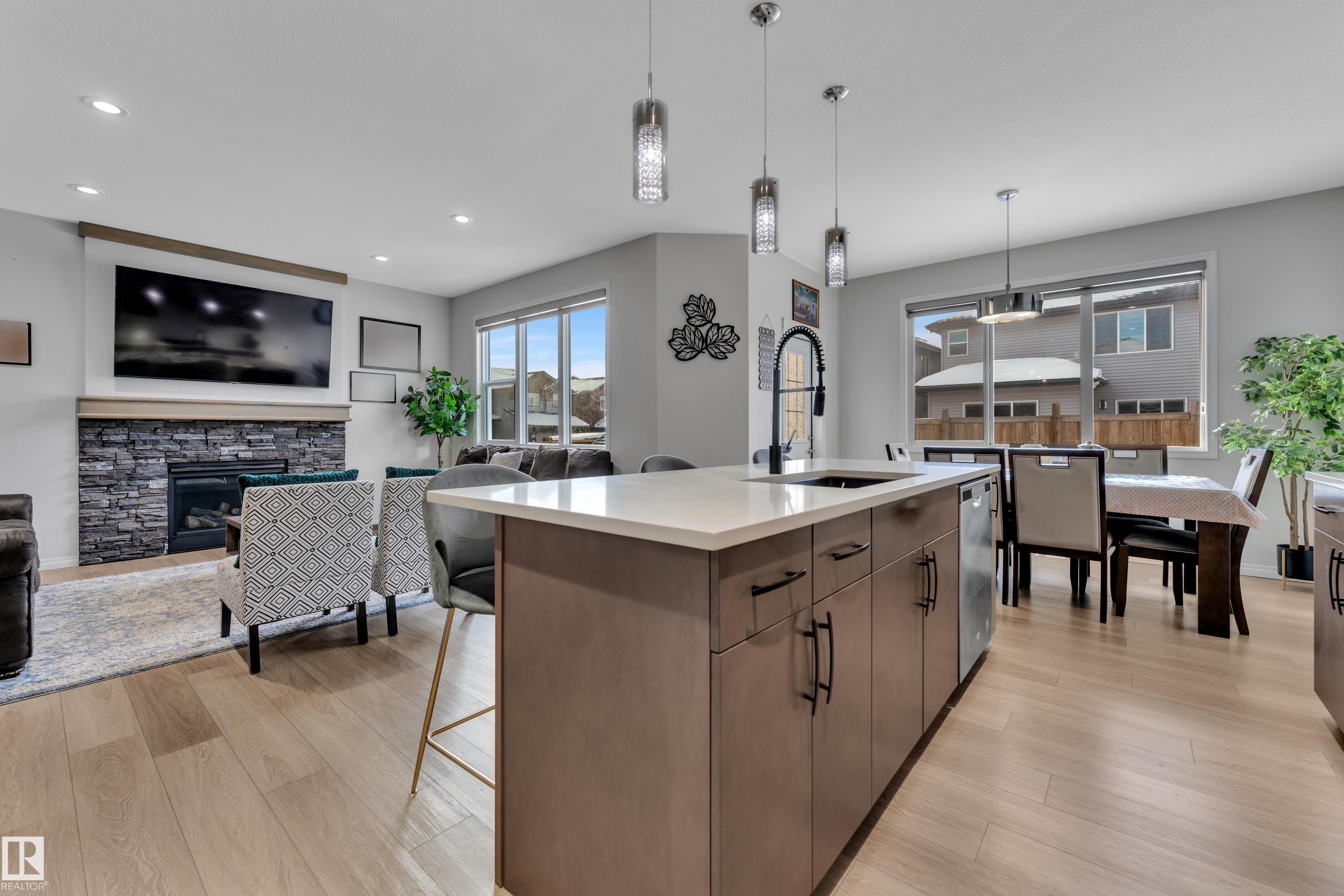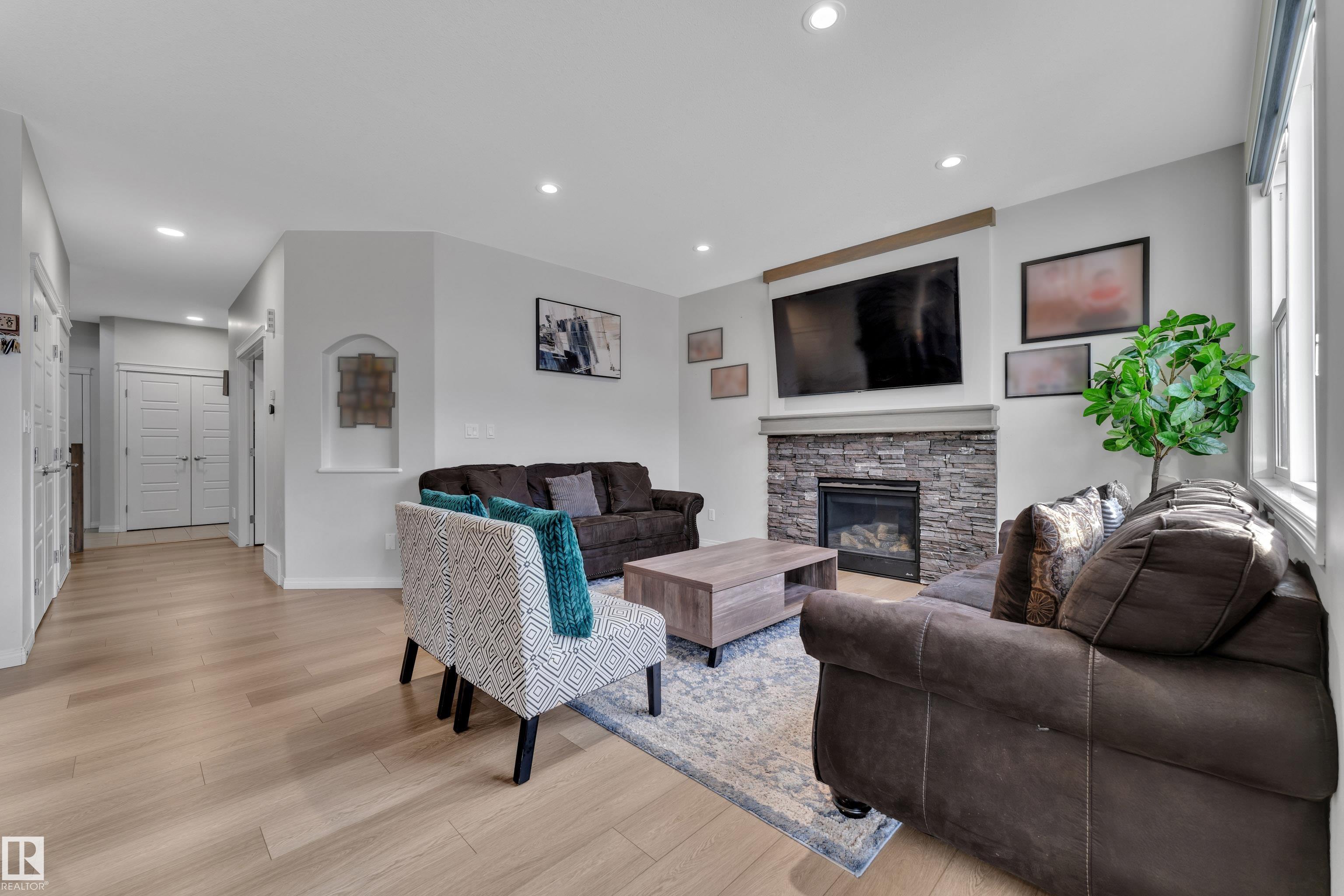 Located in the sought-after Walker community, this well-appointed 2-storey home offers over 3000 sq. ft. of living space and is ideally situated across from a scenic pond. The home features a striking open-to-above foyer, a bright main living area with a fireplace, and a functional kitchen with ample storage. Upstairs includes a spacious bonus room, a primary suite with a 5-piece ensuite, and two additional bedrooms with a common bathroom. The fully finished basement offers additional 2-bedroom with a separate entrance, kitchen, and living area, ideal for extended family. Complete with a double attached garage and close to schools and amenities, this home offers space, comfort, and versatility.