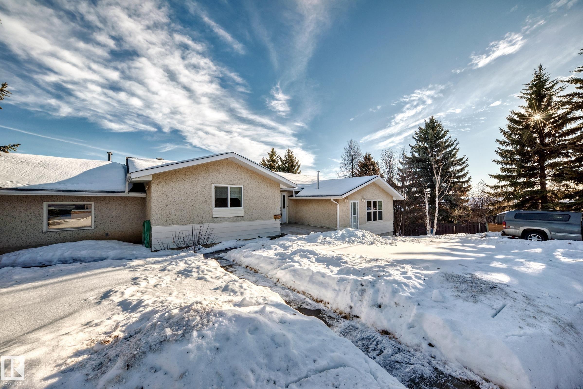 Endless possibilities await with this exceptional hillside walkout bungalow featuring a legal suite in the heart of Lacombe. Thoughtfully designed for flexibility, both the upper and lower levels offer separate entrances, driveways, and municipal addresses, creating an ideal arrangement for multi-generational living, or generating rental income. The main level spans an impressive 1,942 sq ft, featuring an open layout with 4 bedrooms the primary with a 5 pc ensuite! The family room opens onto a private balcony, providing the perfect spot to enjoy your morning coffee. Downstairs, the walkout suite features a kitchen, living room, bedroom, bathroom and plenty of storage. Car enthusiasts will appreciate the huge 25' x 29' garage, complete with gas, power, and a chimney already in place for a future heater. Situated in a mature, scenic neighborhood close to shopping, parks, bus routes and everyday amenities, this St. Albert property delivers space, versatility, and long-term value?an outstanding opportunity!