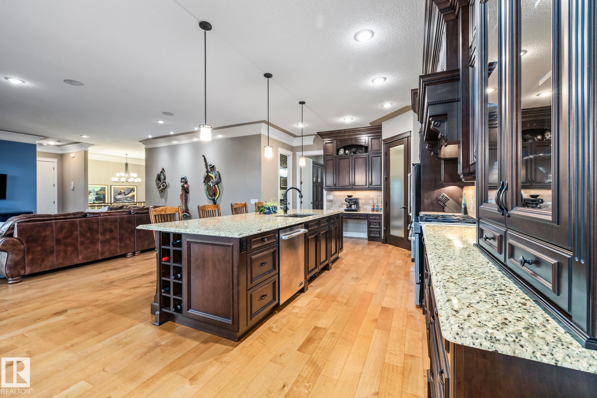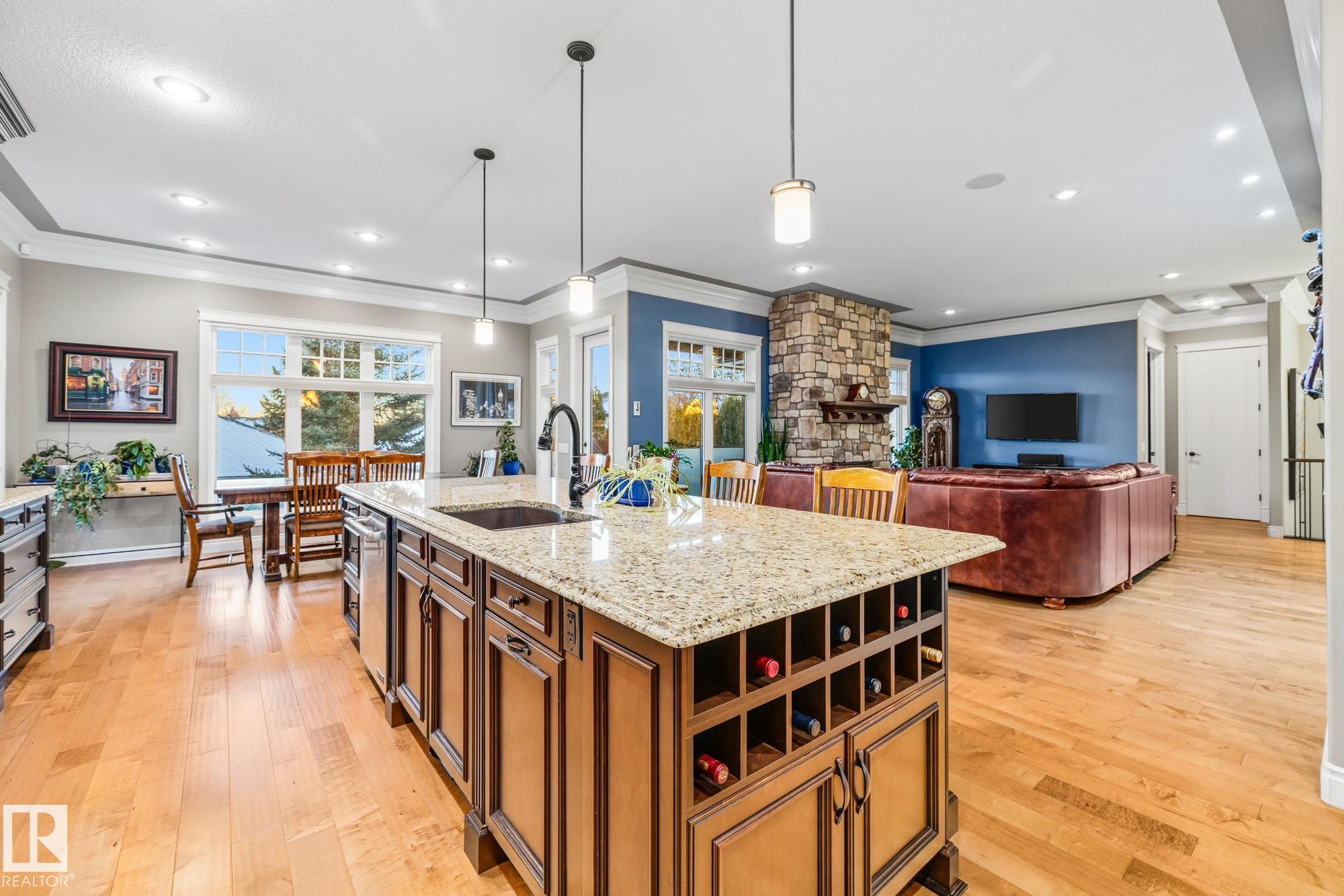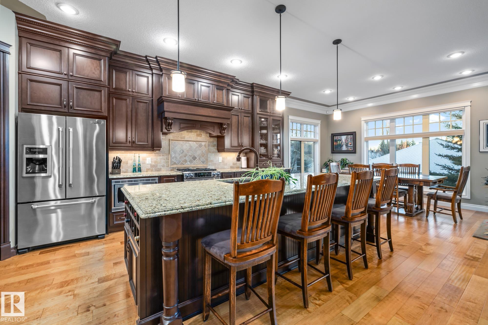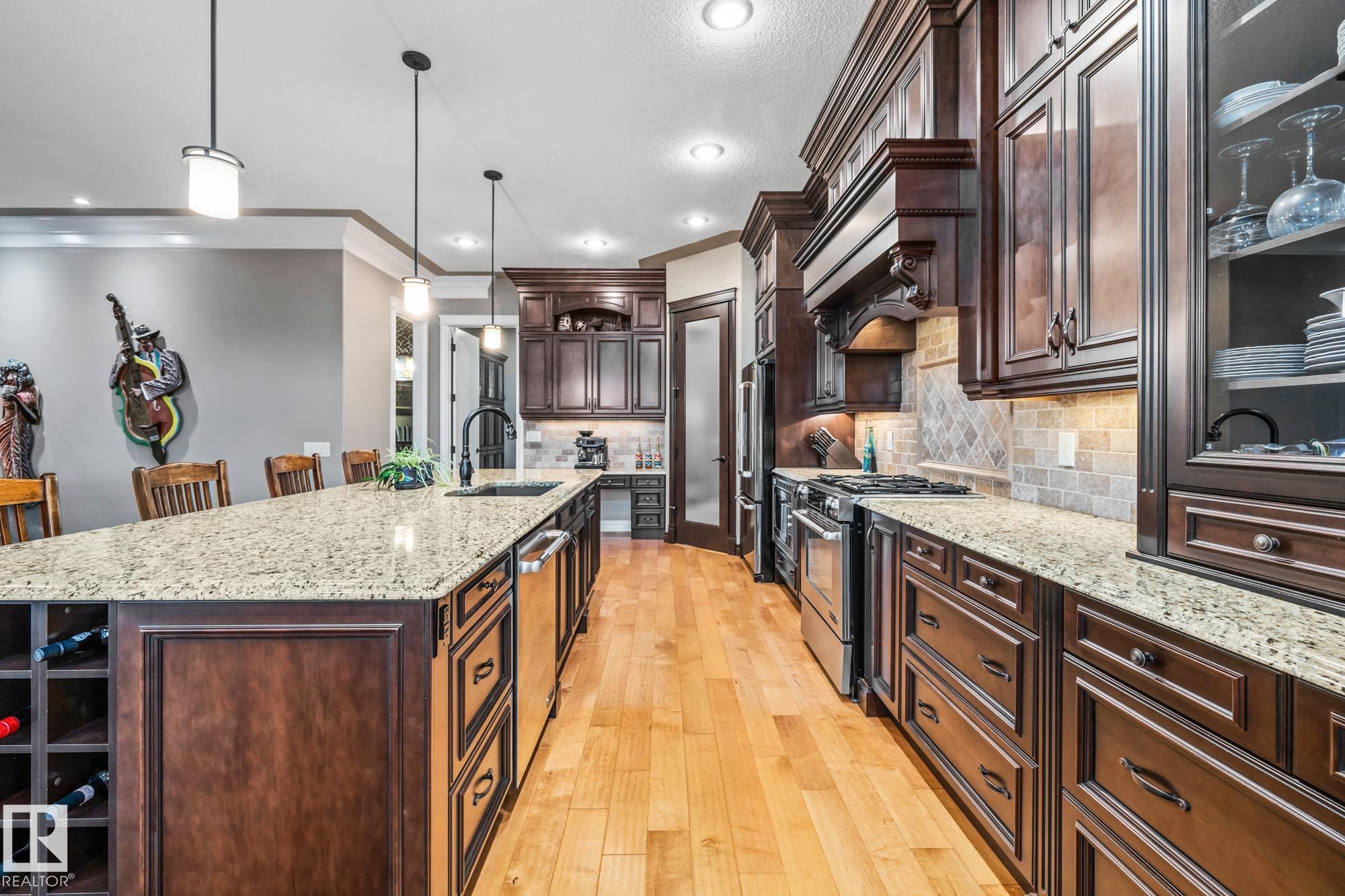 An executive walkout bungalow with a rare car lift allowing parking for 3 vehicles sets this custom-built home apart in prestigious Kingswood. An oversized driveway pad offers generous space for additional vehicles, guests or toys. With 4,440 sq ft of living space, this home features 5 bedrooms and 3.5 baths designed for entertaining & everyday comfort. The main level showcases 10 ft ceilings, travertine tile, scraped hardwood floors, coffered detailing and a full stone fireplace. The chef?s kitchen includes JennAir appliances, granite countertops, a large island, custom cabinetry and a walk-through pantry connecting to an oversized mudroom + den. The private primary suite offers a walk-in closet and spa-inspired ensuite w/ heated floors, dual sinks, jetted tub and double steam shower. The walkout basement features heated floors, a wet bar, additional bedrooms, 2 full baths and a temperature-controlled wine cellar. Low-maintenance landscaping completes this impressive property that truly seen in person.