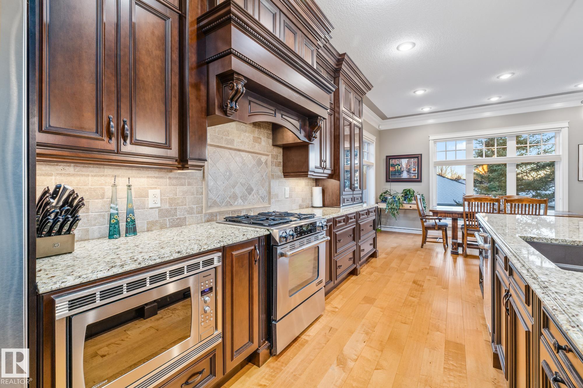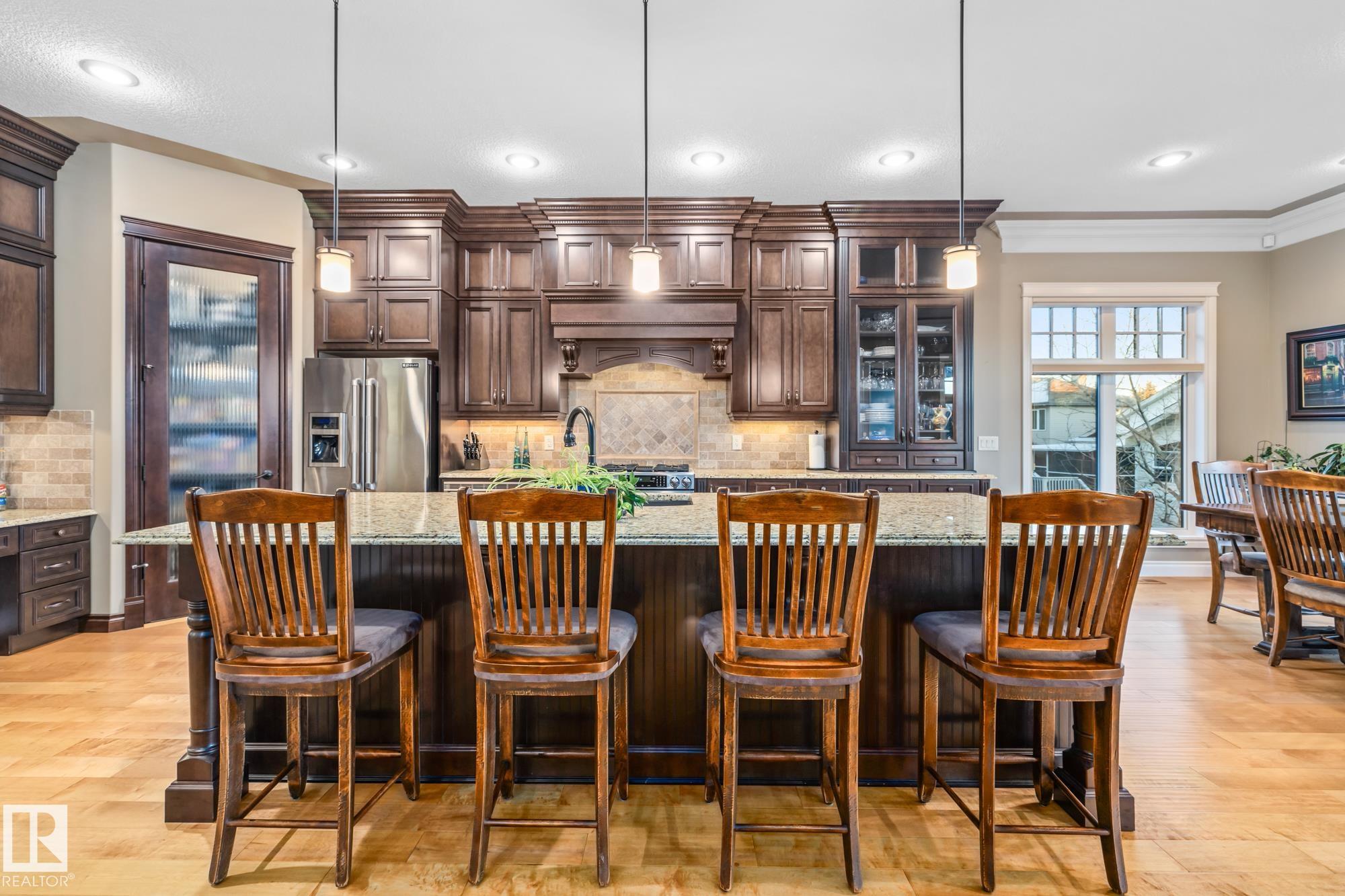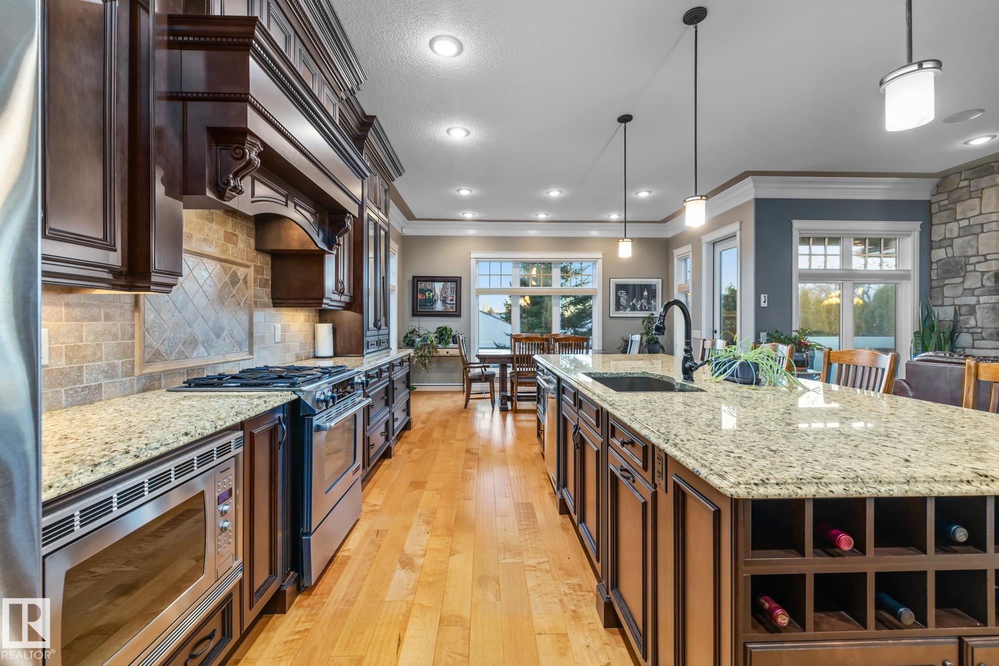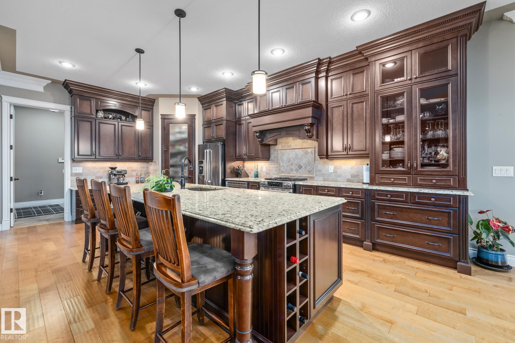 An executive walkout bungalow with a rare car lift allowing parking for 3 vehicles sets this custom-built home apart in prestigious Kingswood. An oversized driveway pad offers generous space for additional vehicles, guests or toys. With 4,440 sq ft of living space, this home features 5 bedrooms and 3.5 baths designed for entertaining & everyday comfort. The main level showcases 10 ft ceilings, travertine tile, scraped hardwood floors, coffered detailing and a full stone fireplace. The chef?s kitchen includes JennAir appliances, granite countertops, a large island, custom cabinetry and a walk-through pantry connecting to an oversized mudroom + den. The private primary suite offers a walk-in closet and spa-inspired ensuite w/ heated floors, dual sinks, jetted tub and double steam shower. The walkout basement features heated floors, a wet bar, additional bedrooms, 2 full baths and a temperature-controlled wine cellar. Low-maintenance landscaping completes this impressive property that truly seen in person.