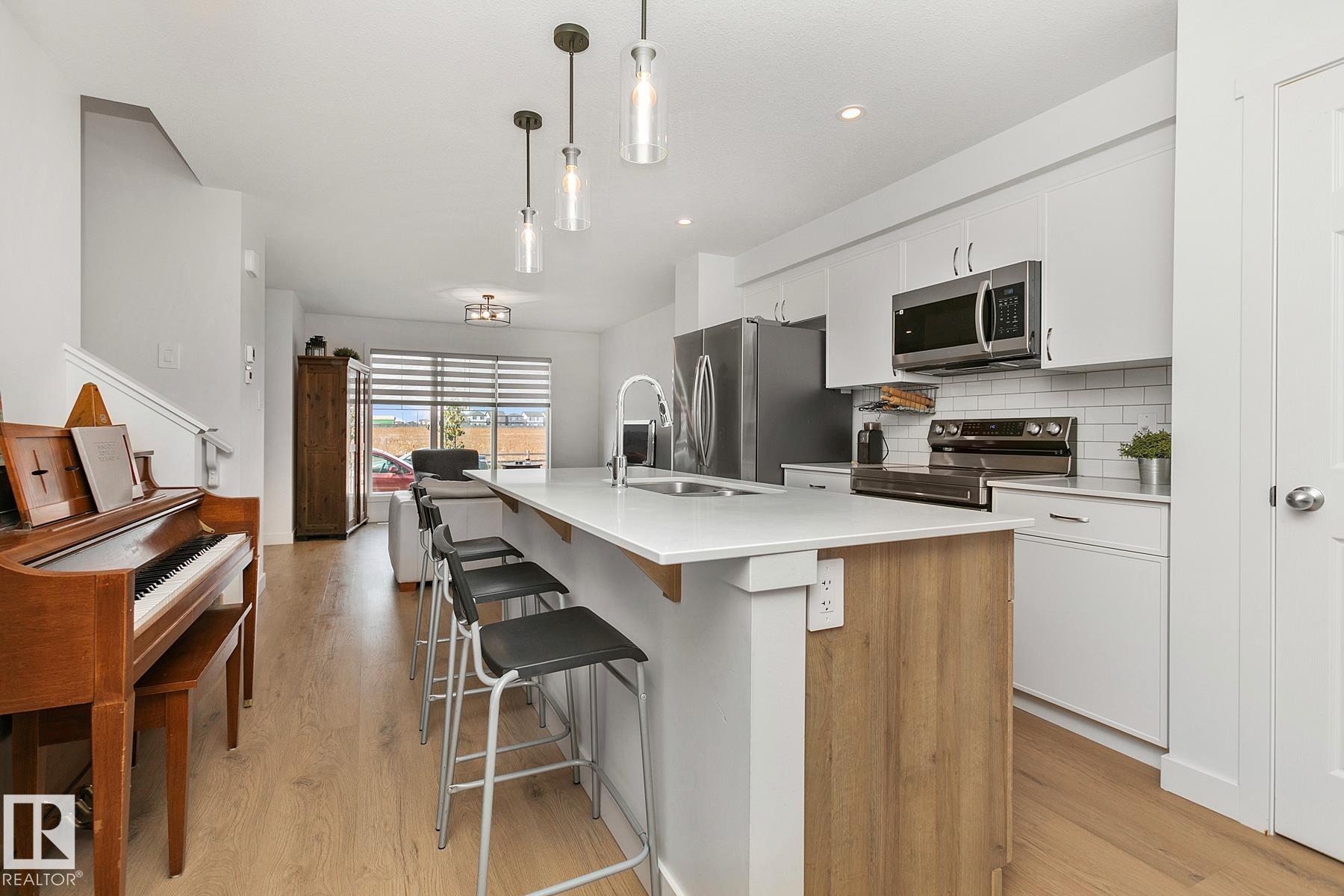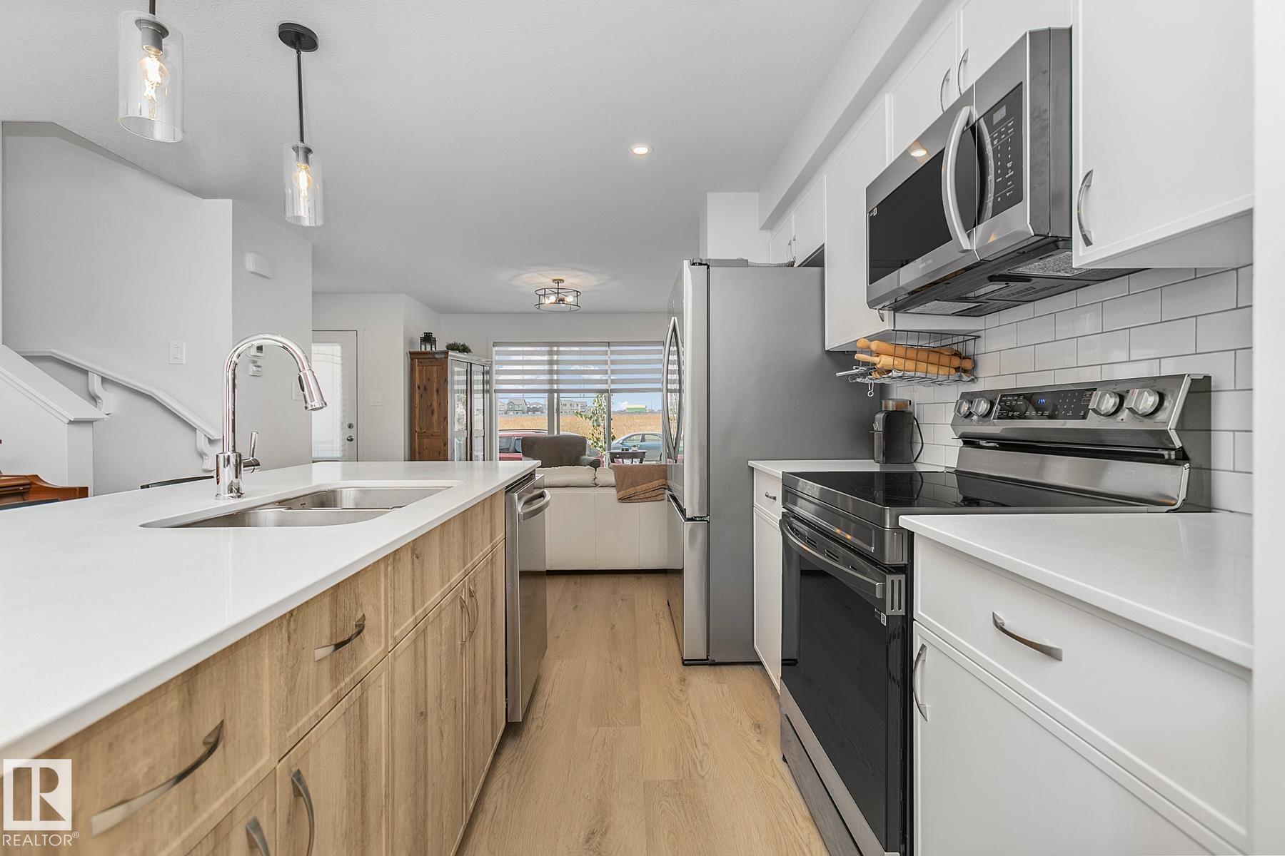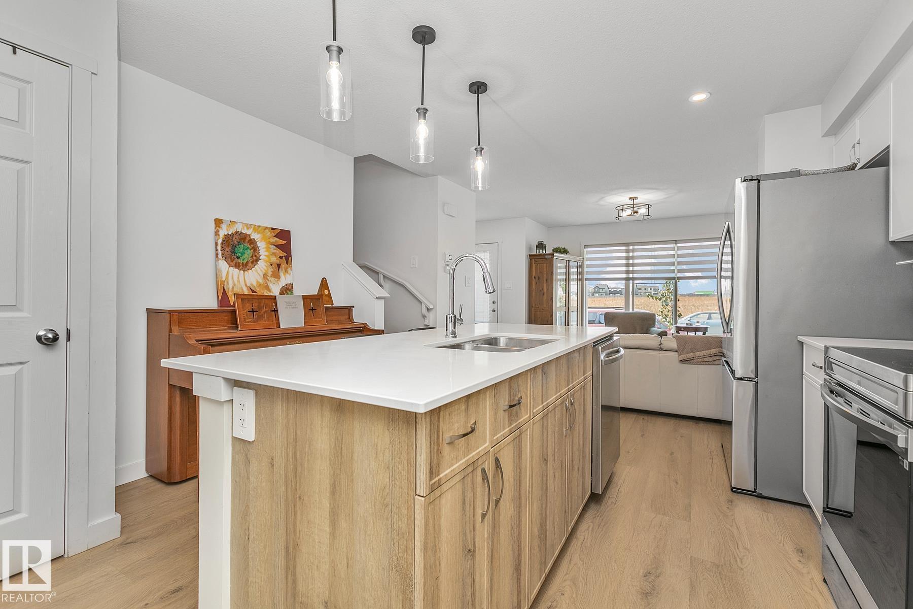 It doesn't get better than this. Experience a new build yet be turn-key, move-in ready with this 1,397 SqFt 2-Storey home (2024). This 3 Bedroom / 2.5 Bathroom stunner is across from a park that will boast the new school build in 2026 - walk your kids across the street! Buy now. Meticulously maintained & well-appointed with Upgrades, this home is perfect for a family, 1st-Time home buyer or investor. The side-entrance to the Basement will allow for a future suite. The Main floor has Vinyl Plank flooring throughout - starting with the spacious Living Room. The Kitchen is absolutely gorgeous - a chef's dream. Plenty of Quartz Countertops & Cabinets (soft-close, dove-tail); a large Eat-Up Island; S/S appliances & a pantry. A 1/2 Bathroom completes this floor. The Upper floor has 3 Bedrooms including a large Primary Bedroom featuring a W/I Closet & an Ensuite (Quartz, 2 Sinks; Tiled 5' Shower). Lastly, is the Main Bathroom & Laundry. Located in Crystallina Nera East - close to everything you need! WOW!