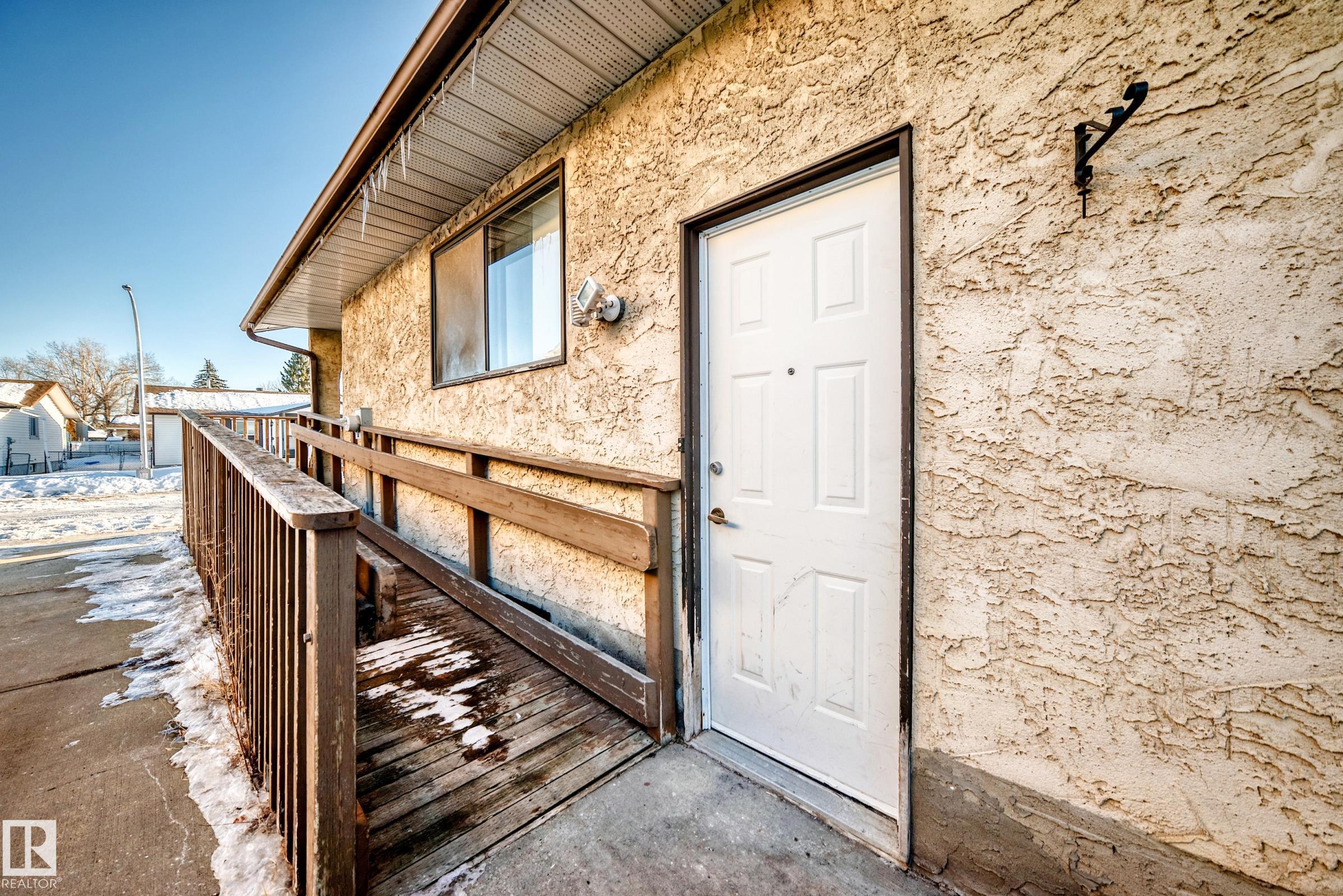 HANDICAP-ACCESSIBLE property with widened bedroom doors, open bathroom, and ramp! This 973 sq.ft. 3 bedroom bungalow is an ideal first home due to affordability, a great down-sizing option to allow you to age in place, or an investor's dream because of the side entry allowing for a legal suite to be easily added. The property does need updating throughout, but the flexibility of what you can do with it makes it a perfect choice. Plus it is located close to transit, shopping, schools, amenities, and a quick drive to 97 Street, which has so many businesses, and of course easy access to the Henday or downtown. Check this property out while it lasts!