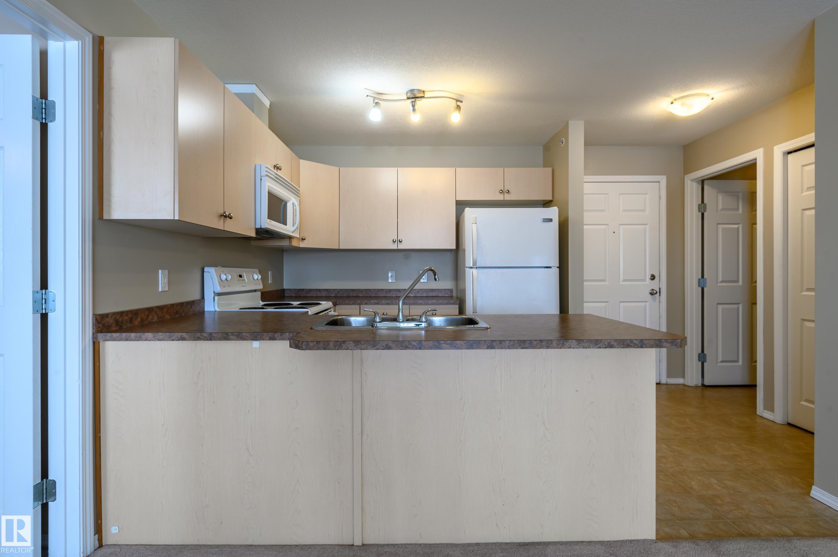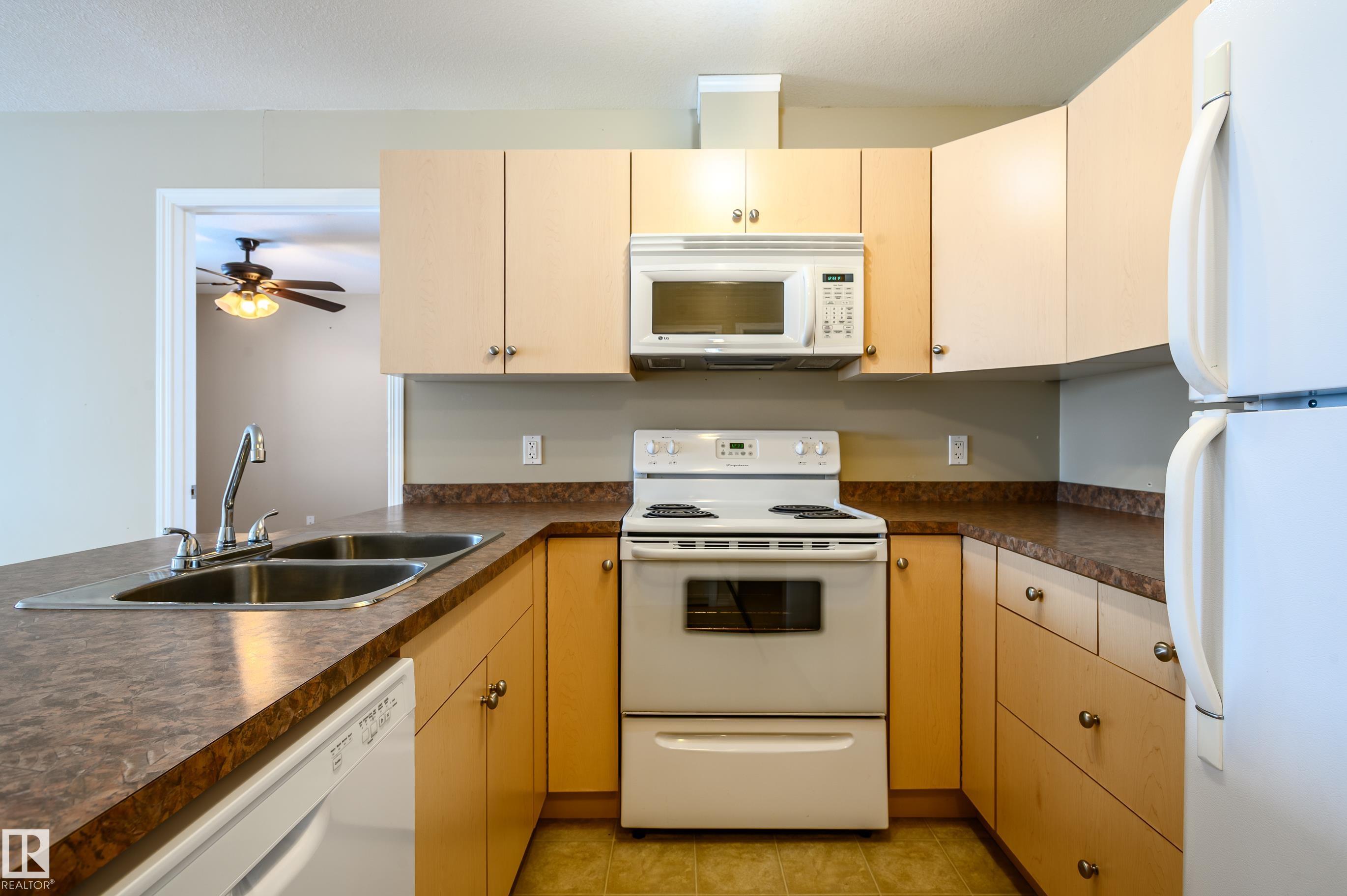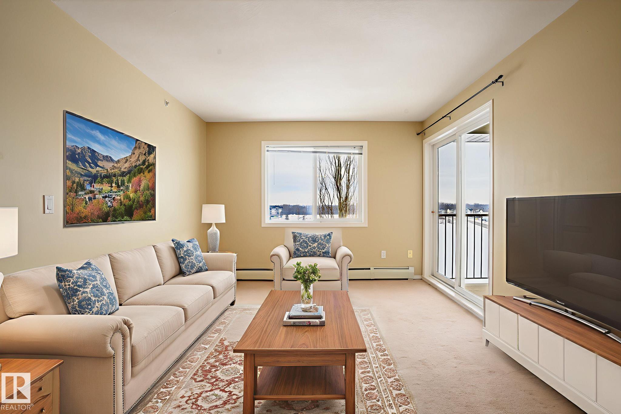 Amazing Two-bedroom Condo Apartment on the TOP floor of Station 33, Stony Plain, a well managed complex. Bright and spacious TOP-floor condo offering 756 sq ft of comfortable space, with a LARGE BALCONY to enjoy the sunshine. The functional kitchen provides ample cabinet and counter space, complete with appliances and a new dishwasher. The primary bedroom features a walk-through closet that leads to the three-piece ensuite. The second bedroom on the opposite side of the living space has access to a 4-pc bathroom, ideal for roommate or family members. Heat, water and underground parking included with condo fees. In-suite laundry and lots of closet space. Within walking distance to shopping, restaurants, and many amenities, with quick access to Hwy 16A. A few of the pictures are vitually staged.