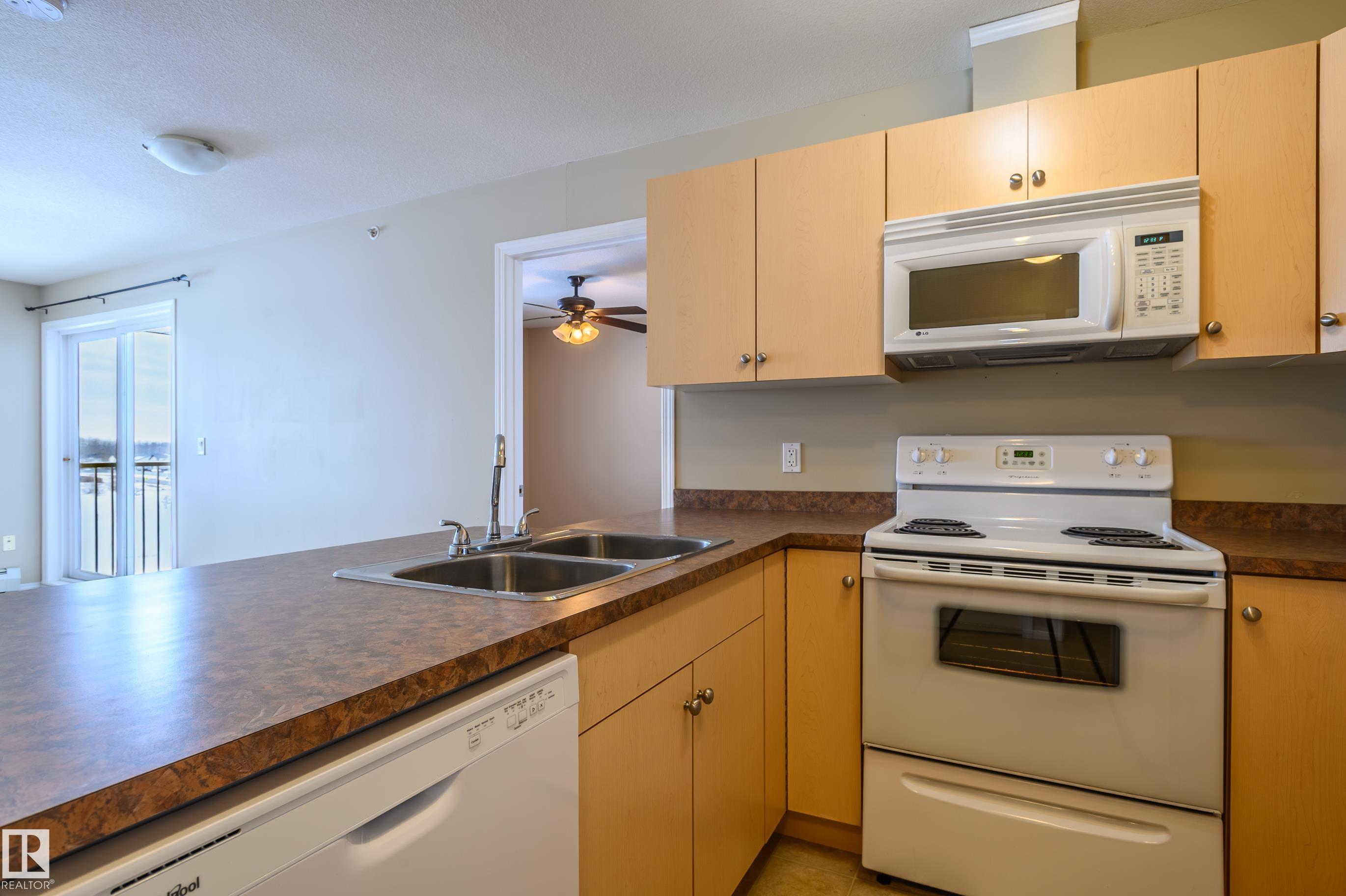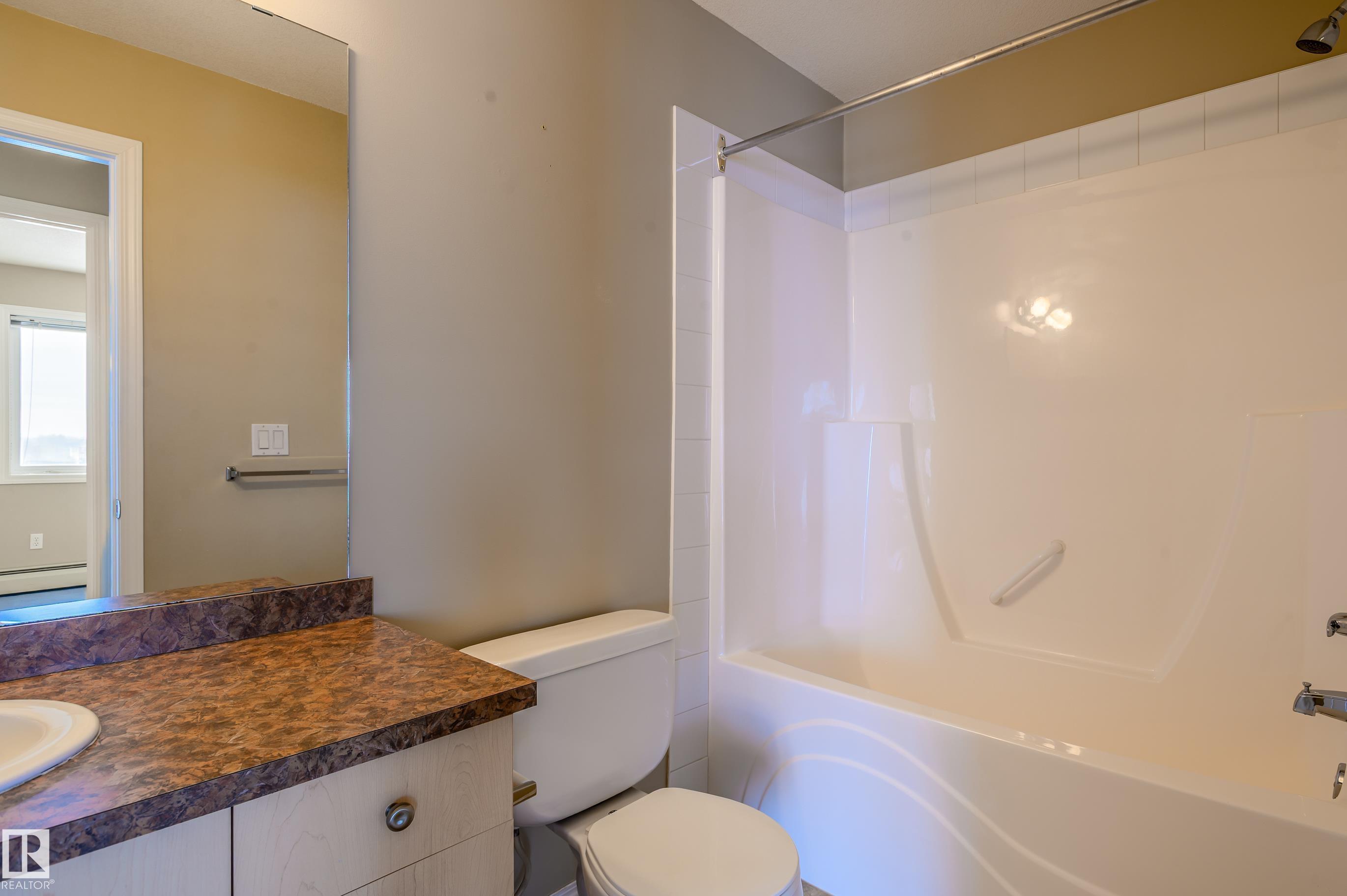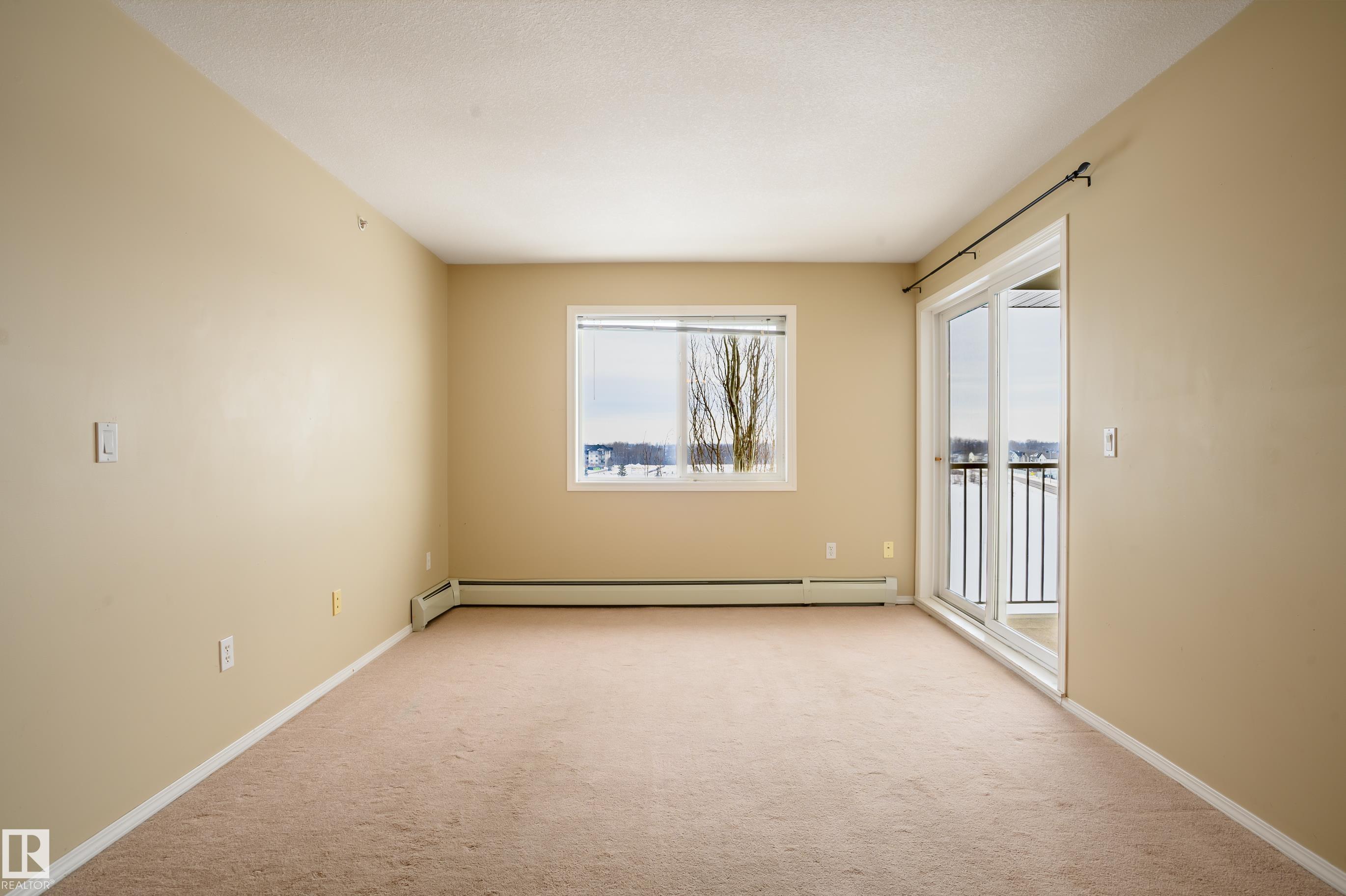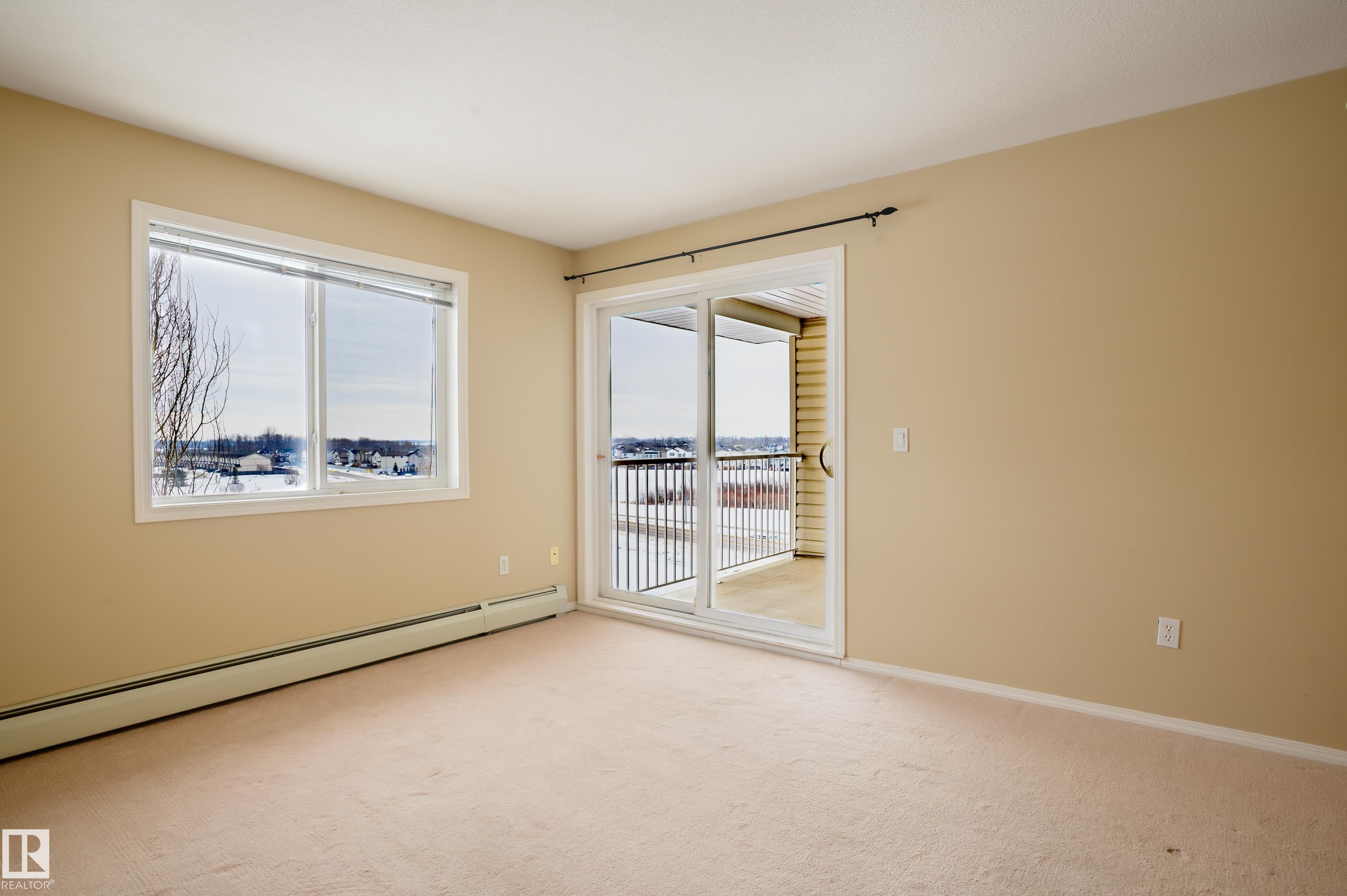 Amazing Two-bedroom Condo Apartment on the TOP floor of Station 33, Stony Plain, a well managed complex. Bright and spacious TOP-floor condo offering 756 sq ft of comfortable space, with a LARGE BALCONY to enjoy the sunshine. The functional kitchen provides ample cabinet and counter space, complete with appliances and a new dishwasher. The primary bedroom features a walk-through closet that leads to the three-piece ensuite. The second bedroom on the opposite side of the living space has access to a 4-pc bathroom, ideal for roommate or family members. Heat, water and underground parking included with condo fees. In-suite laundry and lots of closet space. Within walking distance to shopping, restaurants, and many amenities, with quick access to Hwy 16A. A few of the pictures are vitually staged.