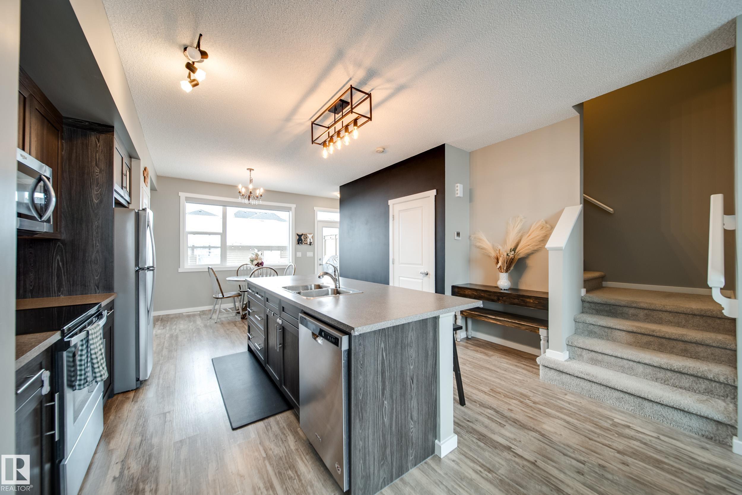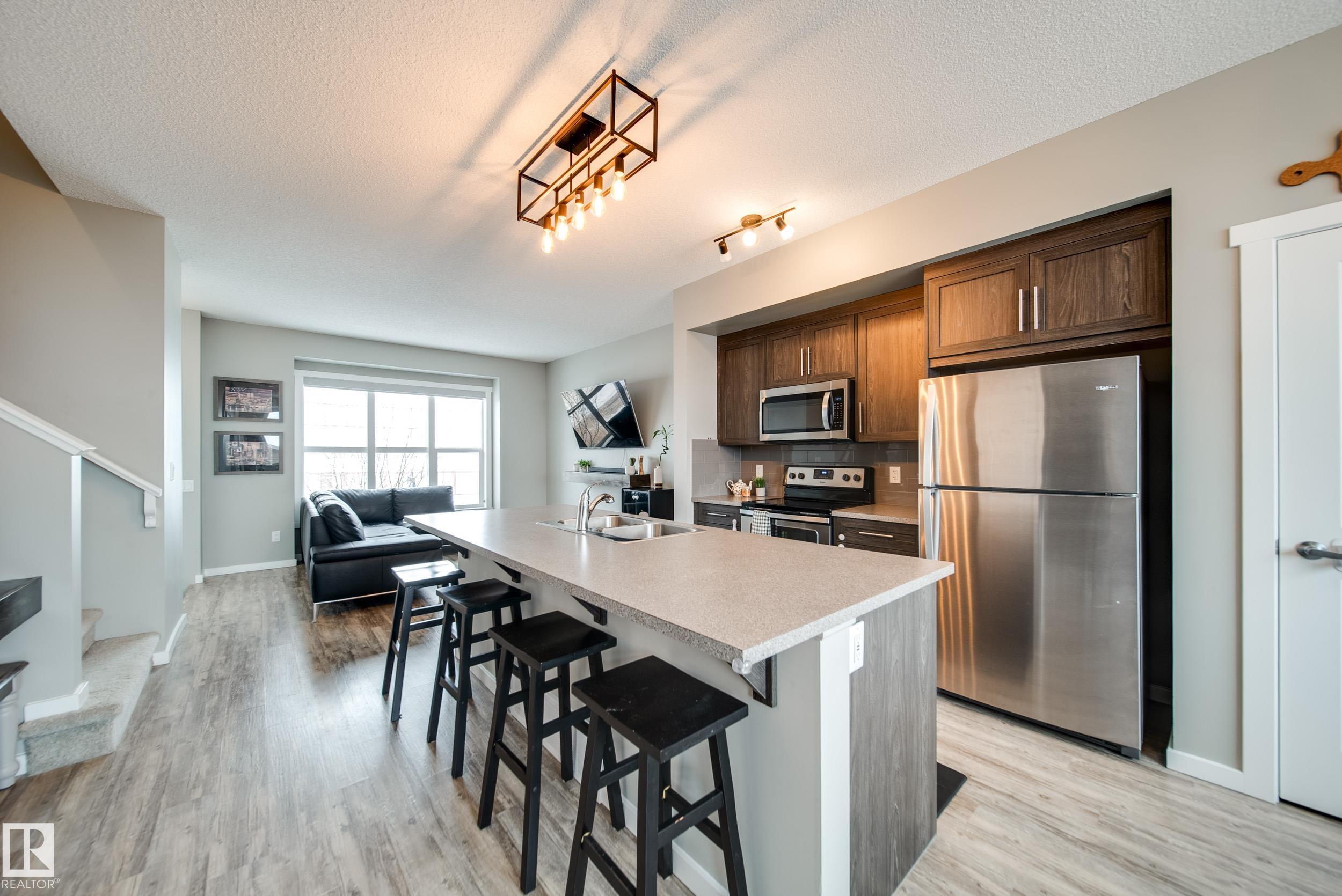 This thoughtfully built Homes by Avi townhome in family friendly Southfork is beautifully maintained w/4 beds, 3.5 baths & comes w/a FULLY FINISHED BASEMENT + OVERSIZED dbl detached garage that fits both a truck AND an SUV, offering space that truly grows with you. A bright, open concept main floor feat. 9? ceilings, VINYL PLANK flooring, stainless steel appliances, soft close cabinetry & an oversized island, perfect for everyday living & entertaining, w/a deck right off the dining area leading into your fully fenced & landscaped yard. Upstairs, the SPACIOUS primary bedrm inclds. a walk in closet & private ensuite, while 2 additional bedrms & a full bath provide comfortable space. Find the 4th bedrm & another full bath in the FINISHED bsmt, along with a versatile family room. Just 20 minutes south of Edmonton, South Fort offers an unbeatable lifestyle w/parks, pathways, & green spaces, along w/convenient access to both downtown Leduc and major commuter routes. Move in ready, NO CONDO FEES. Welcome home!