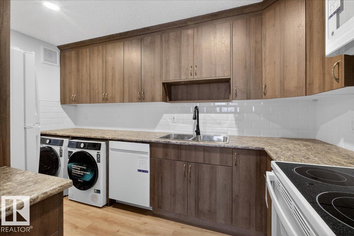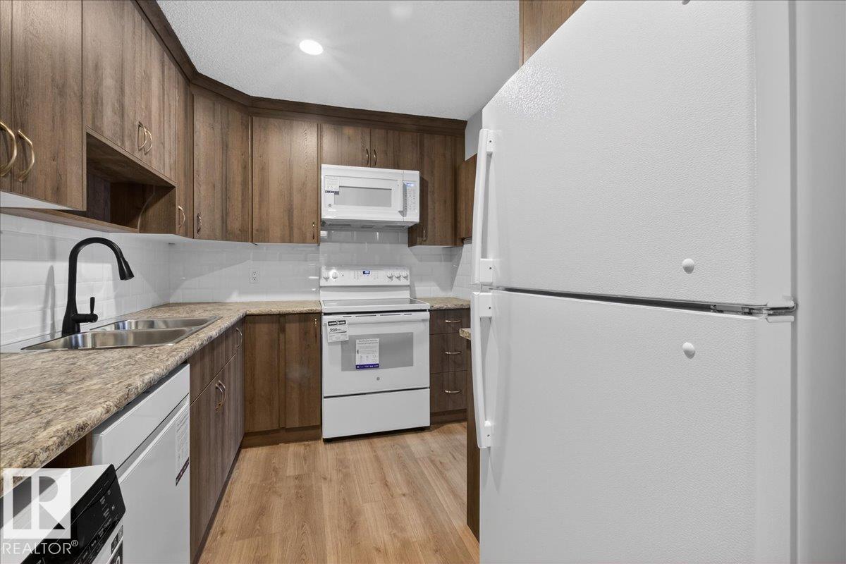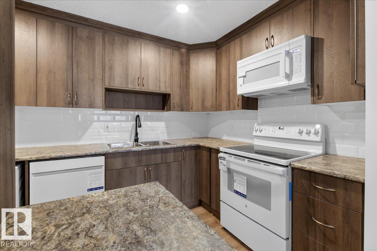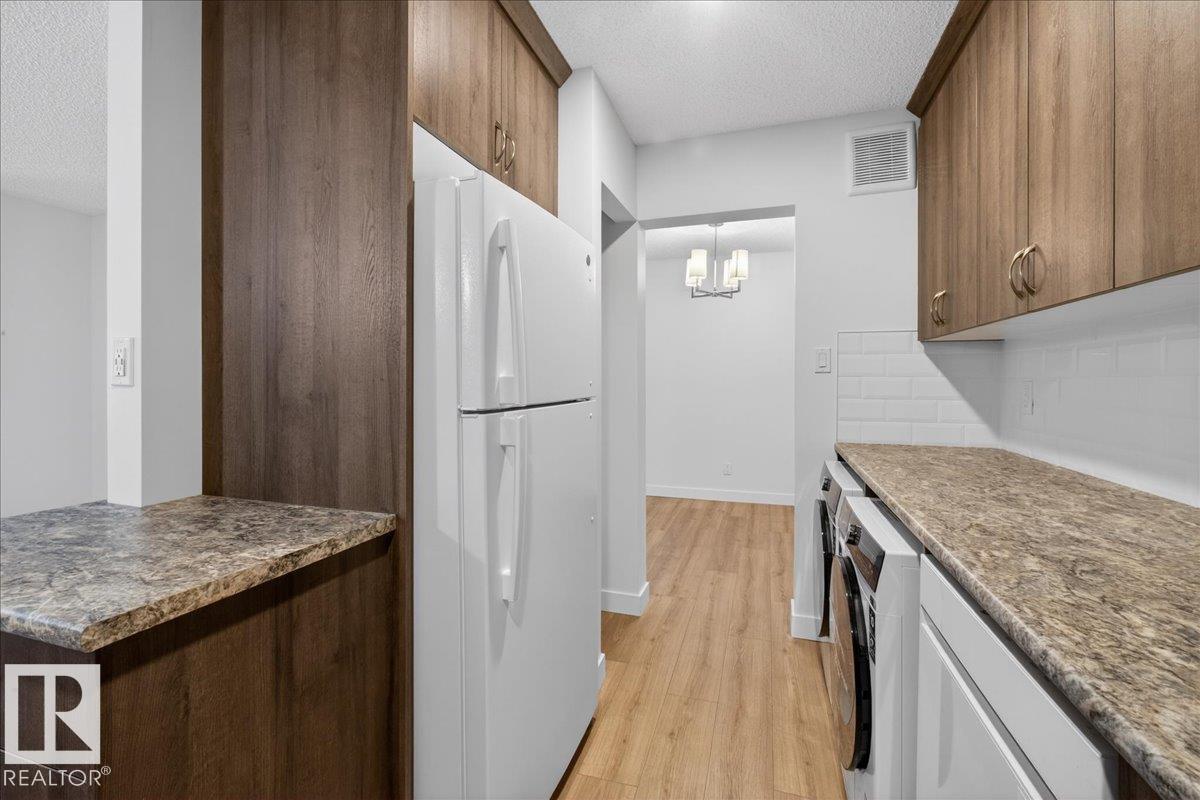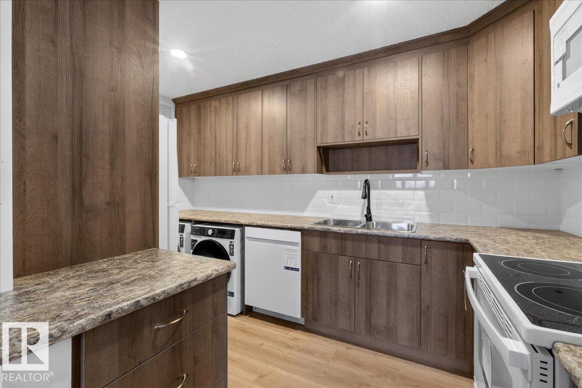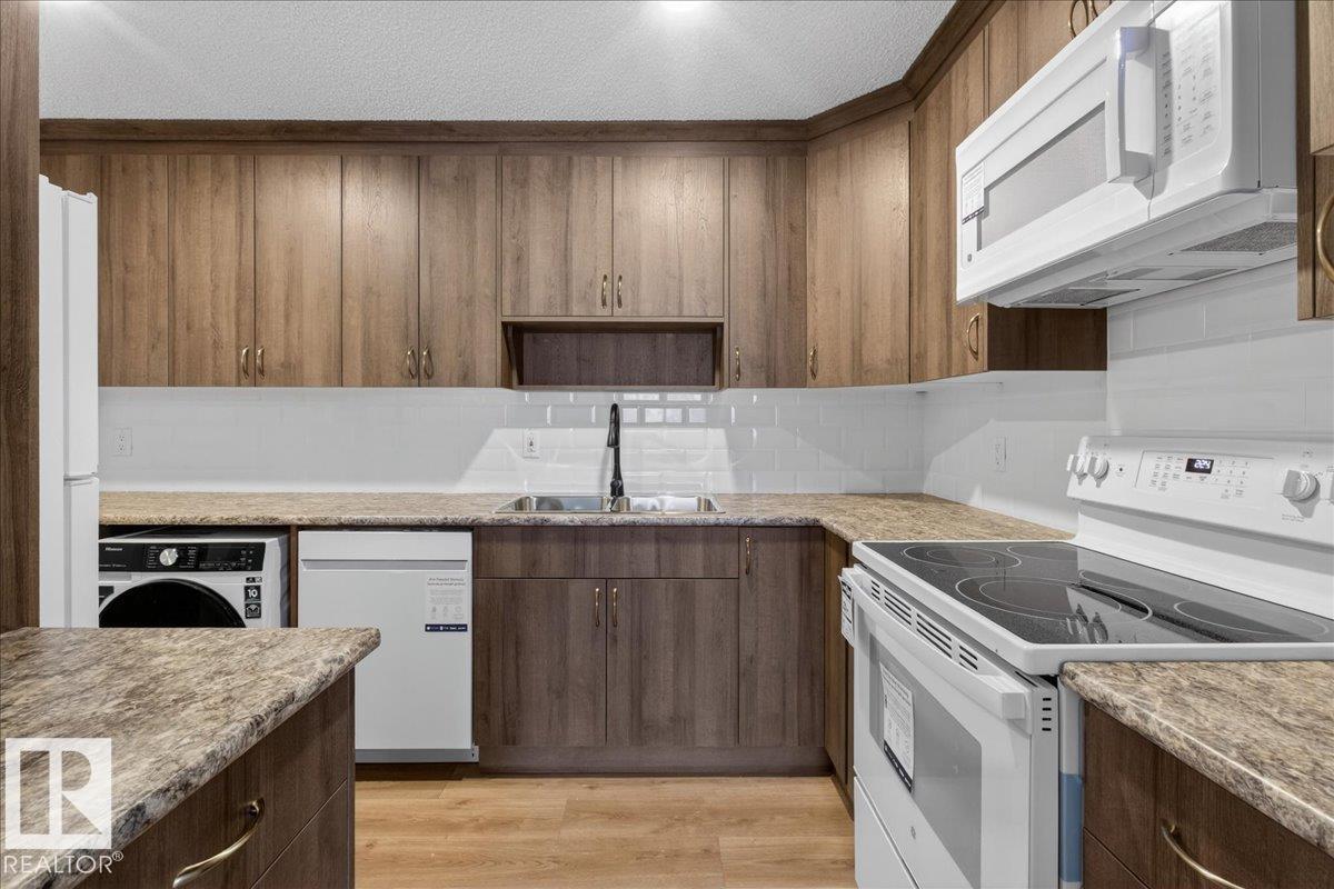 Welcome to this beautifully renovated 2 bed, 1 bath condo in the heart of St. Albert. Refreshed from top to bottom, this move-in-ready home features durable laminate flooring, fresh contemporary paint, and a bright, fully updated kitchen, complete with new cabinetry, sleek countertops, and brand-new appliances. The functional layout offers comfortable living and dining spaces, ideal for both relaxing and entertaining. Two generously sized bedrooms provide flexibility for guests, a home office, or growing households, while the updated bathroom offers a clean, modern finish. There is also plenty of storage space. One assigned above ground parking stall right outside the door with underground parking available. This main floor unit has its own exterior door, no stairs or hallways! All walking distance to shopping, restaurants, and public transit, this home delivers exceptional lifestyle convenience. This is an excellent opportunity to own a fully renovated condo in a sought-after St. Albert location.