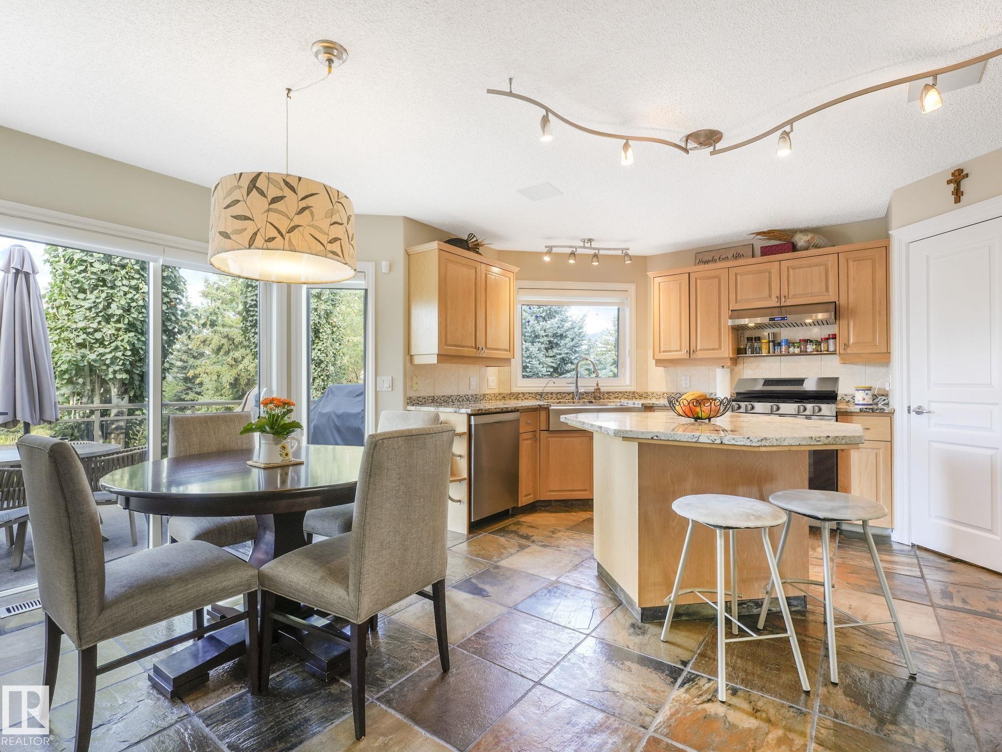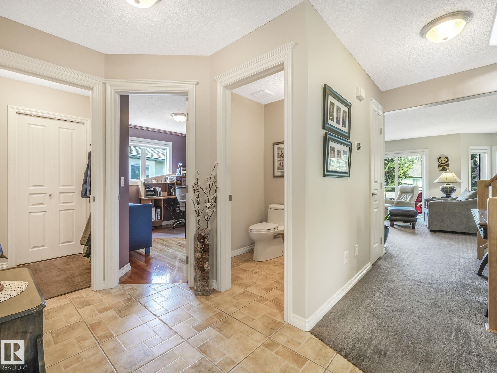 *RARE FIND* This property's allure is heightened by stunning landscaping & incredible views of the park visible from all three levels. This air-conditioned residence is thoughtfully designed with 4 bedrooms plus den/office & 4 bathrooms. The heart of the home is the kitchen; granite countertops, slate heated floors, custom cabinetry, quality stainless steel appliances. Huge glass doors seamlessly connect the kitchen to a gorgeous oversized deck, creating an effortless flow for family gatherings & entertaining. The living & dining rooms offer elegant & inviting spaces. The upper level boasts a large master bedroom complete with a private ensuite. For added convenience, a second-floor laundry room streamlines daily chores. The walk-out basement is a true highlight & perfect for entertaining. Featuring in-floor heating, a spacious rec room, wet bar, a dedicated play area for children, a bedroom & a luxurious 4-piece bathroom with steam shower. Recent significant renovations ensure this home is move-in ready!