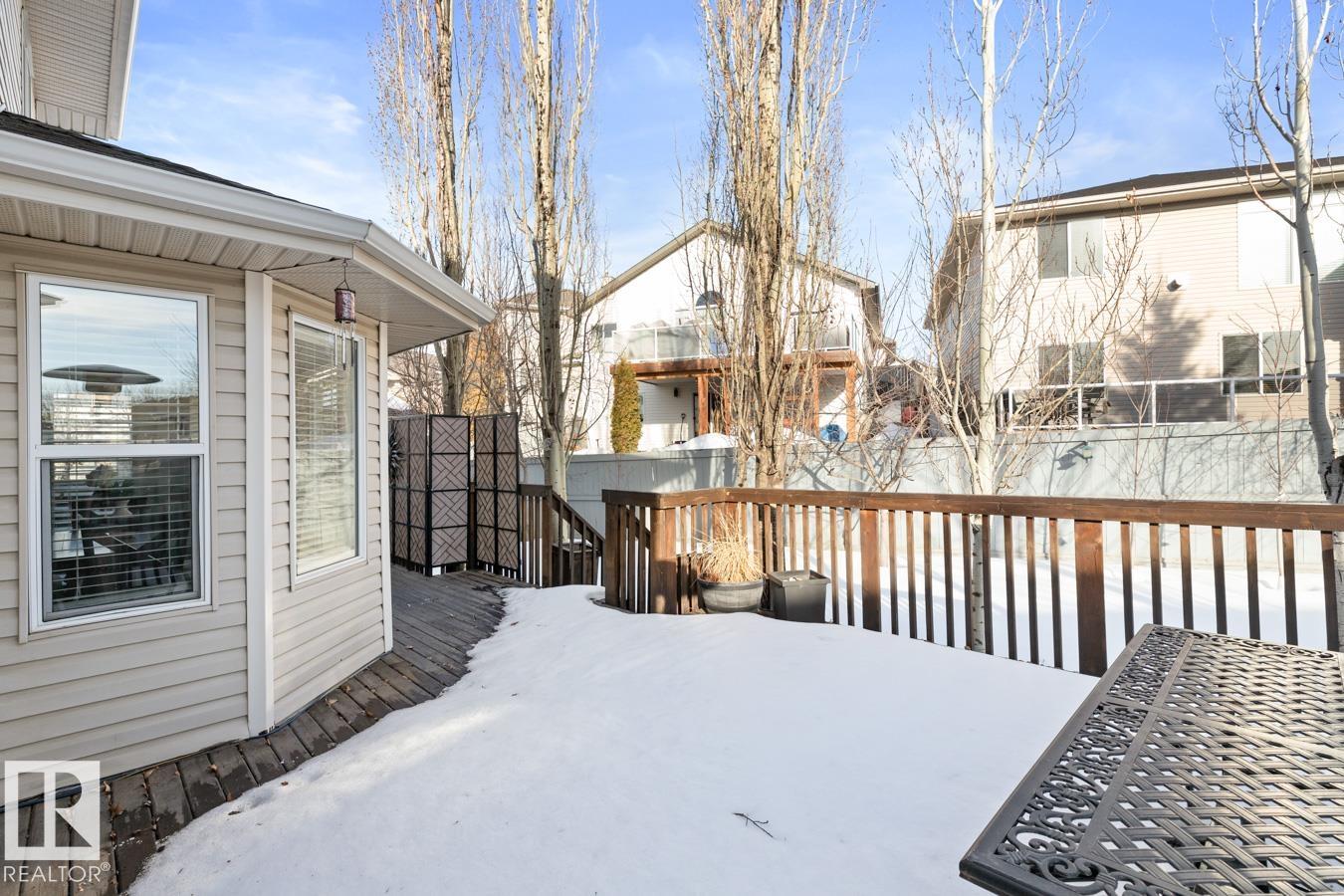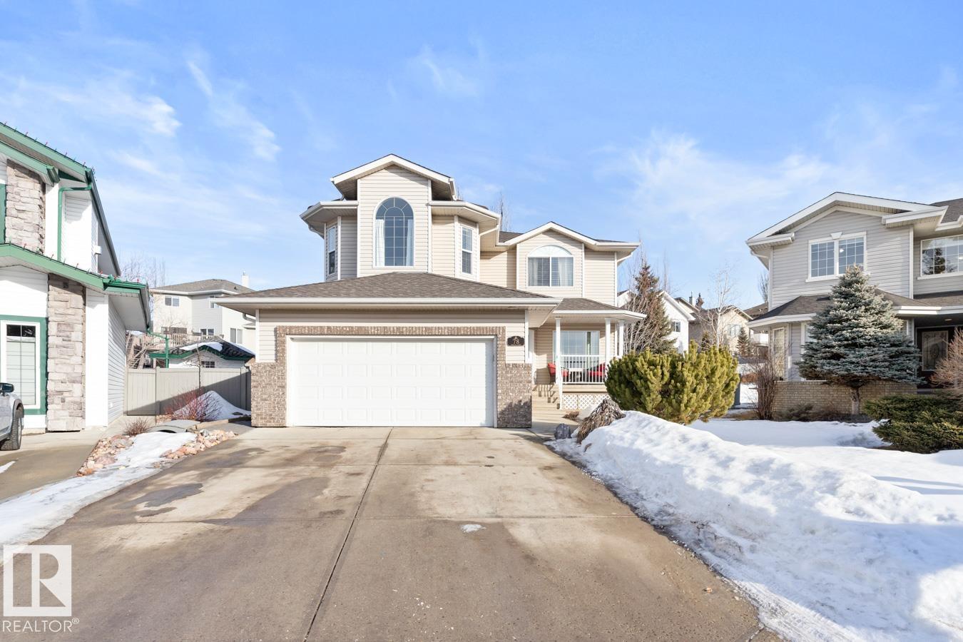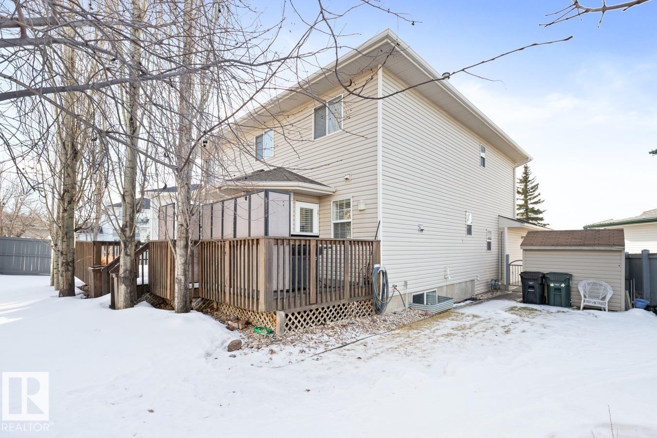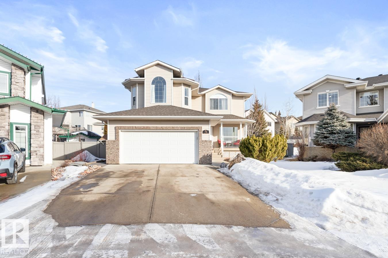 Tucked into a quiet cul-de-sac, this meticulously maintained family home offers A/C, a HEATED garage, 5 bedrooms, and 3.5 baths. A charming front verandah welcomes you into a spacious entry with hardwood flooring that flows into a functional, open layout. The kitchen features ample cabinetry, corner pantry, stainless steel appliances, and an island overlooking the dining area and living room with cozy fireplace. A den, guest bath, and laundry complete the main floor. Upstairs, you?ll find a king-sized primary suite with walk-in closet and 5-pc ensuite, plus three additional bedrooms (one easily converted back to a bonus room) and a 4-pc bath. The fully finished basement is ideal for entertaining, offering a rec room, fifth bedroom, 3-pc bath, and generous storage. Enjoy the fully fenced, beautifully landscaped yard with entertaining-sized deck. Fantastic location close to schools, parks, wetlands trails, and Heritage Dog Park?move-in ready!