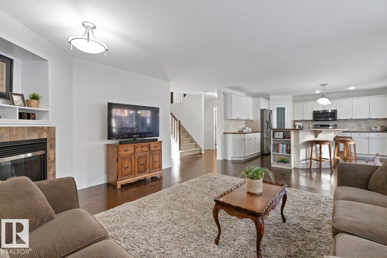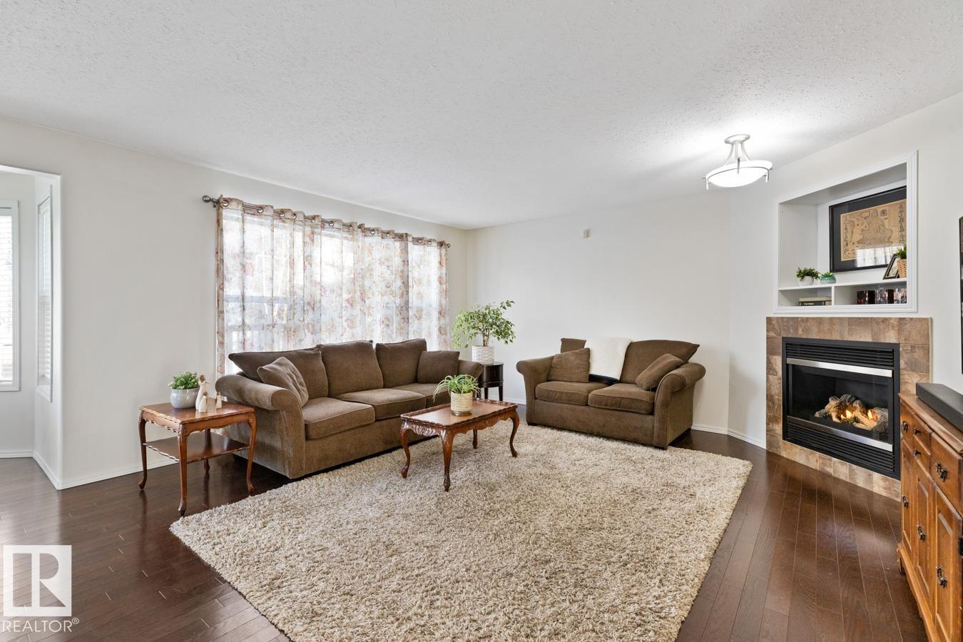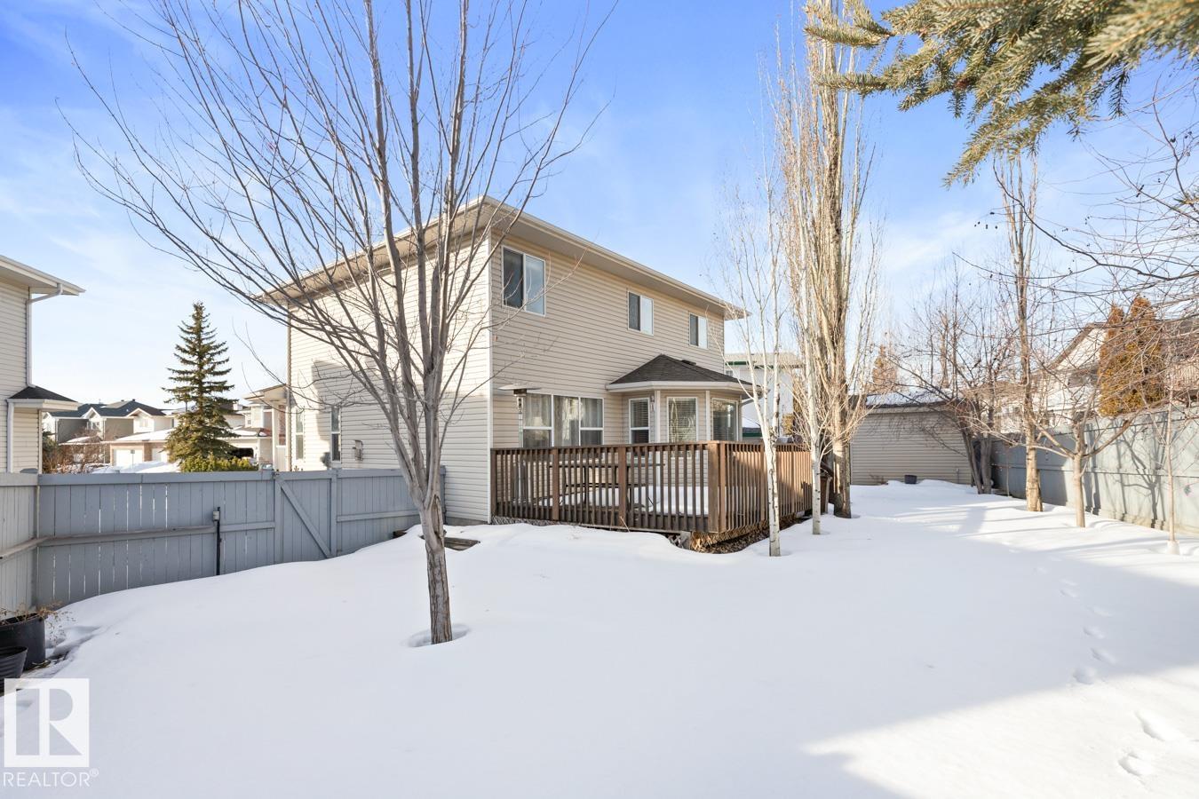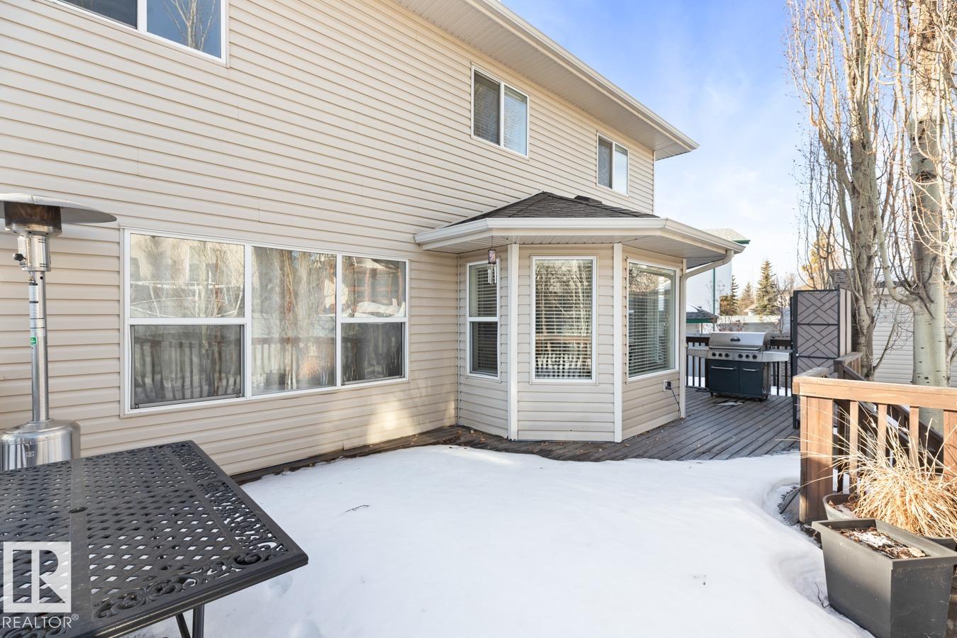 Tucked into a quiet cul-de-sac, this meticulously maintained family home offers A/C, a HEATED garage, 5 bedrooms, and 3.5 baths. A charming front verandah welcomes you into a spacious entry with hardwood flooring that flows into a functional, open layout. The kitchen features ample cabinetry, corner pantry, stainless steel appliances, and an island overlooking the dining area and living room with cozy fireplace. A den, guest bath, and laundry complete the main floor. Upstairs, you?ll find a king-sized primary suite with walk-in closet and 5-pc ensuite, plus three additional bedrooms (one easily converted back to a bonus room) and a 4-pc bath. The fully finished basement is ideal for entertaining, offering a rec room, fifth bedroom, 3-pc bath, and generous storage. Enjoy the fully fenced, beautifully landscaped yard with entertaining-sized deck. Fantastic location close to schools, parks, wetlands trails, and Heritage Dog Park?move-in ready!