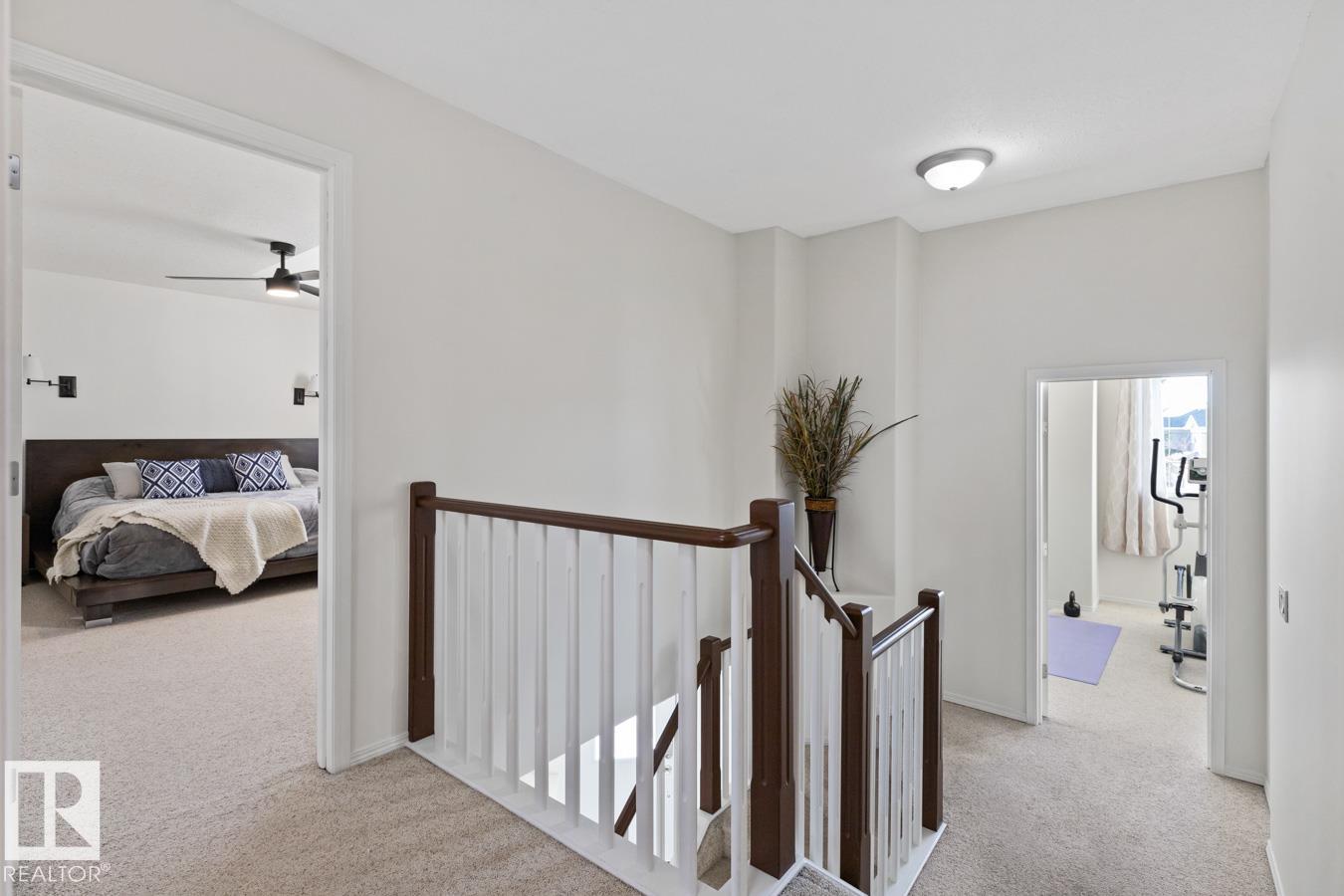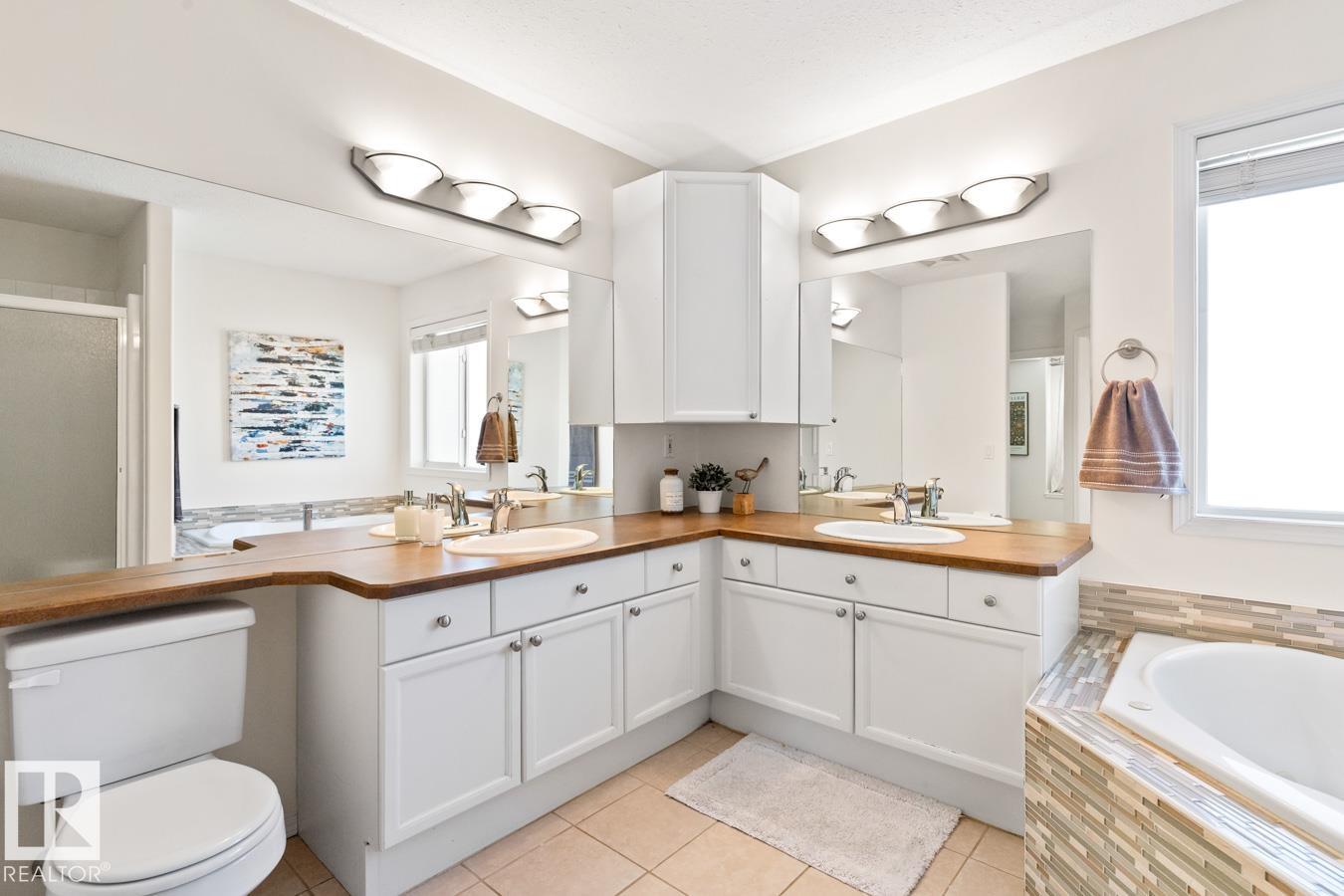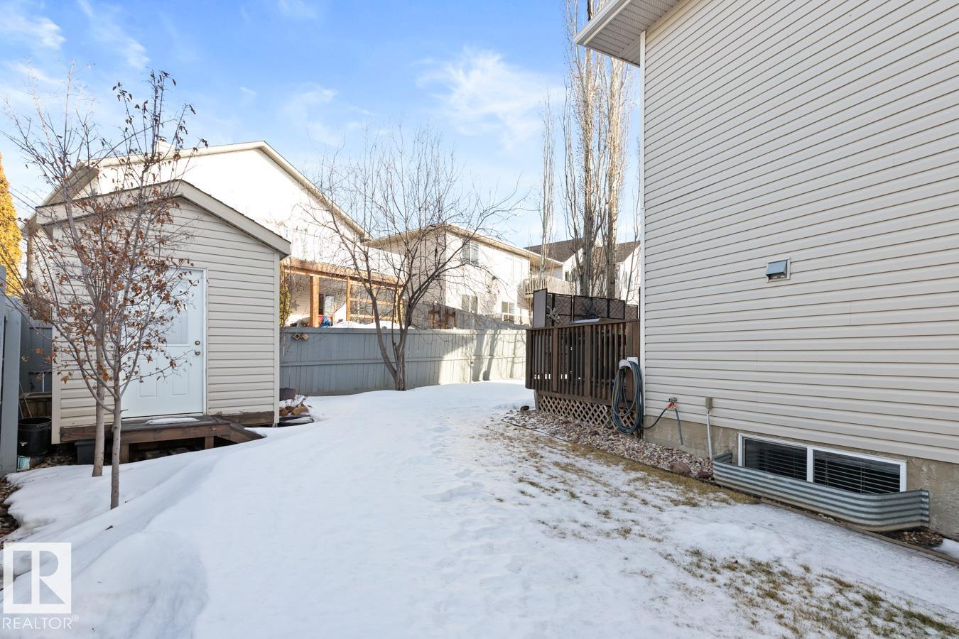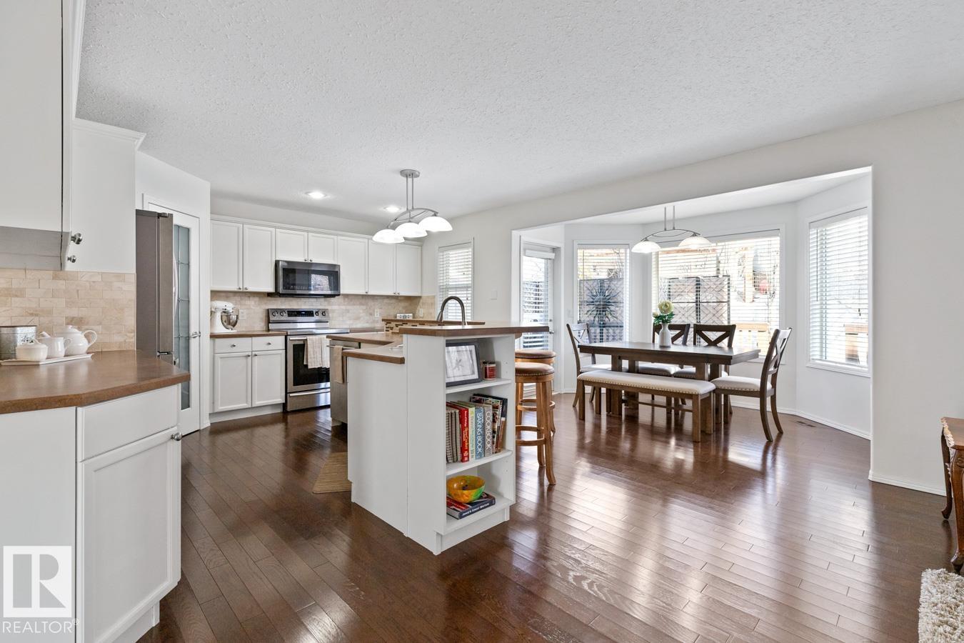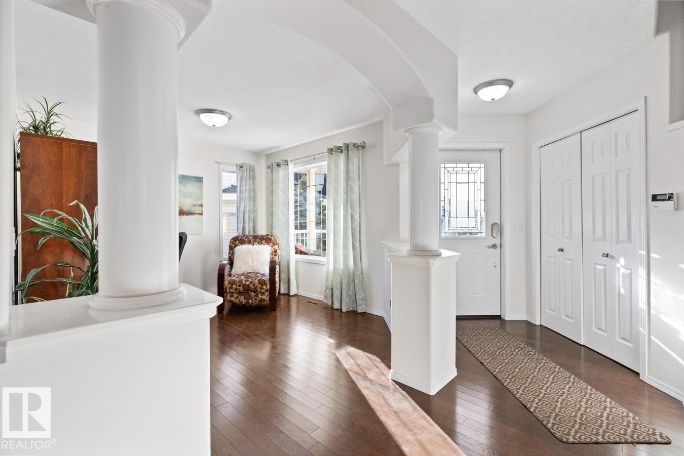 Tucked into a quiet cul-de-sac, this meticulously maintained family home offers A/C, a HEATED garage, 5 bedrooms, and 3.5 baths. A charming front verandah welcomes you into a spacious entry with hardwood flooring that flows into a functional, open layout. The kitchen features ample cabinetry, corner pantry, stainless steel appliances, and an island overlooking the dining area and living room with cozy fireplace. A den, guest bath, and laundry complete the main floor. Upstairs, you?ll find a king-sized primary suite with walk-in closet and 5-pc ensuite, plus three additional bedrooms (one easily converted back to a bonus room) and a 4-pc bath. The fully finished basement is ideal for entertaining, offering a rec room, fifth bedroom, 3-pc bath, and generous storage. Enjoy the fully fenced, beautifully landscaped yard with entertaining-sized deck. Fantastic location close to schools, parks, wetlands trails, and Heritage Dog Park?move-in ready!