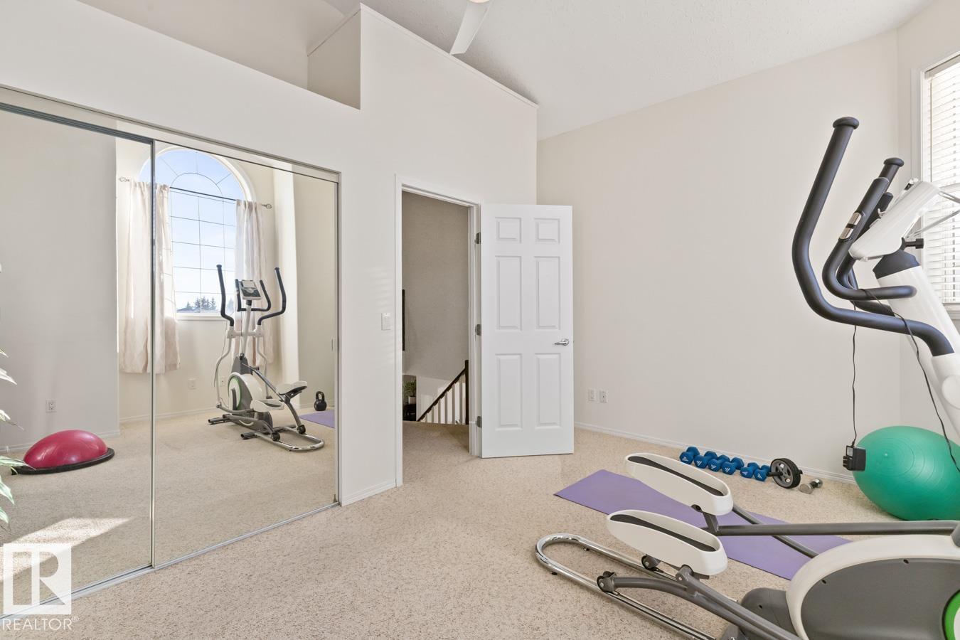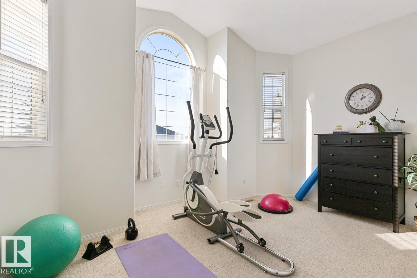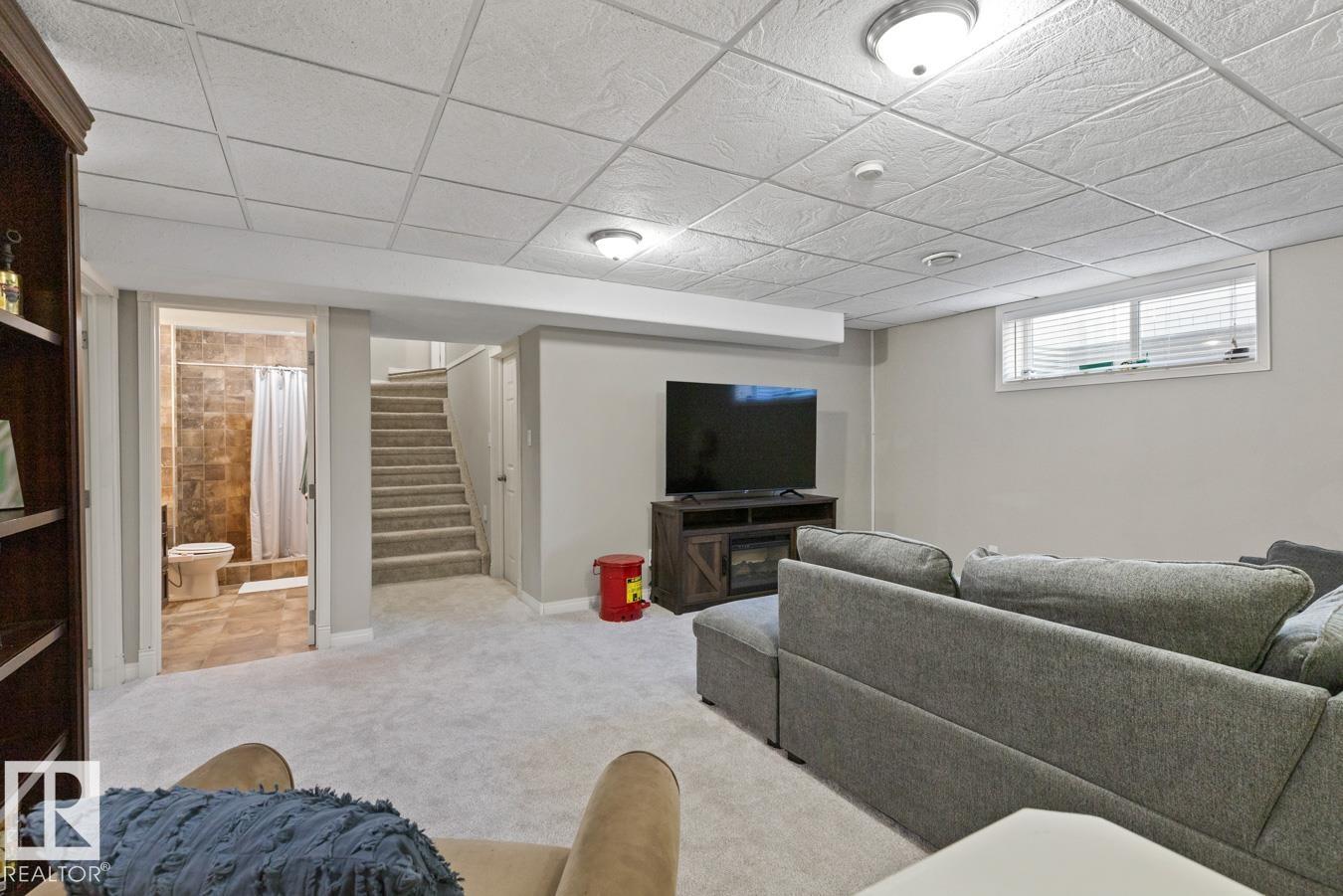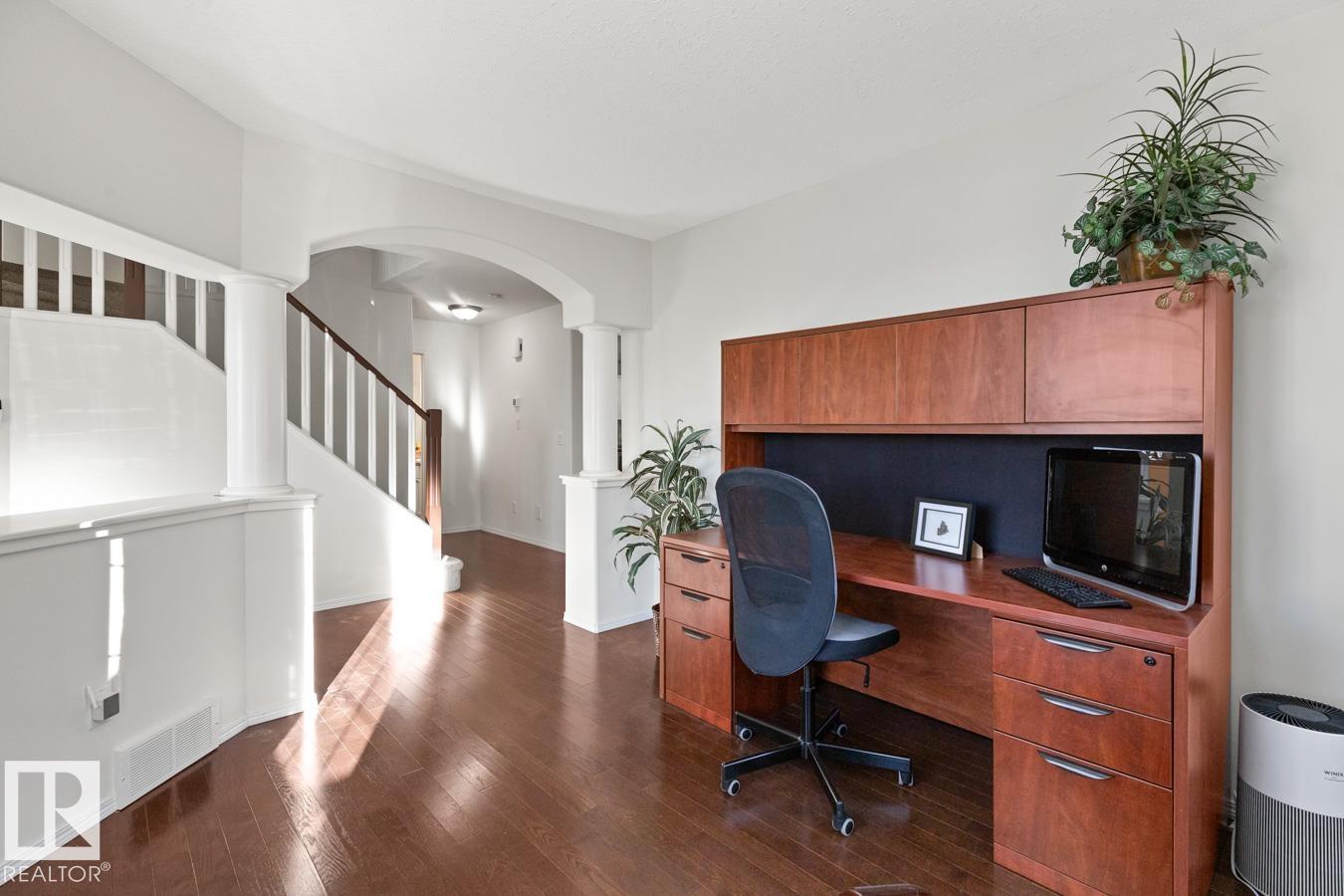 Tucked into a quiet cul-de-sac, this meticulously maintained family home offers A/C, a HEATED garage, 5 bedrooms, and 3.5 baths. A charming front verandah welcomes you into a spacious entry with hardwood flooring that flows into a functional, open layout. The kitchen features ample cabinetry, corner pantry, stainless steel appliances, and an island overlooking the dining area and living room with cozy fireplace. A den, guest bath, and laundry complete the main floor. Upstairs, you?ll find a king-sized primary suite with walk-in closet and 5-pc ensuite, plus three additional bedrooms (one easily converted back to a bonus room) and a 4-pc bath. The fully finished basement is ideal for entertaining, offering a rec room, fifth bedroom, 3-pc bath, and generous storage. Enjoy the fully fenced, beautifully landscaped yard with entertaining-sized deck. Fantastic location close to schools, parks, wetlands trails, and Heritage Dog Park?move-in ready!