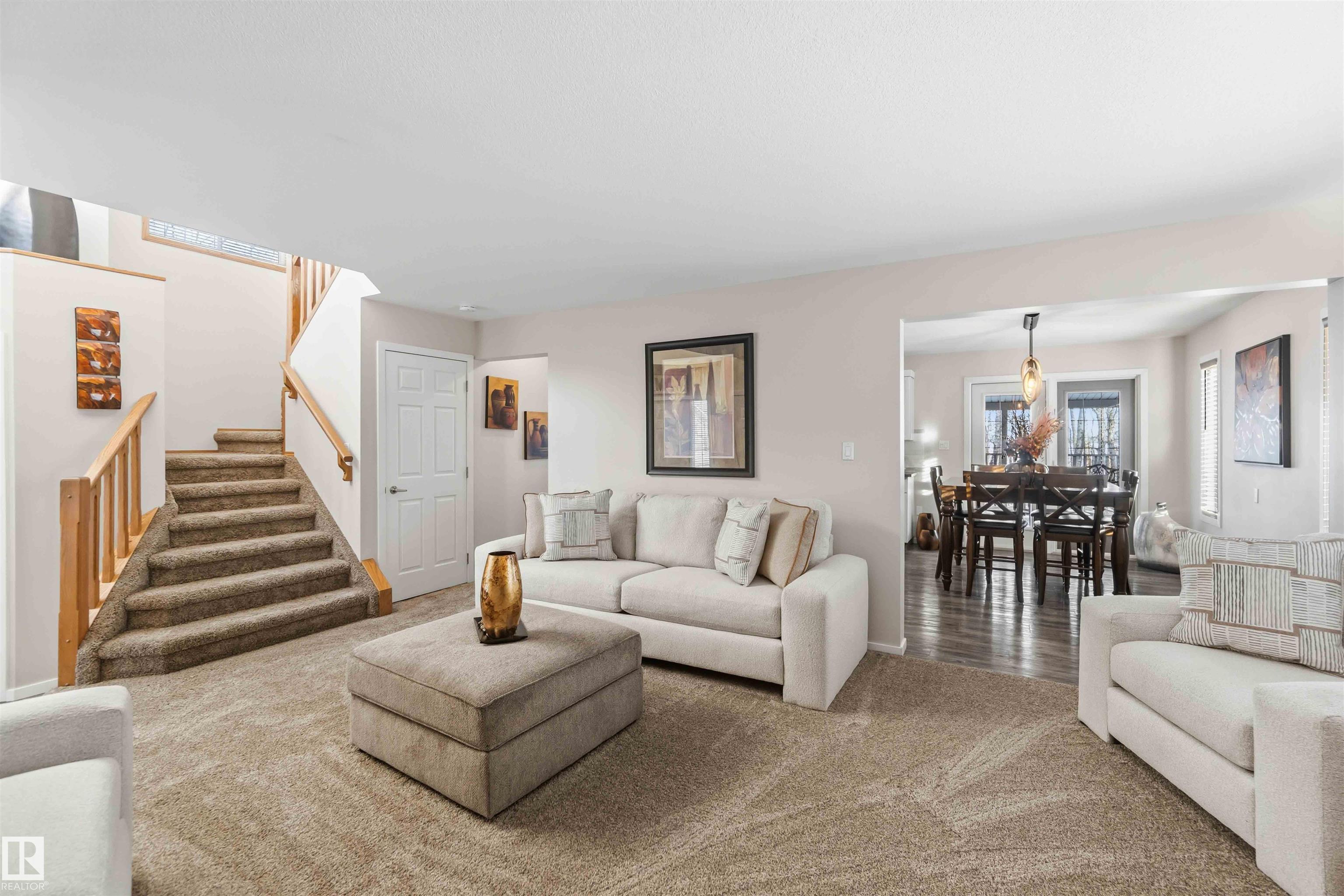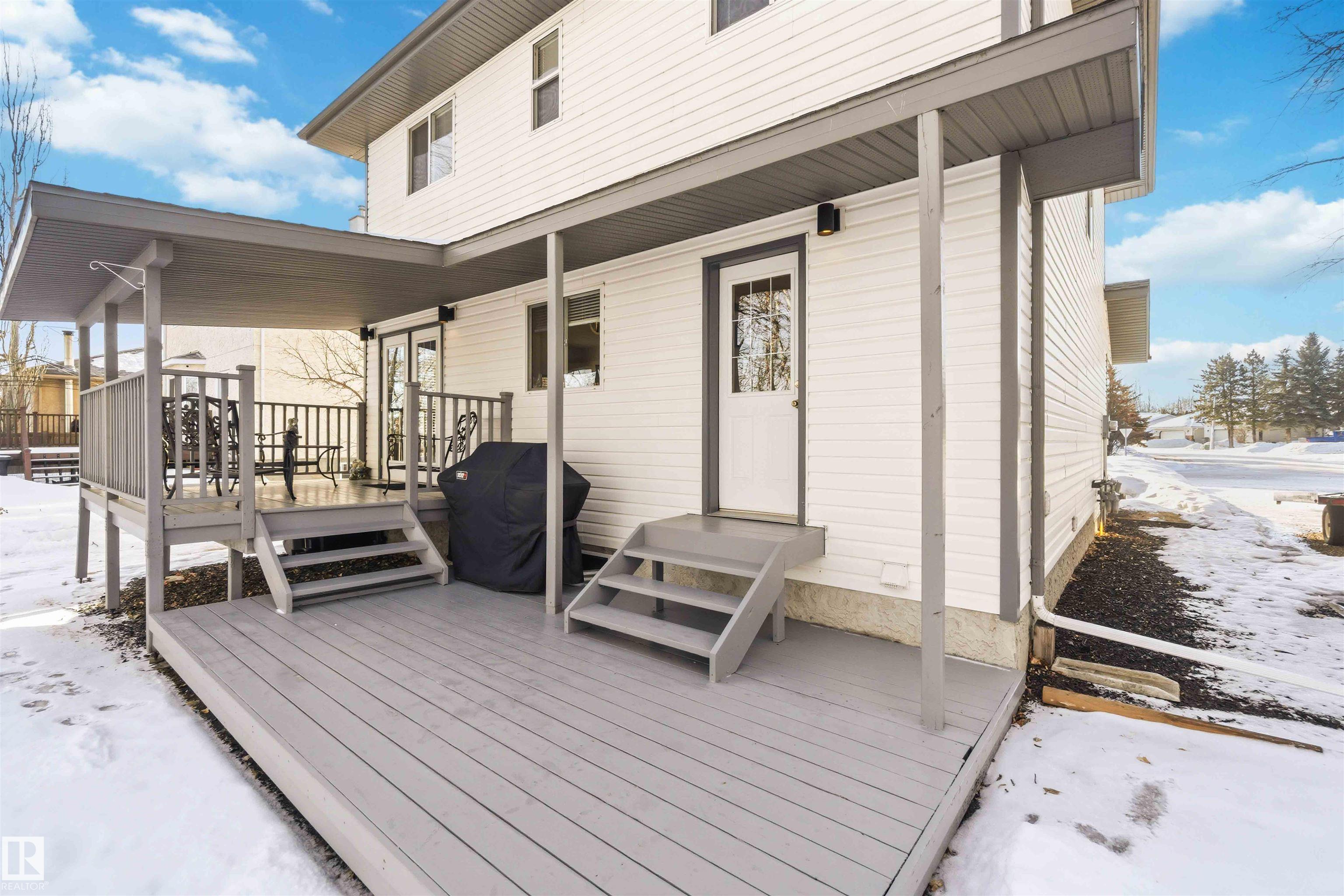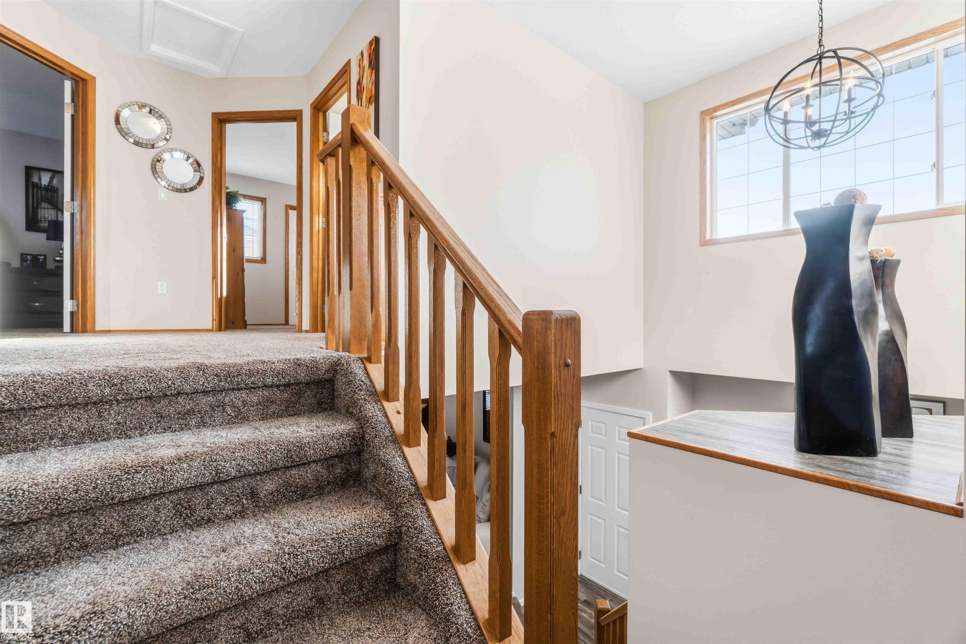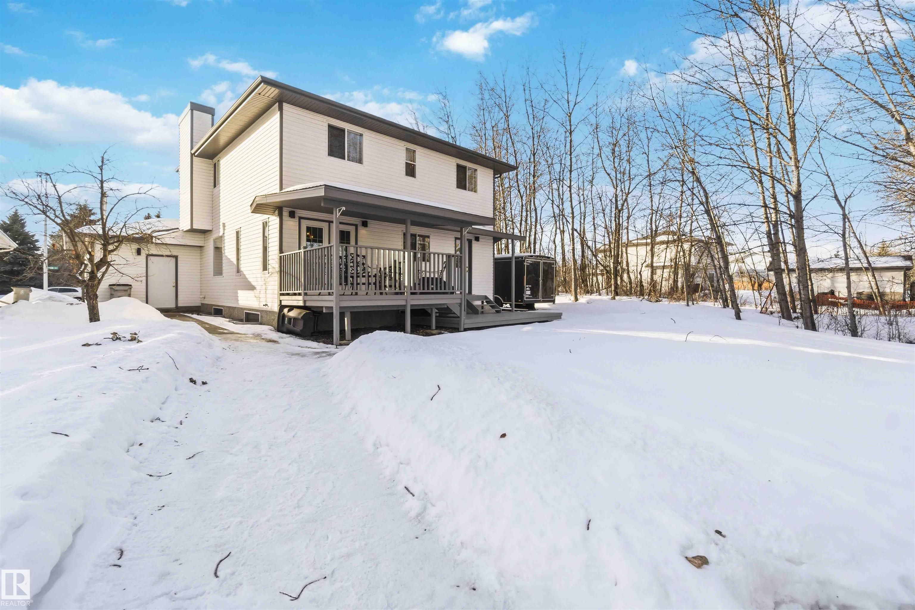 Hard to find a lot like this! This 2-storey, 3-bedroom home with a fully developed basement backs onto a farmer?s field, with a town easement on one side?offering exceptional privacy and minimal neighbors. The main floor features a grand entrance, a bright living room with a corner gas fireplace, and a dining area open to the renovated kitchen with patio doors leading to a covered deck. A convenient 2-piece bathroom and laundry room complete the main level, with direct access to the lower tier of the two-level deck. Upstairs offers three bedrooms, including the primary with a 3-piece ensuite, plus a full 4-piece bathroom. The basement includes a spacious rec room, 3-piece bathroom, large utility room, and ample storage. The heated 2.5-car garage is equipped with a floor drain and extensive cabinetry?perfect for parking vehicles and all your toys.