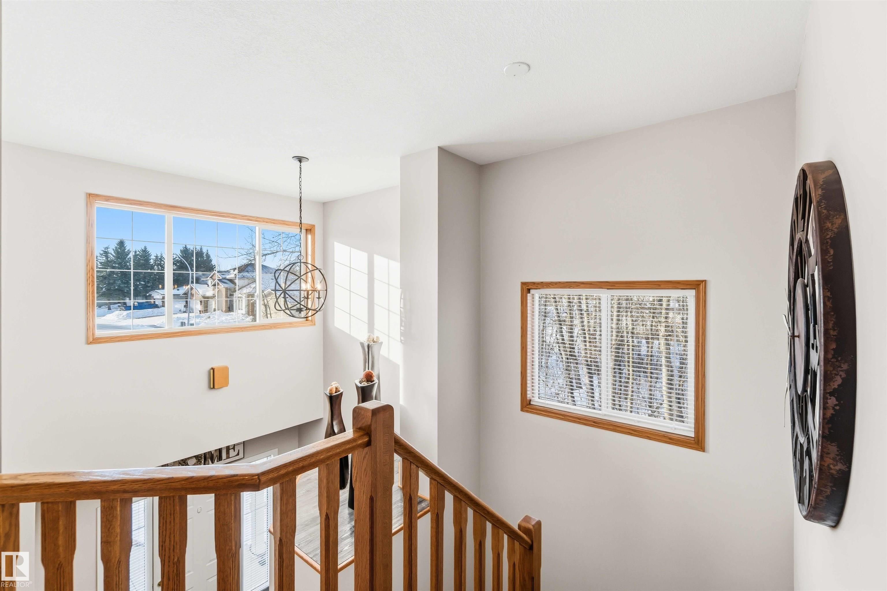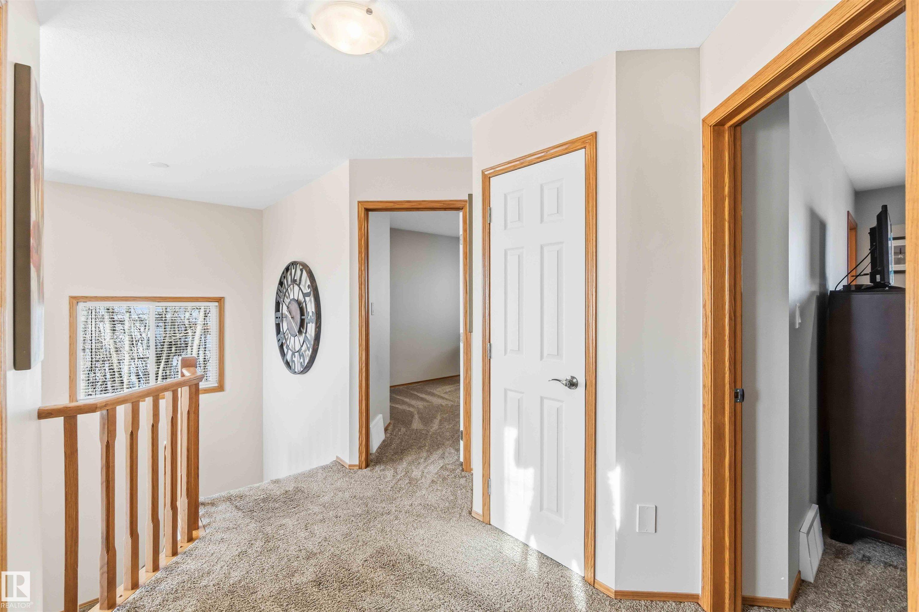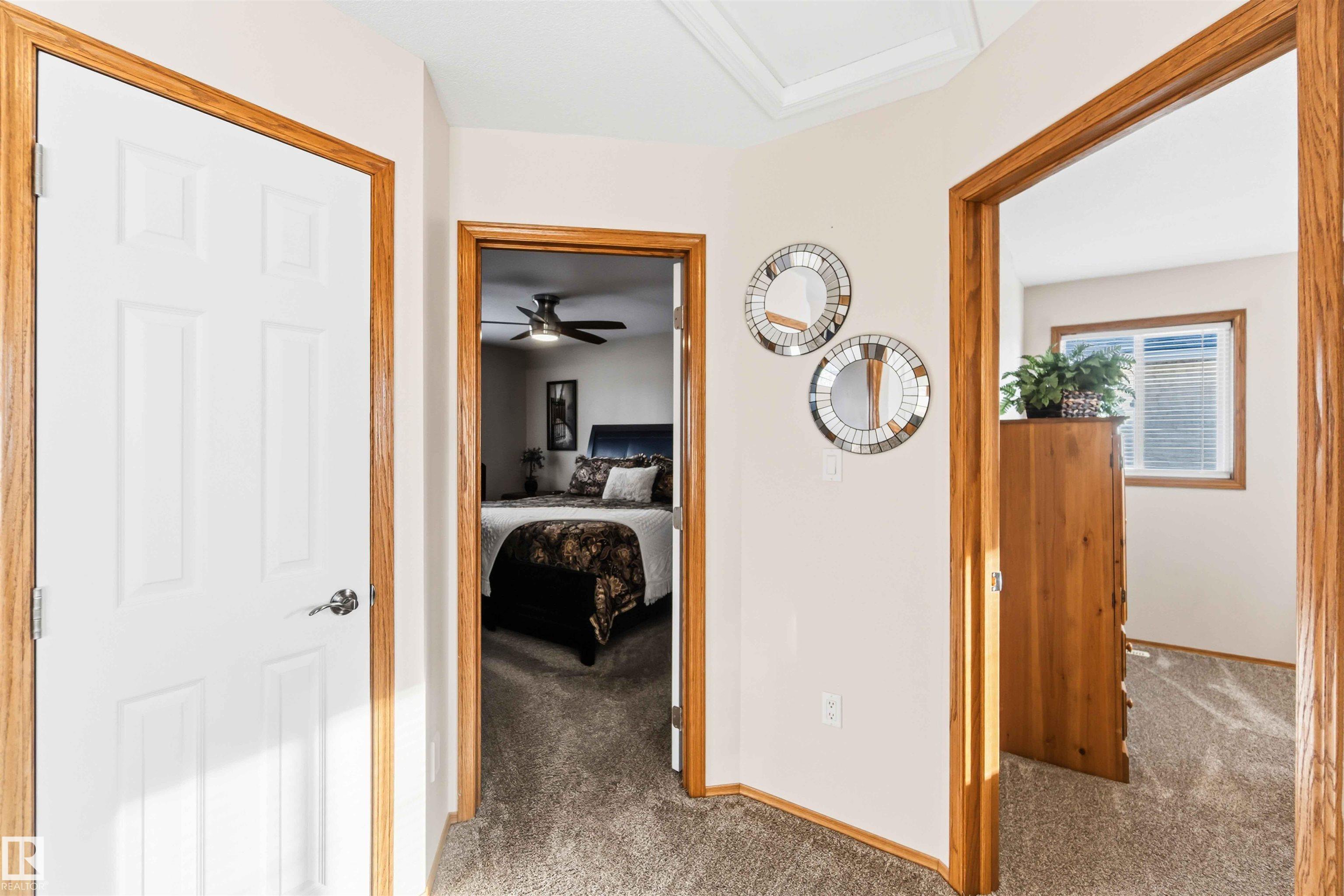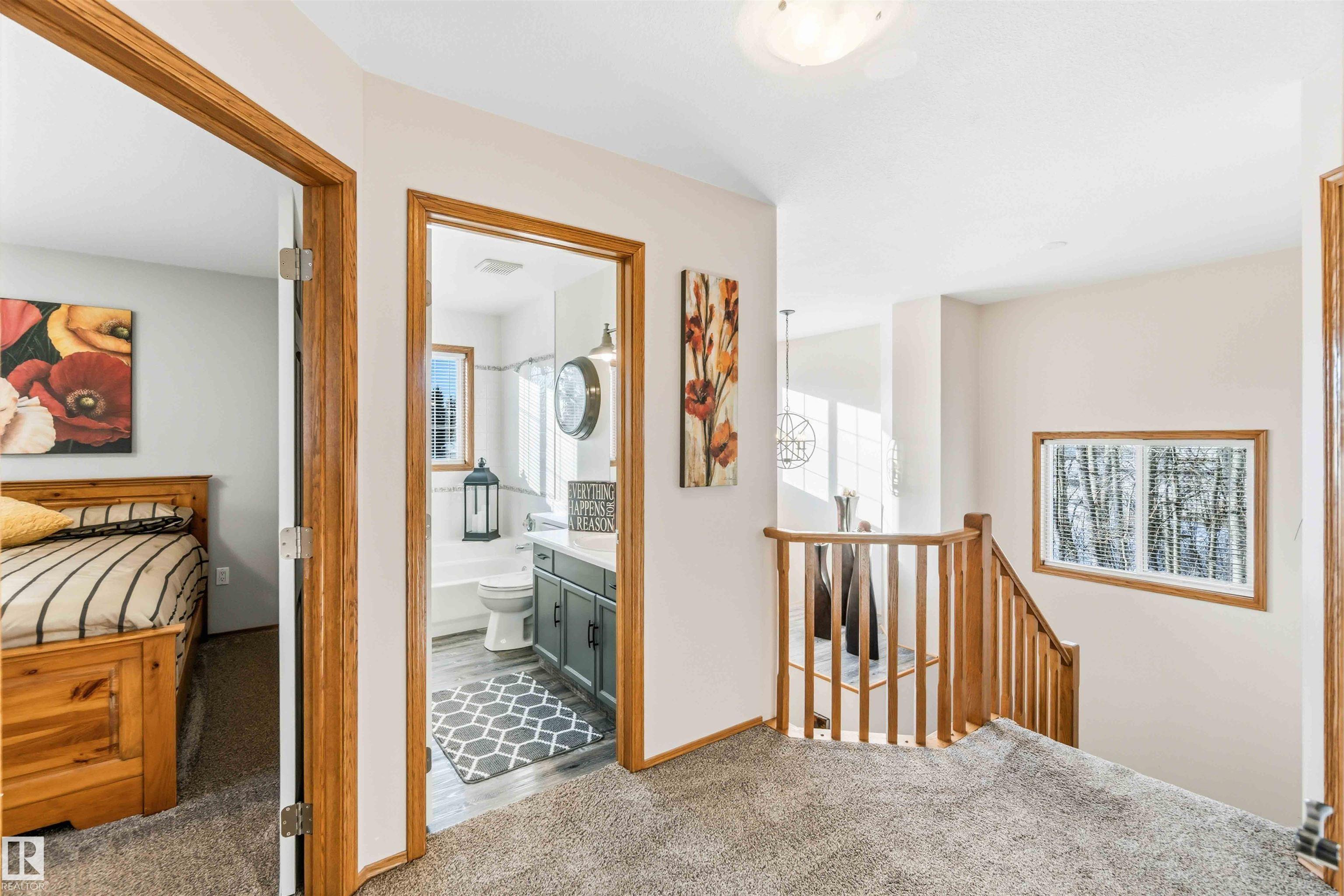 Hard to find a lot like this! This 2-storey, 3-bedroom home with a fully developed basement backs onto a farmer?s field, with a town easement on one side?offering exceptional privacy and minimal neighbors. The main floor features a grand entrance, a bright living room with a corner gas fireplace, and a dining area open to the renovated kitchen with patio doors leading to a covered deck. A convenient 2-piece bathroom and laundry room complete the main level, with direct access to the lower tier of the two-level deck. Upstairs offers three bedrooms, including the primary with a 3-piece ensuite, plus a full 4-piece bathroom. The basement includes a spacious rec room, 3-piece bathroom, large utility room, and ample storage. The heated 2.5-car garage is equipped with a floor drain and extensive cabinetry?perfect for parking vehicles and all your toys.