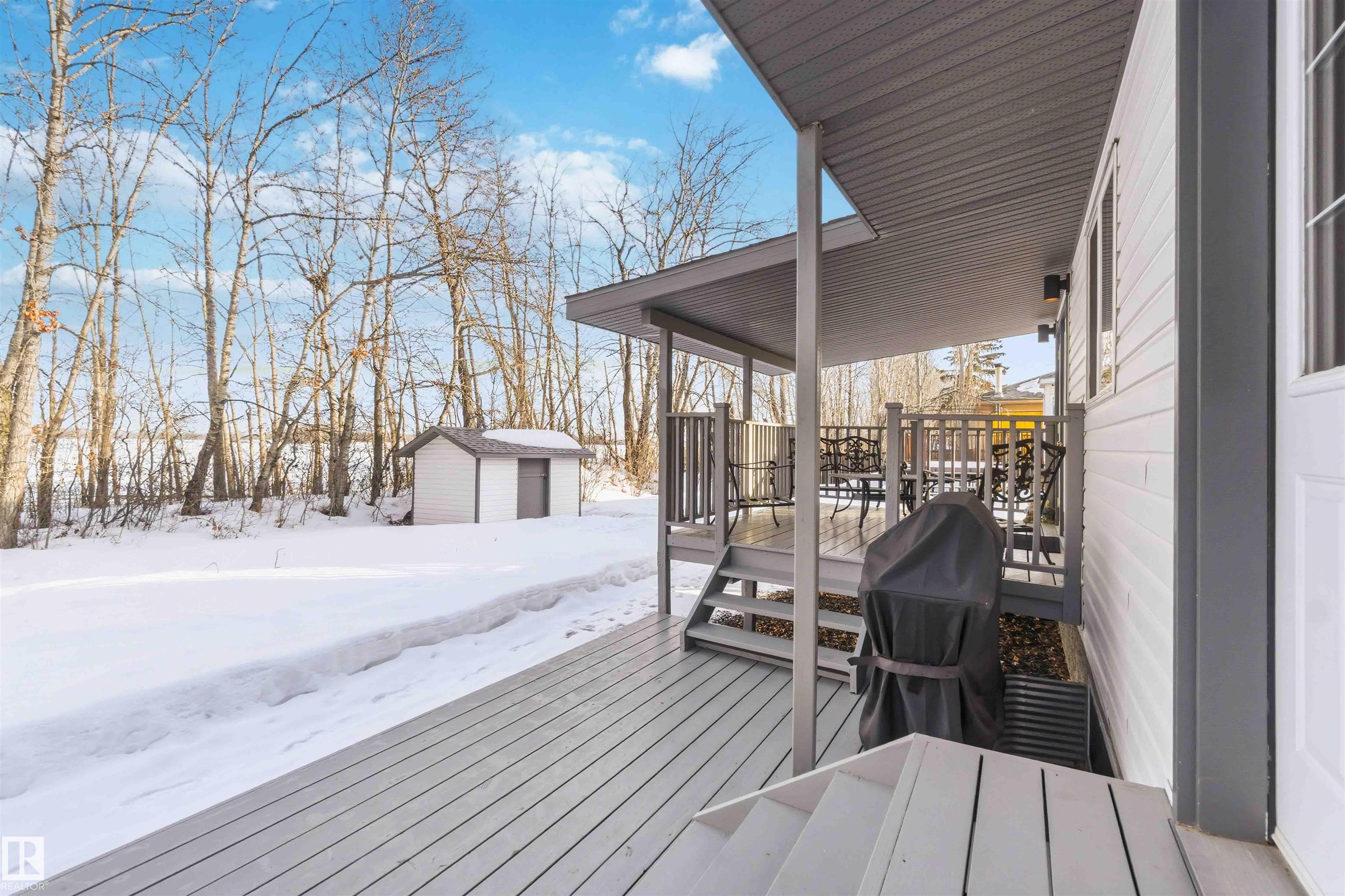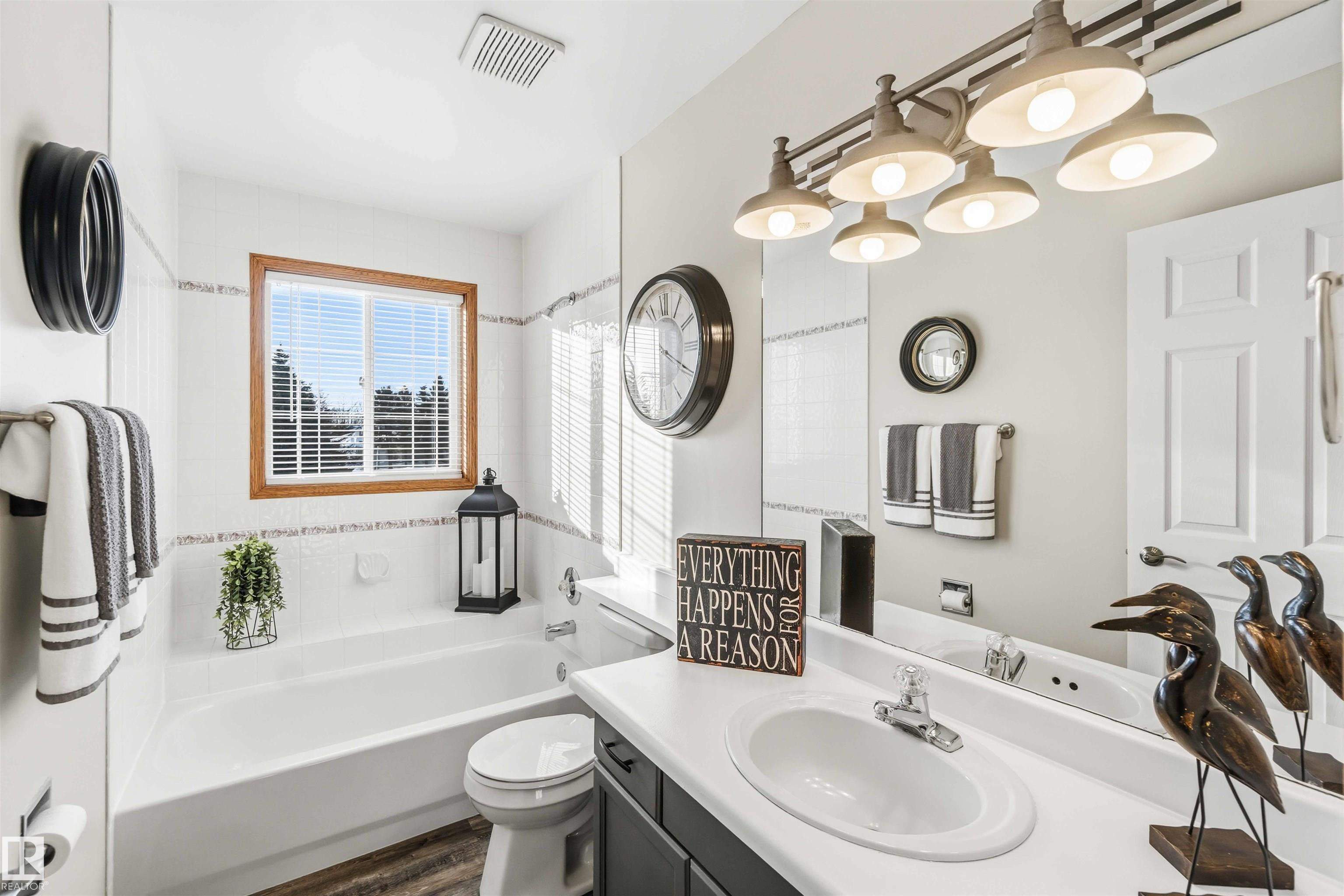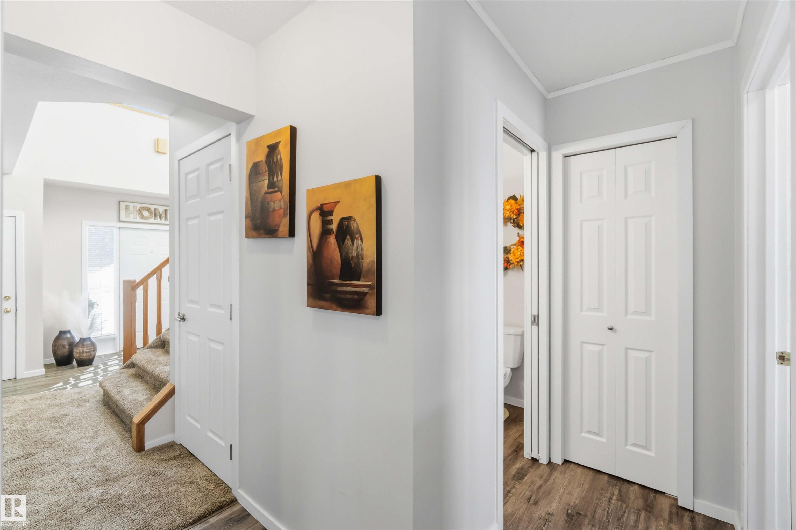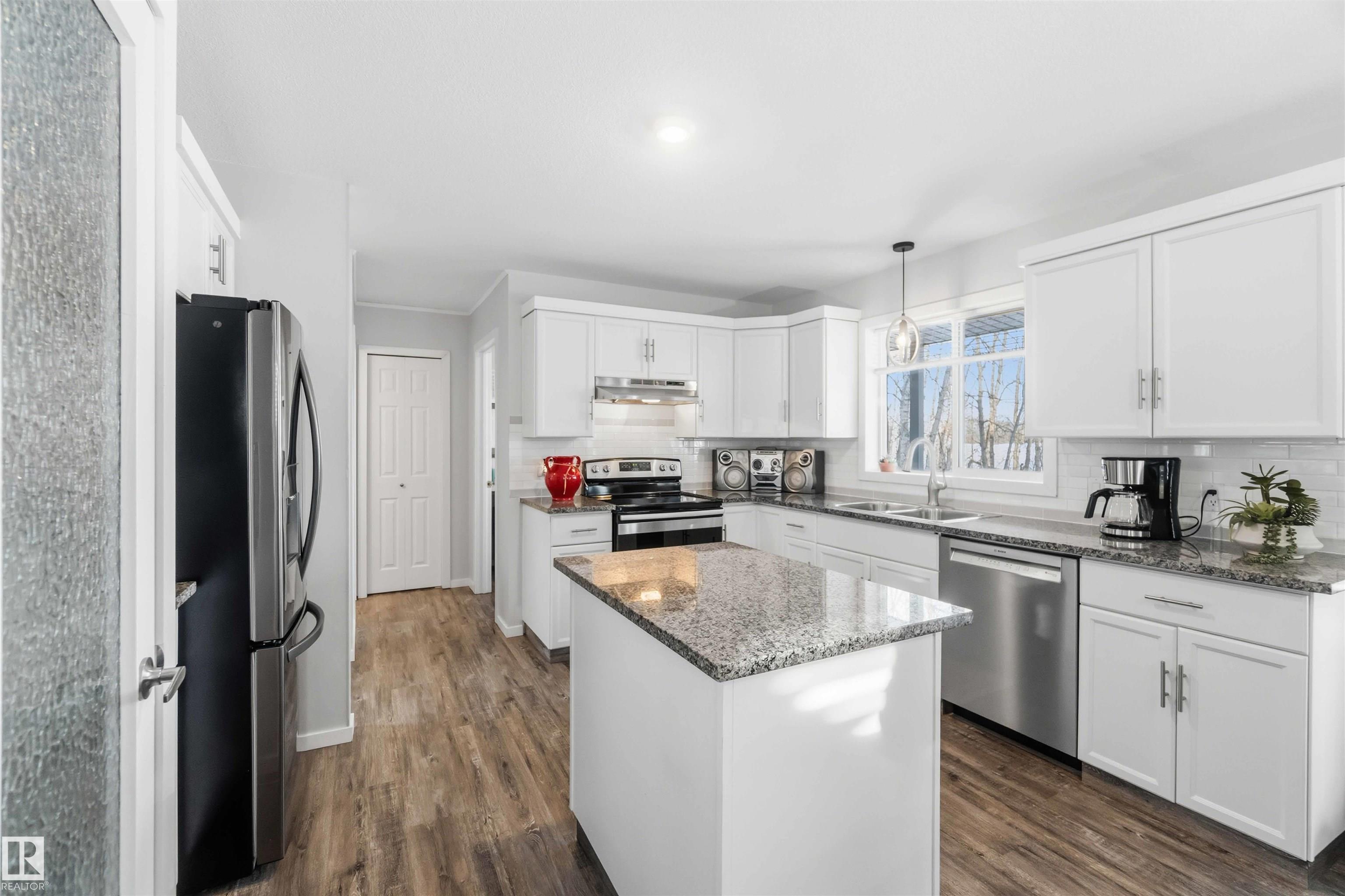 Hard to find a lot like this! This 2-storey, 3-bedroom home with a fully developed basement backs onto a farmer?s field, with a town easement on one side?offering exceptional privacy and minimal neighbors. The main floor features a grand entrance, a bright living room with a corner gas fireplace, and a dining area open to the renovated kitchen with patio doors leading to a covered deck. A convenient 2-piece bathroom and laundry room complete the main level, with direct access to the lower tier of the two-level deck. Upstairs offers three bedrooms, including the primary with a 3-piece ensuite, plus a full 4-piece bathroom. The basement includes a spacious rec room, 3-piece bathroom, large utility room, and ample storage. The heated 2.5-car garage is equipped with a floor drain and extensive cabinetry?perfect for parking vehicles and all your toys.
