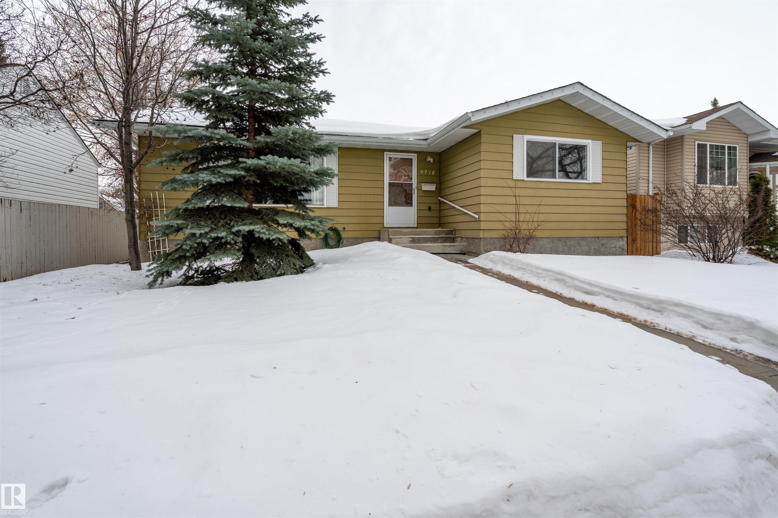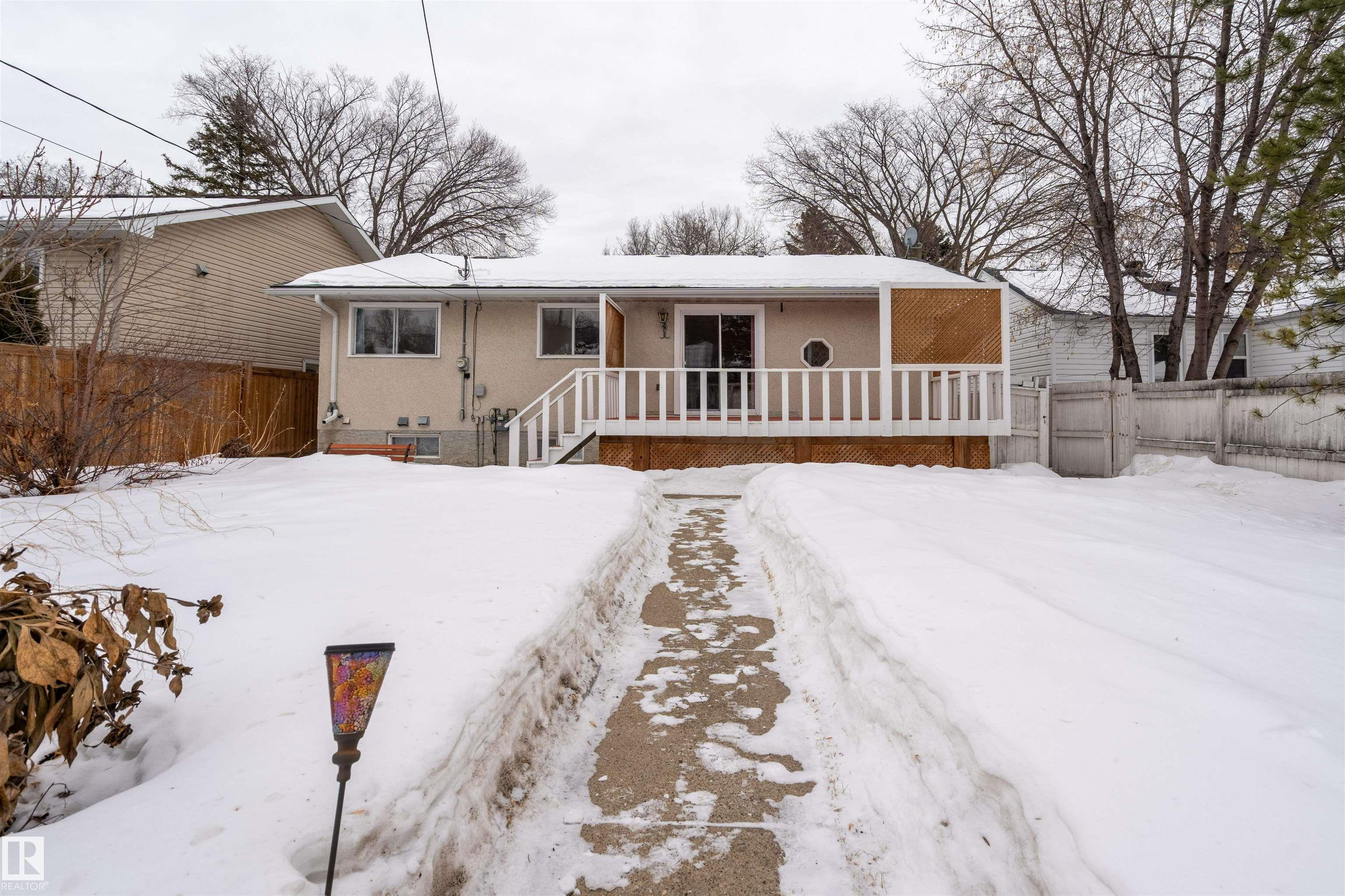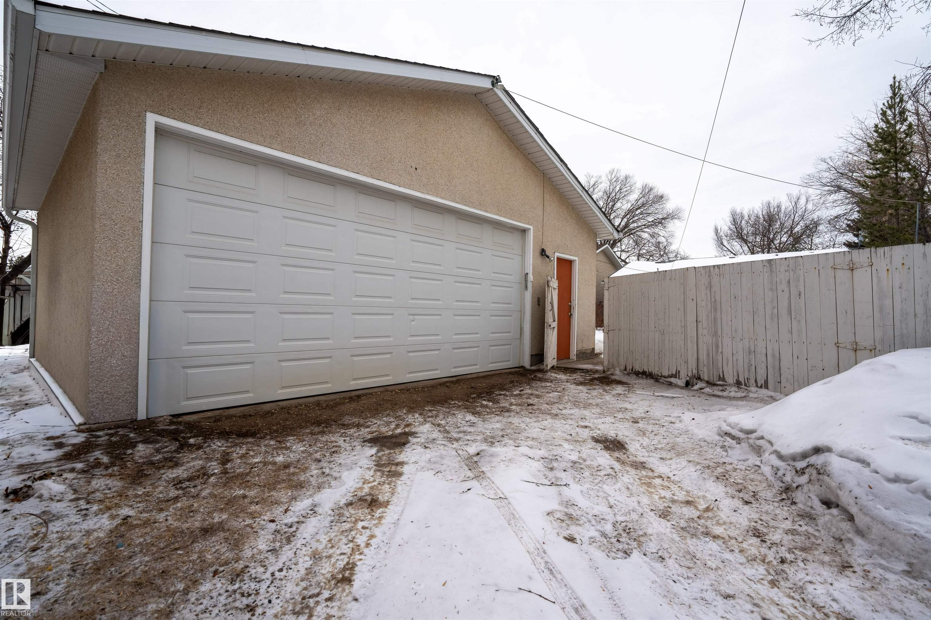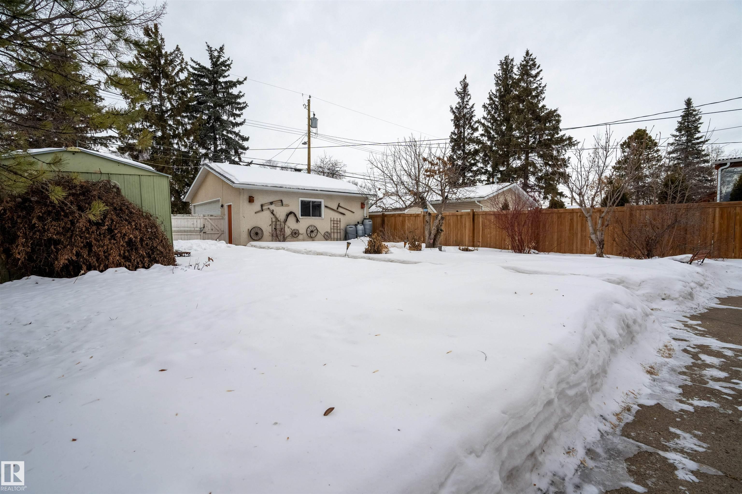 SPACIOUS bungalow on a LARGE LOT in a PRIME west Edmonton location! This well-maintained home offers exceptional space inside and out, ideal for families, hobbyists, or anyone needing room to grow. The bright main floor features a generous living area, functional kitchen, dedicated office, and comfortable primary suite with ENSUITE, while the fully finished basement adds a massive family room, additional bedroom, and impressive storage. Step outside to enjoy the BIG BACK YARD complete with a LARGE DECK, stairs leading to a concrete patio, and a sizeable storage shed. Car enthusiasts and tradespeople will love the OVERSIZED HIGH GARAGE with a 9 FT DOOR ? perfect for trucks, vans, or workshop space. Recent updates include the ROOF, EAVESTROUGHS, and DECK for added peace of mind. Conveniently located near schools, parks, shopping, and major commuter routes, this property delivers space, functionality, and long-term value in an established neighbourhood.