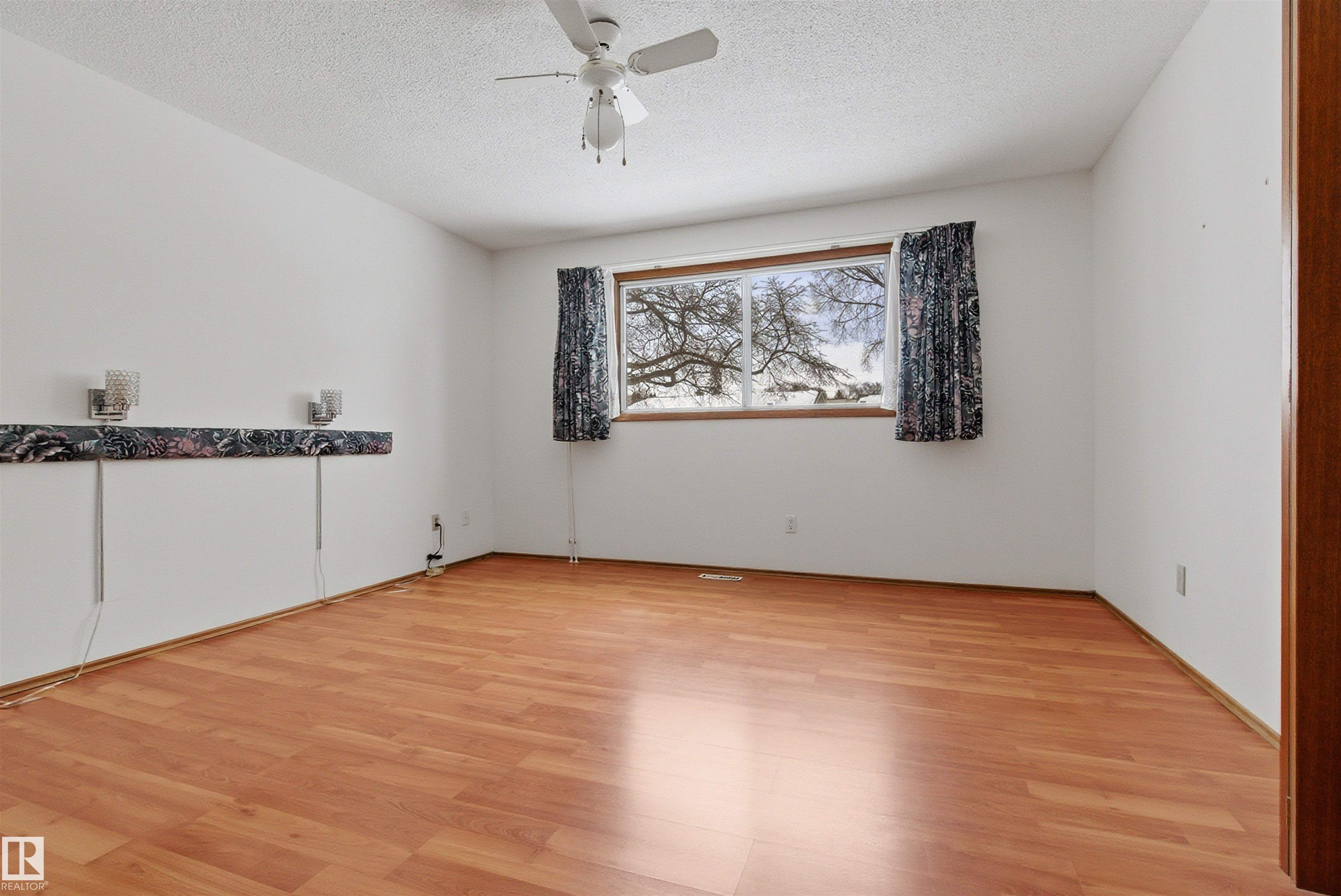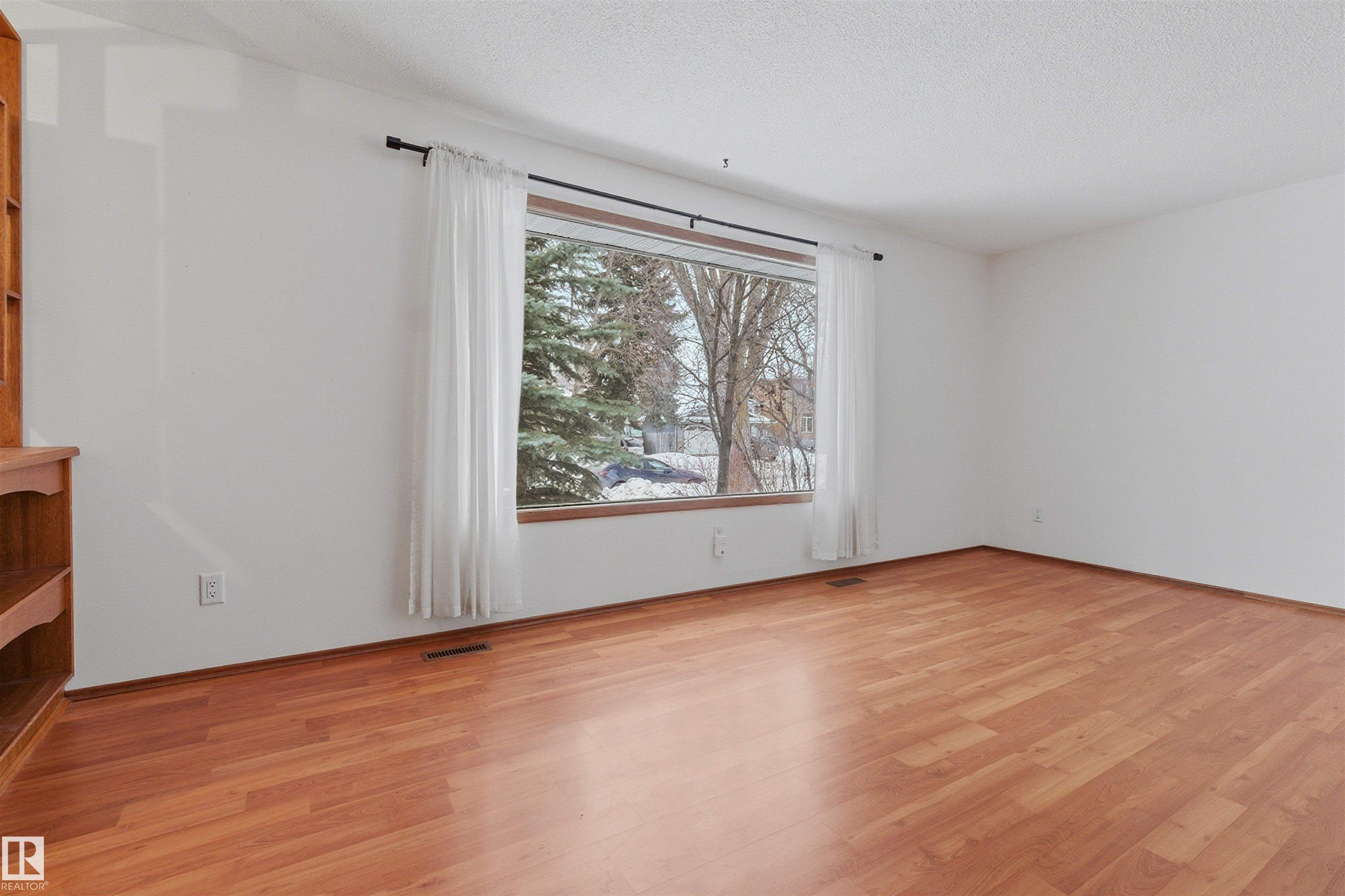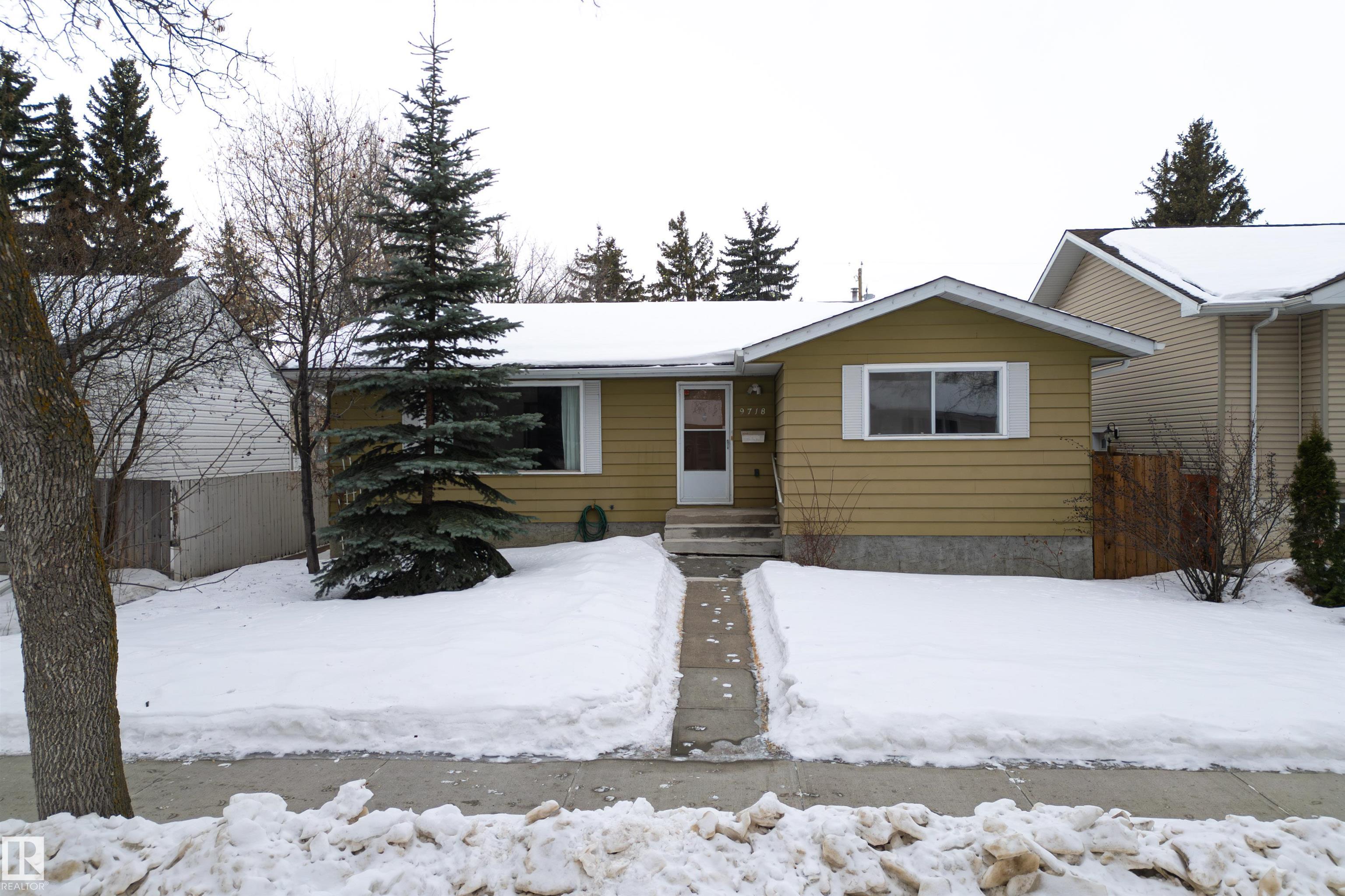 SPACIOUS bungalow on a LARGE LOT in a PRIME west Edmonton location! This well-maintained home offers exceptional space inside and out, ideal for families, hobbyists, or anyone needing room to grow. The bright main floor features a generous living area, functional kitchen, dedicated office, and comfortable primary suite with ENSUITE, while the fully finished basement adds a massive family room, additional bedroom, and impressive storage. Step outside to enjoy the BIG BACK YARD complete with a LARGE DECK, stairs leading to a concrete patio, and a sizeable storage shed. Car enthusiasts and tradespeople will love the OVERSIZED HIGH GARAGE with a 9 FT DOOR ? perfect for trucks, vans, or workshop space. Recent updates include the ROOF, EAVESTROUGHS, and DECK for added peace of mind. Conveniently located near schools, parks, shopping, and major commuter routes, this property delivers space, functionality, and long-term value in an established neighbourhood.