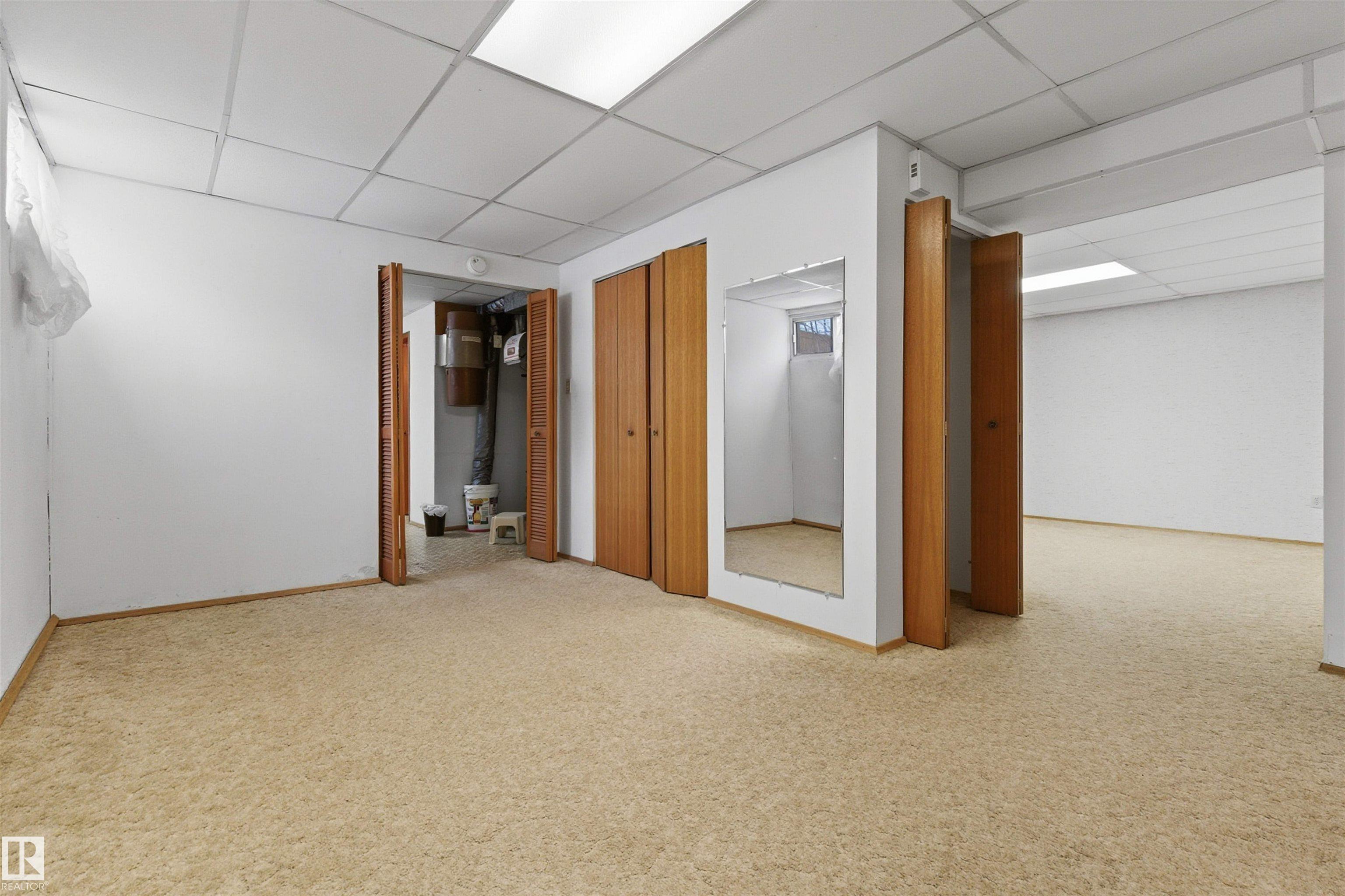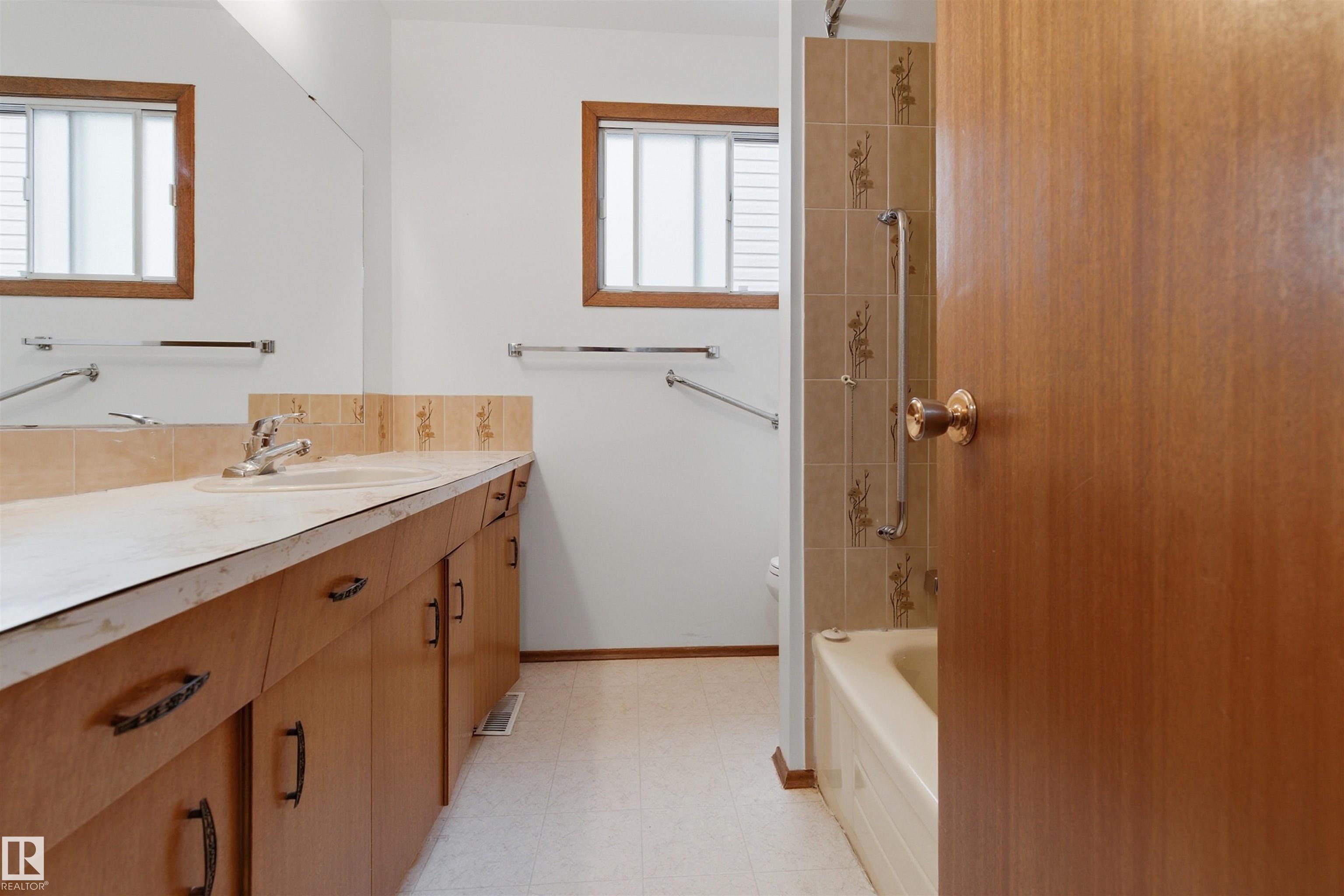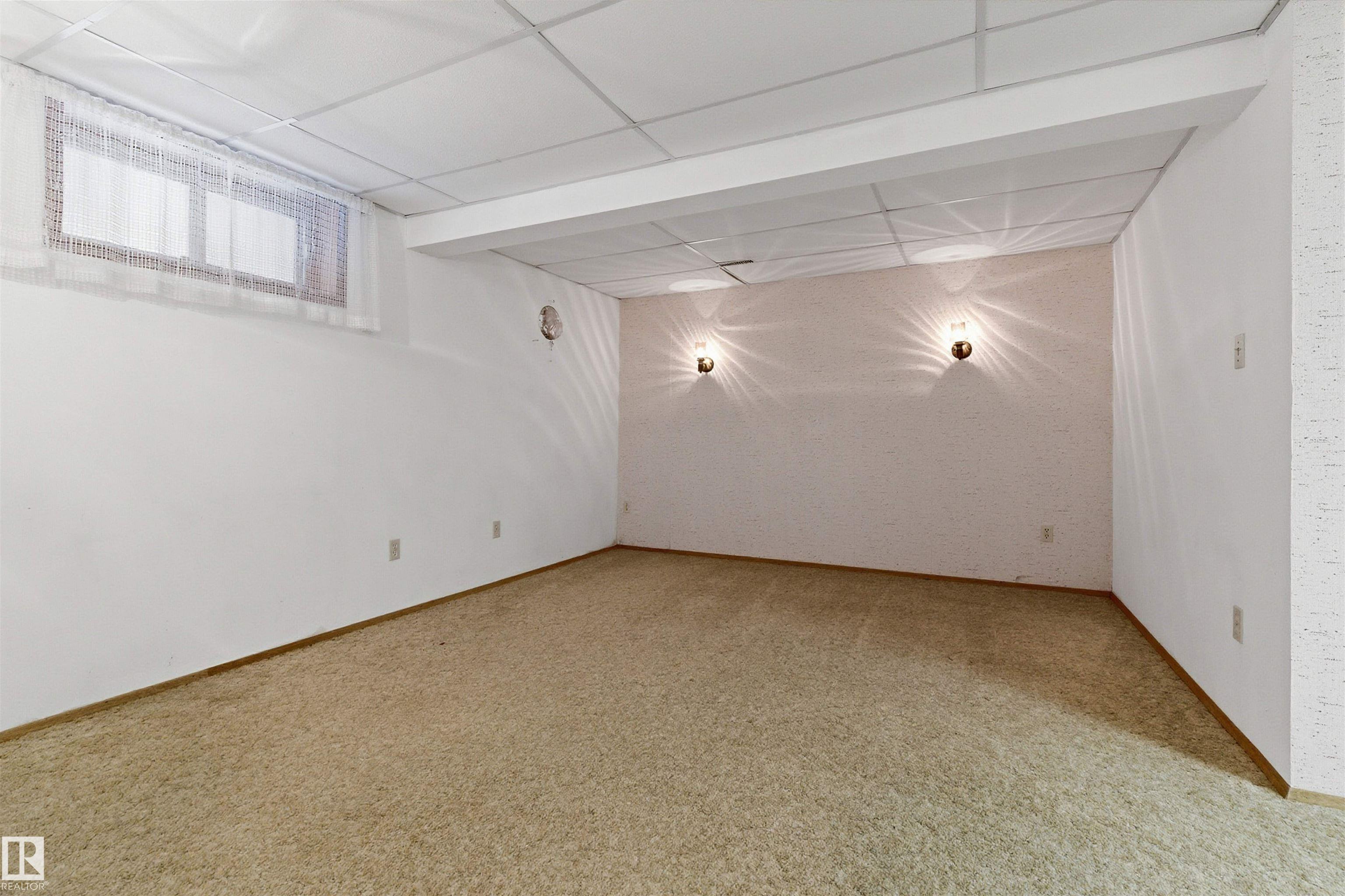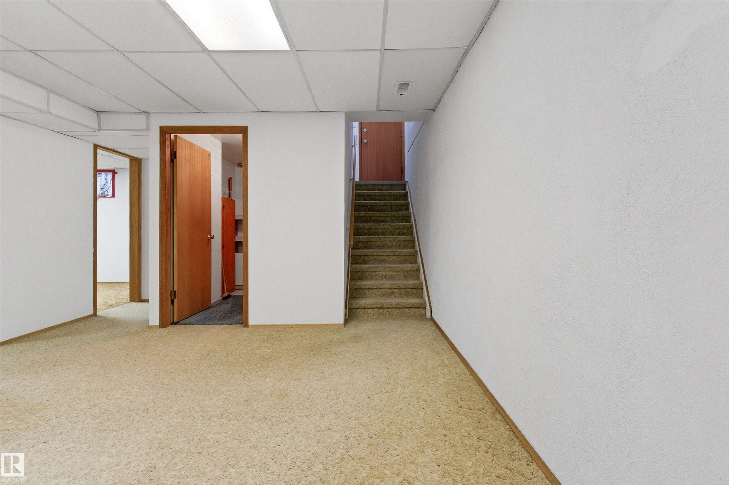SPACIOUS bungalow on a LARGE LOT in a PRIME west Edmonton location! This well-maintained home offers exceptional space inside and out, ideal for families, hobbyists, or anyone needing room to grow. The bright main floor features a generous living area, functional kitchen, dedicated office, and comfortable primary suite with ENSUITE, while the fully finished basement adds a massive family room, additional bedroom, and impressive storage. Step outside to enjoy the BIG BACK YARD complete with a LARGE DECK, stairs leading to a concrete patio, and a sizeable storage shed. Car enthusiasts and tradespeople will love the OVERSIZED HIGH GARAGE with a 9 FT DOOR ? perfect for trucks, vans, or workshop space. Recent updates include the ROOF, EAVESTROUGHS, and DECK for added peace of mind. Conveniently located near schools, parks, shopping, and major commuter routes, this property delivers space, functionality, and long-term value in an established neighbourhood.