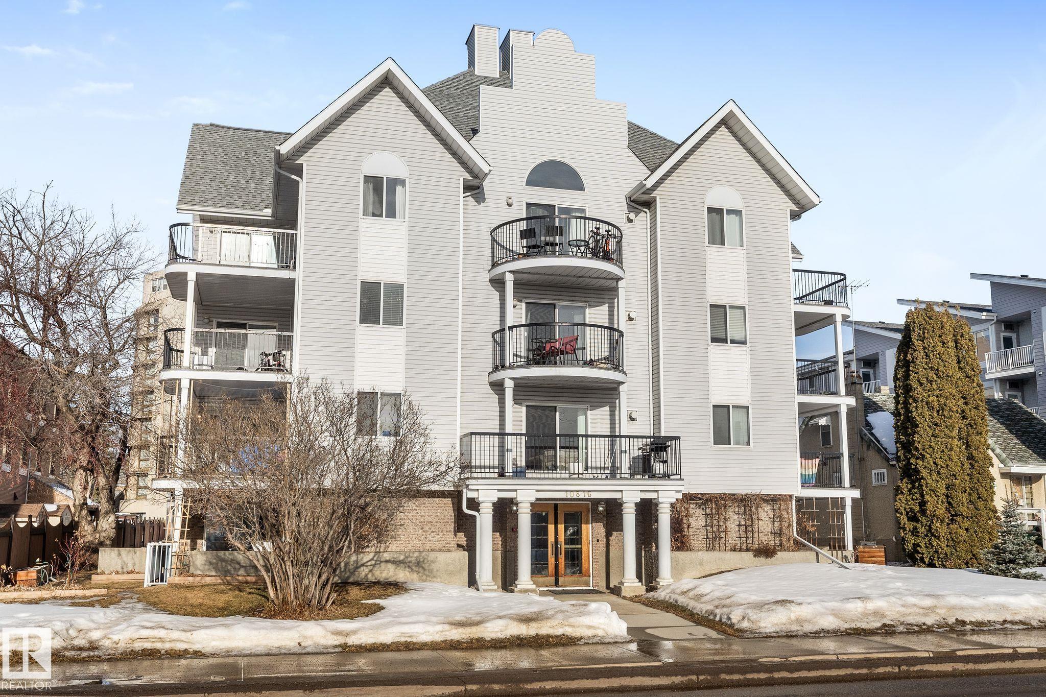 Welcome to this amazing 2 bedroom, 2 bathroom condo located just south of the University in the highly desirable Queen Alexandra community. Nestled in a mature, tree-lined neighbourhood, this well-maintained home offers the perfect blend of comfort, convenience, and location. Enjoy a bright south-east exposure that floods the space with natural sunlight throughout the day, creating a warm and inviting atmosphere. The functional layout features spacious bedrooms, in-suite laundry, and a thoughtfully designed living area that opens onto a large private deck?ideal for morning coffee or relaxing evenings. A dedicated parking stall adds everyday convenience. Situated within walking distance to countless amenities, including shops, restaurants, cafes, transit, and green spaces, this location is unbeatable for professionals, or students. Close proximity to the University of Alberta, Whyte Avenue, and downtown makes this an exceptional opportunity to own in one of Edmonton?s most vibrant communities.