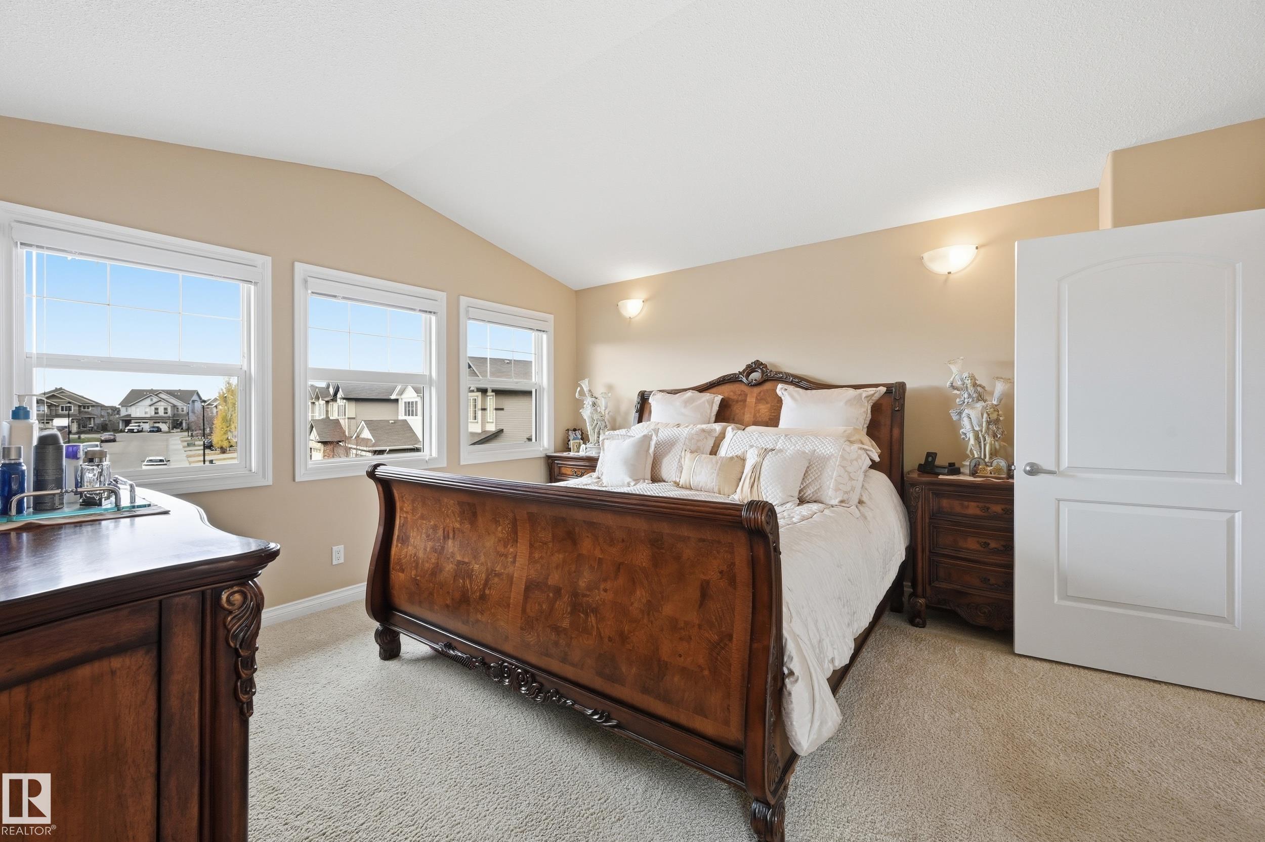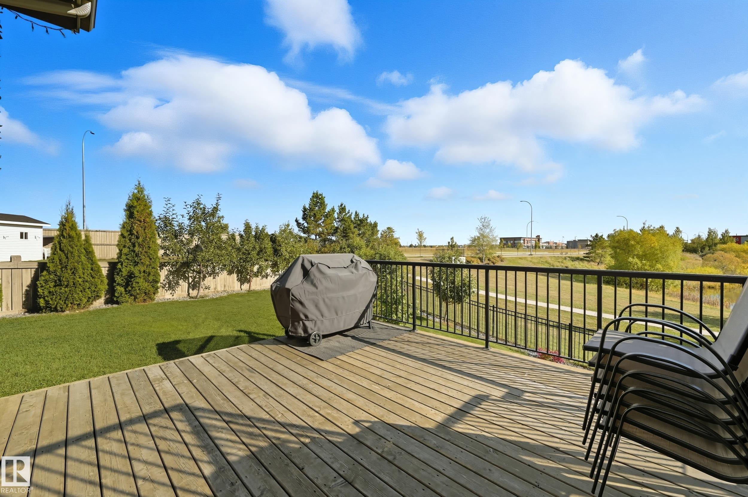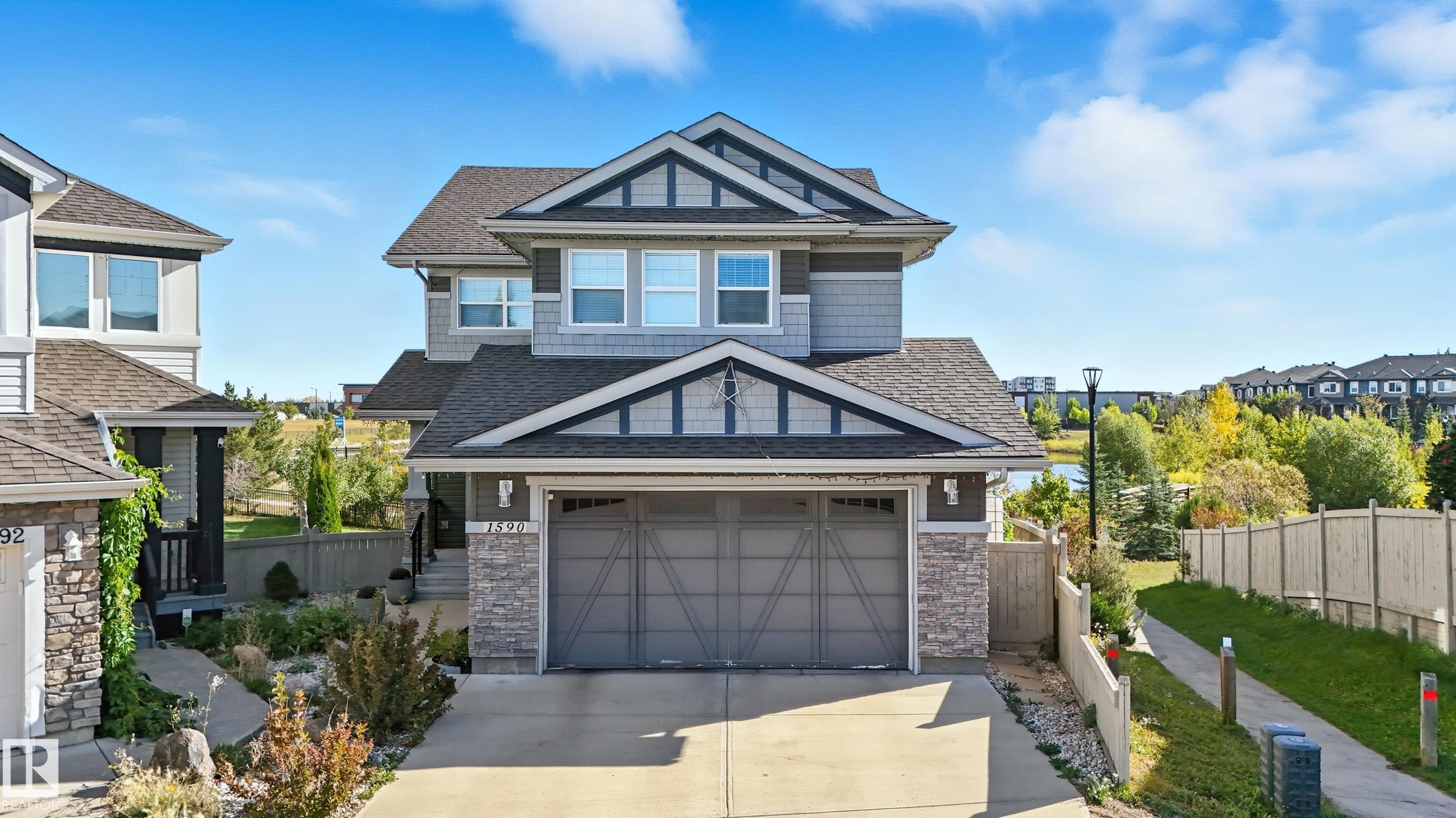 Welcome to this stunning custom-built property offering over 2,700 sqft of beautifully finished living space on a wide lot. From the moment you step inside, the spacious foyer sets the tone for this warm and inviting home. The open-concept main floor seamlessly connects the living room, dining area, and kitchen?flooded with natural light and framed by expansive lake views through thoughtfully added windows. Upstairs, a bright hallway leads to a large bonus room overlooking the pond, two spacious bedrooms, and a luxurious primary suite with a walk-in closet and a serene ensuite. The fully finished basement offers a generous rec room with a wet bar, full bath, and additional bedroom. Outside, enjoy your massive two-tiered deck?perfect for BBQs, gatherings, or simply relaxing with lakeside views. The landscaped yard features irrigation, a retaining wall, and direct access to walking trails. An oversized garage and access to Chapelle?s recreation center complete this perfect package.