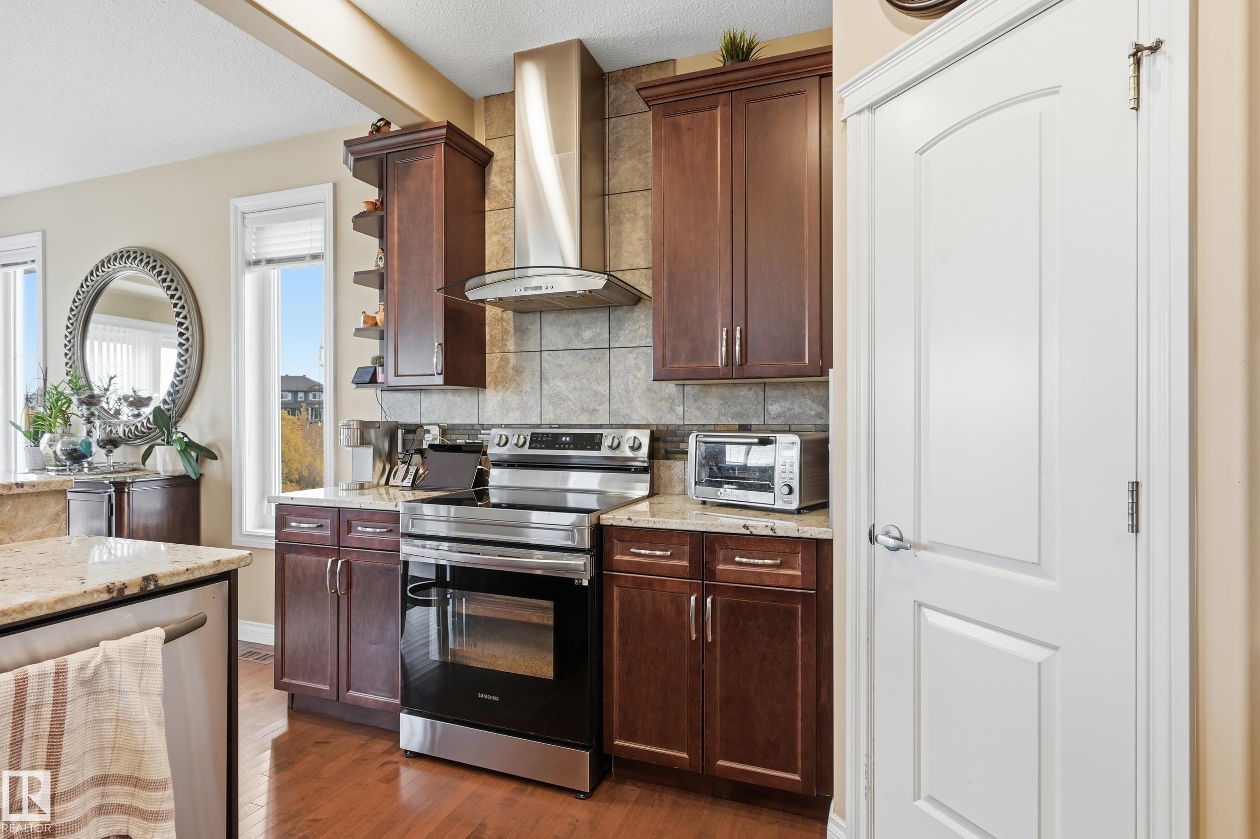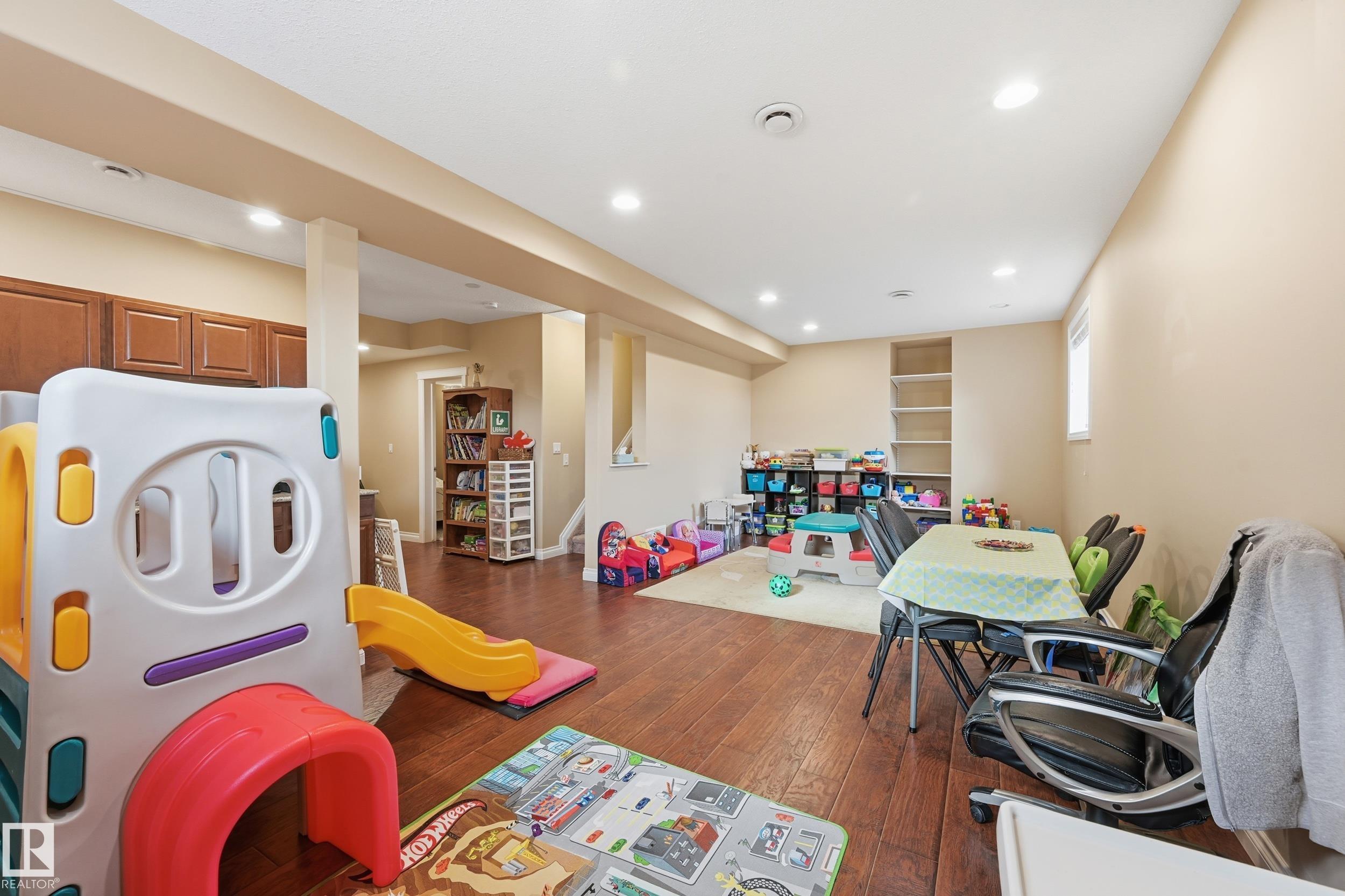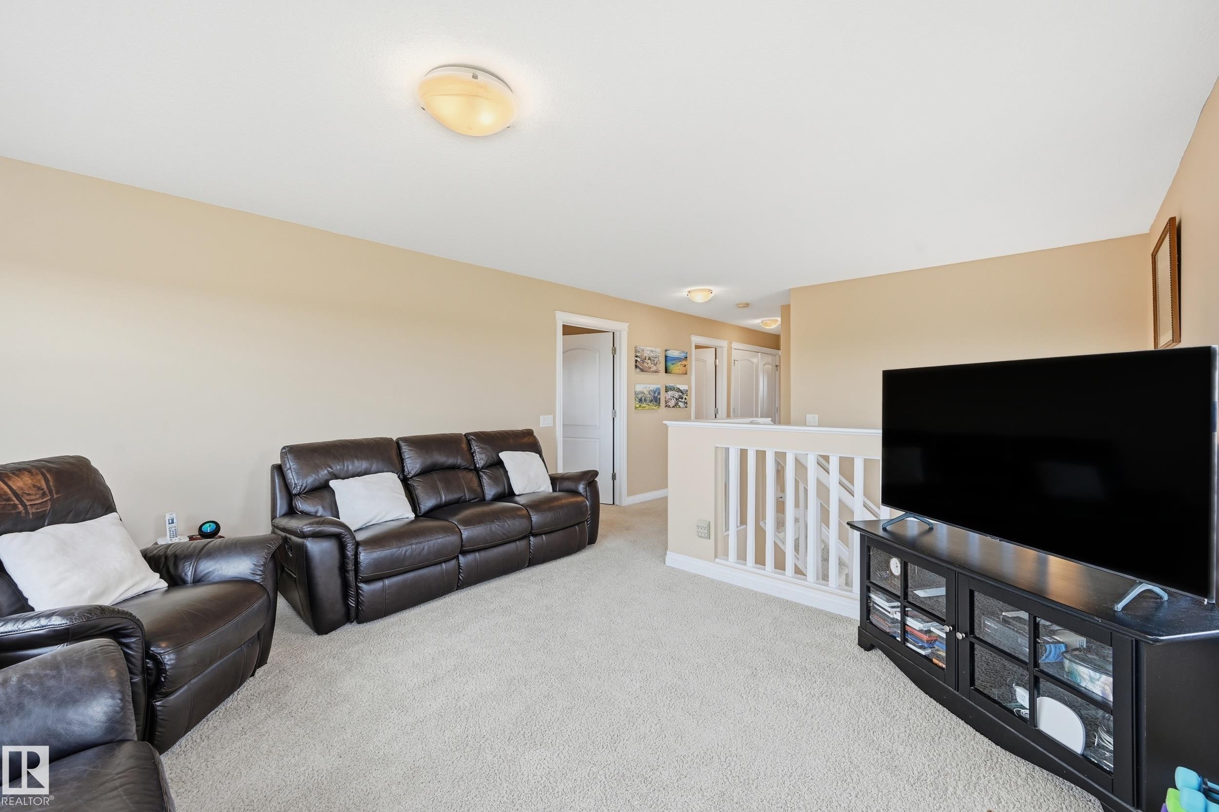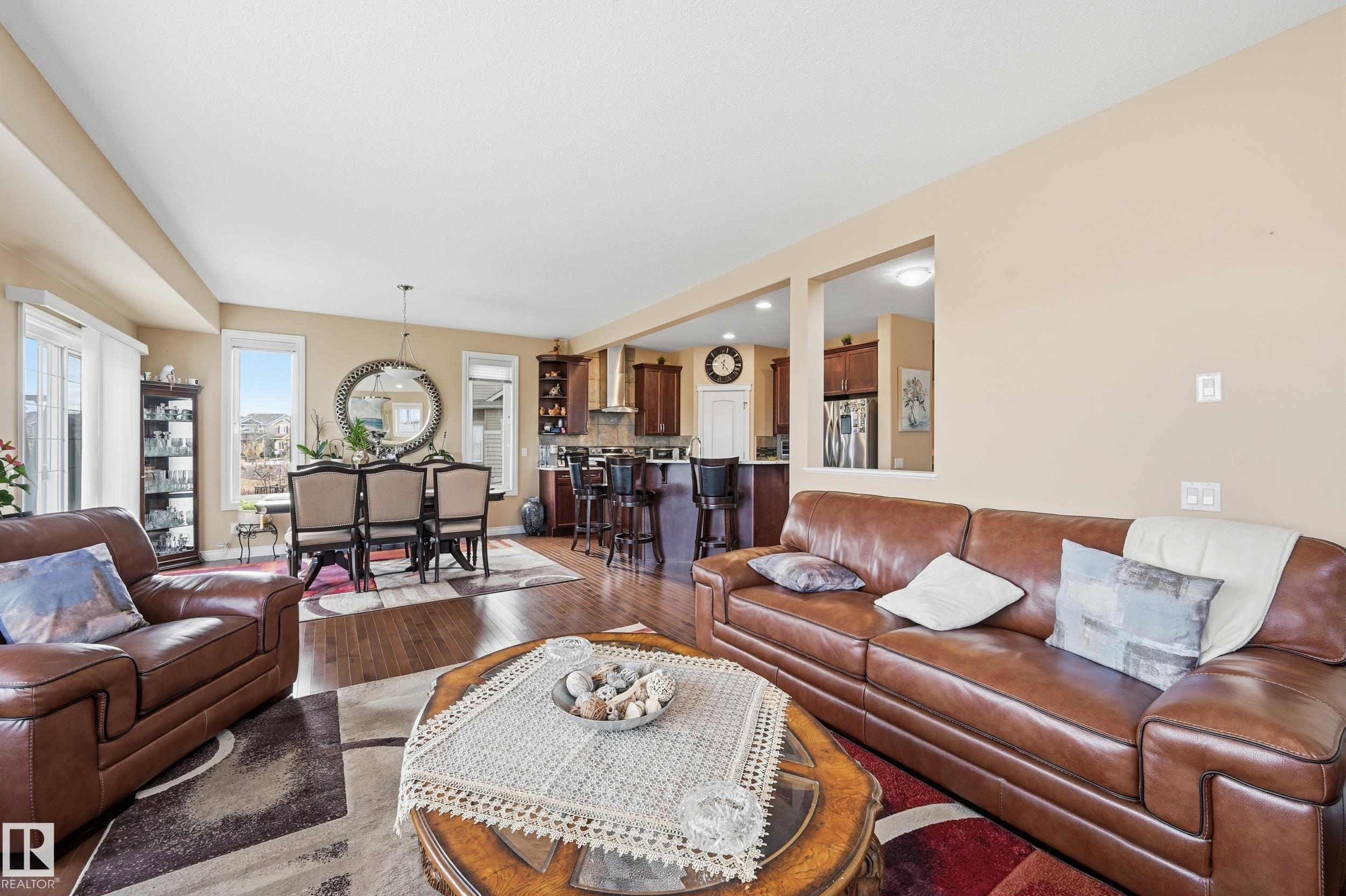 Welcome to this stunning custom-built property offering over 2,700 sqft of beautifully finished living space on a wide lot. From the moment you step inside, the spacious foyer sets the tone for this warm and inviting home. The open-concept main floor seamlessly connects the living room, dining area, and kitchen?flooded with natural light and framed by expansive lake views through thoughtfully added windows. Upstairs, a bright hallway leads to a large bonus room overlooking the pond, two spacious bedrooms, and a luxurious primary suite with a walk-in closet and a serene ensuite. The fully finished basement offers a generous rec room with a wet bar, full bath, and additional bedroom. Outside, enjoy your massive two-tiered deck?perfect for BBQs, gatherings, or simply relaxing with lakeside views. The landscaped yard features irrigation, a retaining wall, and direct access to walking trails. An oversized garage and access to Chapelle?s recreation center complete this perfect package.