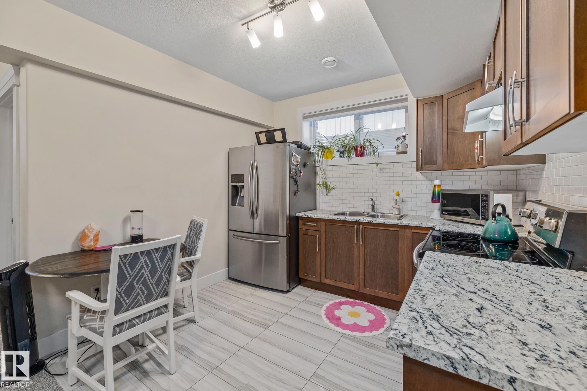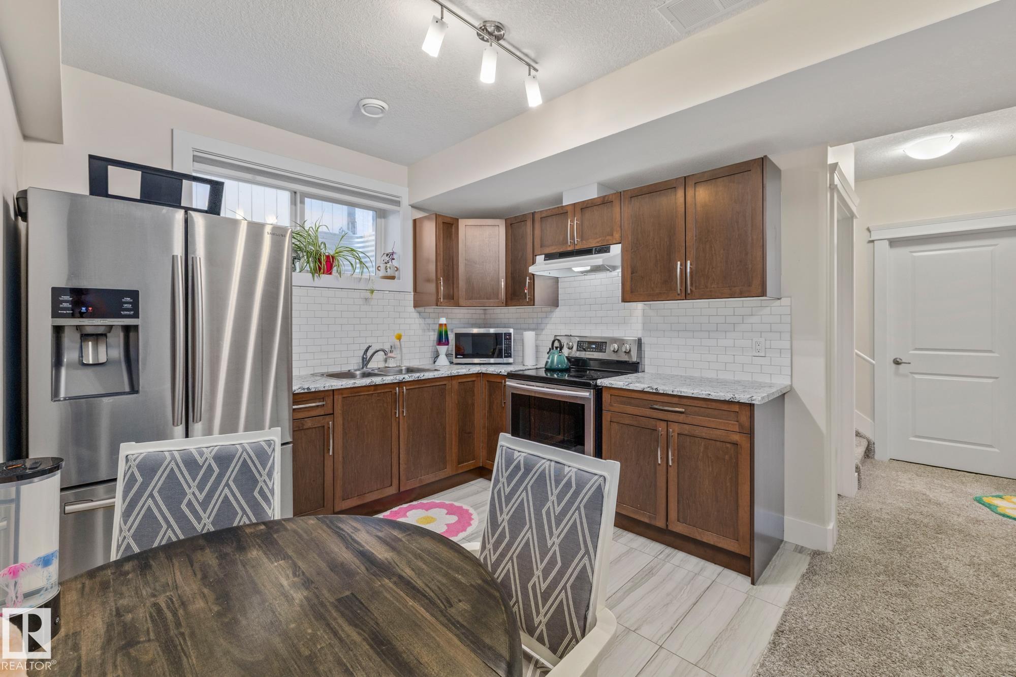 Welcome to this executive-style half duplex located in the family-friendly community of McConachie. Offering over 1,700 sq ft of above-grade living space, this home features a functional and open layout designed for everyday family living. The main floor showcases a bright kitchen with ample storage, open sightlines to the dining and living areas, and a welcoming space to gather and entertain. Upstairs you?ll find two additional bedrooms along with a spacious primary bedroom complete with a walk-in closet and ensuite. The fully finished basement includes a separate entrance and in-law suite, providing excellent flexibility for extended family, guests, or future needs. Enjoy time outdoors on the back deck and take advantage of the convenient location close to parks, schools, shopping, and major routes. A great opportunity for families seeking space, functionality, and long-term value.