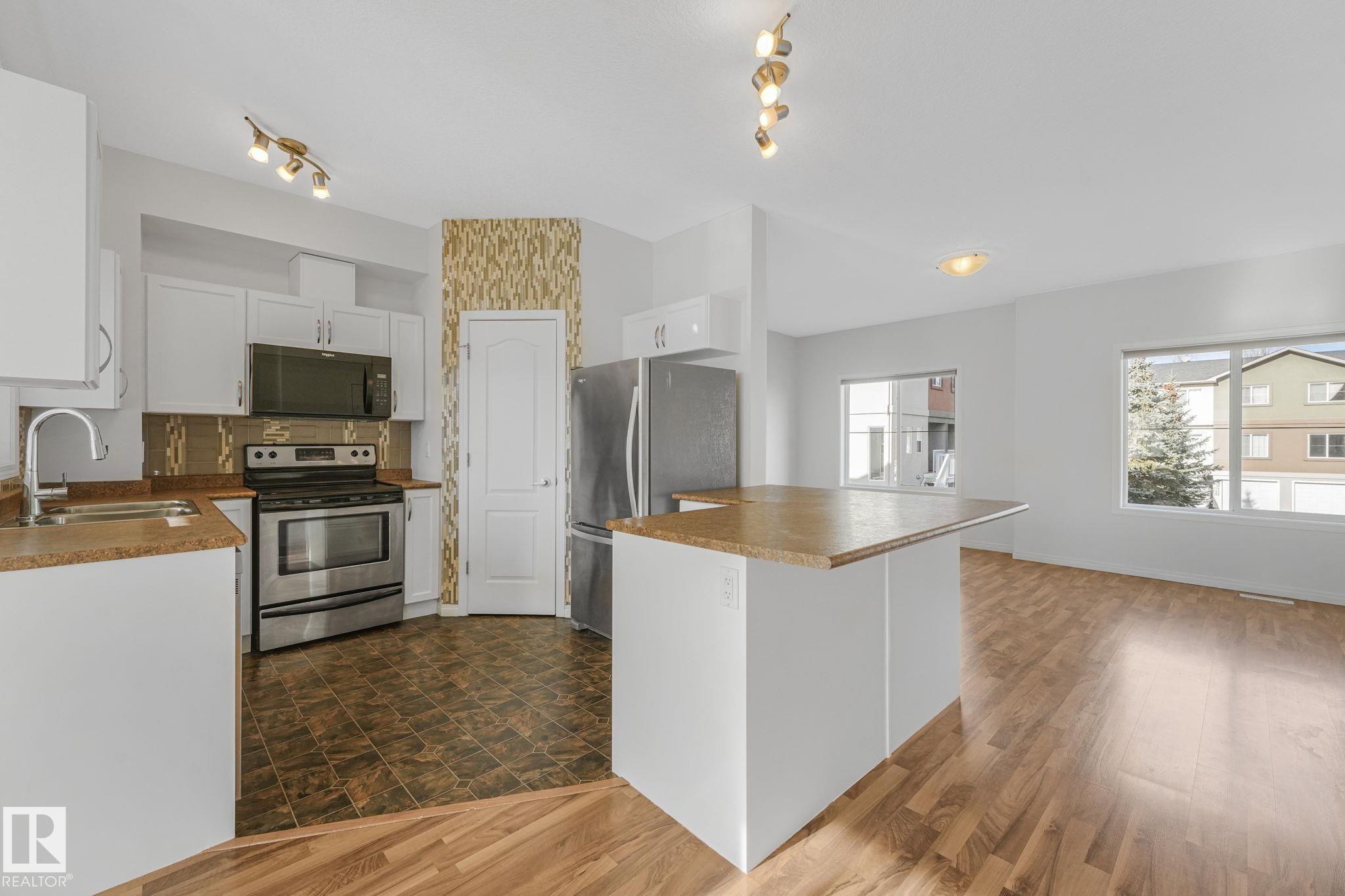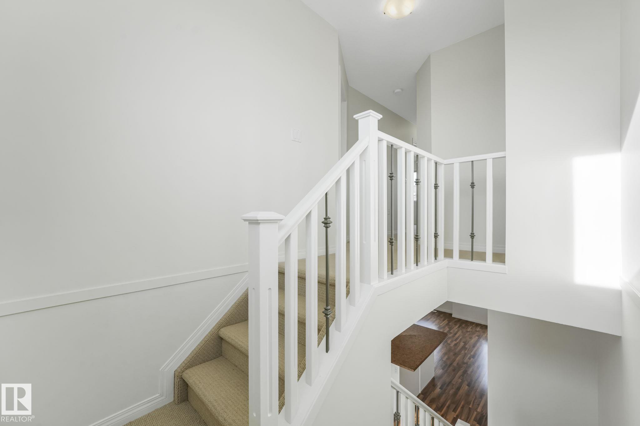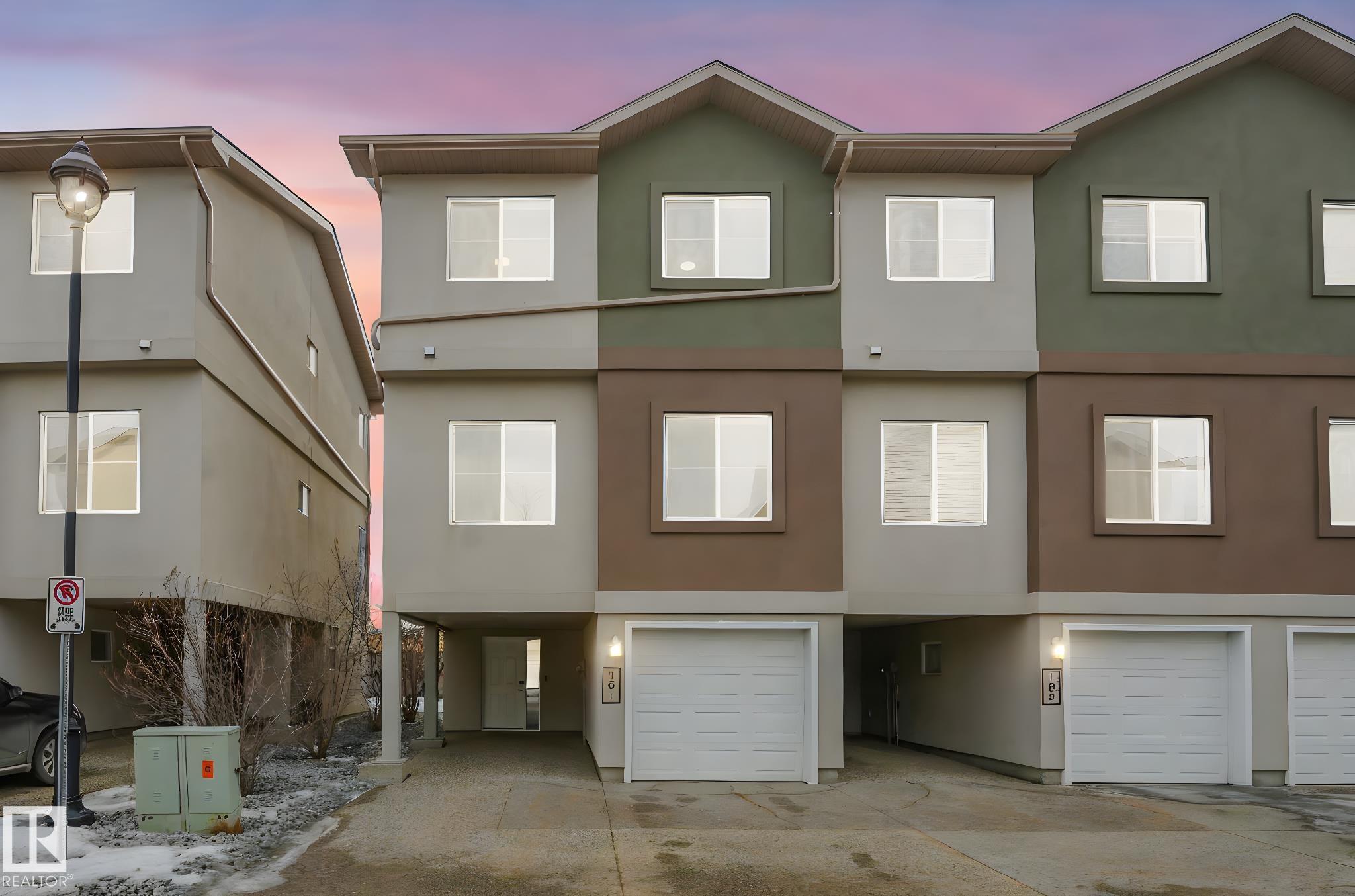 WOW.. Have you ever thought you could live in a 3 bedroom townhouse & have a garage, a carport & a double parking pad? Total of 4 PARKING SPOTS! Check out this beauty. With almost 1590 sq ft of living space this one will check all the boxes. Entering the unit just off the garage is the utility, laundry, storage & access to the back yard. The main level is bright with open concept & lots of room to entertain. The kitchen has an eating nook, stainless steel appliances, pantry & a covered deck for BBQ'S. Just off the kitchen the large living area is great for entertaining, relaxing & Movie nights on the Big Screen. This unit has been completely painted throughout as well as new carpets on the upper level. A two piece bath finishes this level. The upper floor has good size rooms. The master bedroom has plenty of room for a "King Size bed. A large walkin closet provides ample storage & enjoy your 3 piece ensuite. Down the hall there are 2 more bedrooms & a 4 piece bath. Some photos are virtually staged