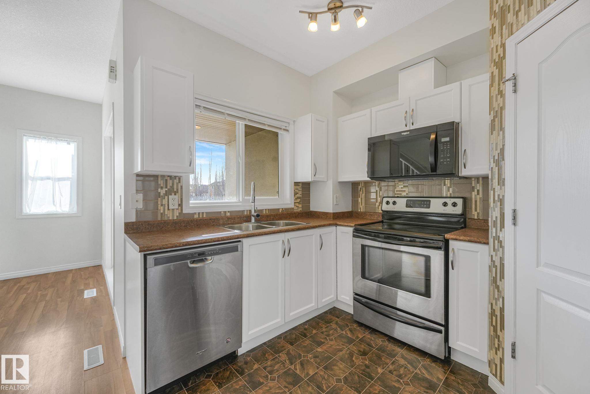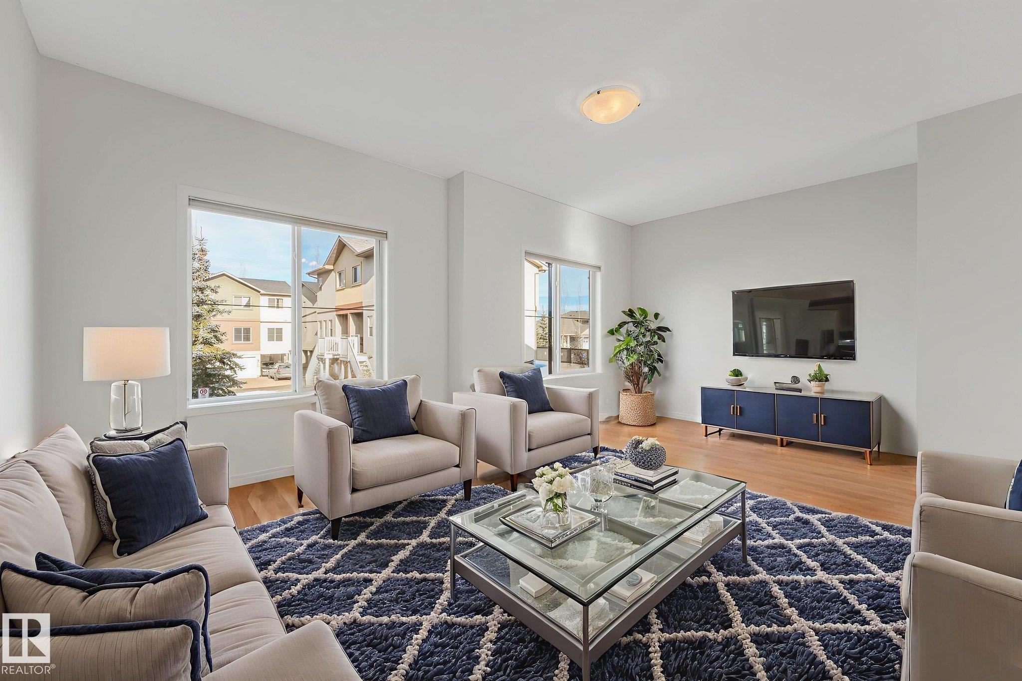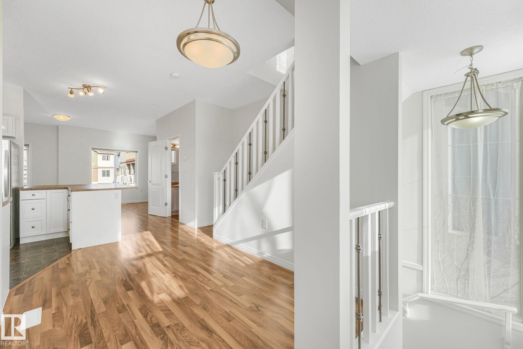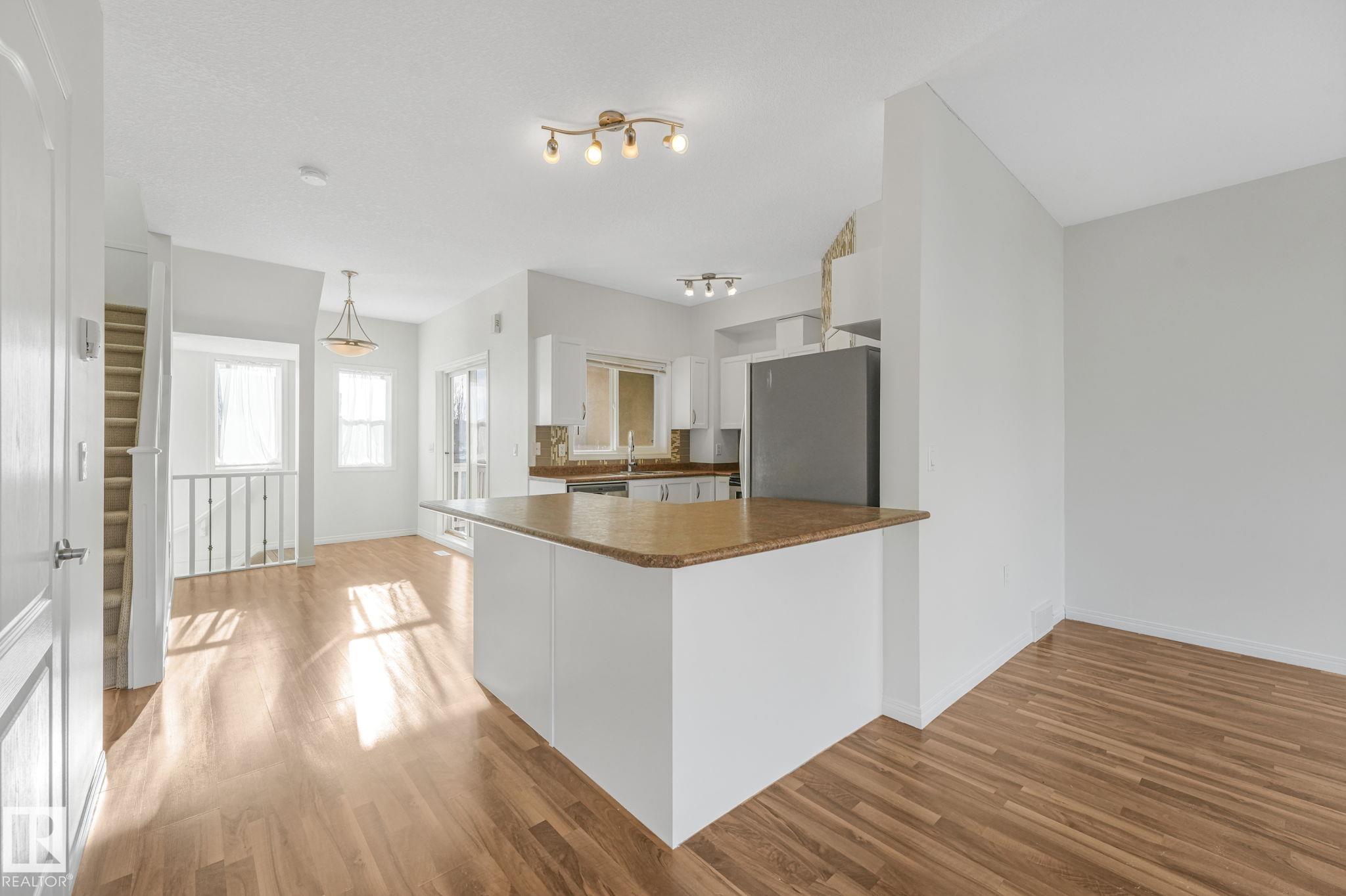 WOW.. Have you ever thought you could live in a 3 bedroom townhouse & have a garage, a carport & a double parking pad? Total of 4 PARKING SPOTS! Check out this beauty. With almost 1590 sq ft of living space this one will check all the boxes. Entering the unit just off the garage is the utility, laundry, storage & access to the back yard. The main level is bright with open concept & lots of room to entertain. The kitchen has an eating nook, stainless steel appliances, pantry & a covered deck for BBQ'S. Just off the kitchen the large living area is great for entertaining, relaxing & Movie nights on the Big Screen. This unit has been completely painted throughout as well as new carpets on the upper level. A two piece bath finishes this level. The upper floor has good size rooms. The master bedroom has plenty of room for a "King Size bed. A large walkin closet provides ample storage & enjoy your 3 piece ensuite. Down the hall there are 2 more bedrooms & a 4 piece bath. Some photos are virtually staged