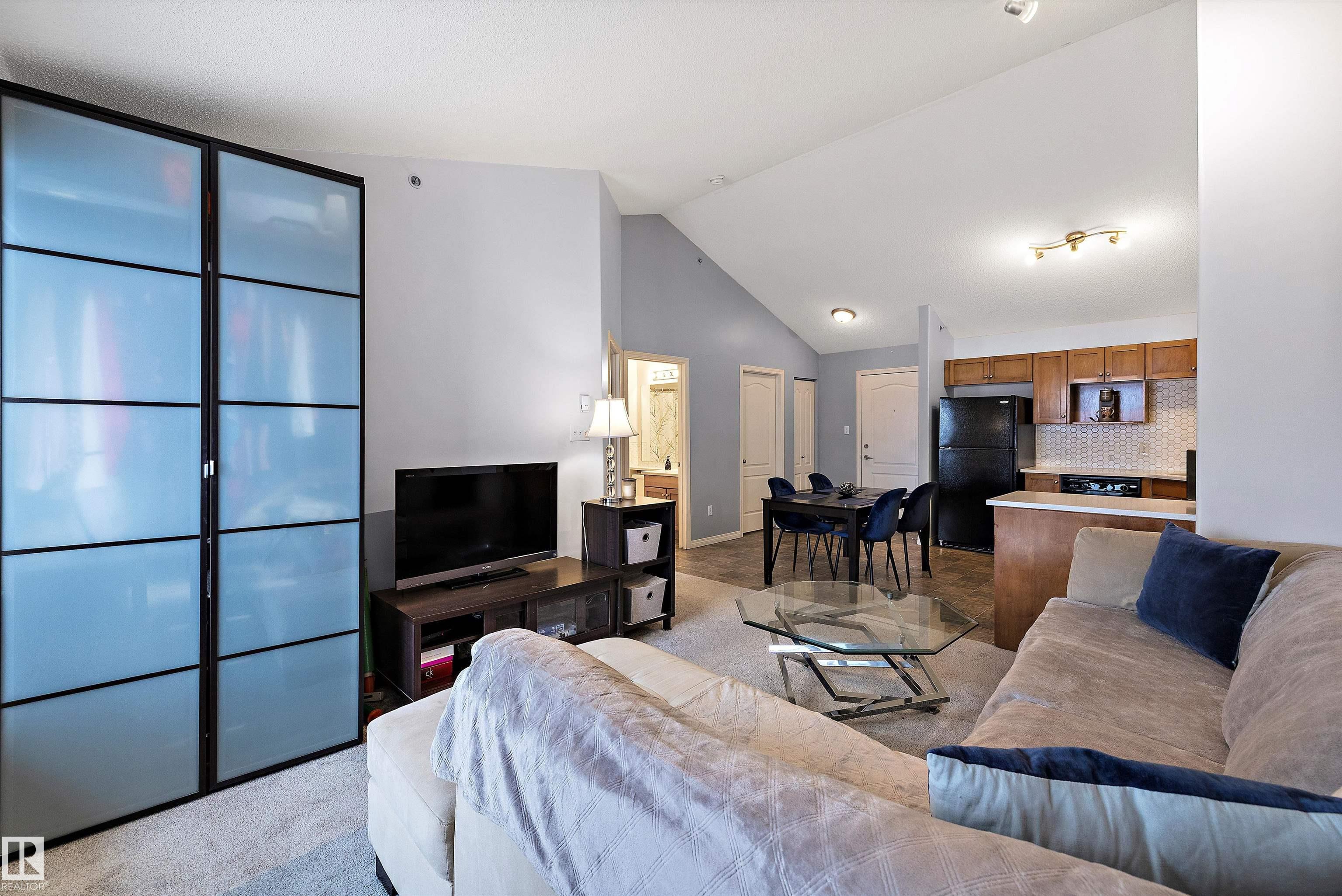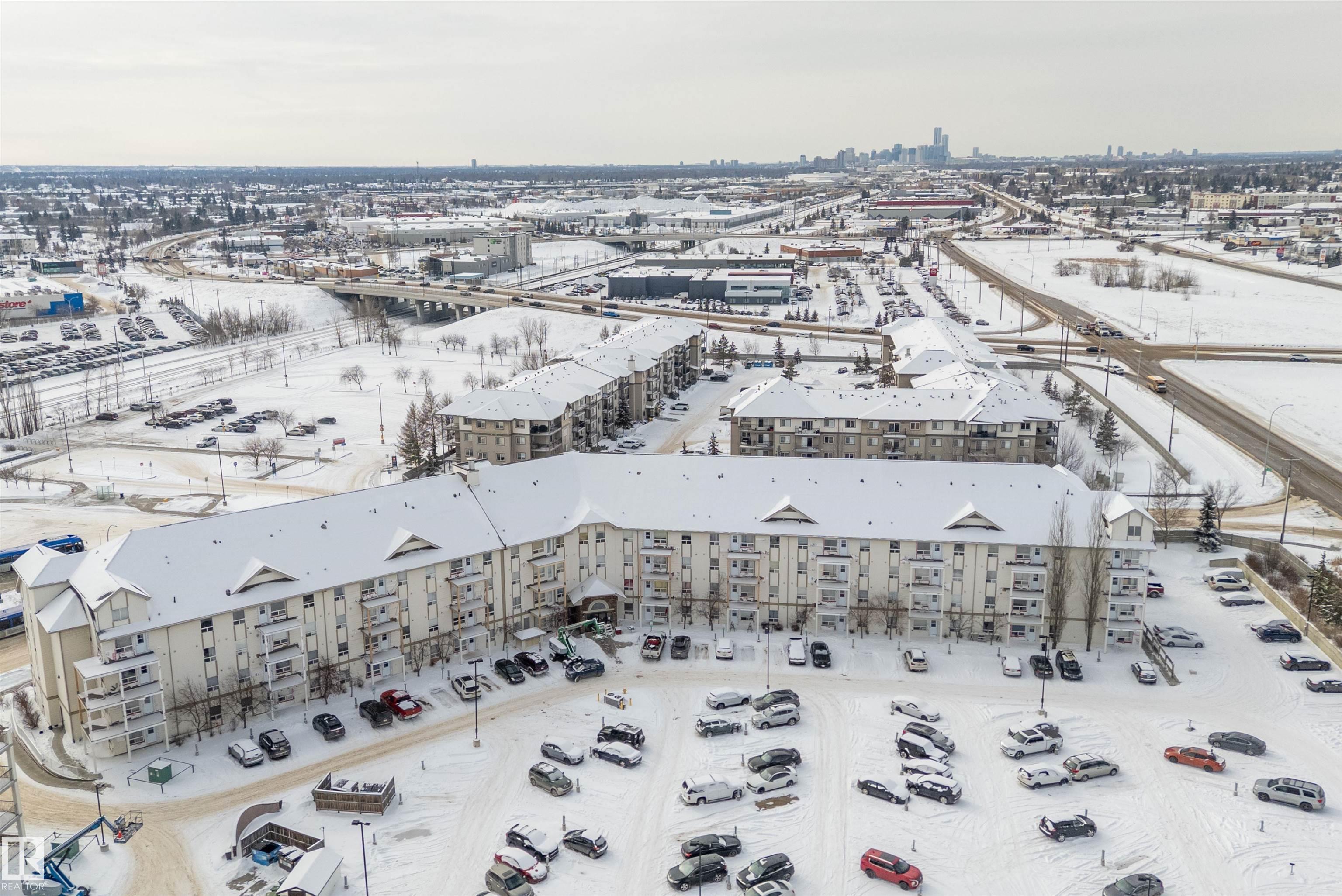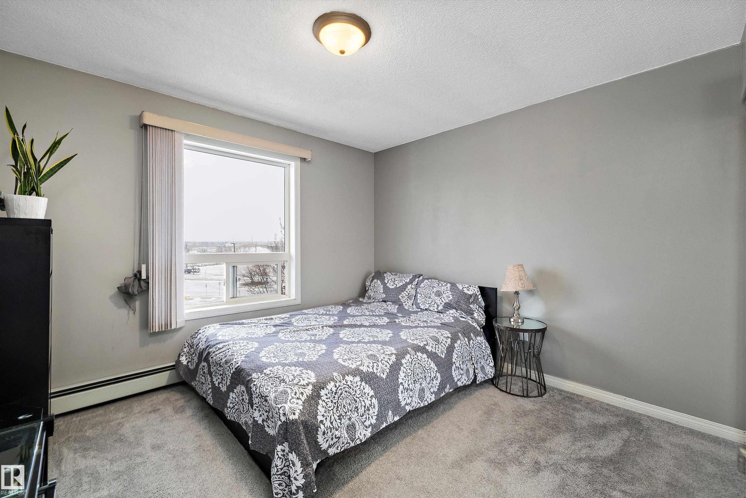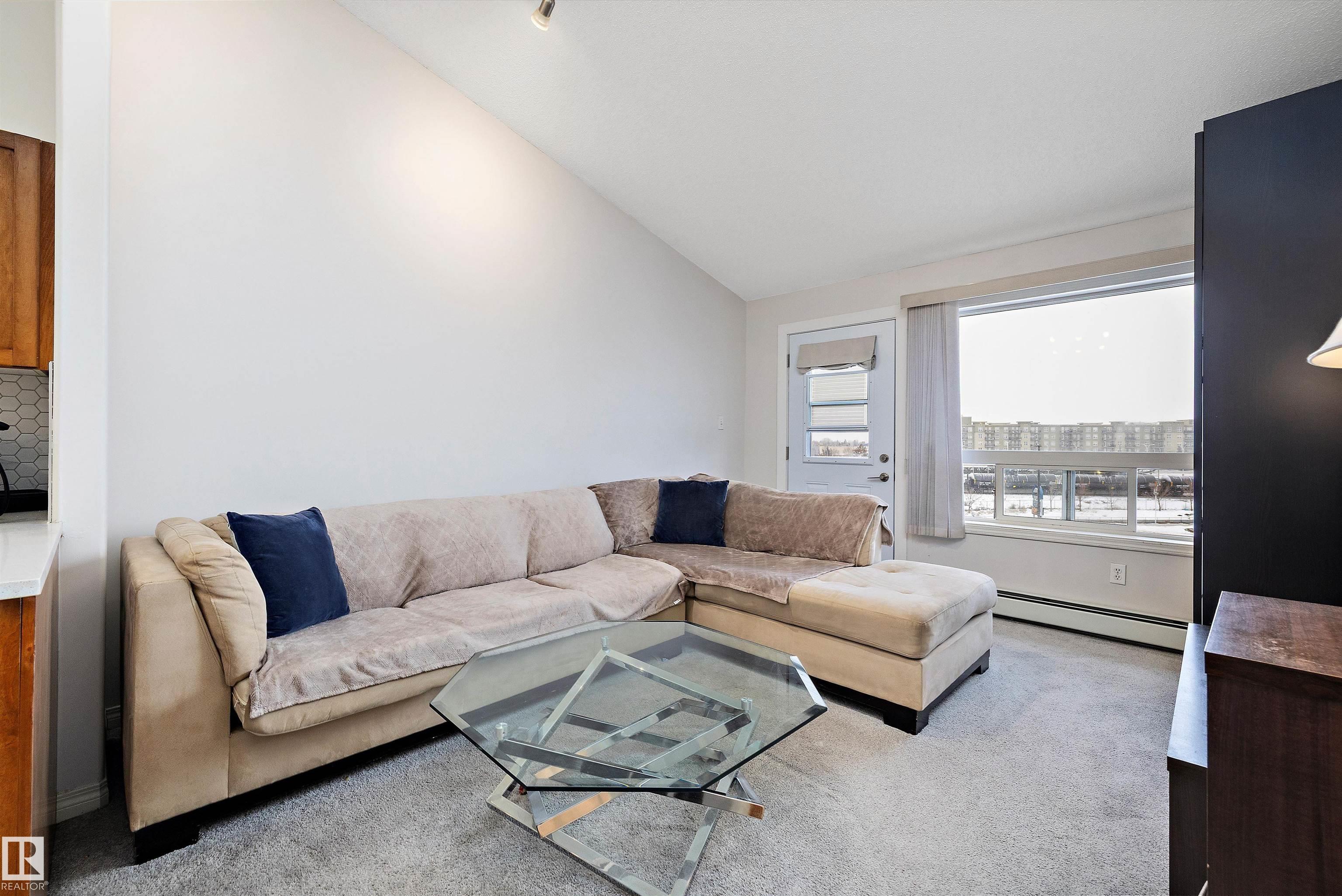 Affordable, convenient, and move-in ready?this top-floor corner 1 bed, 1 bath condo offers 652 sq ft of bright, well-designed living with sunny south-facing views. Enjoy expansive vaulted ceilings that create an open, airy feel, plus a private balcony to soak in the sunshine. The updated kitchen shines with quartz countertops and tiled backsplash (2024), complemented by new carpet (2024) and an updated bathroom sink and faucet (2024). In-suite laundry with a dedicated storage room adds everyday practicality. Low condo fees include heat and water, keeping ownership costs down. Commuting is effortless with LRT access literally at your footsteps, quick connections to Anthony Henday Drive and Manning Drive, and close proximity to Clareview Rec Centre, shopping, and amenities. Comes with 1 titled parking stall. An excellent opportunity for first-time buyers, downsizers, or investors seeking value without sacrificing location.