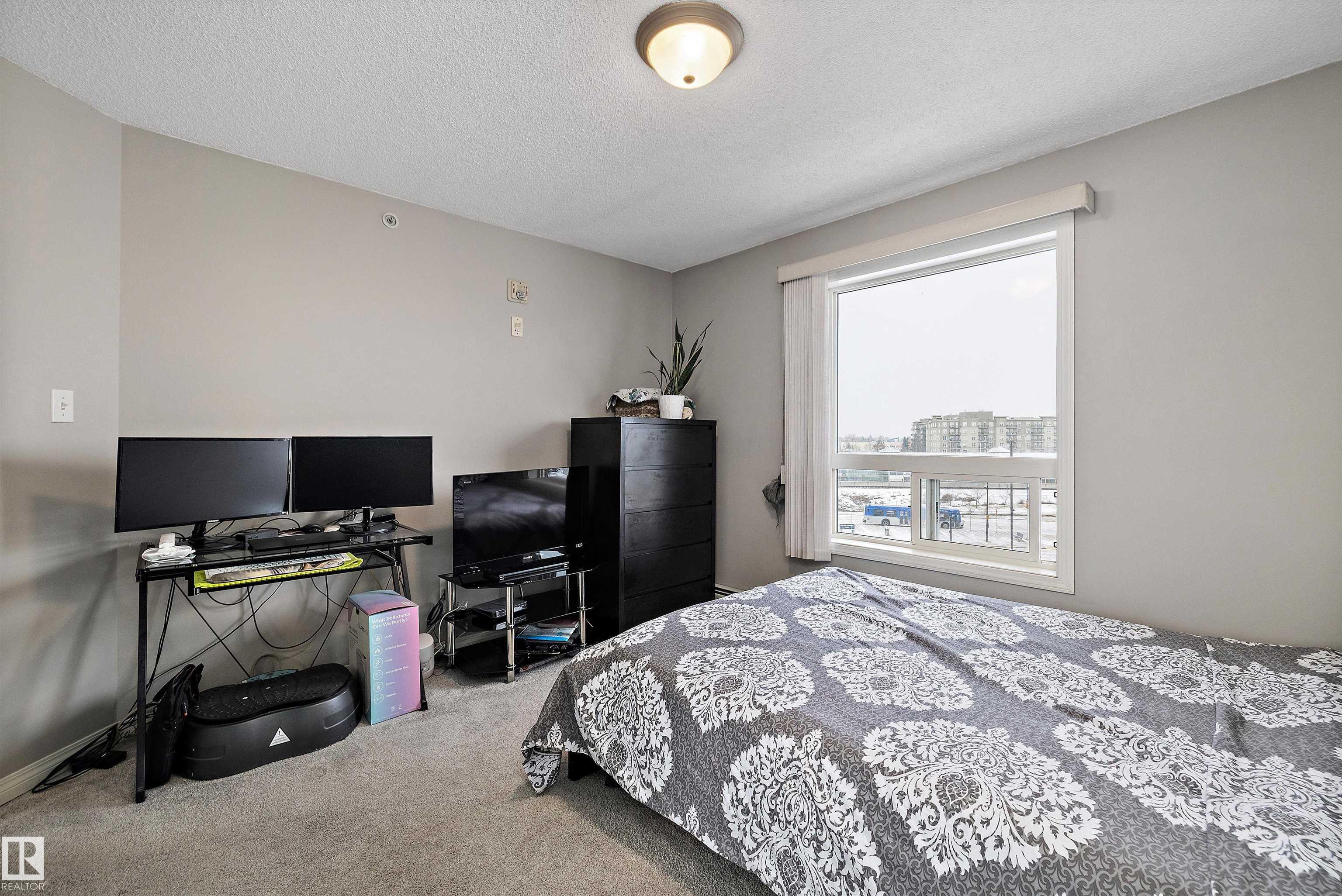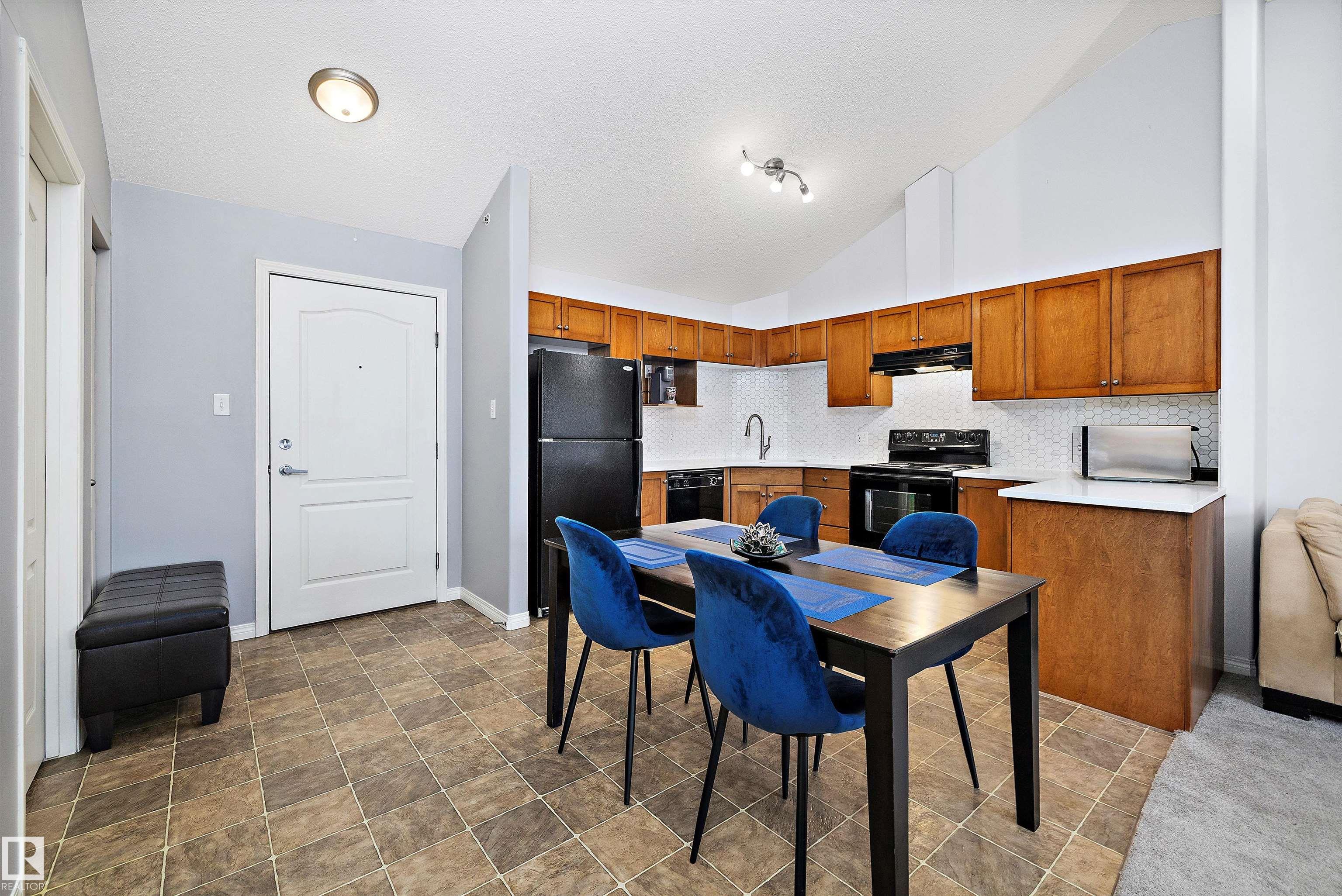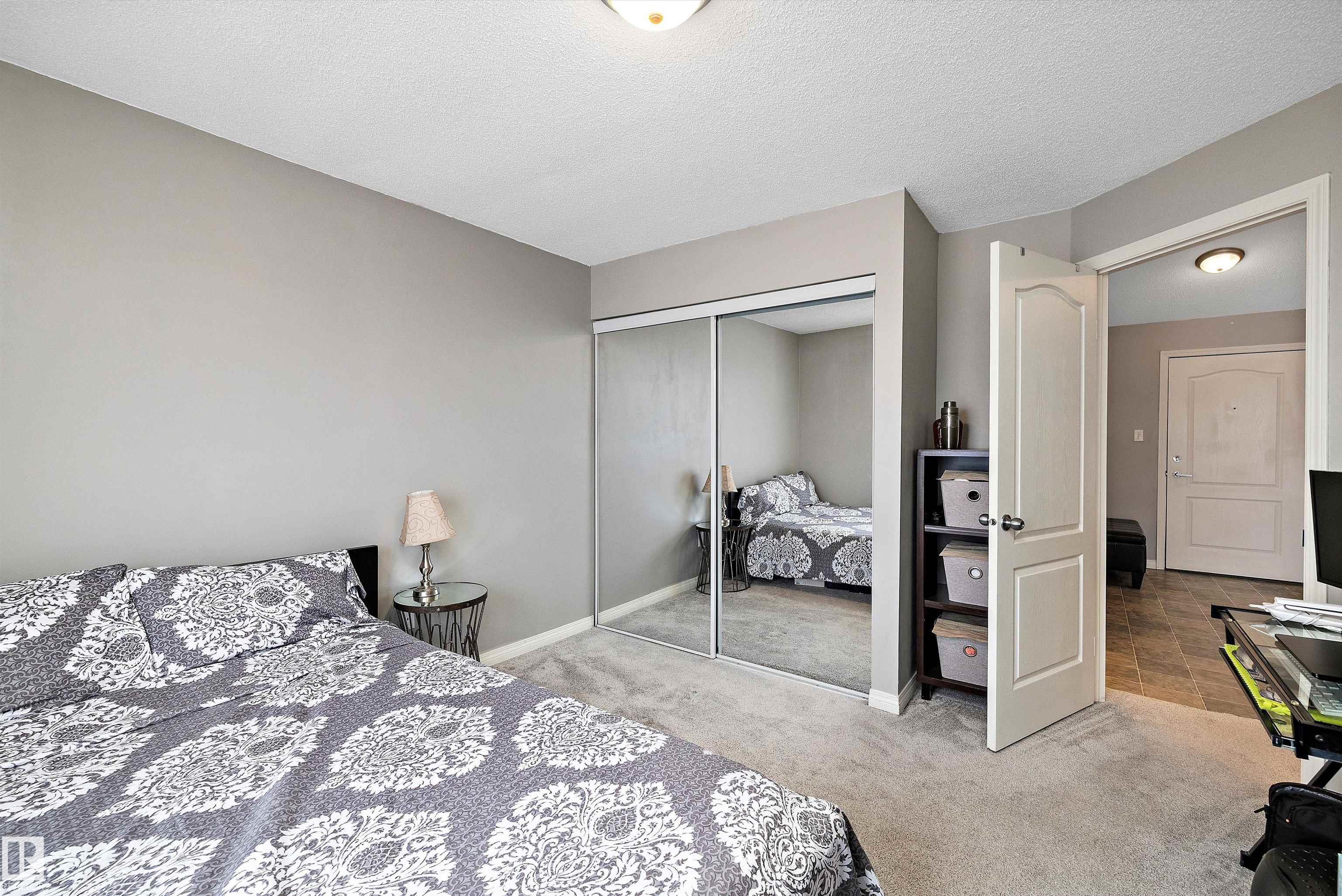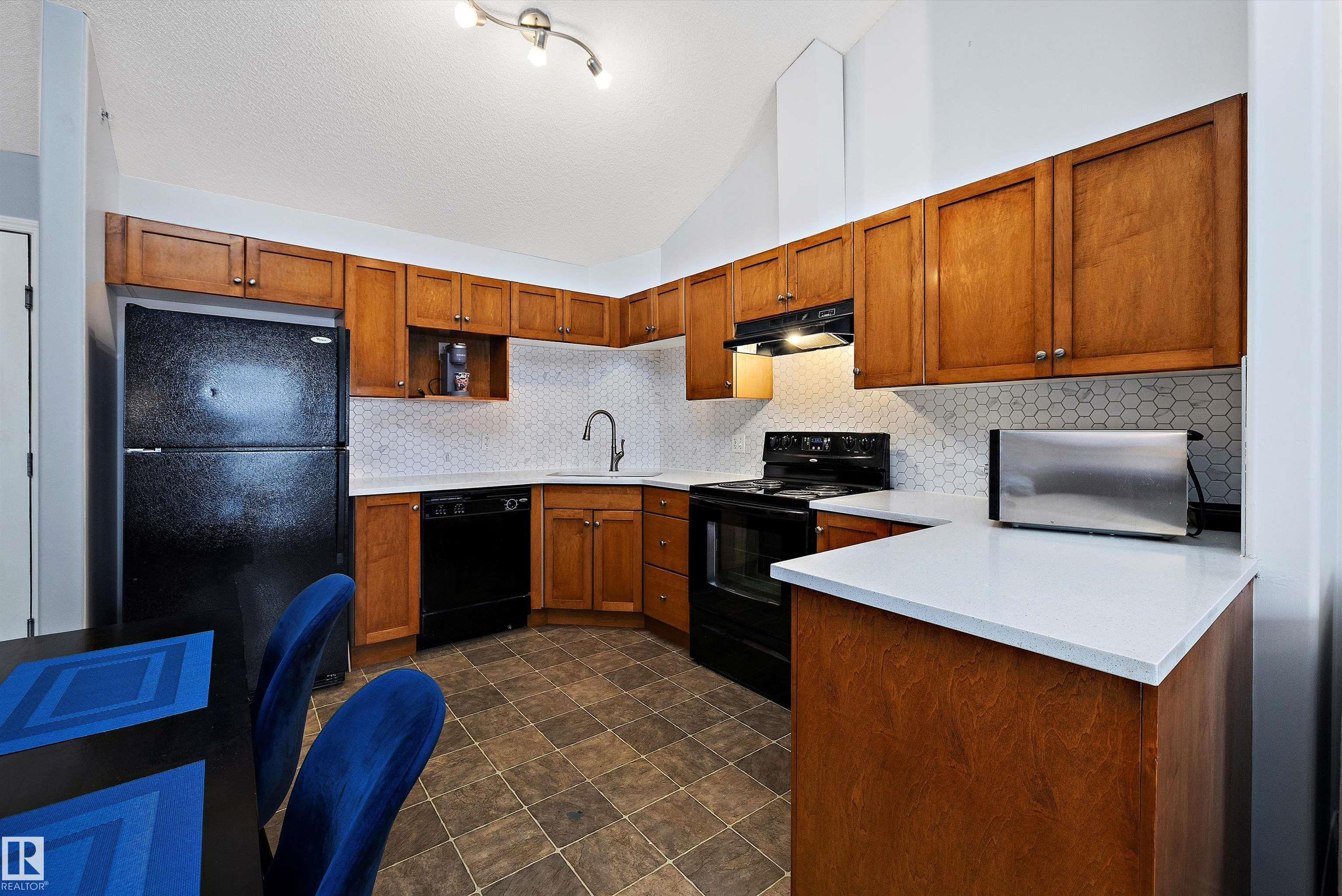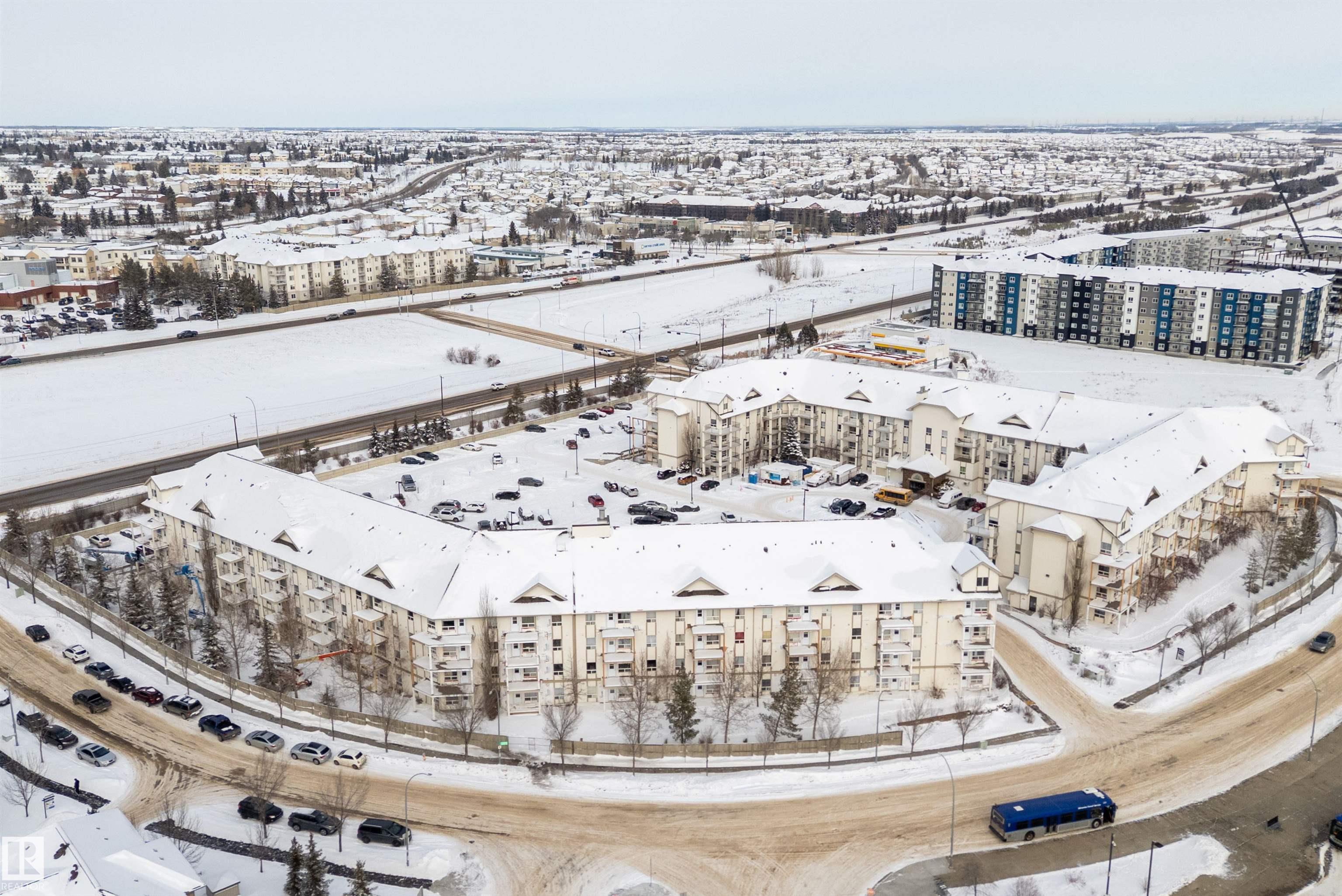 Affordable, convenient, and move-in ready?this top-floor corner 1 bed, 1 bath condo offers 652 sq ft of bright, well-designed living with sunny south-facing views. Enjoy expansive vaulted ceilings that create an open, airy feel, plus a private balcony to soak in the sunshine. The updated kitchen shines with quartz countertops and tiled backsplash (2024), complemented by new carpet (2024) and an updated bathroom sink and faucet (2024). In-suite laundry with a dedicated storage room adds everyday practicality. Low condo fees include heat and water, keeping ownership costs down. Commuting is effortless with LRT access literally at your footsteps, quick connections to Anthony Henday Drive and Manning Drive, and close proximity to Clareview Rec Centre, shopping, and amenities. Comes with 1 titled parking stall. An excellent opportunity for first-time buyers, downsizers, or investors seeking value without sacrificing location.