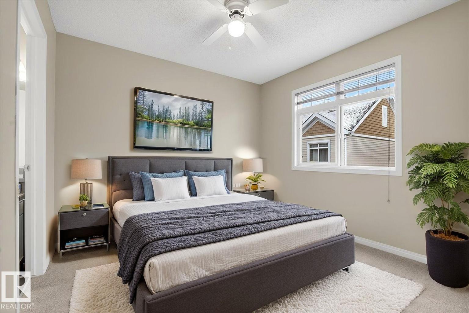 Make your fresh new start in Lake Summerside! Enjoy a pleasant walk to Summerside Beach Club where you can swim, kayak, fish and play tennis, or skate - all seasons are the best at the Lake! This lovely 3 bedroom, 2.5 bathroom townhouse has a bright open layout warmed by hardwood flooring through the great room. If you had to name 2 things that would make your new home feel like a new home what would they be? If your answer is new carpeting & fresh paint, this is going to be perfect for you! The kitchen is spacious with patio doors to a balcony, perfect for letting sunlight & fresh air inside. Stainless steel appliances & some extra space under the stairs for you to use creatively. Some photos have been virtually staged. Additional storage in the laundry & furnace room complete with an additional fridge/freezer and direct access to your double attached garage. Just a block from the dog park & easy access to transit. Fenced front yard with patio is a great place to BBQ and relax with friends & family.