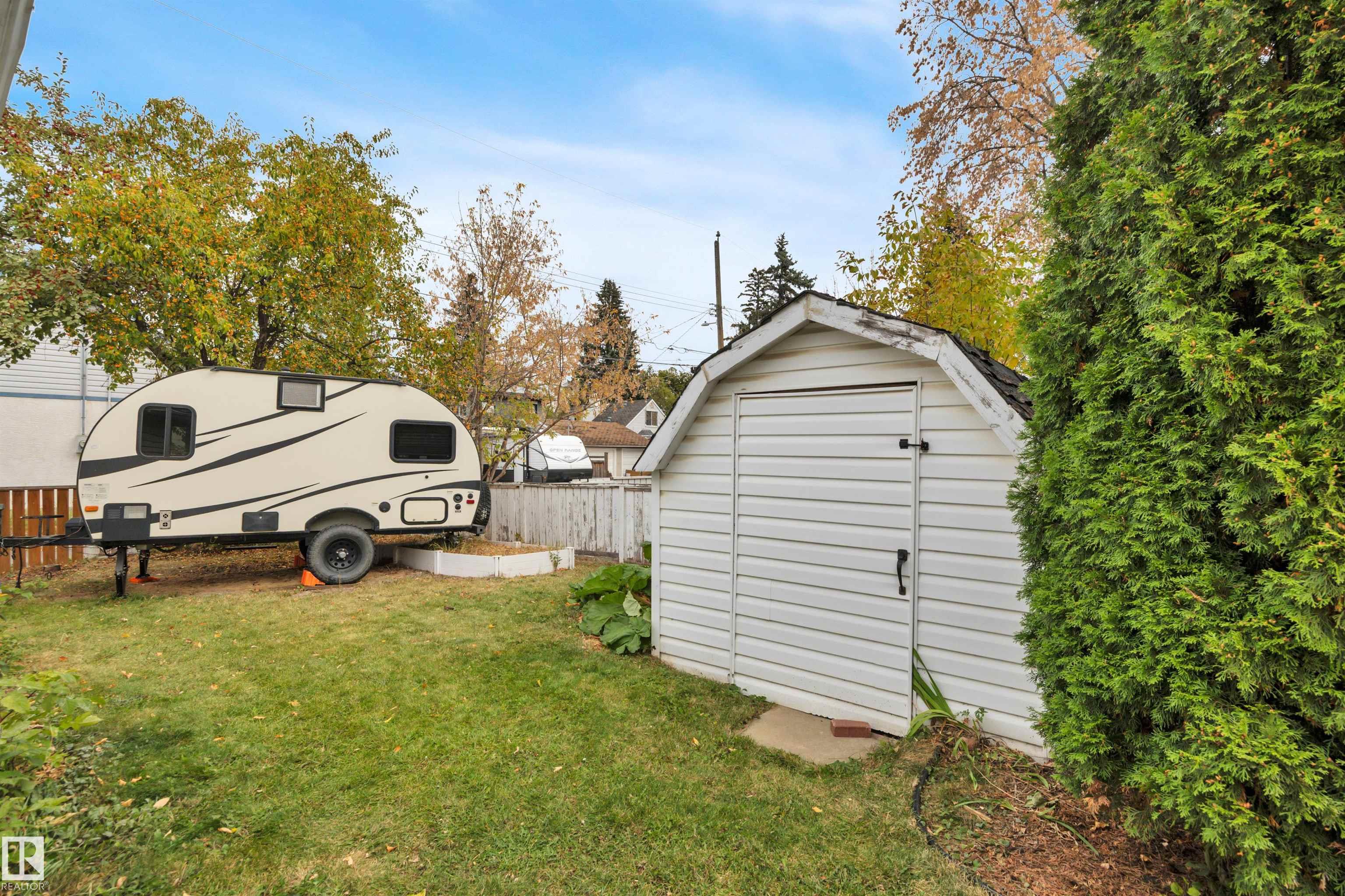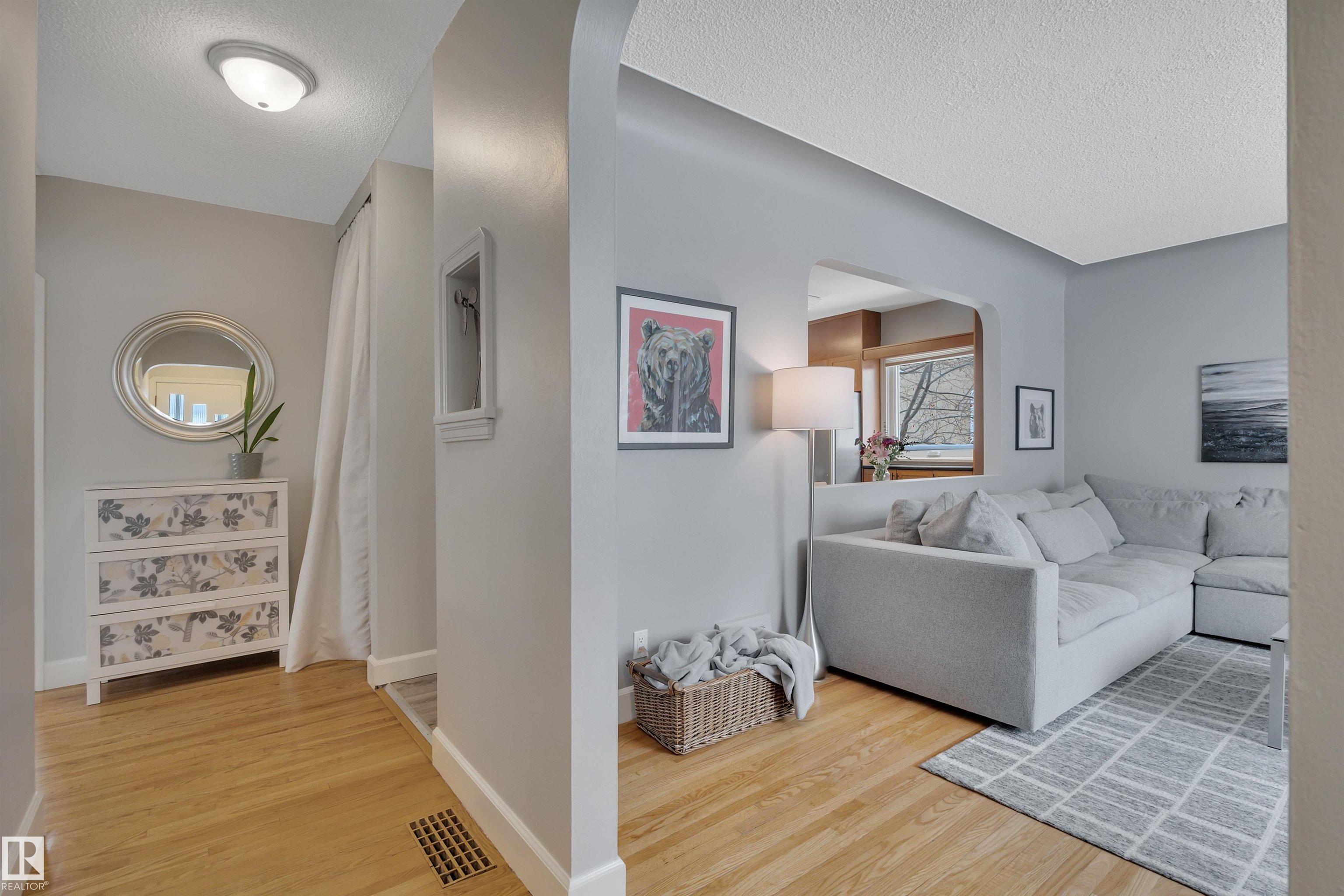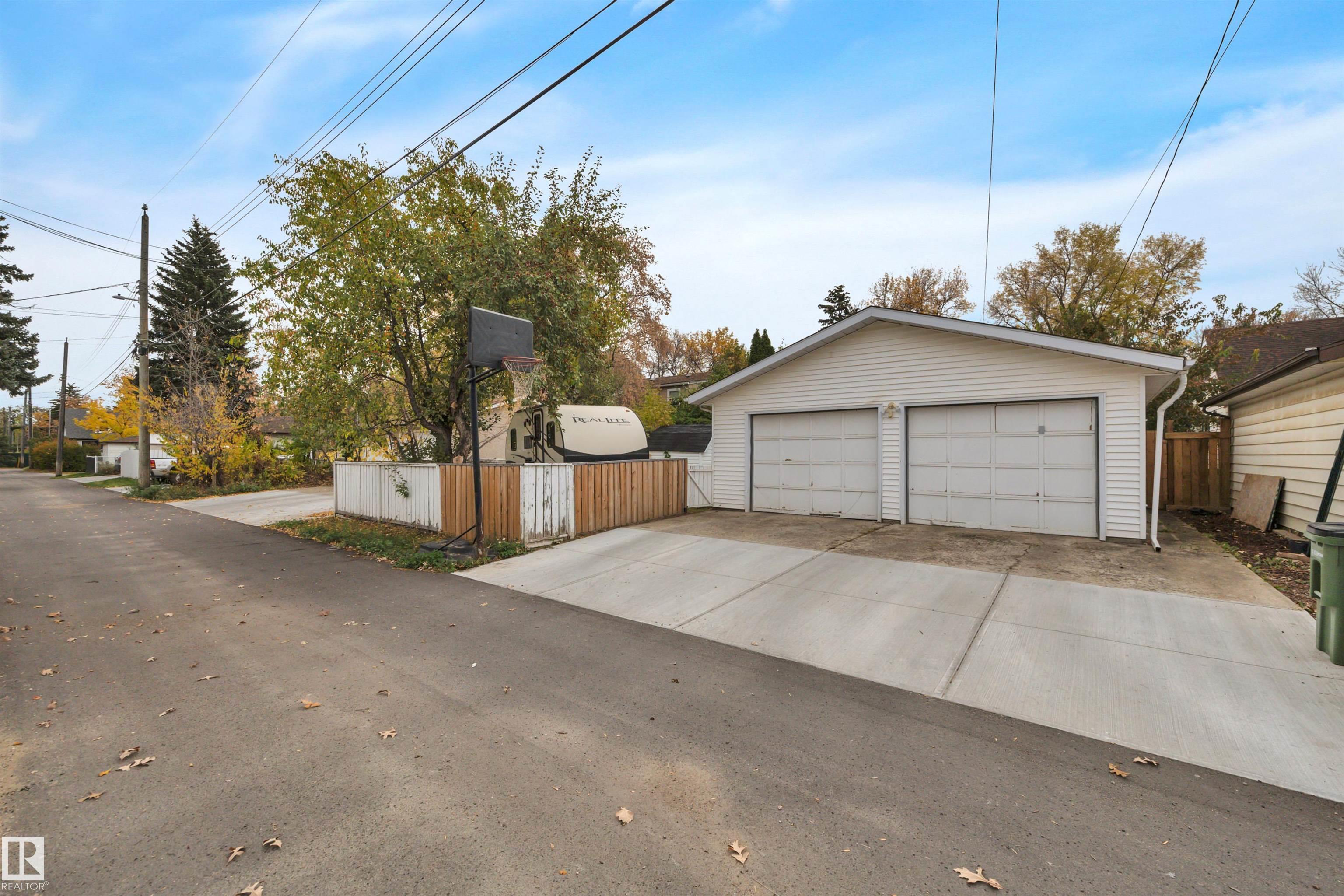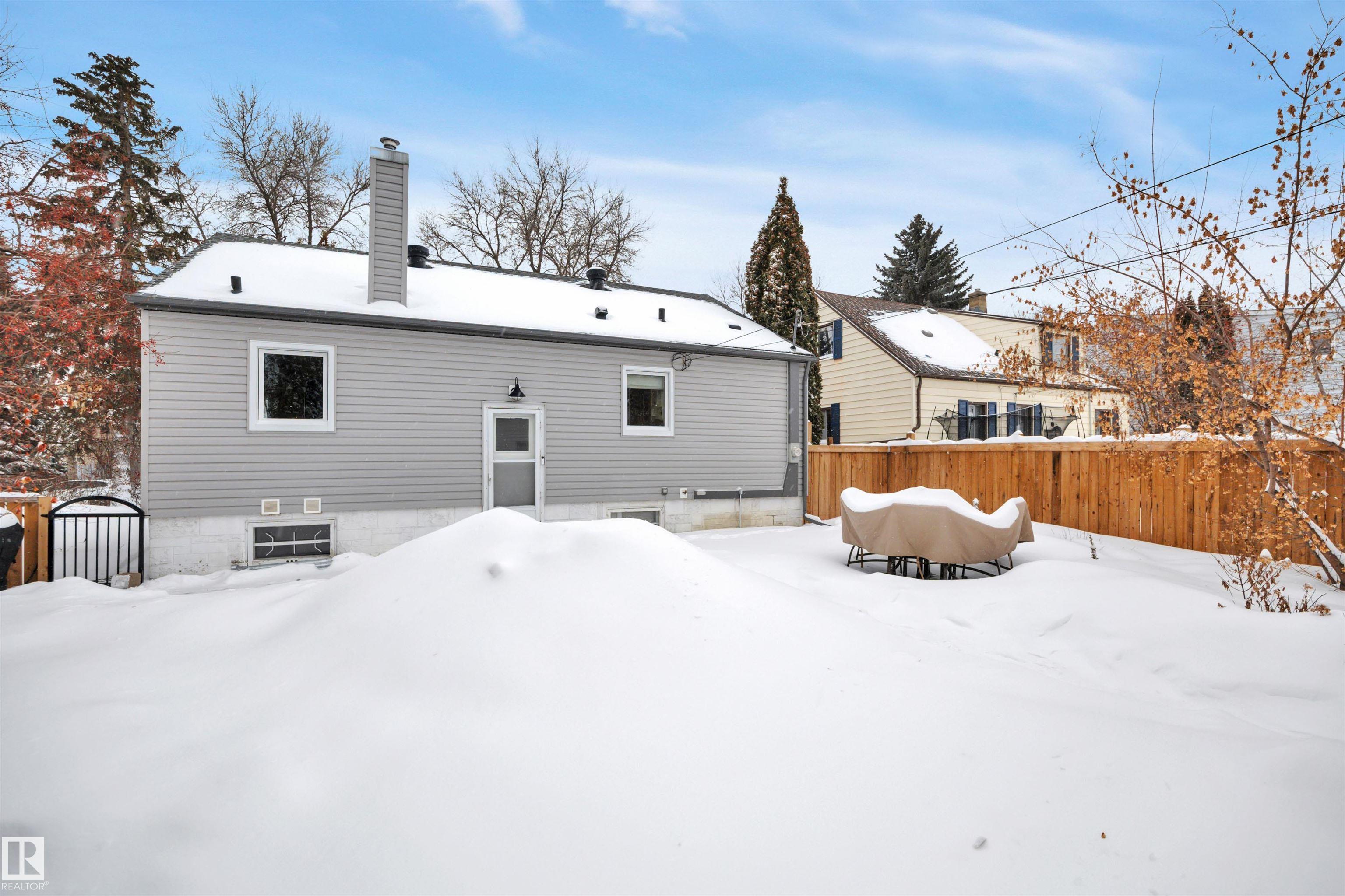 A+ Location! Charming bungalow surrounded by mature trees in prestigious North Glenora. Tastefully updated throughout the years while preserving its original character; exterior updates include vinyl windows, new roof, new siding & restored brick + added insulation. Inside, the layout is super functional with a large living room and pass-through to the dining area & beautifully redone kitchen. Notice the gorgeous hardwood floors & arches throughout. Two bedrooms + updated 4-piece bath complete this level. The basement is partially finished & has a dedicated room for a future washroom. Enjoy the large backyard with stone patio & double detached garage (23?6?x23?6?). Back lane access allows for future RV parking and the laneway & part driveway were recently repaved by the City ? Bonus! Located on a 6700+ sqft lot ( 50?x135?). All this with quick access to Groat Road, downtown, and walkable to 124th Street & the new Coronation Park Sports & Rec Centre ? a smart move!