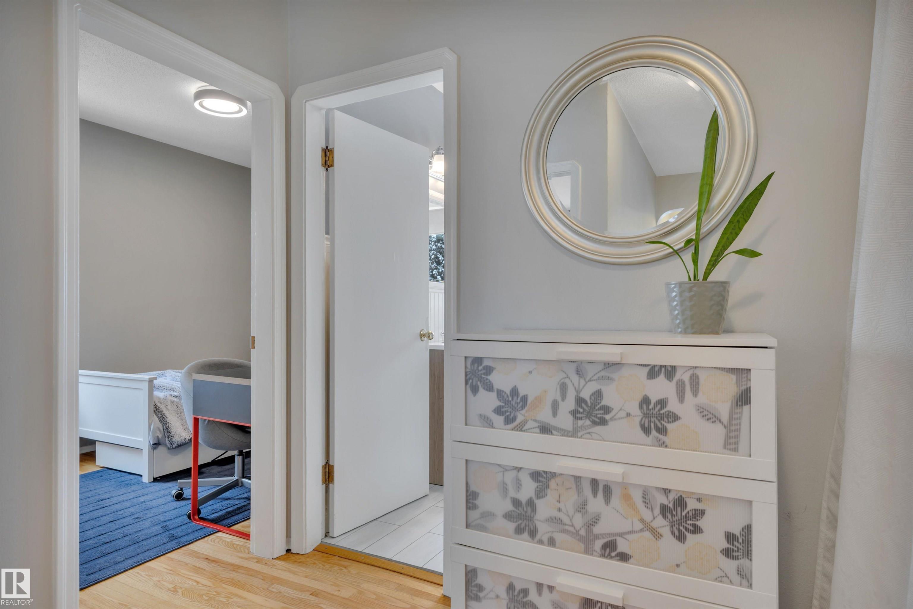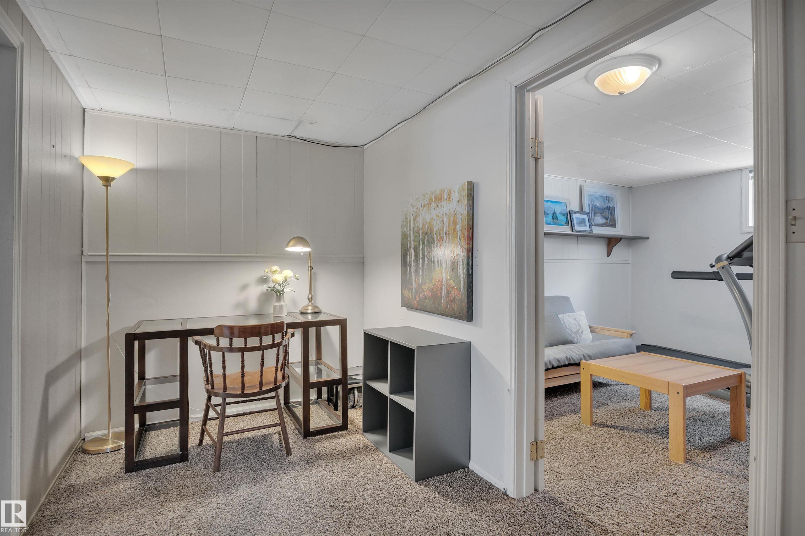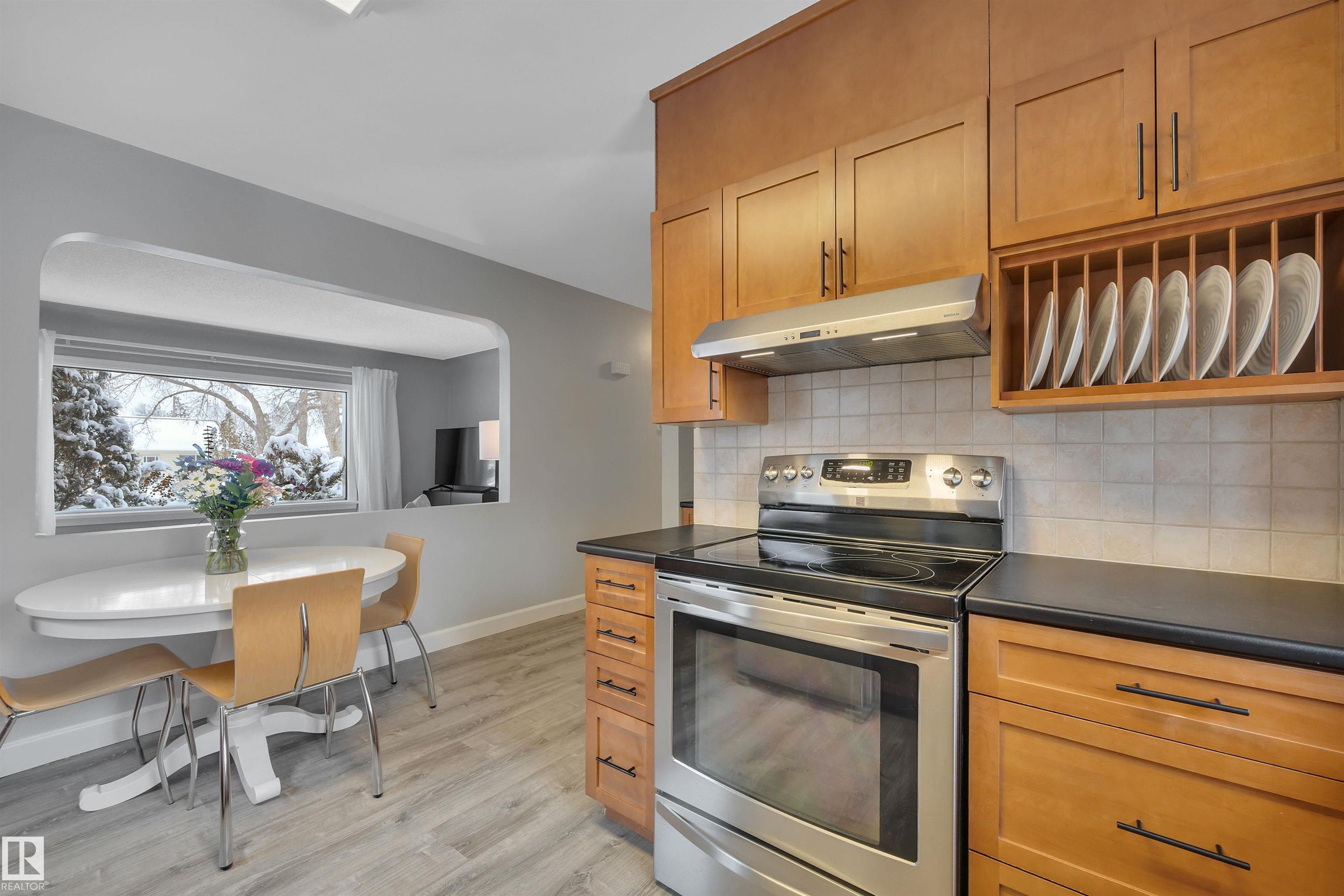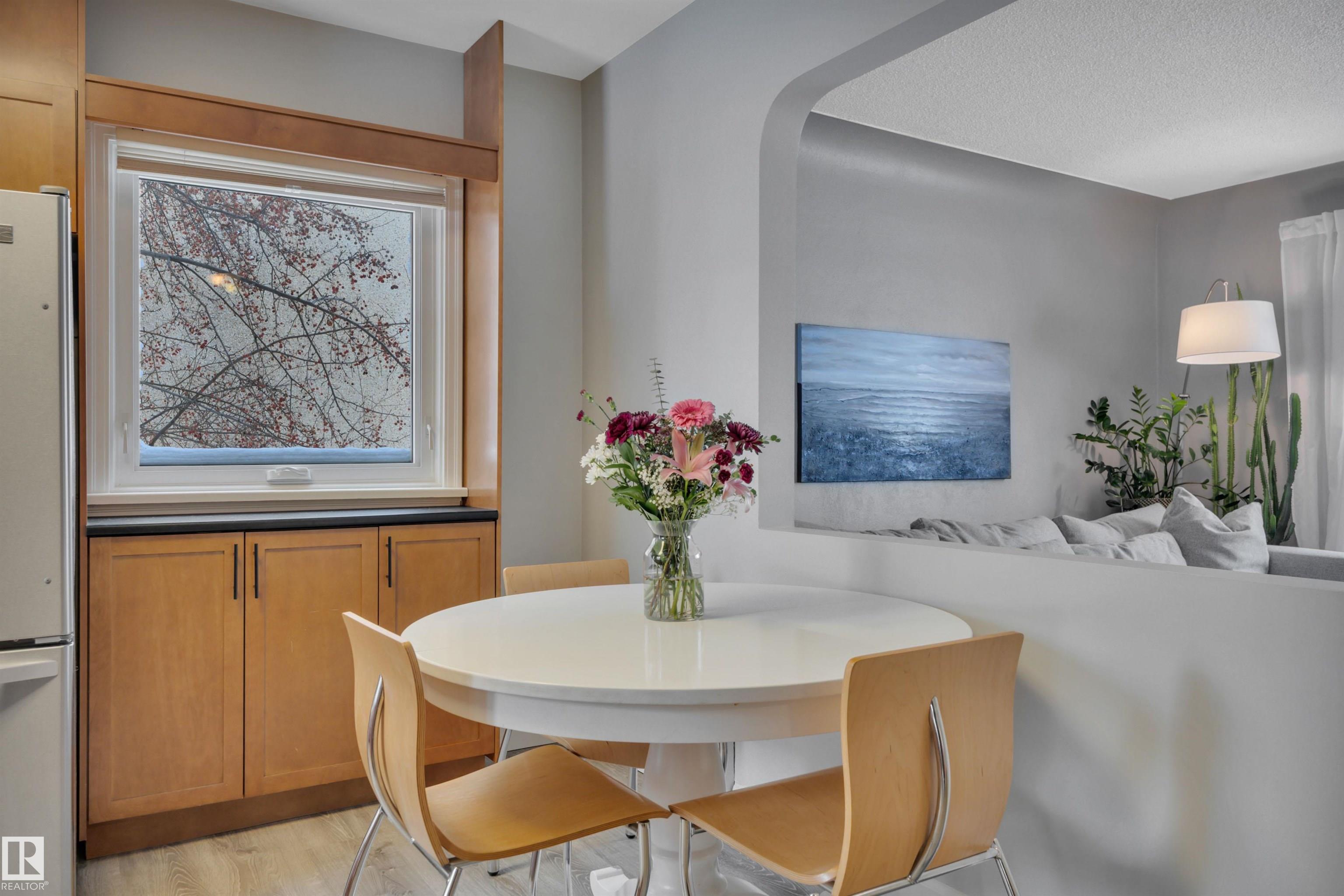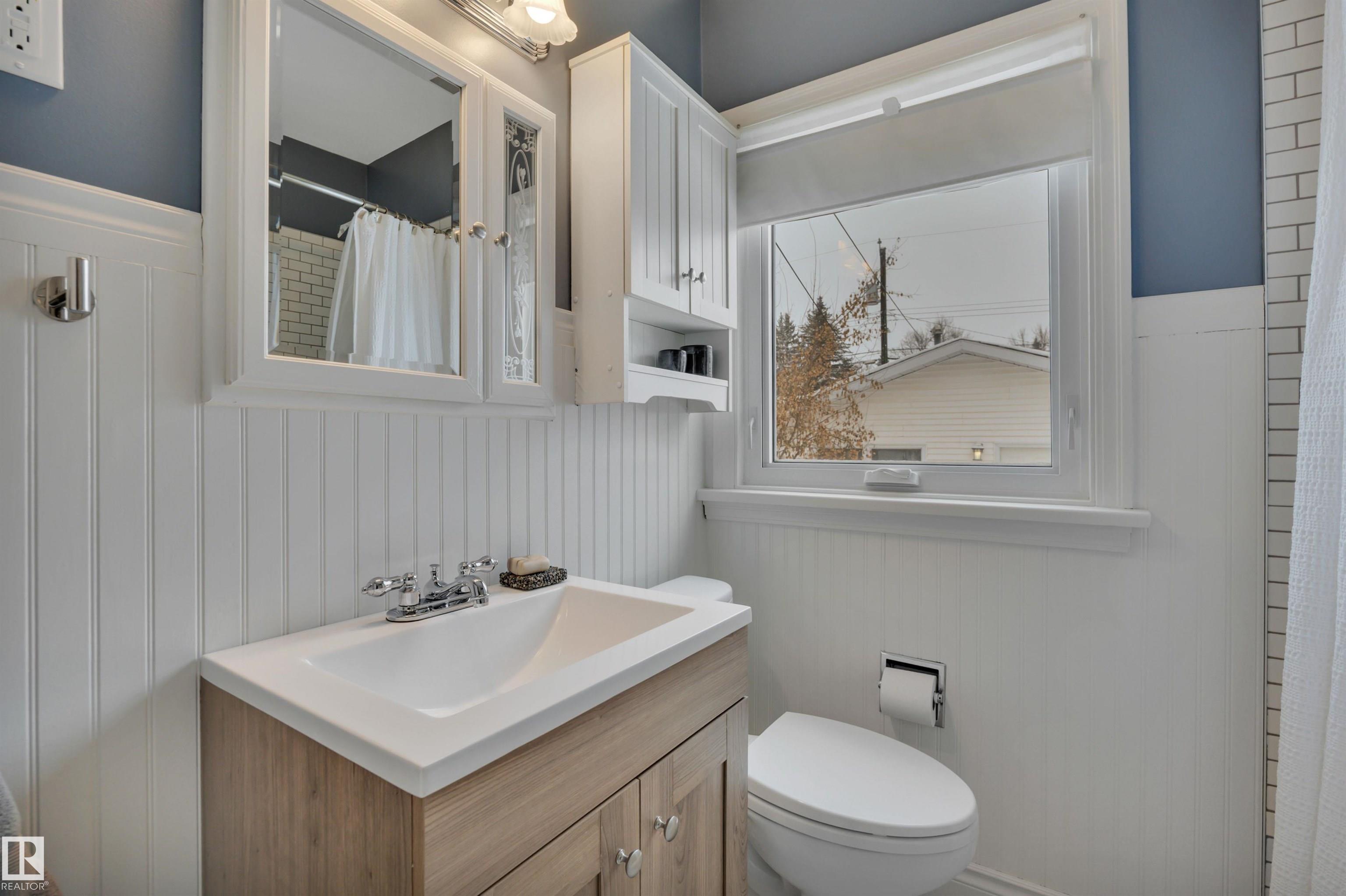 A+ Location! Charming bungalow surrounded by mature trees in prestigious North Glenora. Tastefully updated throughout the years while preserving its original character; exterior updates include vinyl windows, new roof, new siding & restored brick + added insulation. Inside, the layout is super functional with a large living room and pass-through to the dining area & beautifully redone kitchen. Notice the gorgeous hardwood floors & arches throughout. Two bedrooms + updated 4-piece bath complete this level. The basement is partially finished & has a dedicated room for a future washroom. Enjoy the large backyard with stone patio & double detached garage (23?6?x23?6?). Back lane access allows for future RV parking and the laneway & part driveway were recently repaved by the City ? Bonus! Located on a 6700+ sqft lot ( 50?x135?). All this with quick access to Groat Road, downtown, and walkable to 124th Street & the new Coronation Park Sports & Rec Centre ? a smart move!