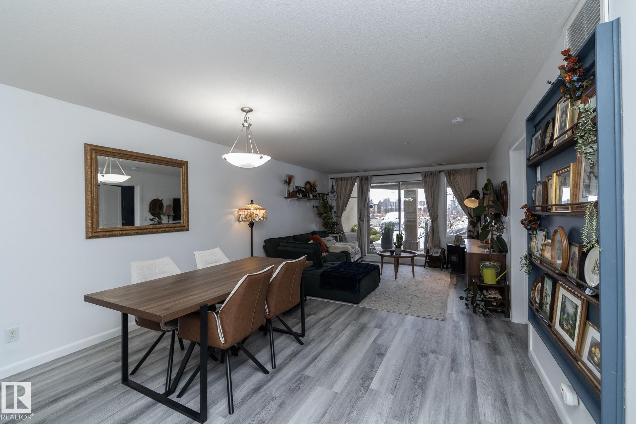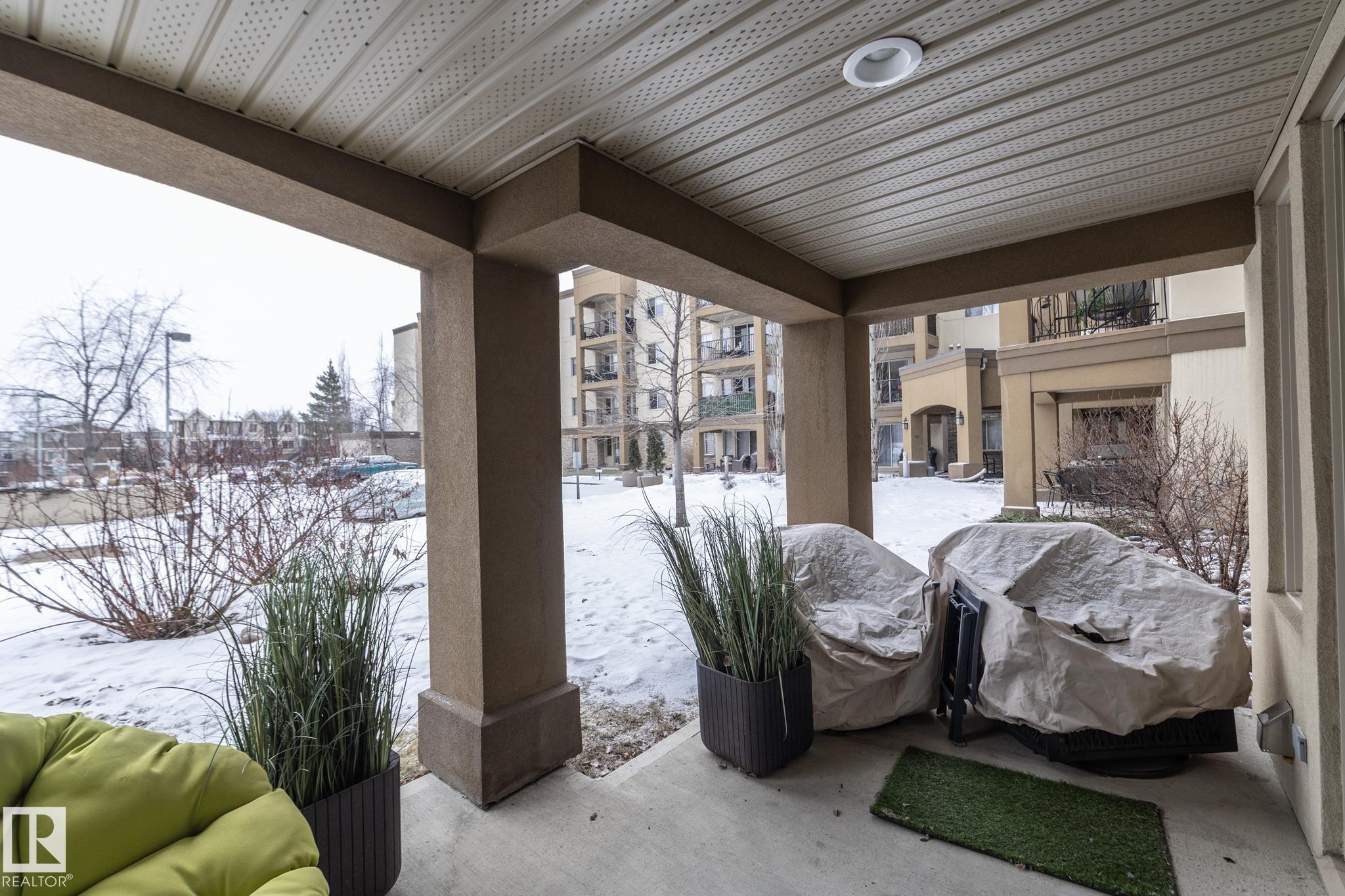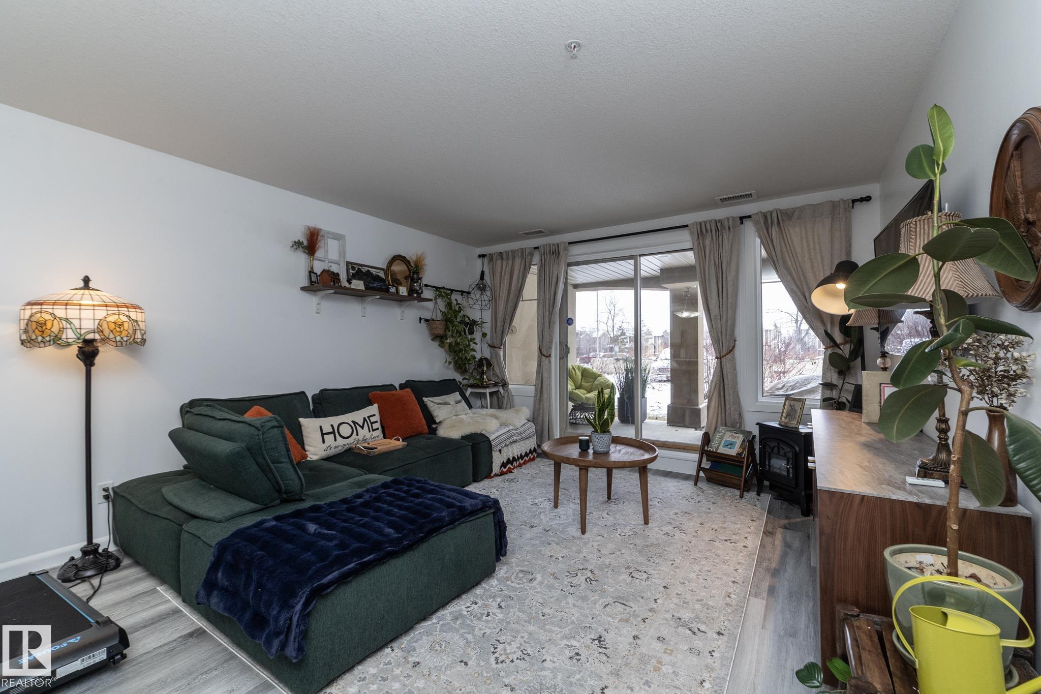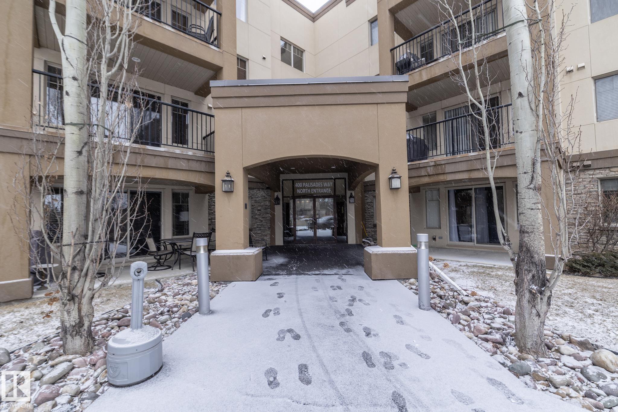 Welcome to Palisades on the Park! A COMPLETELY RENOVATED ground floor condo in the sought-after community of Centennial Village in Sherwood Park. Updated top to bottom, this 1 BEDROOM PLUS DEN unit offers nearly 800 sq ft of modern, move-in-ready living that?s ideal for first-time buyers, downsizers, or investors looking for a turnkey opportunity. The open-concept layout has been thoughtfully redesigned with a brand-new kitchen featuring granite countertops, a farmhouse-style sink, new cabinetry, and updated flooring throughout. The bathroom has also been fully renovated with new tile, a refreshed shower, and an updated vanity, giving the space a clean, contemporary feel from front to back. Located in a quiet concrete building offering heated underground parkade, visitor parking, social rooms, sauna, guest suite, and secure storage options. Grab your clothes and move in today!