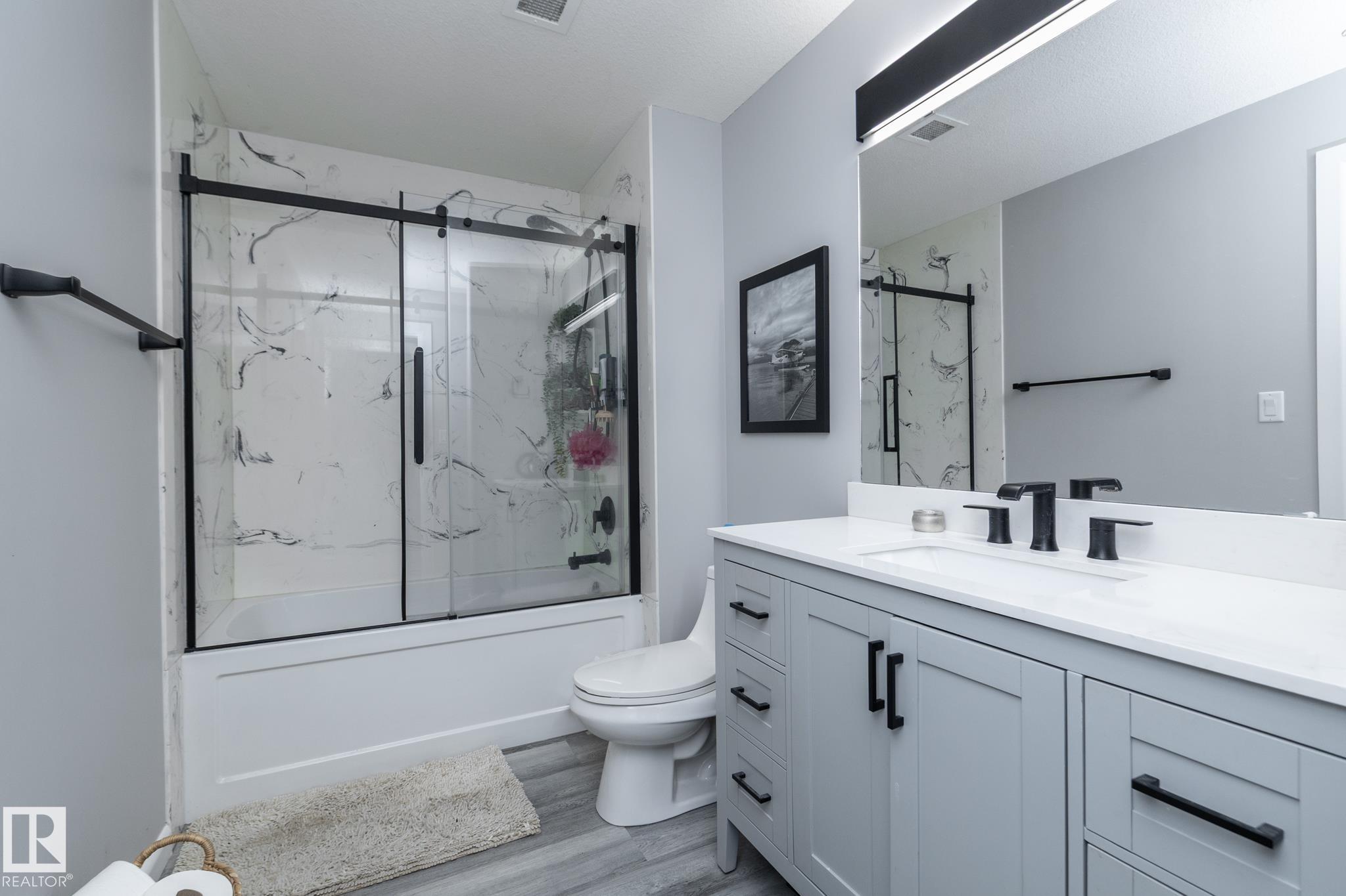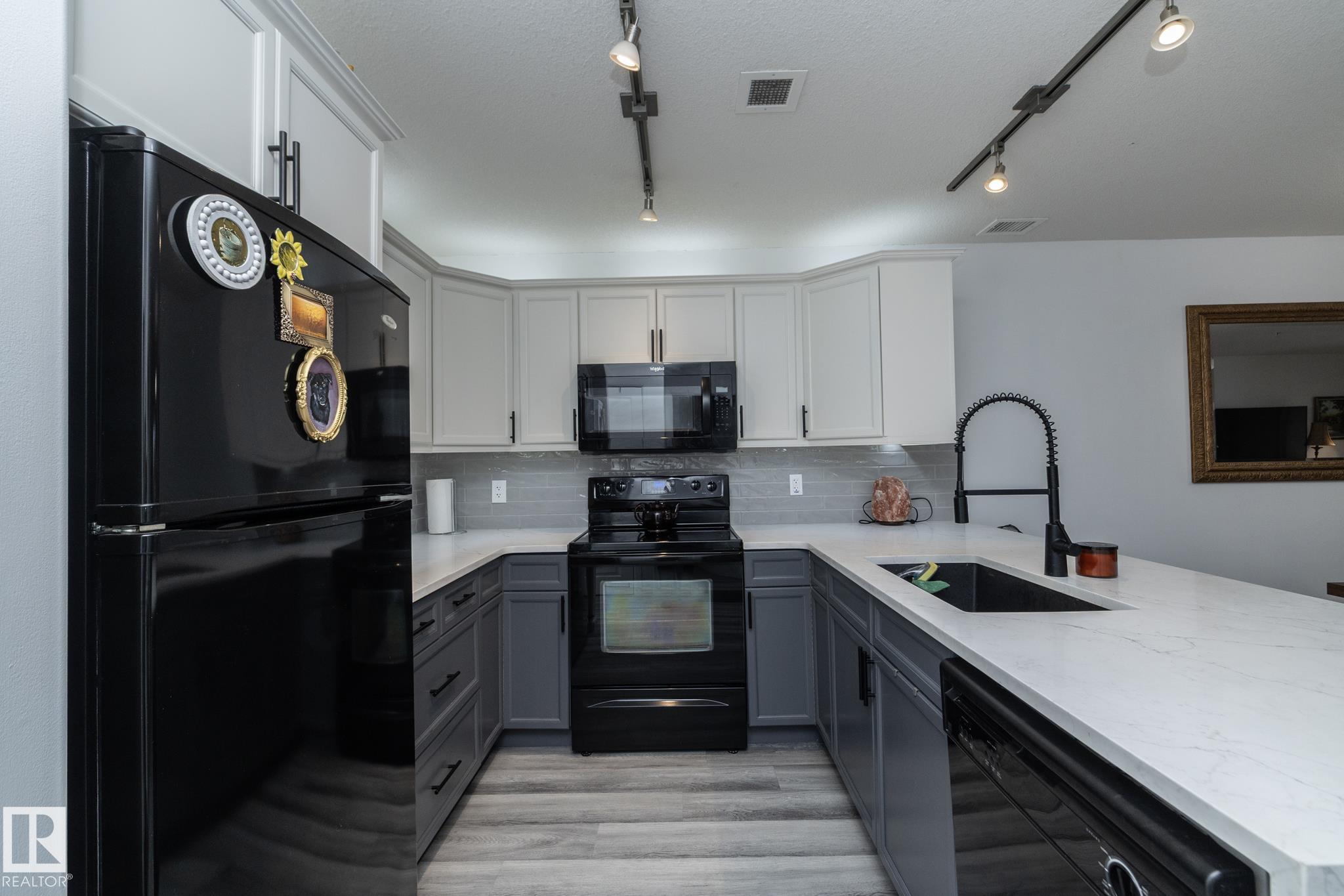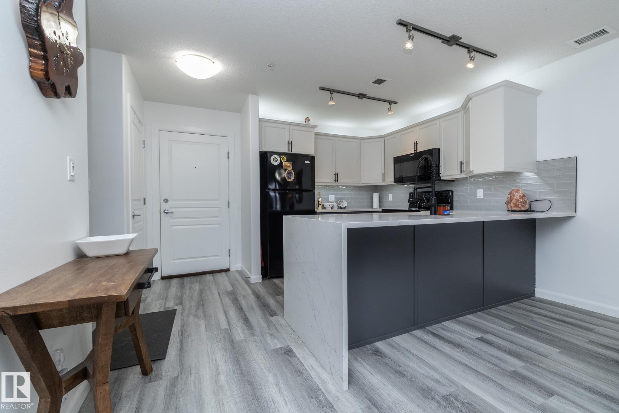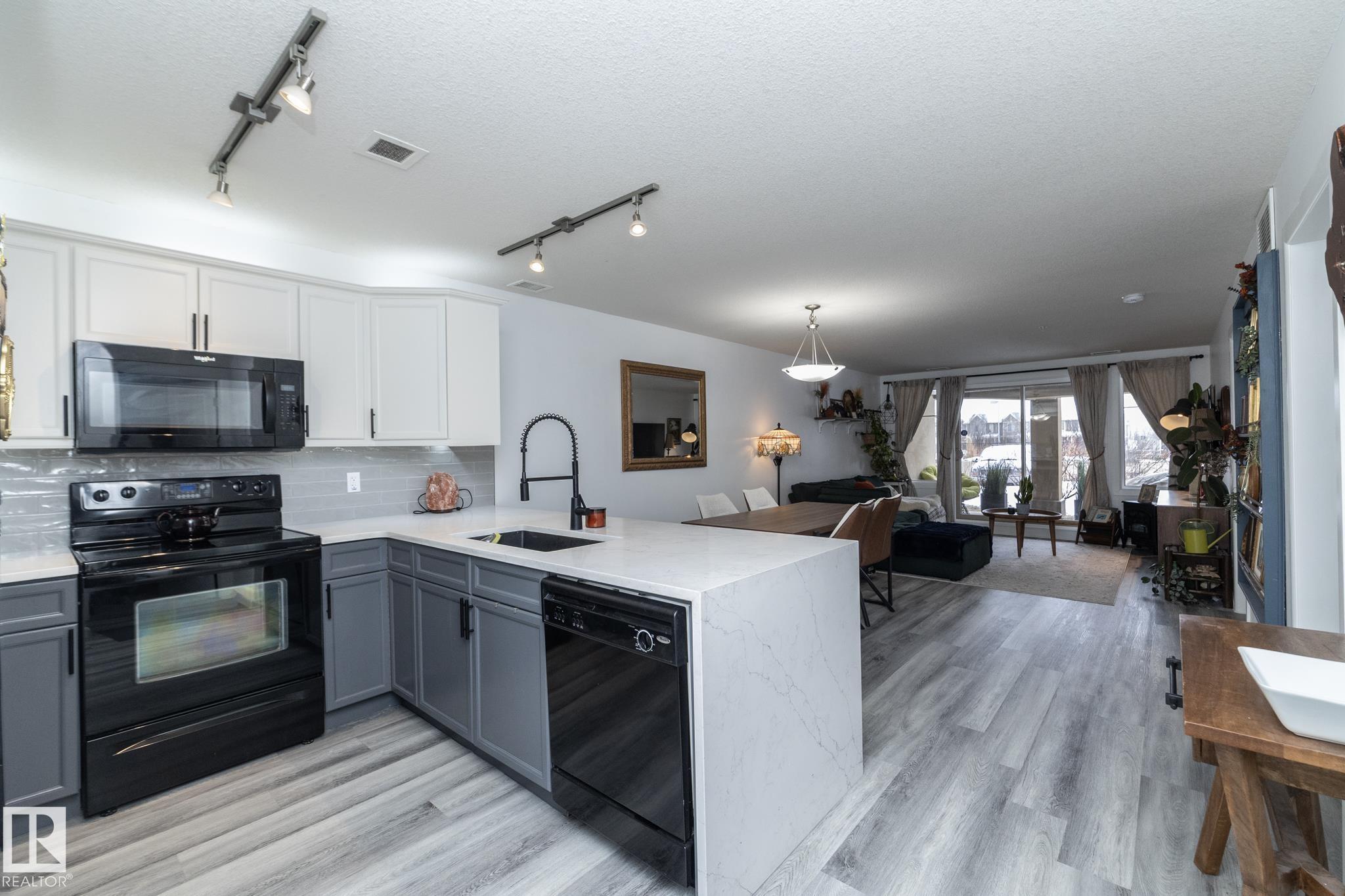 Welcome to Palisades on the Park! A COMPLETELY RENOVATED ground floor condo in the sought-after community of Centennial Village in Sherwood Park. Updated top to bottom, this 1 BEDROOM PLUS DEN unit offers nearly 800 sq ft of modern, move-in-ready living that?s ideal for first-time buyers, downsizers, or investors looking for a turnkey opportunity. The open-concept layout has been thoughtfully redesigned with a brand-new kitchen featuring granite countertops, a farmhouse-style sink, new cabinetry, and updated flooring throughout. The bathroom has also been fully renovated with new tile, a refreshed shower, and an updated vanity, giving the space a clean, contemporary feel from front to back. Located in a quiet concrete building offering heated underground parkade, visitor parking, social rooms, sauna, guest suite, and secure storage options. Grab your clothes and move in today!