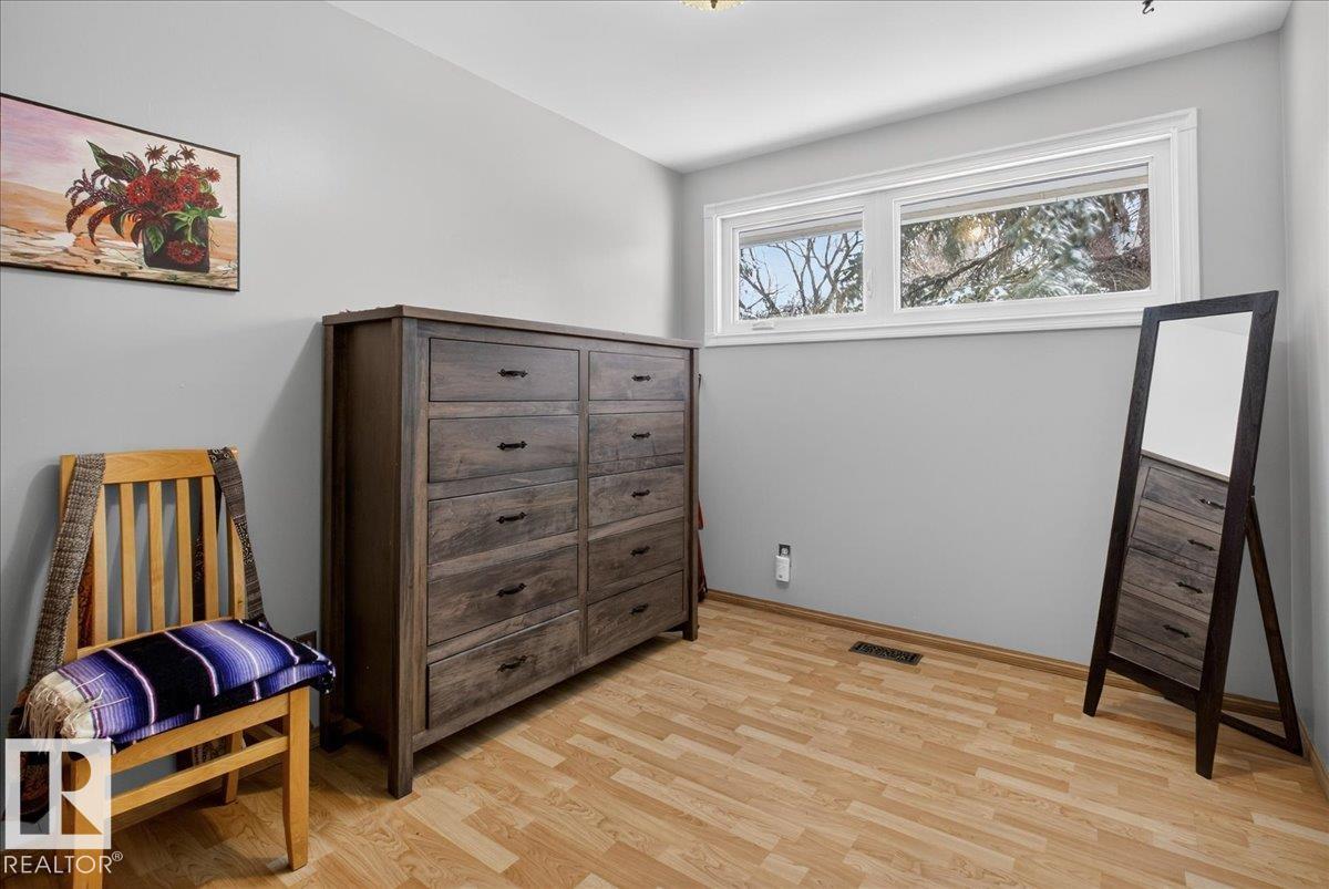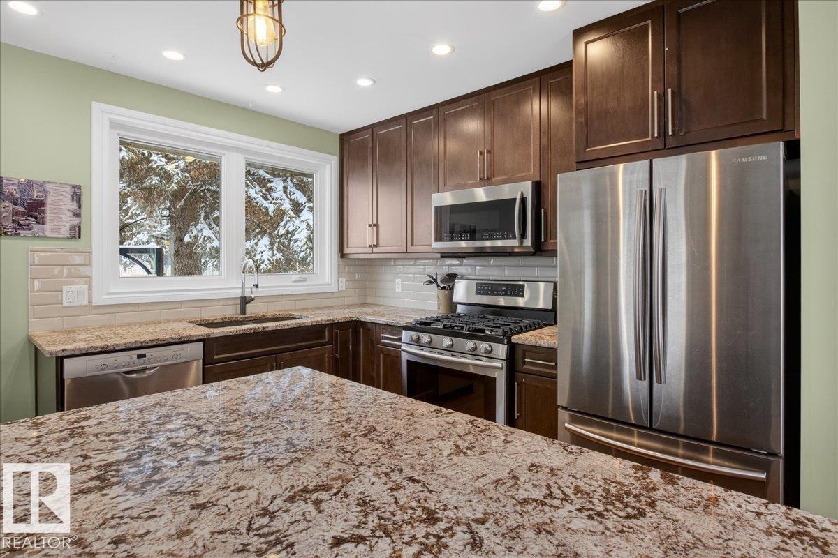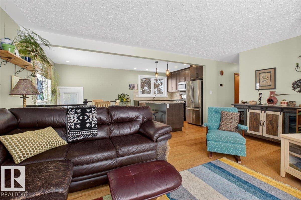 You are invited to discover this St Albert hidden treasure nestled amongst mature trees. You will love the serene park-like setting for this remodelled 3+1 bedroom bungalow on a quiet crescent in Grandin. The first impression upon entry is of warm and well-cared for home. The Kitchen was opened up to the living room and creates a sunny Great Room v ibe where family & friends will enjoy gathering for your special occasions. Kitchen reno is perfect with generous granite island, gas stove, subway tile backsplash, stainless steel appliances & engineered hardwood flooring. Plants seem to thrive both indoors and outdoors here and maybe your family will too! Basement development includes a 2nd bathroom, bedroom & large family room. Many upgrades including windows, electrical, furnace, entry doors, bathrooms & kitchen. Single car garage with extra storage shed attached. Enjoy a BBQ or sit around the firepit in your treed yard. See it?love it?move!