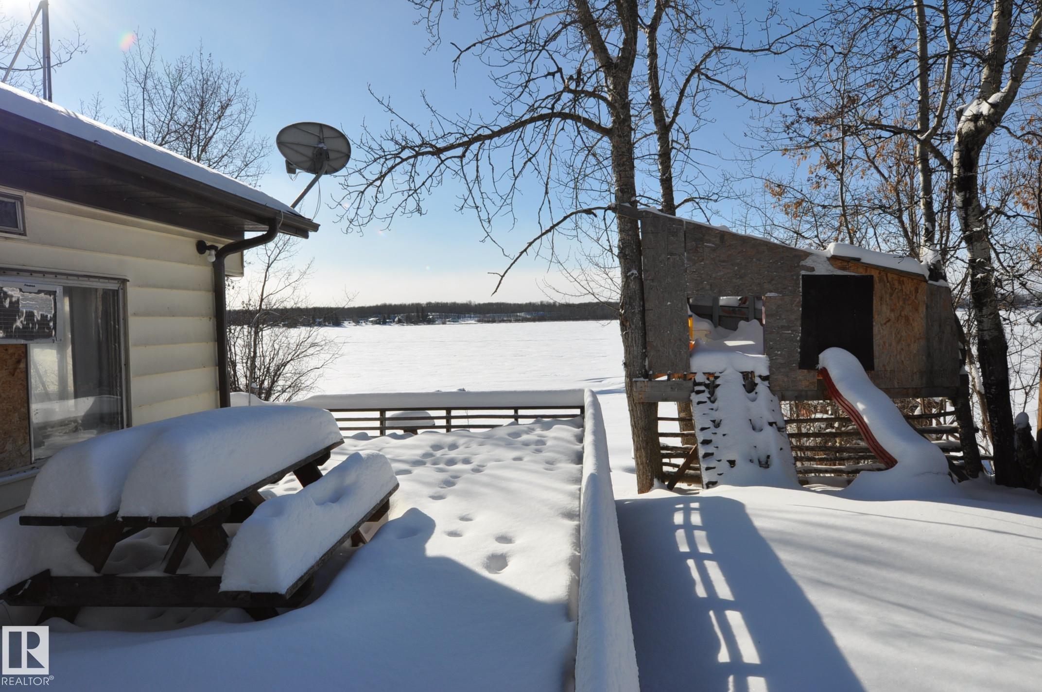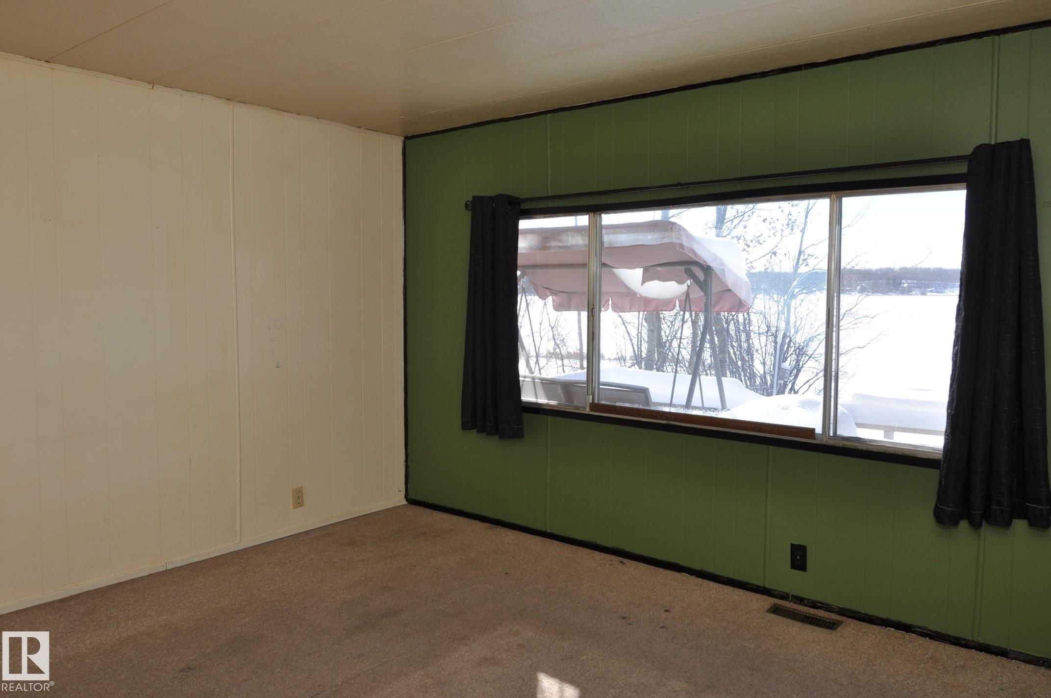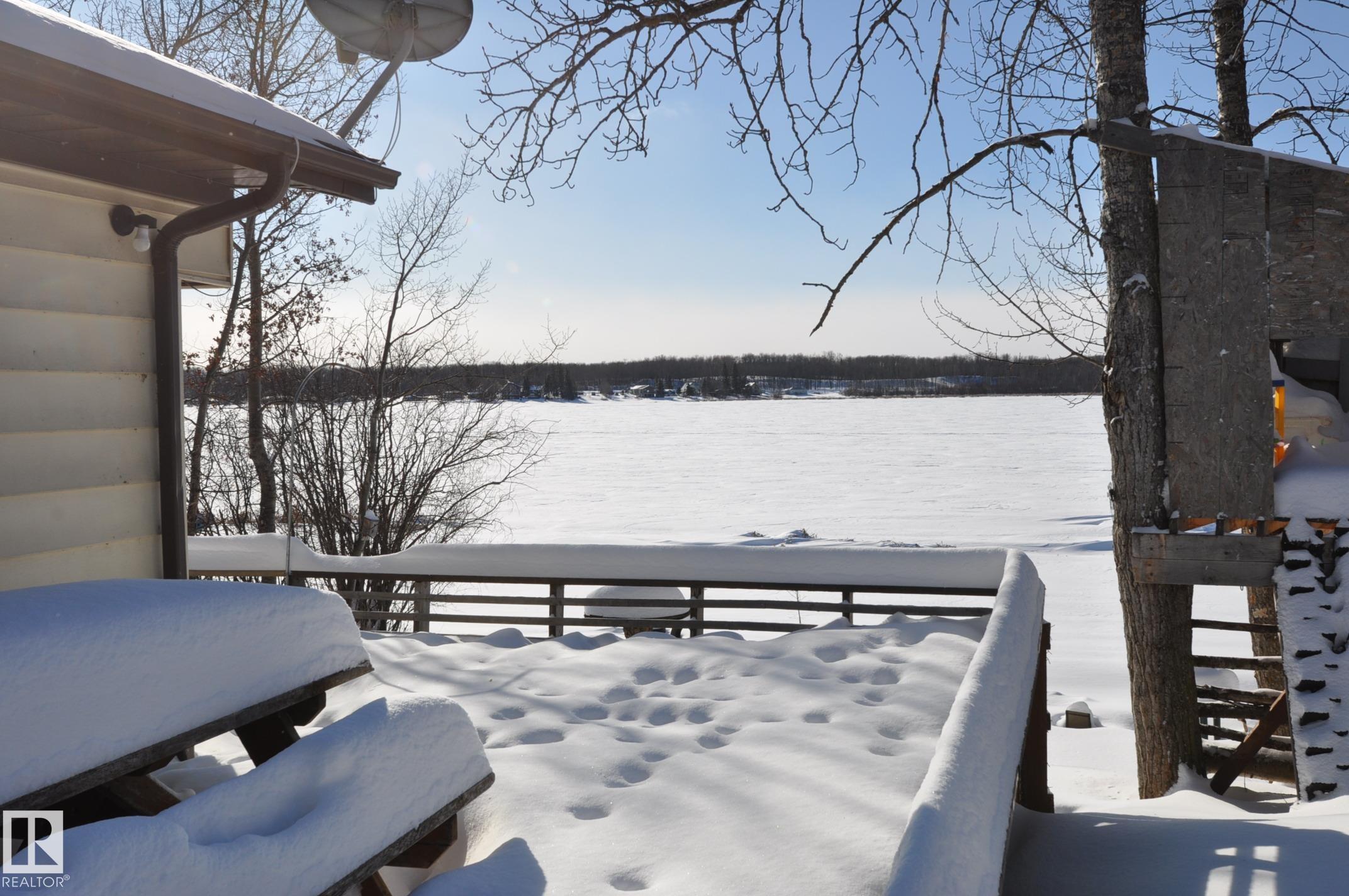 LAKE FRONT LIVING! Here?s your chance to enjoy a year-round lakefront home or create the perfect weekend summer getaway. This 2-bedroom Manufactured Home w/addition sits on a fully serviced lot in Sandy Beach complete with a drilled well, septic holding tank, power, natural gas and phone. The open floor plan offers a cozy living room with large south-facing windows, a spacious kitchen, a generous dining area, two bedrooms, and a 4-piece bath. Access to the back deck off the boot room or wrap around from the front deck. Start your mornings with coffee overlooking the peaceful lake and end your evenings by the fire pit. The yard is lined with trees and includes a storage shed, tree-house, oversized single detached garage and a landscaped yard all located on a quiet street along the school bus route, you?ll have plenty of outdoor activities and nature trails in Sandy Beach, plus quick paved access to Morinville, Onoway, Spruce Grove, and St. Albert. With some updating this home can be your year round oasis!