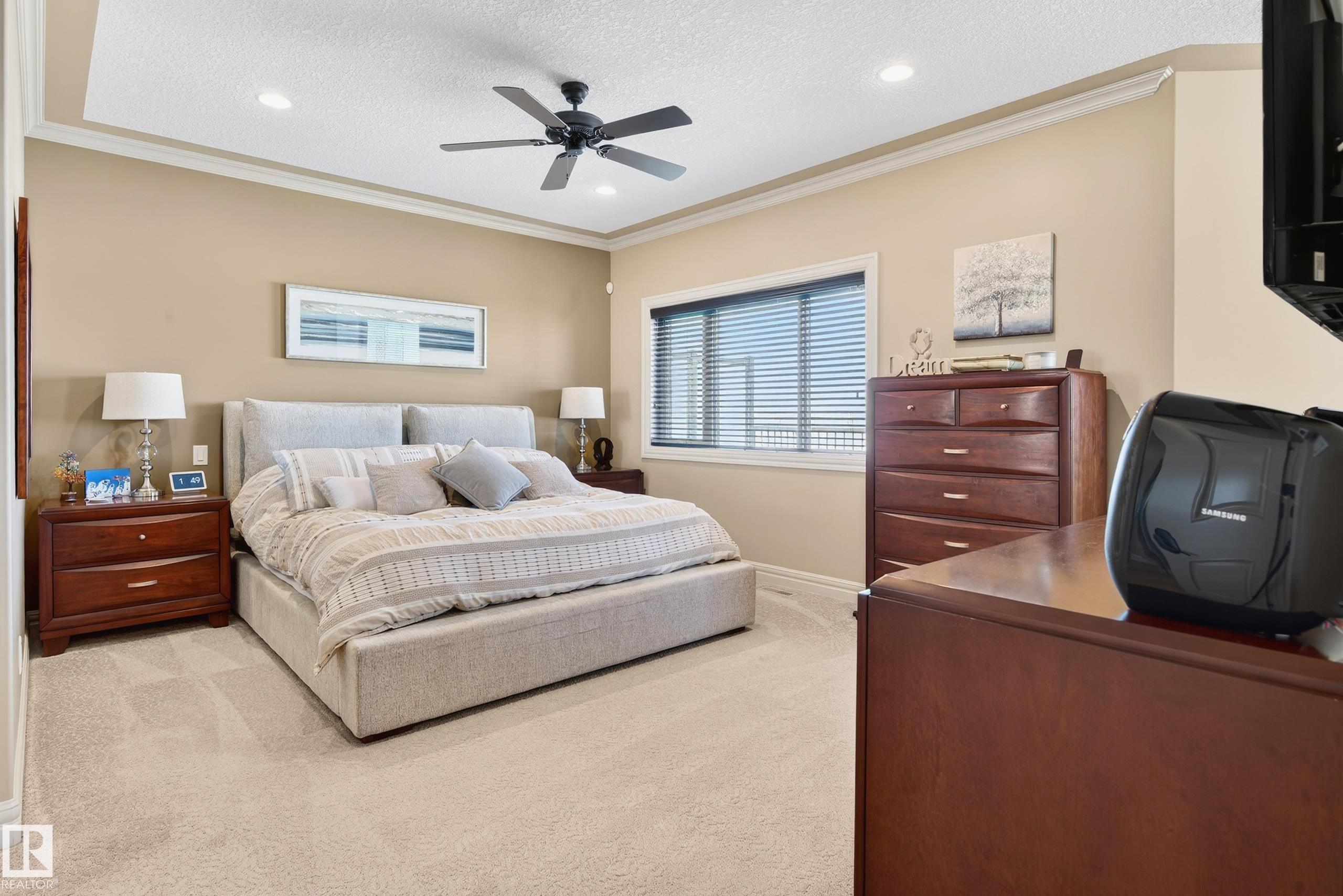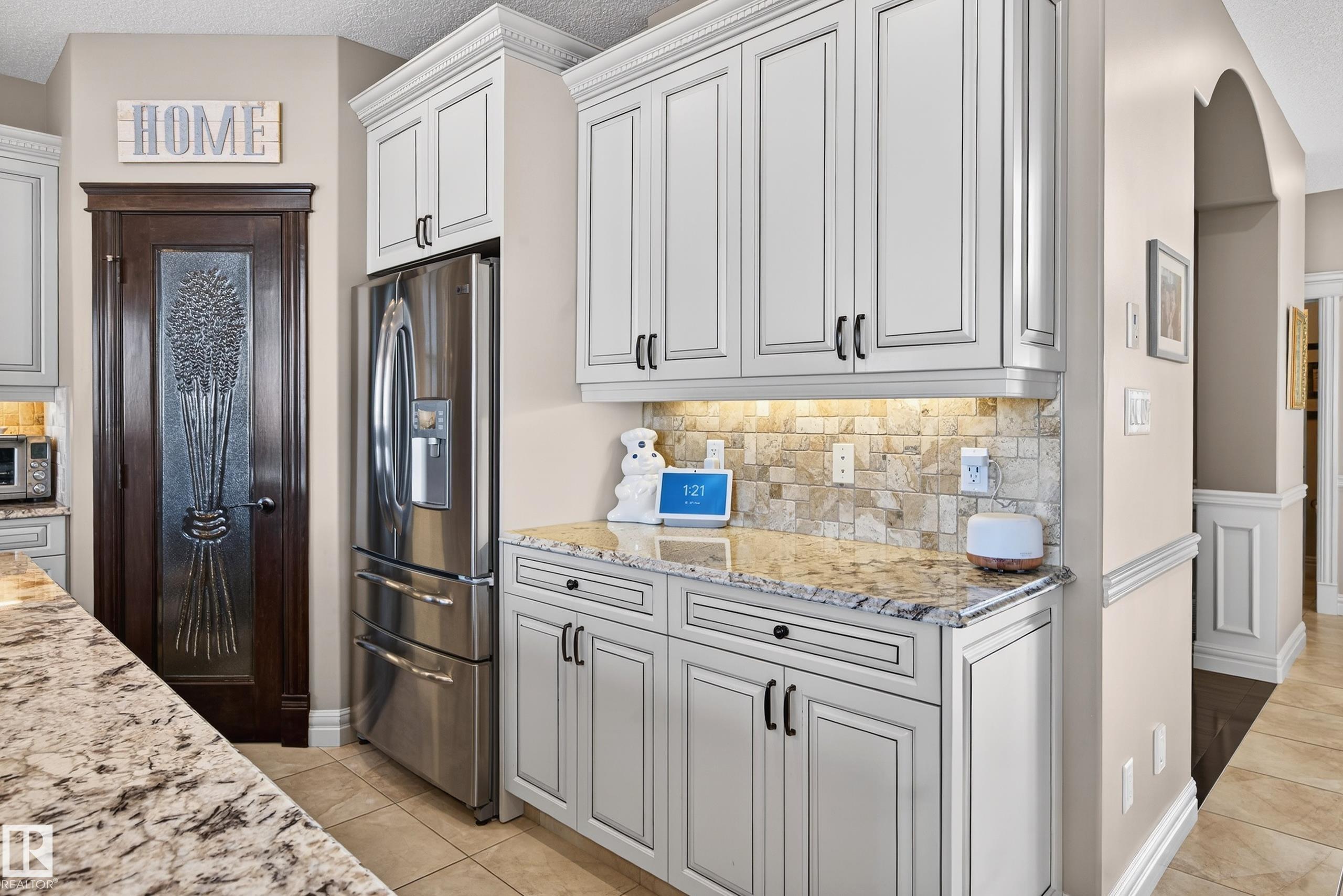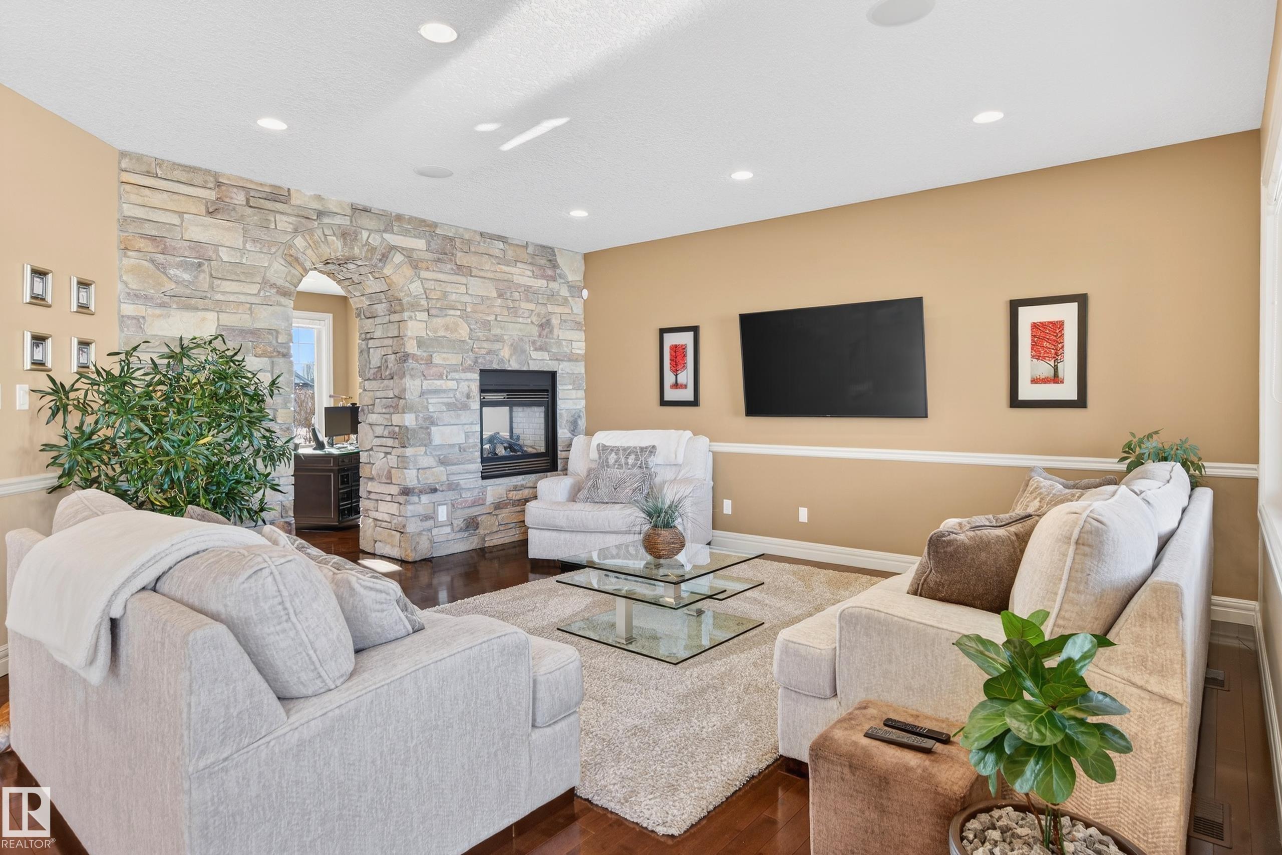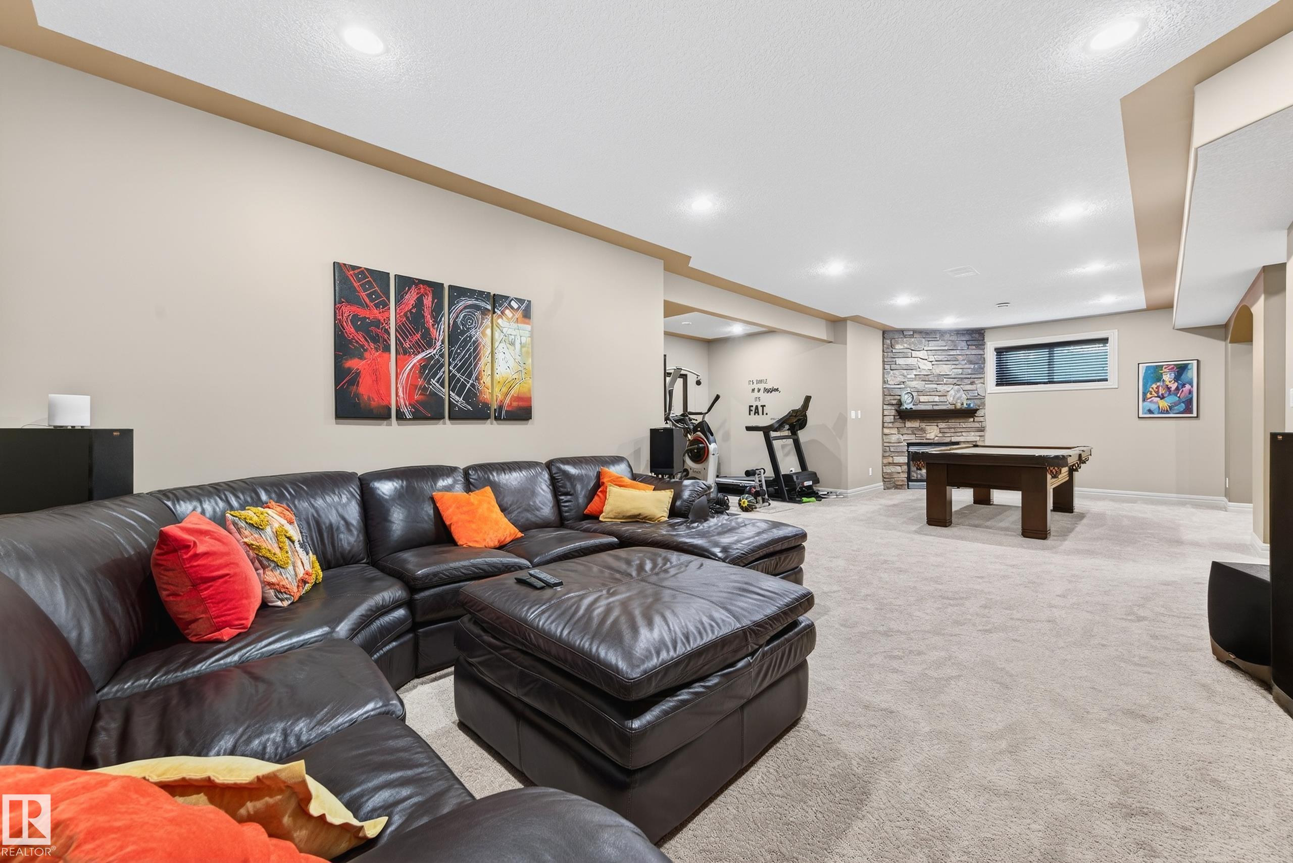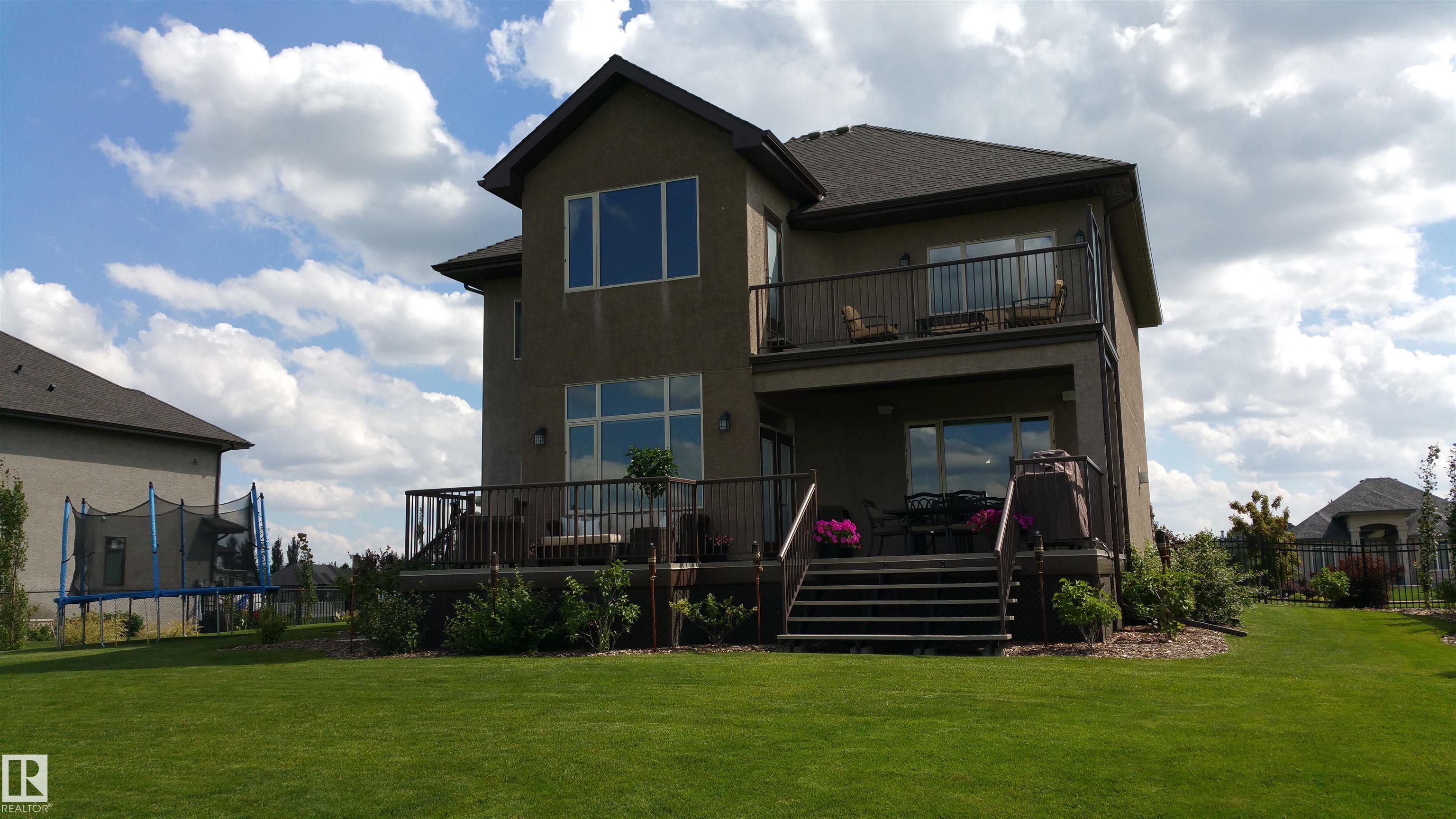 Situated on a half-acre lot in prestigious Upper Manor Estates, this exceptional custom built 2-storey offers over 4500 sq ft of refined, fully finished living space where every detail has been thoughtfully considered. The bright entry opens to an open office and a stunning kitchen with premium appliances, a large island, ample cabinetry, and an inviting sunlit nook. The living room impresses with a dramatic stone arch wall and a dual-sided fireplace creating warmth throughout the main living space, while the main floor laundry adds everyday functionality. Upstairs, the four generous bedrooms include an expansive primary suite with a sitting room, luxurious ensuite and its own private deck with a room for a hot tub, creating a true oasis. The finished basement adds a massive rec room, wet bar, fifth flex/bedroom, and full bath. Outside, enjoy a professionally finished yard an irrigation system and an oversized triple garage with h/c water, drain, tall ceilings and a drive-through bay for additional space.