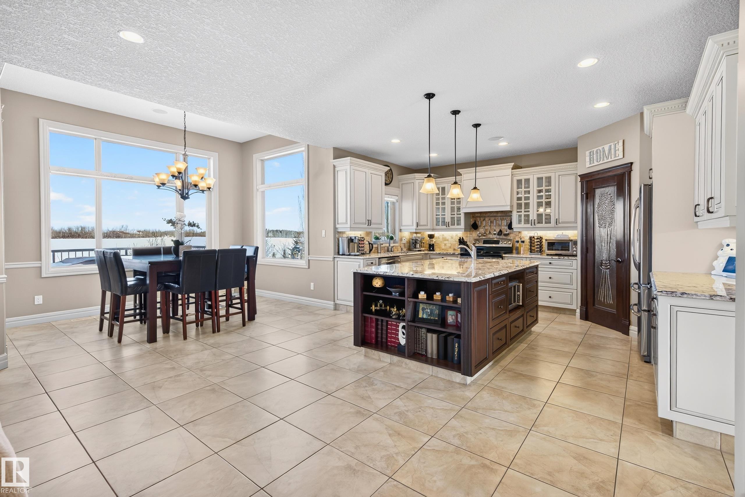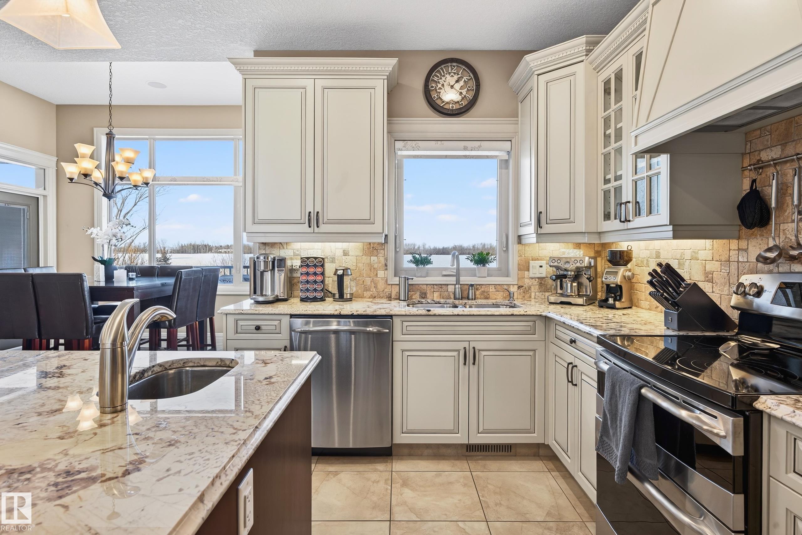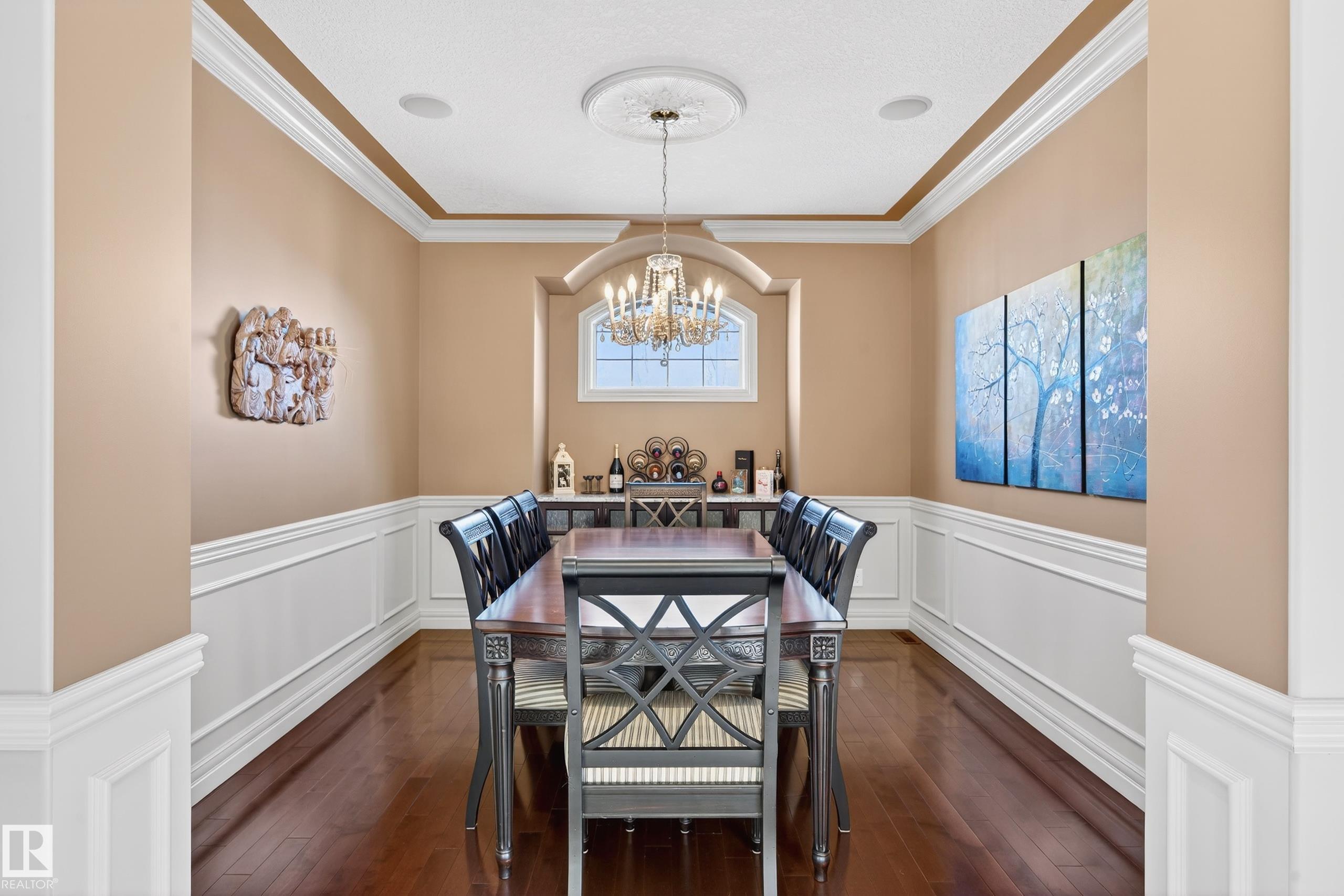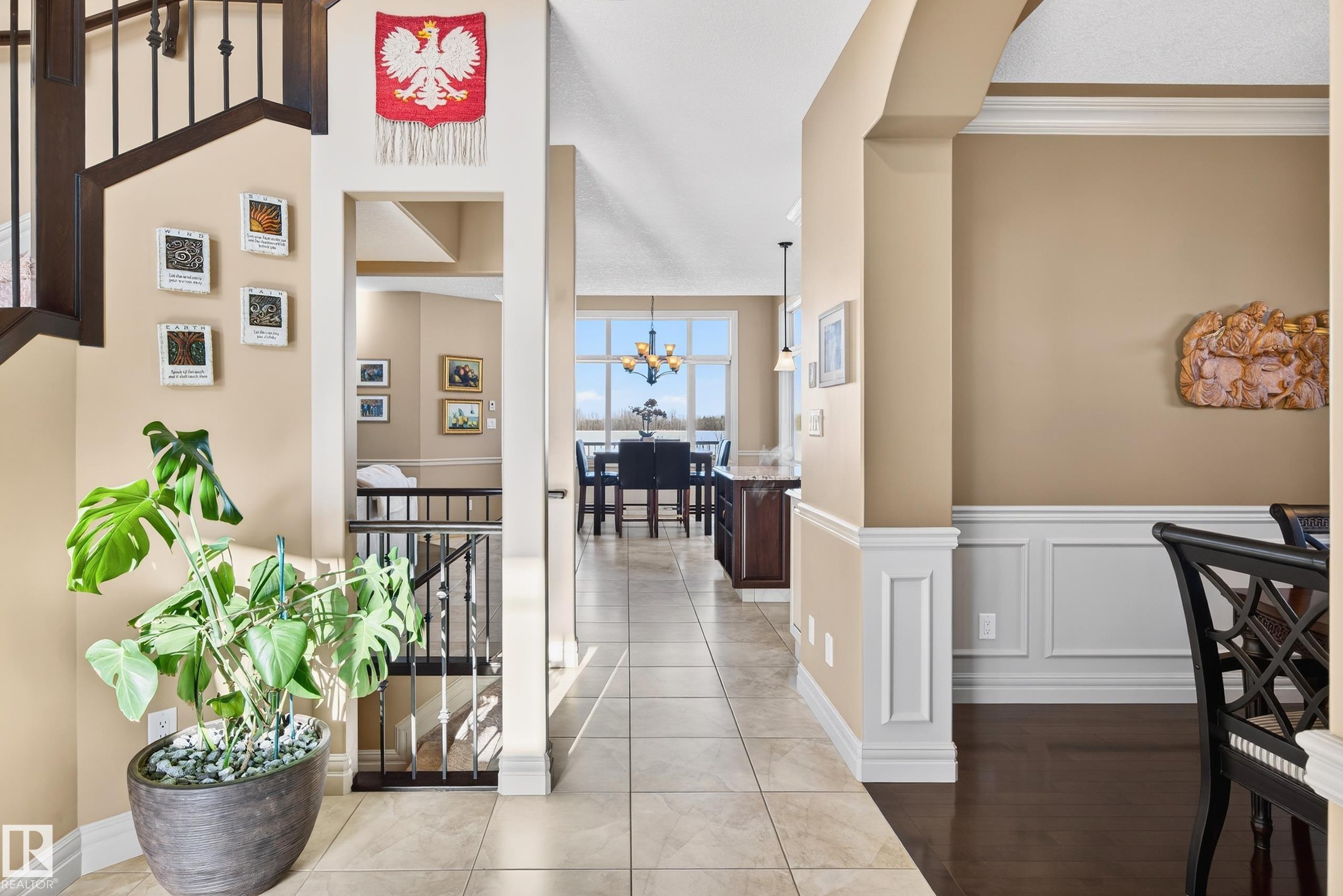 Situated on a half-acre lot in prestigious Upper Manor Estates, this exceptional custom built 2-storey offers over 4500 sq ft of refined, fully finished living space where every detail has been thoughtfully considered. The bright entry opens to an open office and a stunning kitchen with premium appliances, a large island, ample cabinetry, and an inviting sunlit nook. The living room impresses with a dramatic stone arch wall and a dual-sided fireplace creating warmth throughout the main living space, while the main floor laundry adds everyday functionality. Upstairs, the four generous bedrooms include an expansive primary suite with a sitting room, luxurious ensuite and its own private deck with a room for a hot tub, creating a true oasis. The finished basement adds a massive rec room, wet bar, fifth flex/bedroom, and full bath. Outside, enjoy a professionally finished yard an irrigation system and an oversized triple garage with h/c water, drain, tall ceilings and a drive-through bay for additional space.