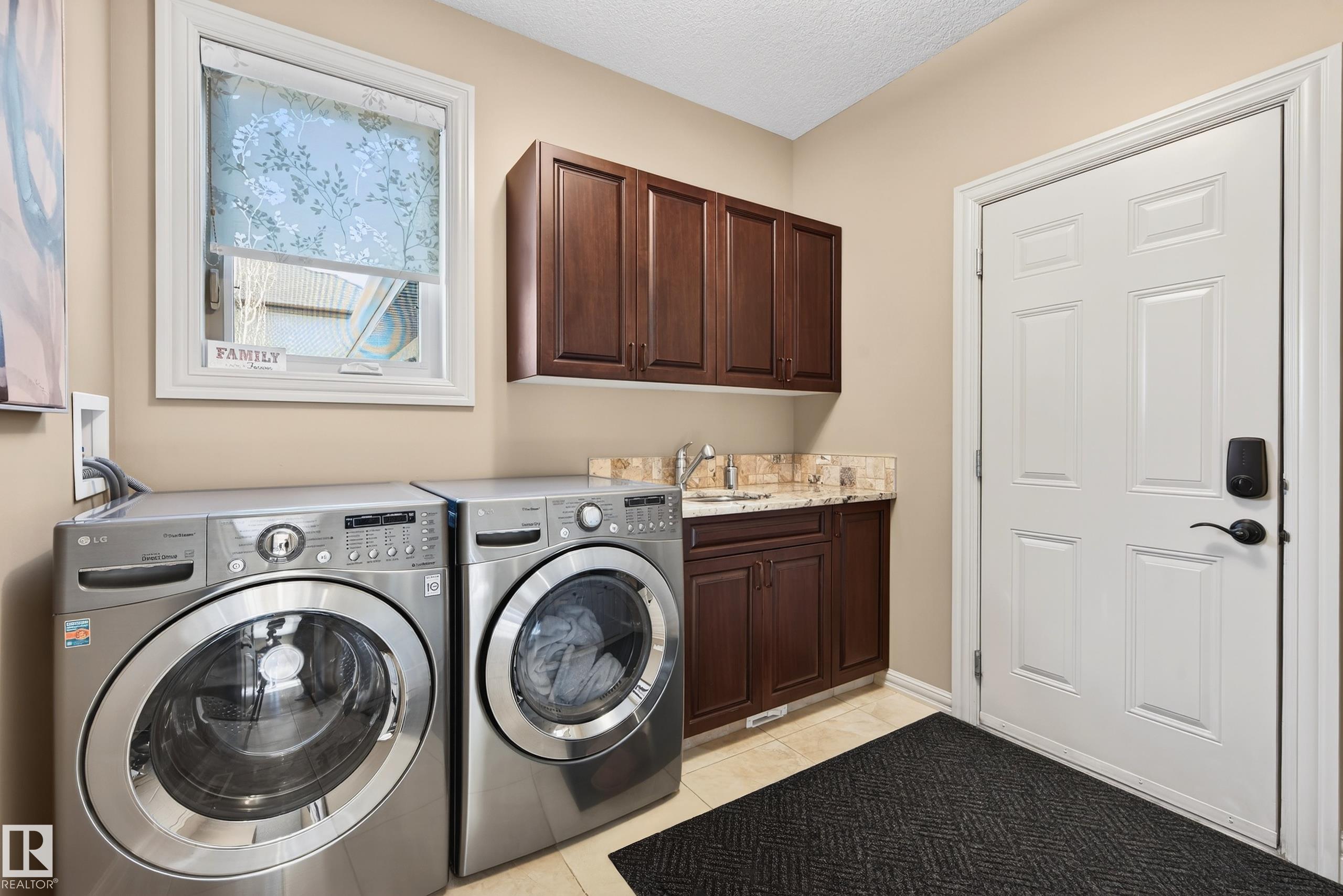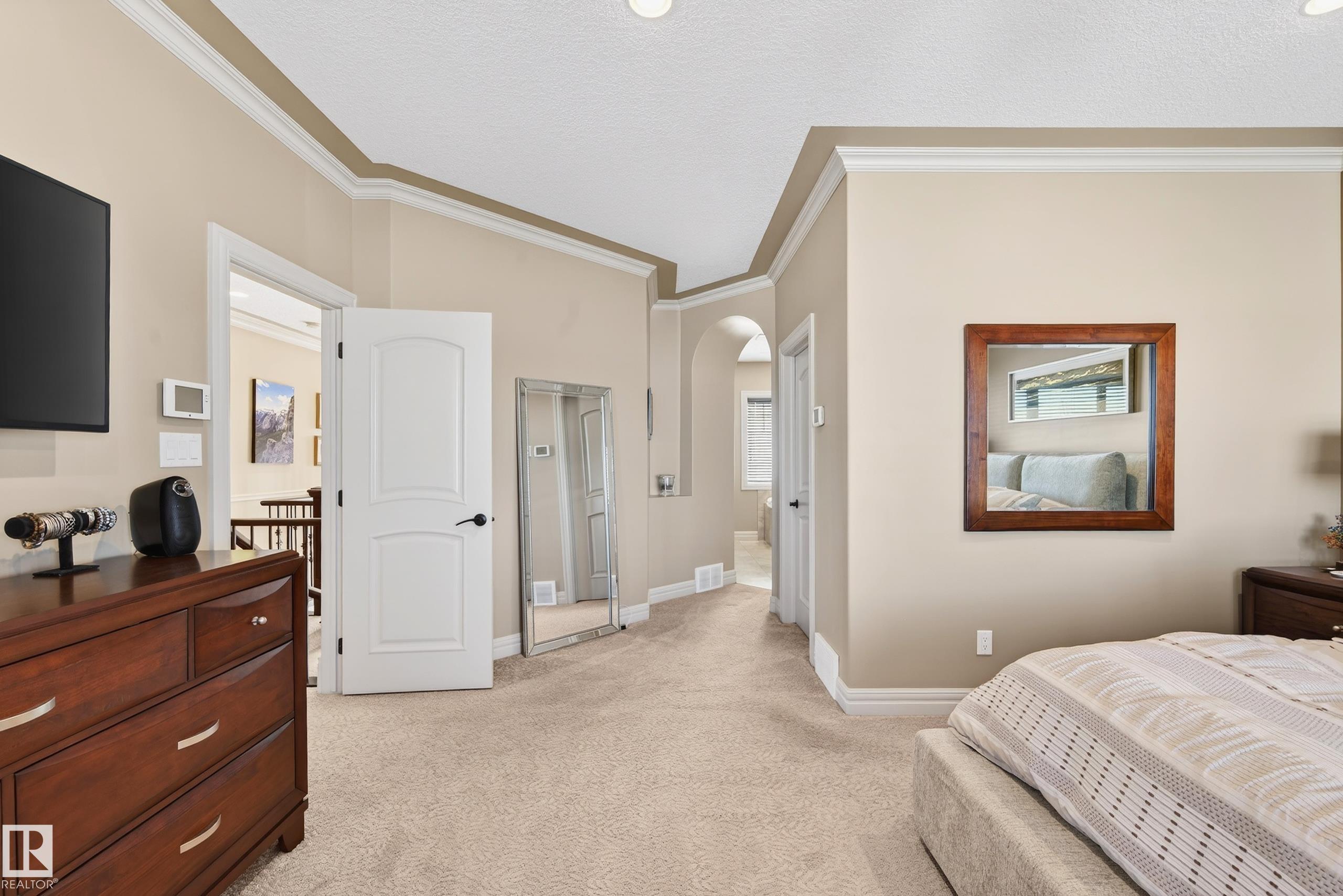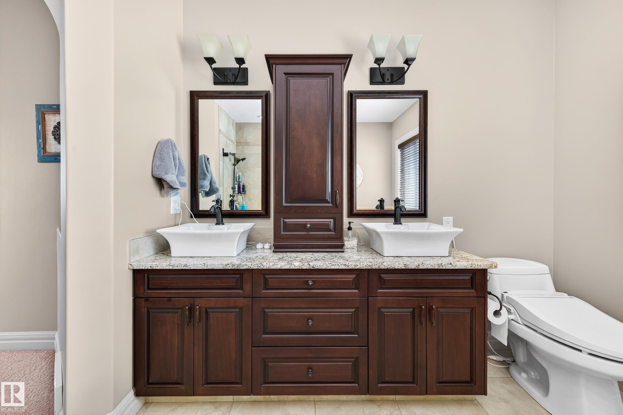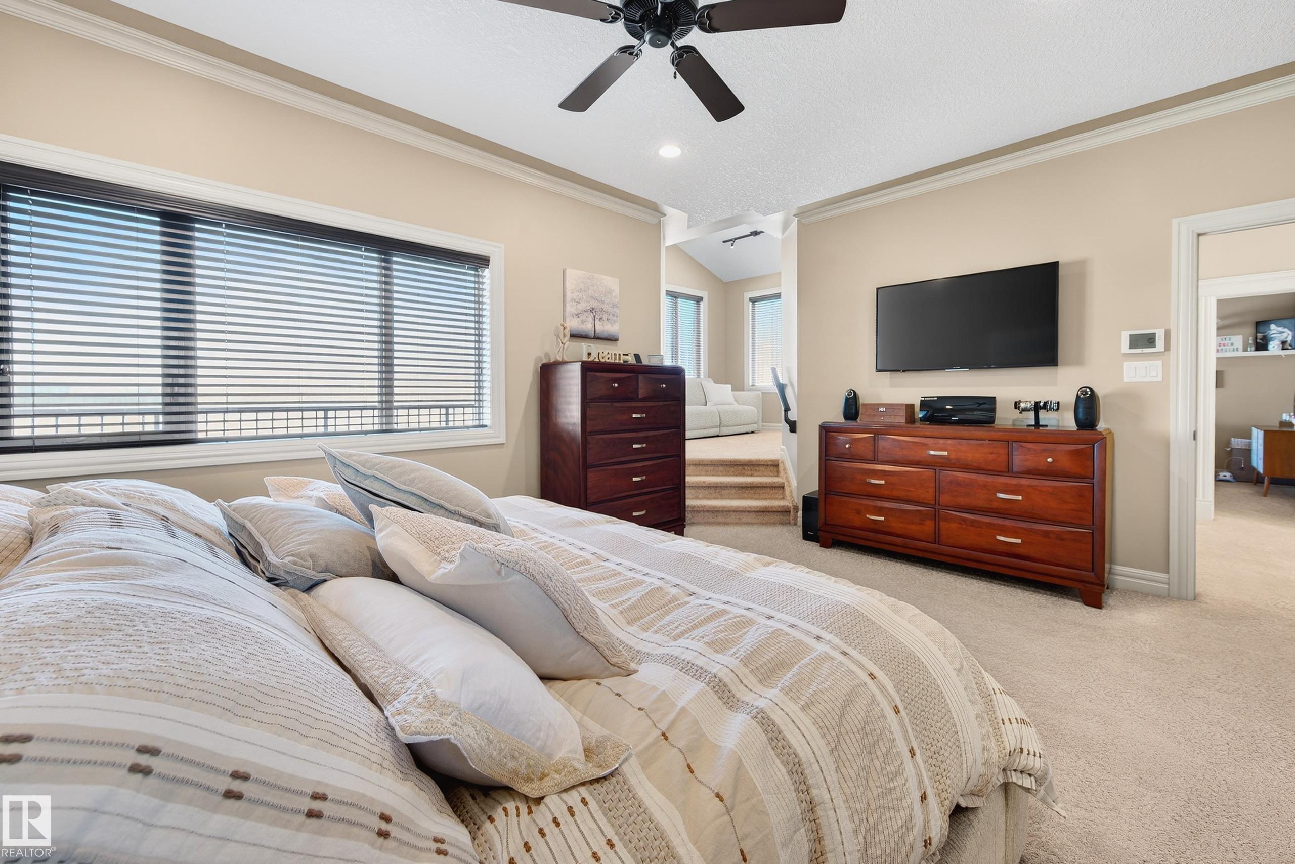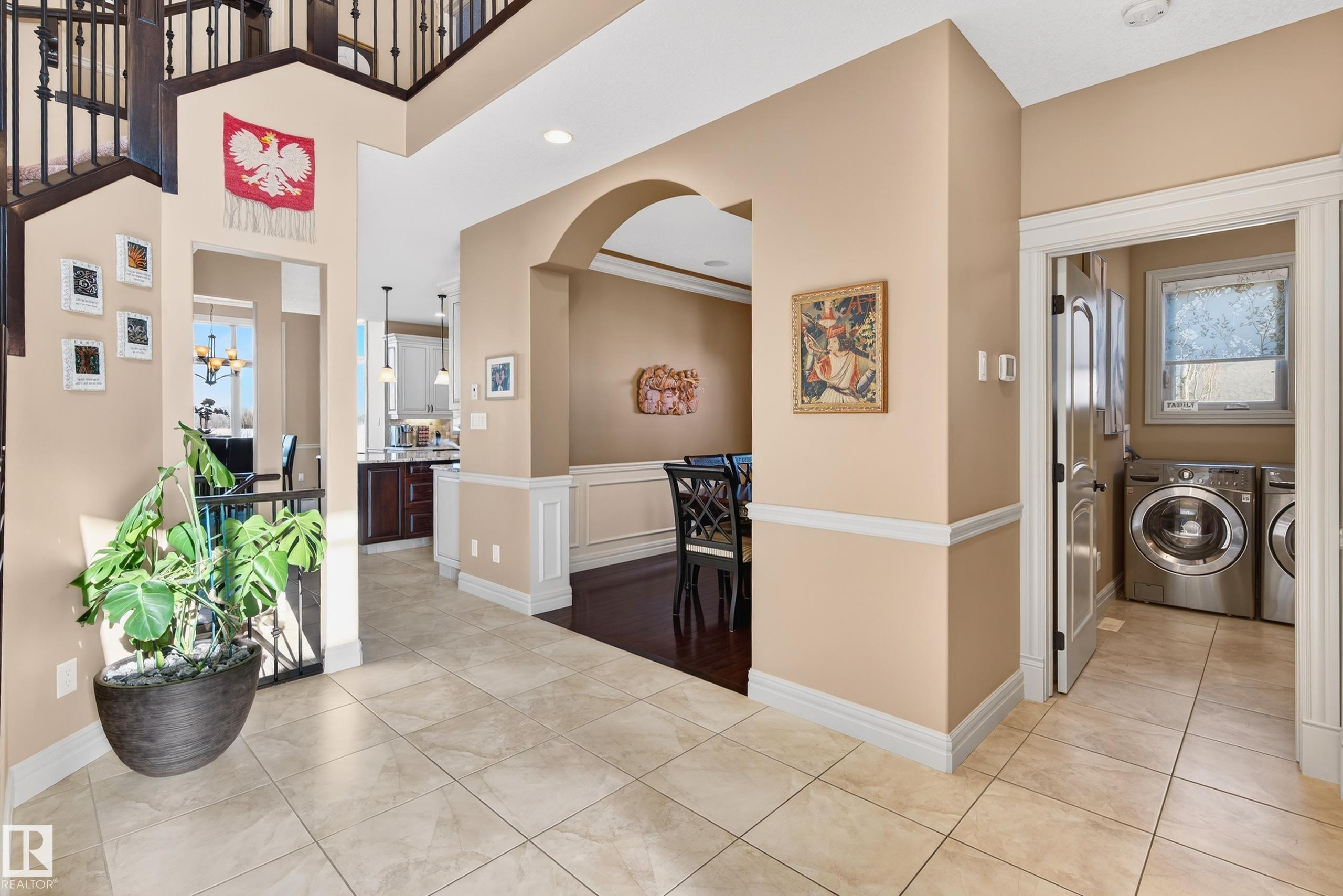 Situated on a half-acre lot in prestigious Upper Manor Estates, this exceptional custom built 2-storey offers over 4500 sq ft of refined, fully finished living space where every detail has been thoughtfully considered. The bright entry opens to an open office and a stunning kitchen with premium appliances, a large island, ample cabinetry, and an inviting sunlit nook. The living room impresses with a dramatic stone arch wall and a dual-sided fireplace creating warmth throughout the main living space, while the main floor laundry adds everyday functionality. Upstairs, the four generous bedrooms include an expansive primary suite with a sitting room, luxurious ensuite and its own private deck with a room for a hot tub, creating a true oasis. The finished basement adds a massive rec room, wet bar, fifth flex/bedroom, and full bath. Outside, enjoy a professionally finished yard an irrigation system and an oversized triple garage with h/c water, drain, tall ceilings and a drive-through bay for additional space.