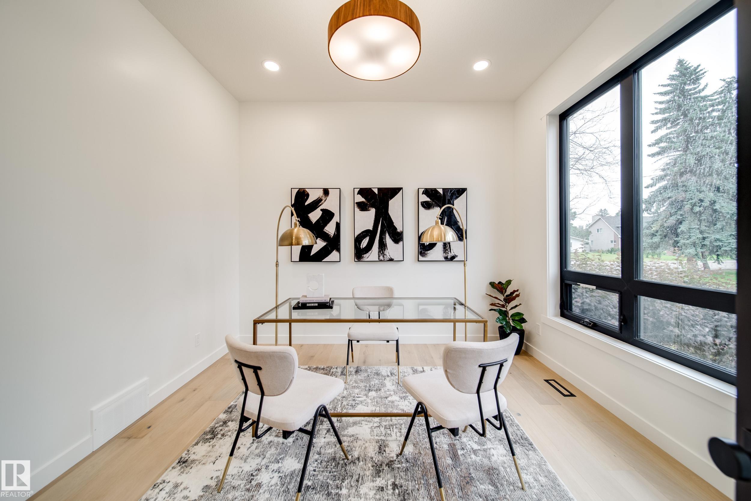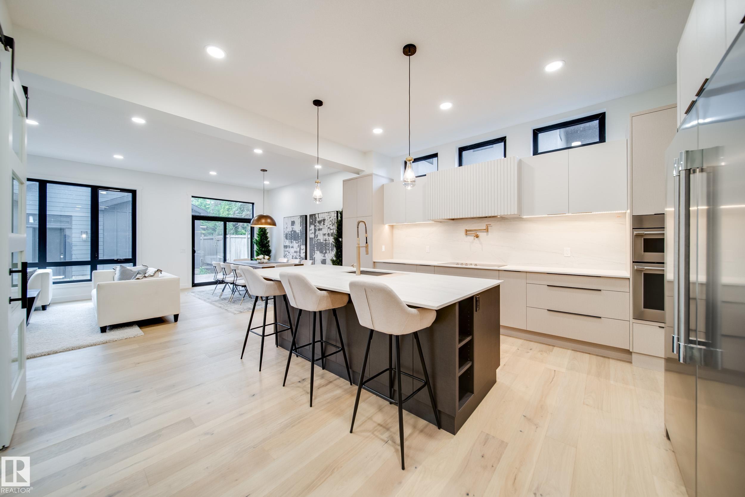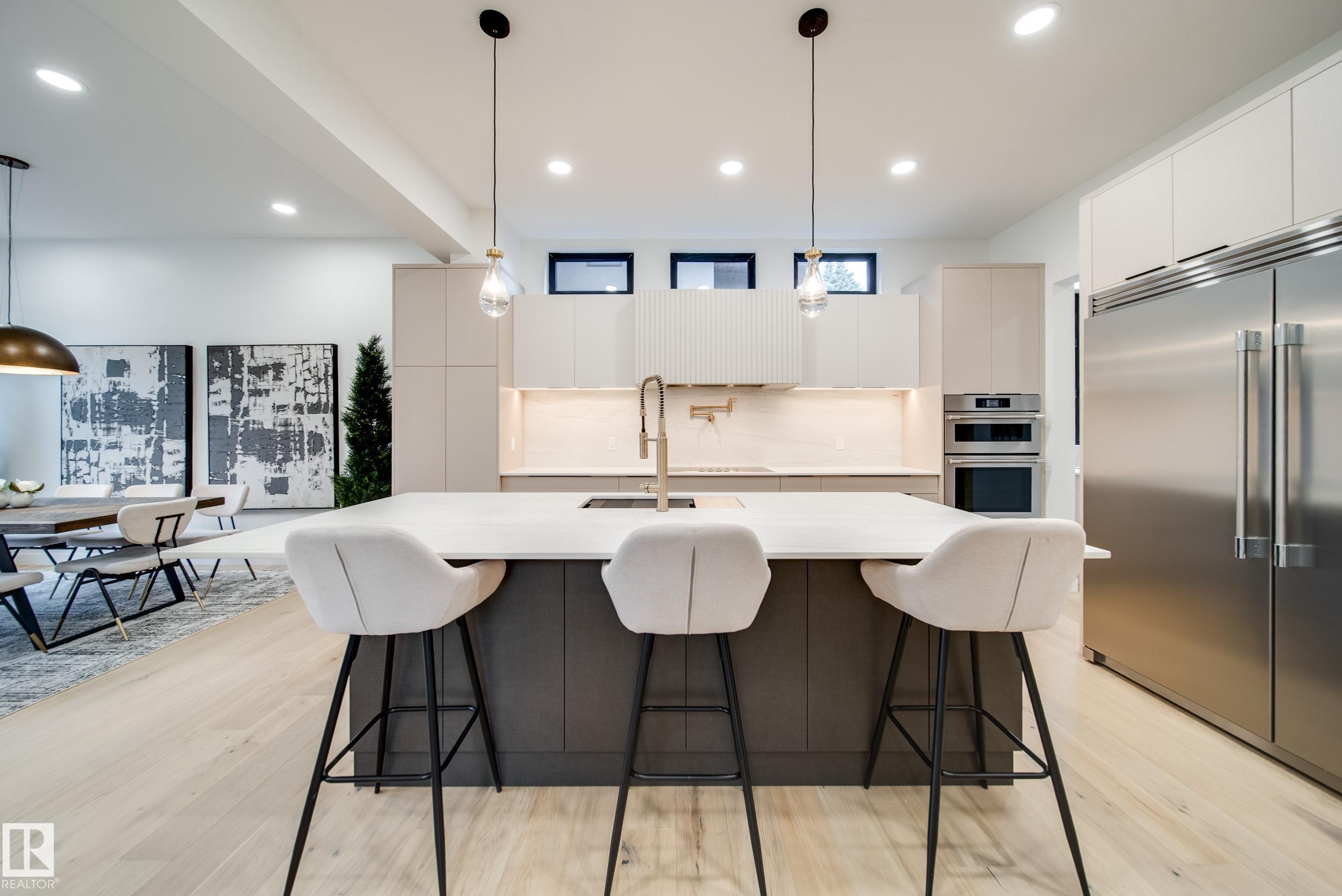 A rare opportunity in one of Edmonton?s most prestigious areas just off Valleyview Drive! This nearly 2,500 sqft 4 bed, 3.5 bath home on a 32x124 ft lot is just steps from iconic River Valley views. Inside, 10' main floor ceilings create a grand feel, w/dbl doors to your office & a stylish 2pc bath featuring marbled Dekton counters. The chef-inspired kitchen boasts local "Redl" cabinetry w/10 year warranty, Frigidaire Professional appliances, induction cooktop, oversized fridge/freezer, & butler?s pantry w/Blanco sink. The primary suite offers vaulted ceilings, a "speakeasy" walk-in closet, & spa-like 5pc ensuite. Upstairs: 2 more large beds, 5pc bath & Electrolux laundry w/a sink. The finished basement adds a wet bar w/bev fridge + dishwasher, huge bedroom, & WIC. Extras: heated dbl garage, Hardie board exterior, fully landscaped (fence is included), composite 2-tiered deck, pot filler, trpl-pane All Weather windows, Dekton/Silestone finishes, and a cozy fireplace. Parkview is calling!