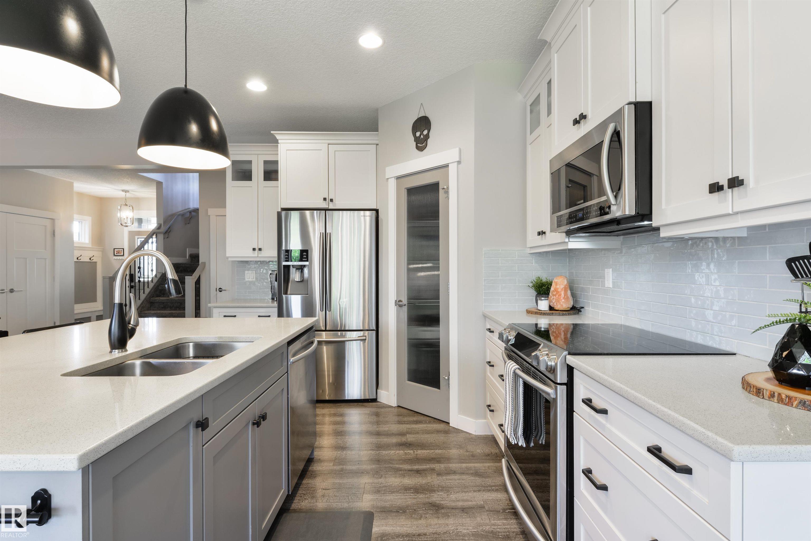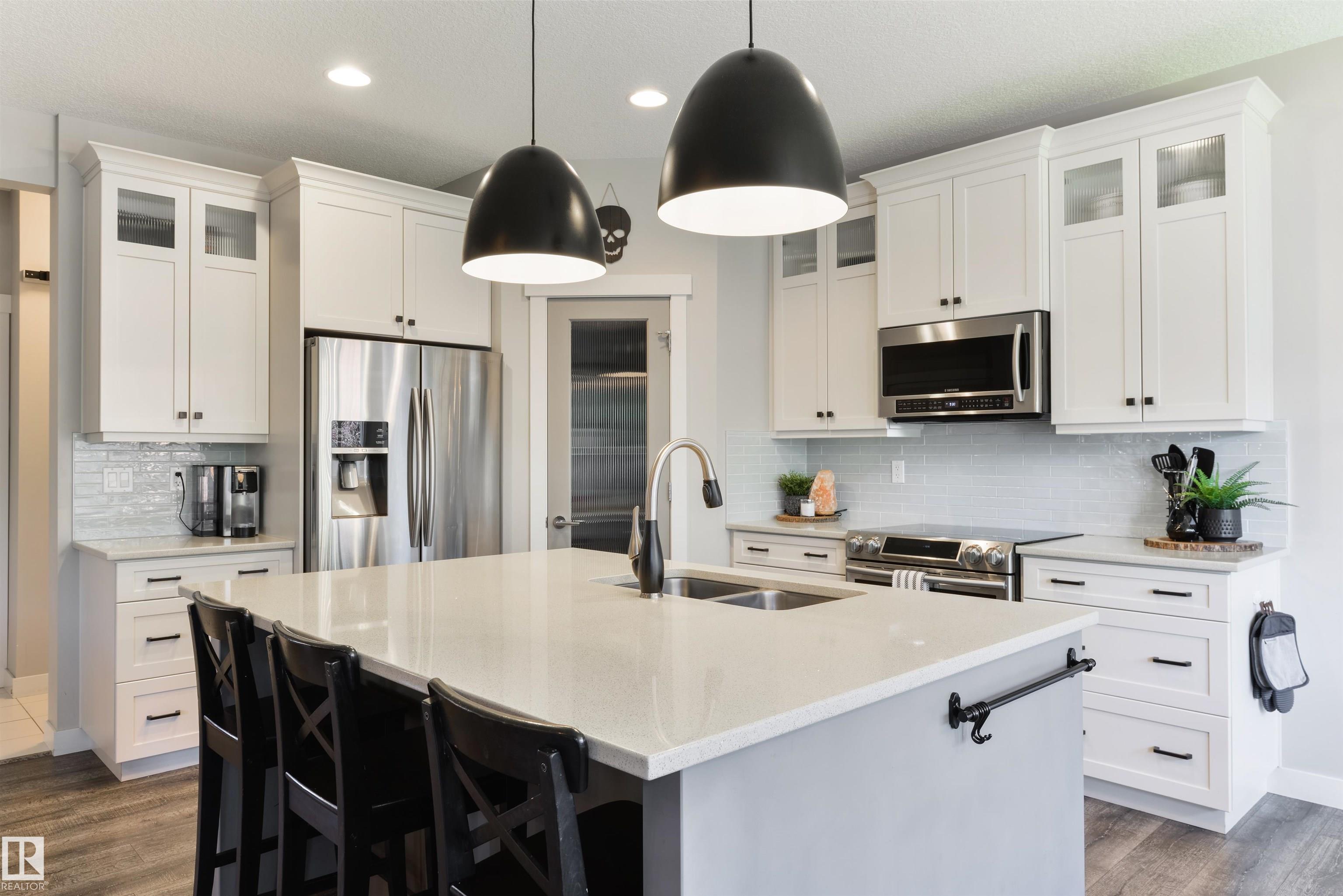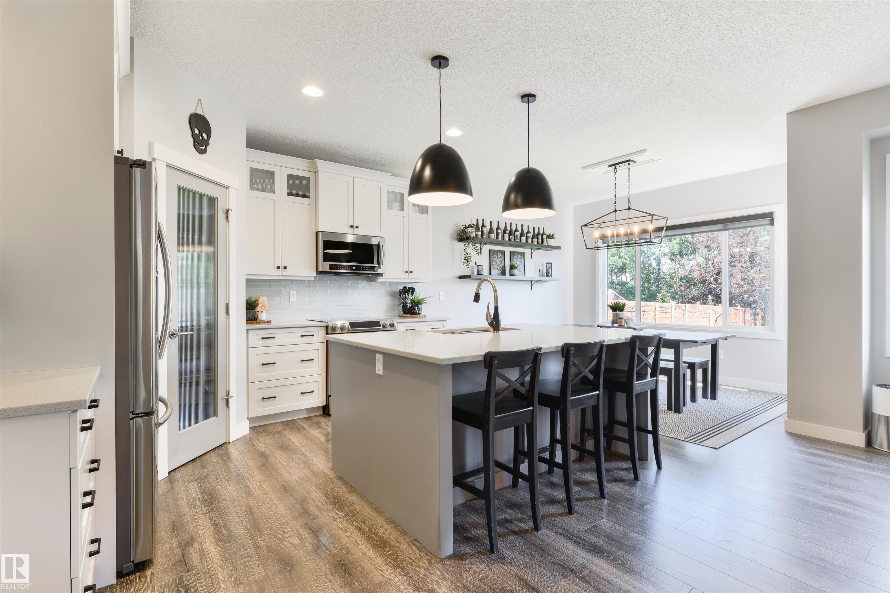 Fully-finished with a GREENSPACE view! This home is located on one of the prettiest lots in Spruce Grove and is perfectly situated within walking distance to playgrounds, schools, shopping, and Heavy Metal Place. As you enter, you?ll notice the 9? ceilings and large entryway to welcome your guests. The main floor is complete with an open layout, lovely living room with gas fireplace, a bright & airy kitchen with QUARTZ countertops, center island, stainless appliances, corner pantry, and separate dinette, a 2pc powder room, and a dedicated laundry space. The upper level features a bonus room, king-sized owner?s suite with walk-in closet & 5pc ensuite, and a Jack & Jill 4pc bath separating the 2nd & 3rd bedrooms, while down in the basement the space is finished to include a large rec room, wet bar, 4th bedroom & 3pc bath. Situated in one of the city?s newest subdivisions, the location with easy access to the Yellowhead here can?t be beat!